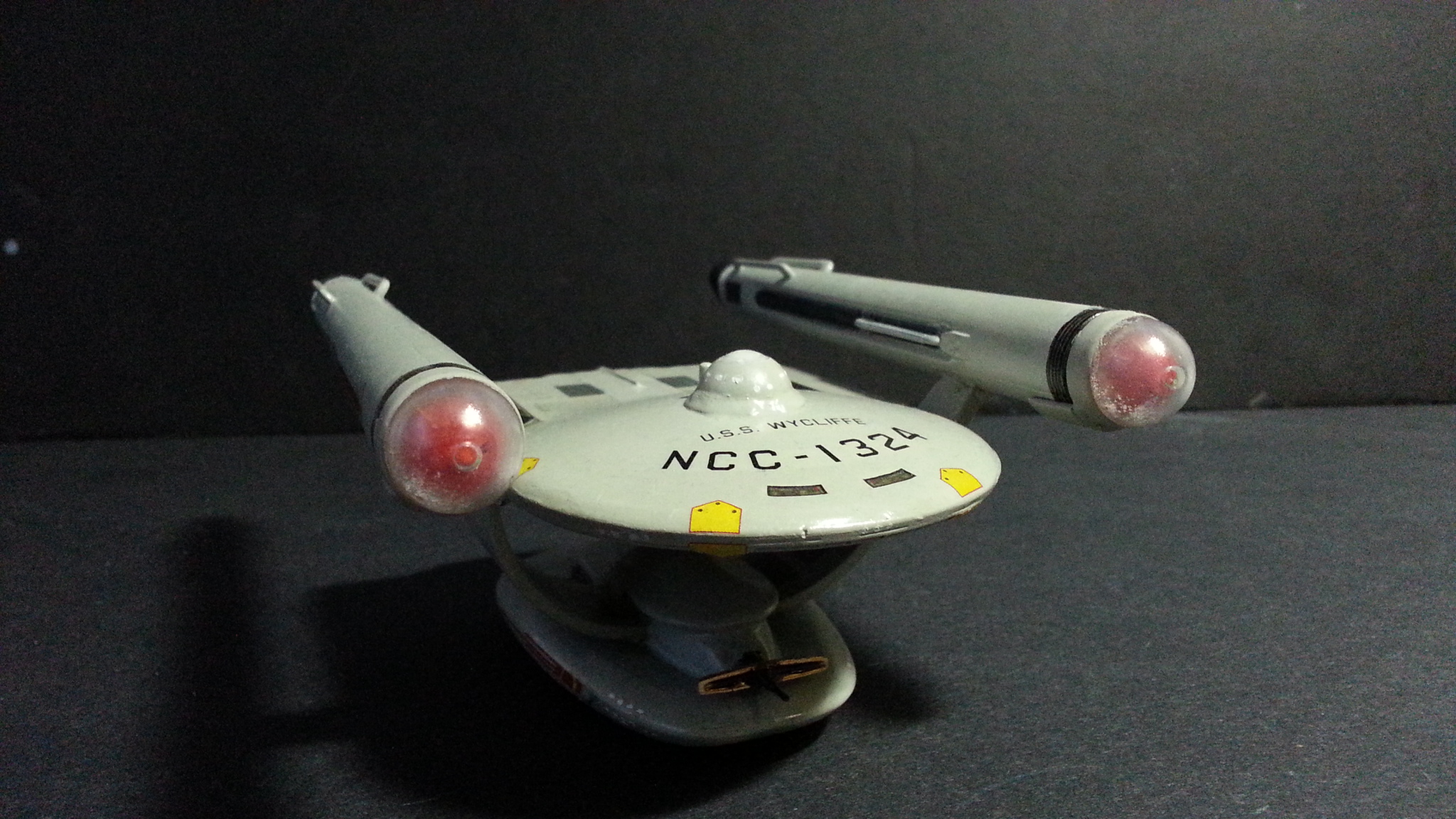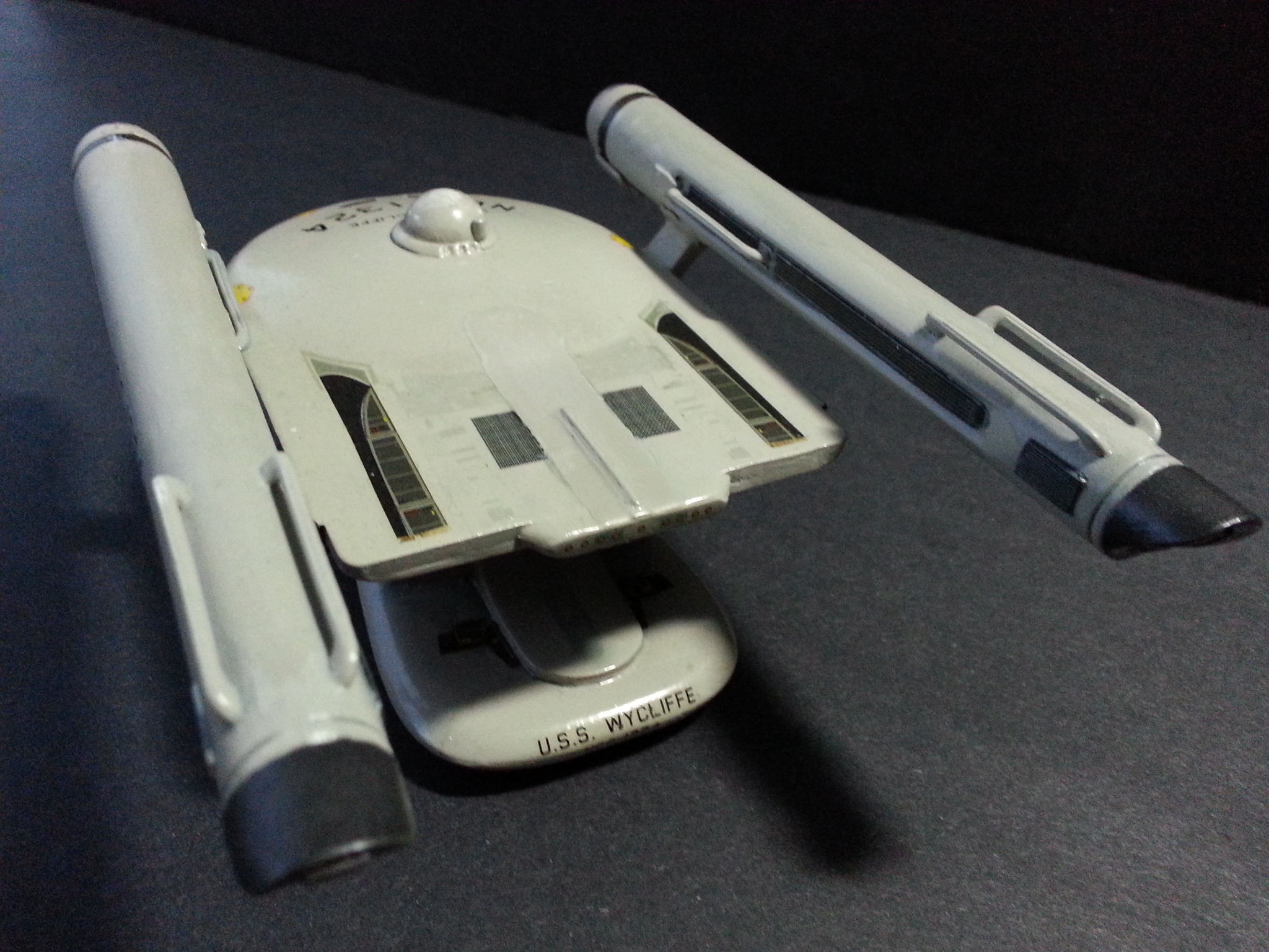 This is the out-of-production kit from Starship Modeler of the 1/1000 scale Giordano-Bruno class conversion kit. It required two nacelles from the 1/1000 scale polar lights Enterprise kit, of which I happened to have extra. The only major modification I added was the main deflector dish, which cam from the NX-01 1/1000 scale polar light kit. This model was built last year and sold on eBay earlier this year.
