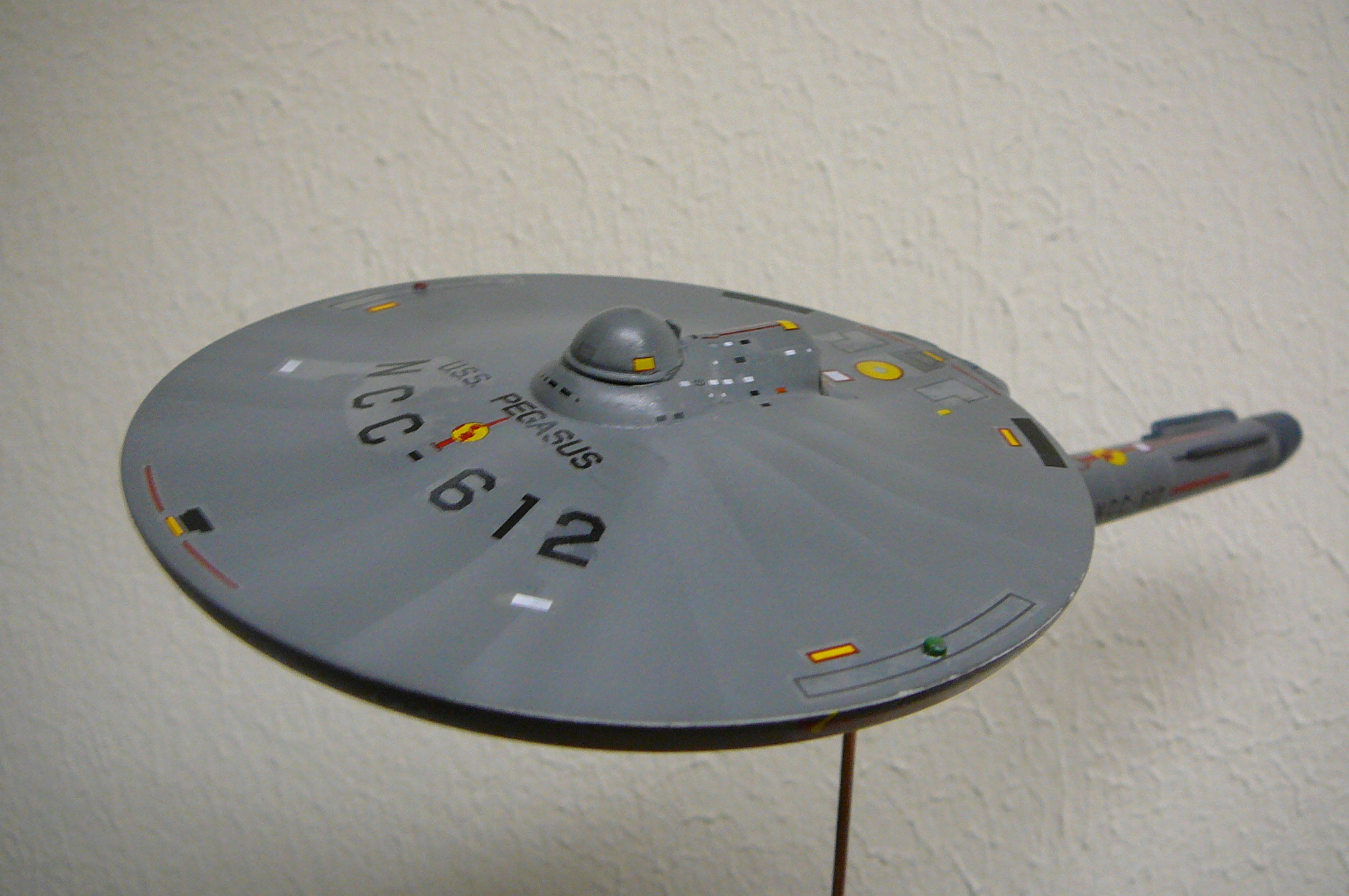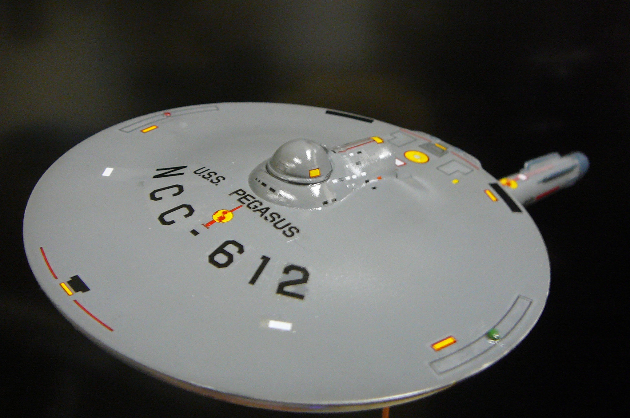 Built from the kit (OFFERED HERE), kit master and artist Steven Carricato brings it to life…. and to the Star Universe. What I especially enjoy of this design is the shuttle bay on the rear of the bridge area. Very unique!
