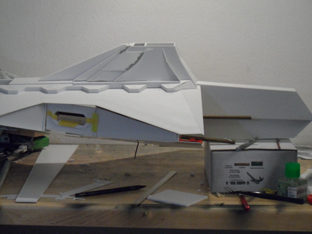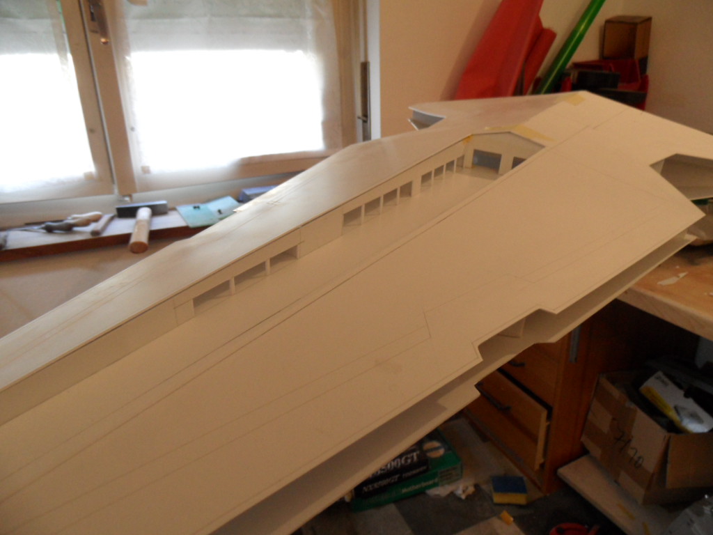 I don’t plan to kit it as I am going through enough problems with it being my very first scratch build. The beast is a total of 1137mm which is about 3feet and 8 something inches. A big beauty I think. At the moment I am fighting with the bridge tower, I put on some Aves and now I need to sand it down to make it look nice and smooth. The angles are tricky….
