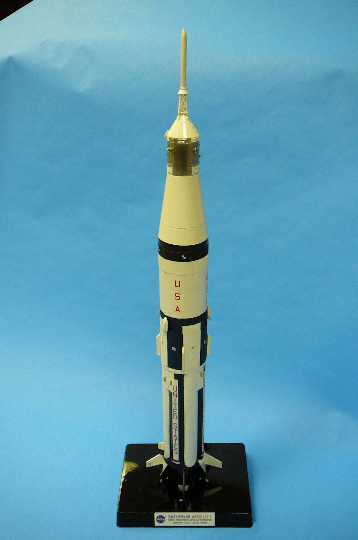 I finished the First Apollo 7 manned flight mission on John Glens 50th anniversary into Space! I built this one for Curtis Hughes. It took two weeks to complete. Scale 1/144 which is very a small model measuring only 18.2” in height. I used tin foil for the SCM (Service Command Module) which gave it that bare metal look. I super detail the command module with styrene to make the radiator’s vents look real on the SCM.