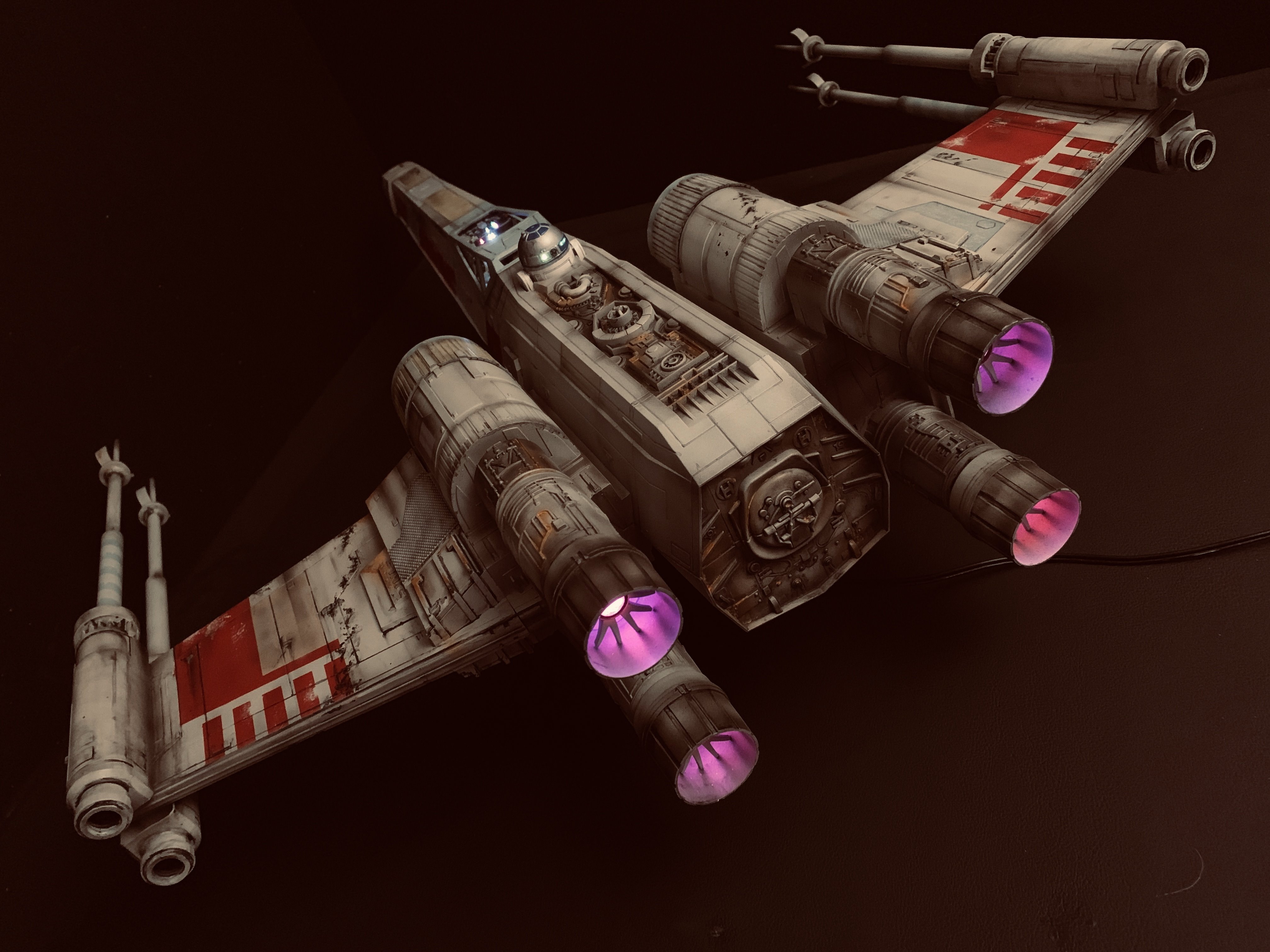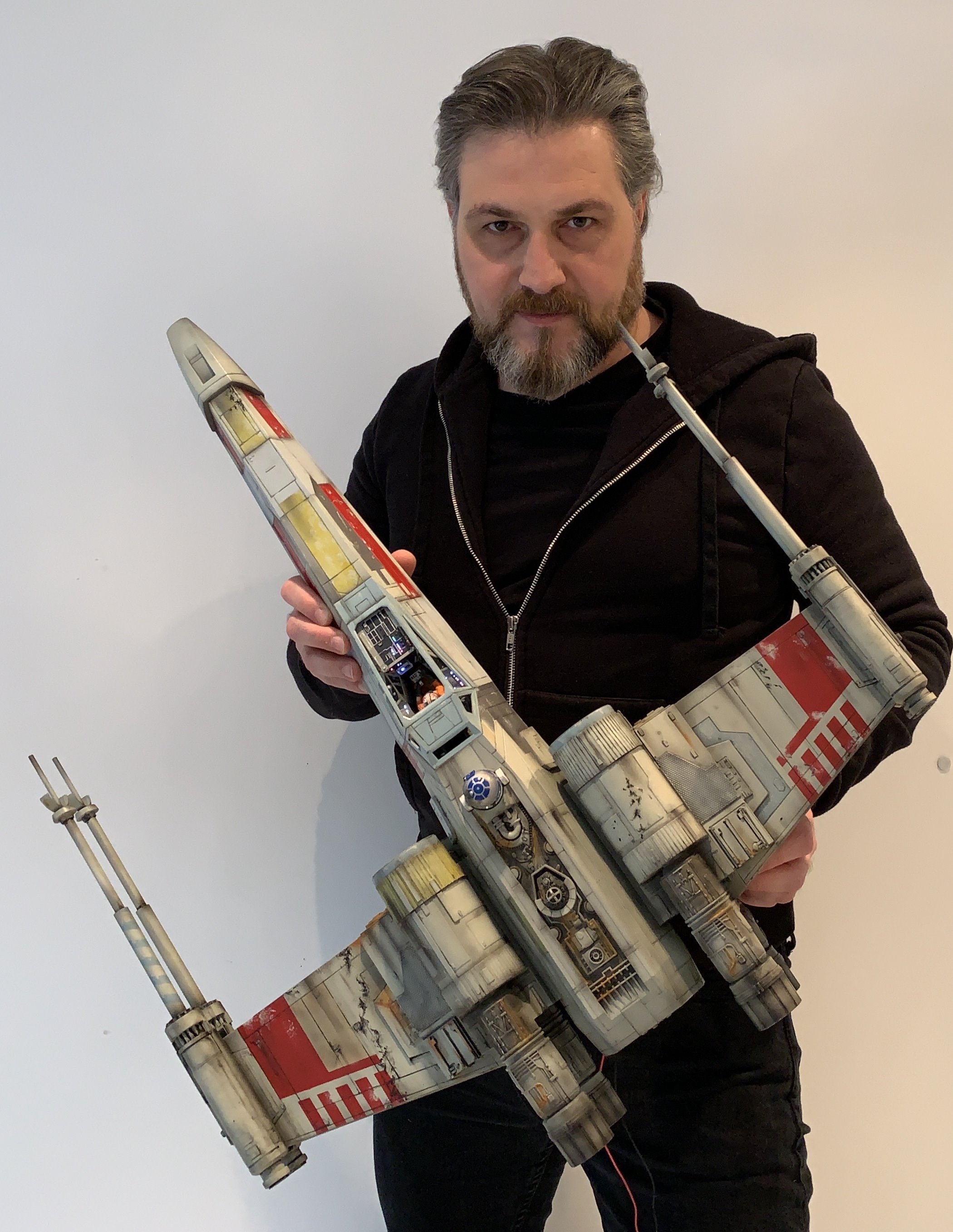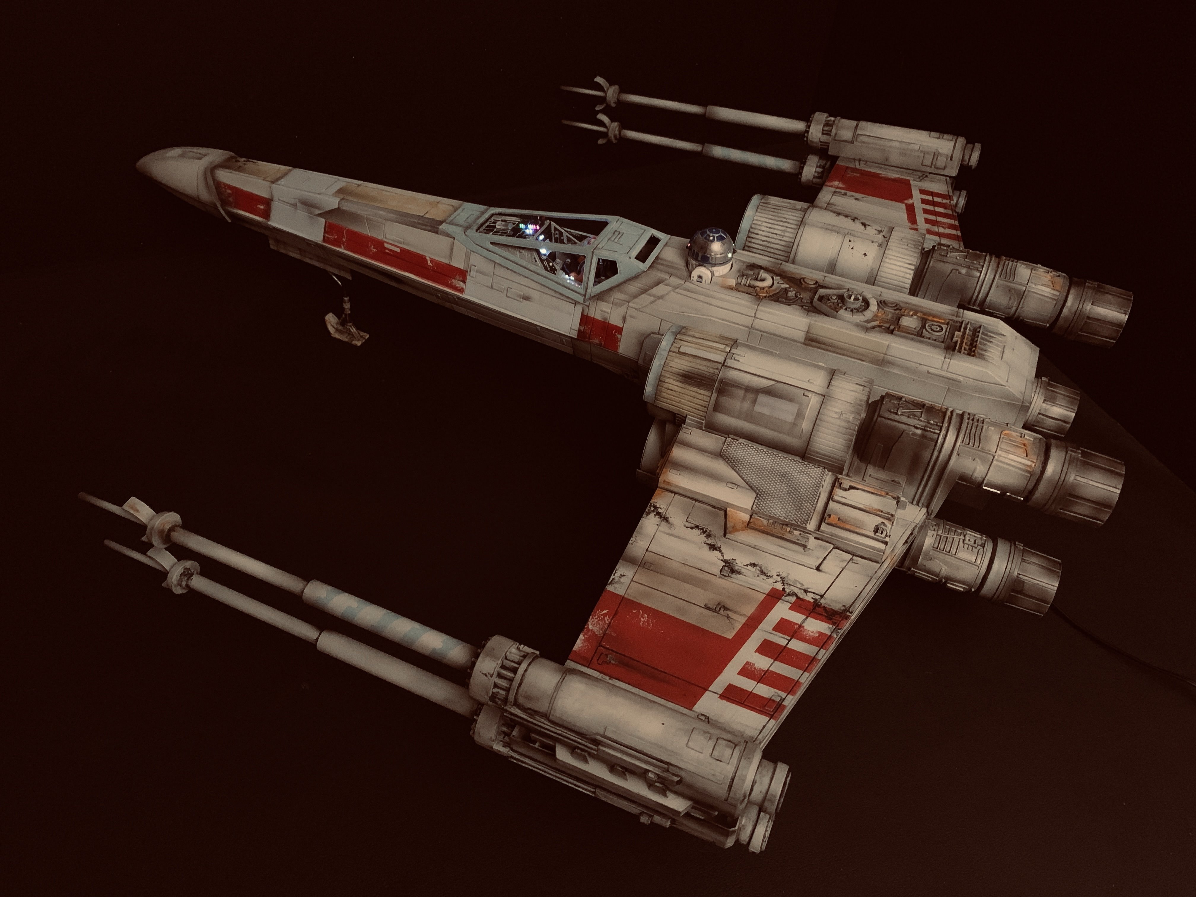 I love to see toy conversions into fantastic model displays. Such is this one by Fabrice Maggio. He took the latest X-Wing toy that was released by Hasbro as a closed wing version that is to scale with their smaller figure line, and he turned it into a fantastic model that should be proudly displayed. He states it is not entirely accurate, but well enough for him… and I agree! This is great work by Fabrice!