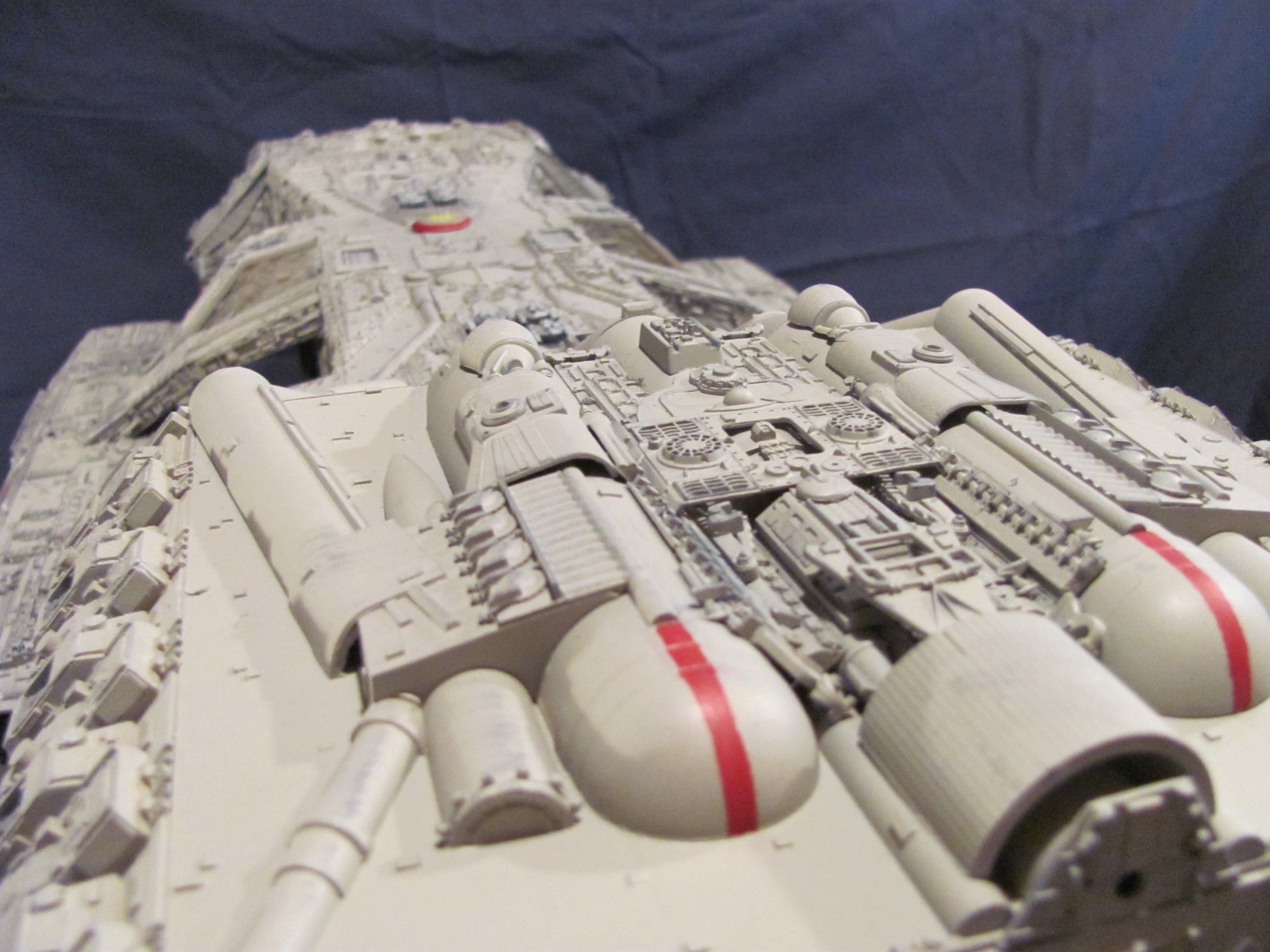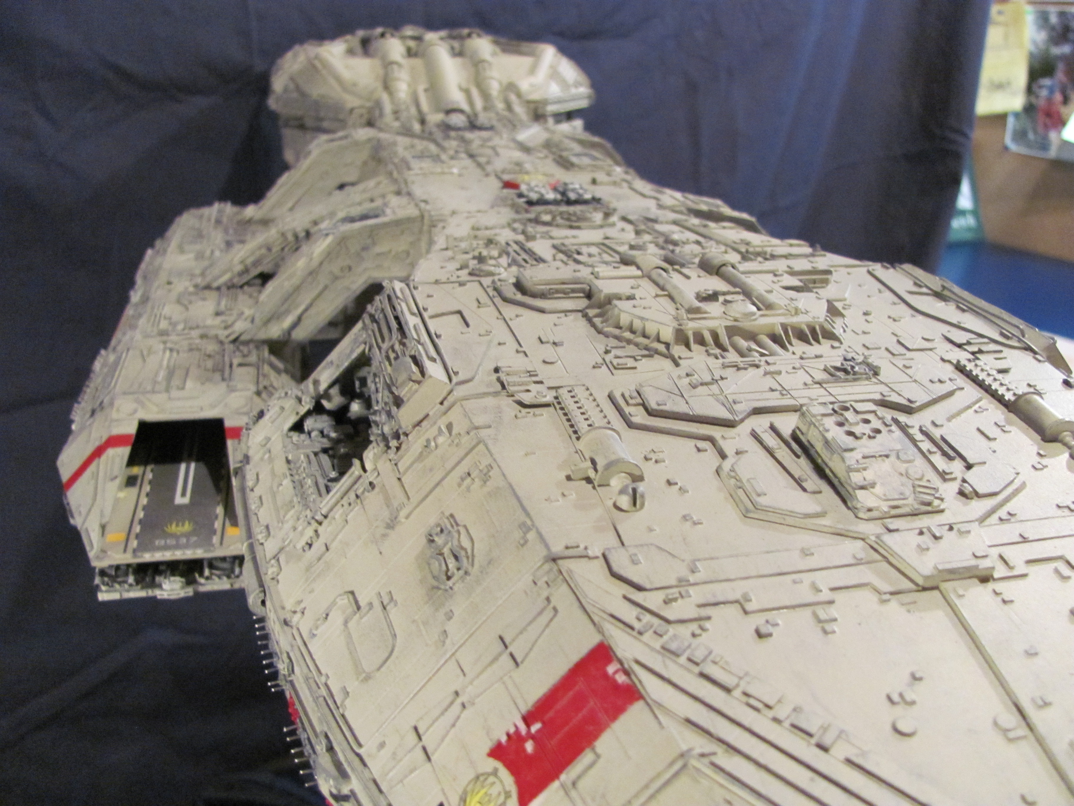 She’s a hybrid between the old and new series and is 3 feet long, scratch built. The decals are custom by JBOT, who did a great job, I think. Note the main gun mounts, the AA mounts, the upper deck missle launchers and the side launch bays?