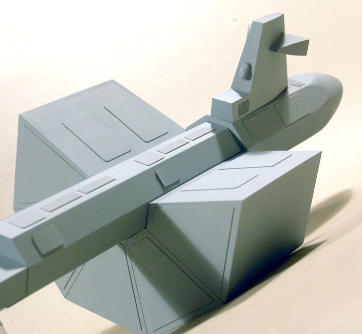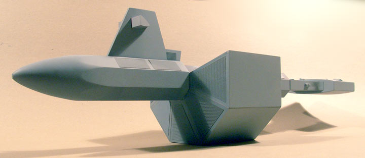 This was a kit mastered and offered by Atomic City around 2010, showing here on Modeler Magic back then as KIT ALERT, and selling for $205 USD. The sides of the front part of the fuselage (octagon) are 3/4″ wide. The model is 21.5 inches long.