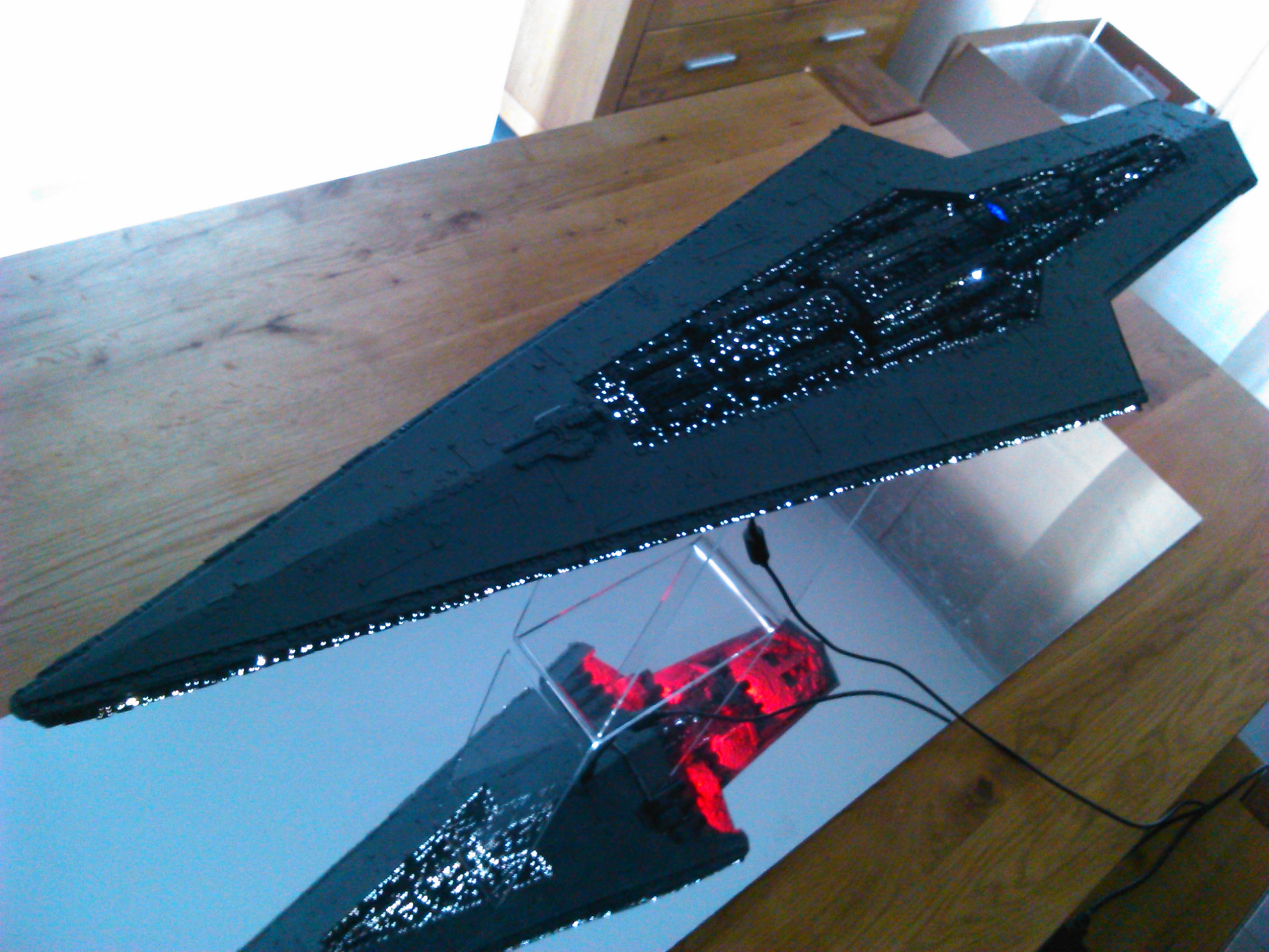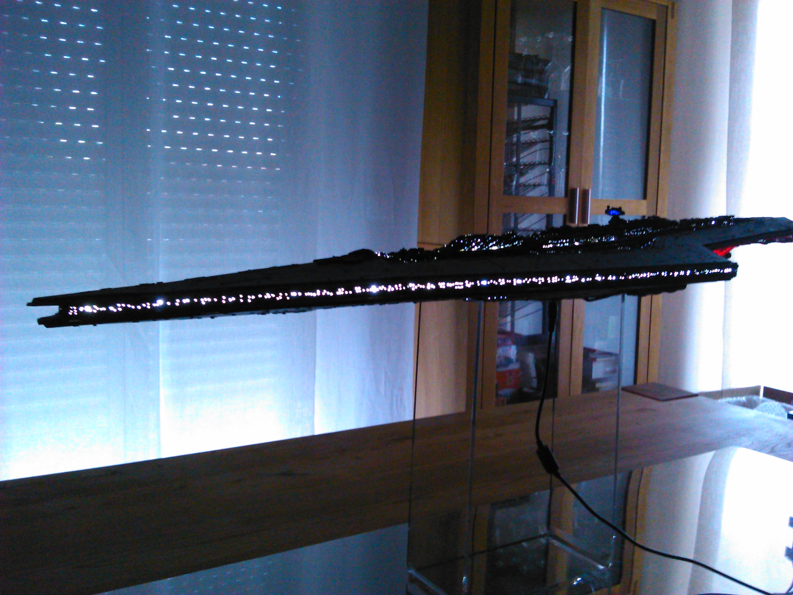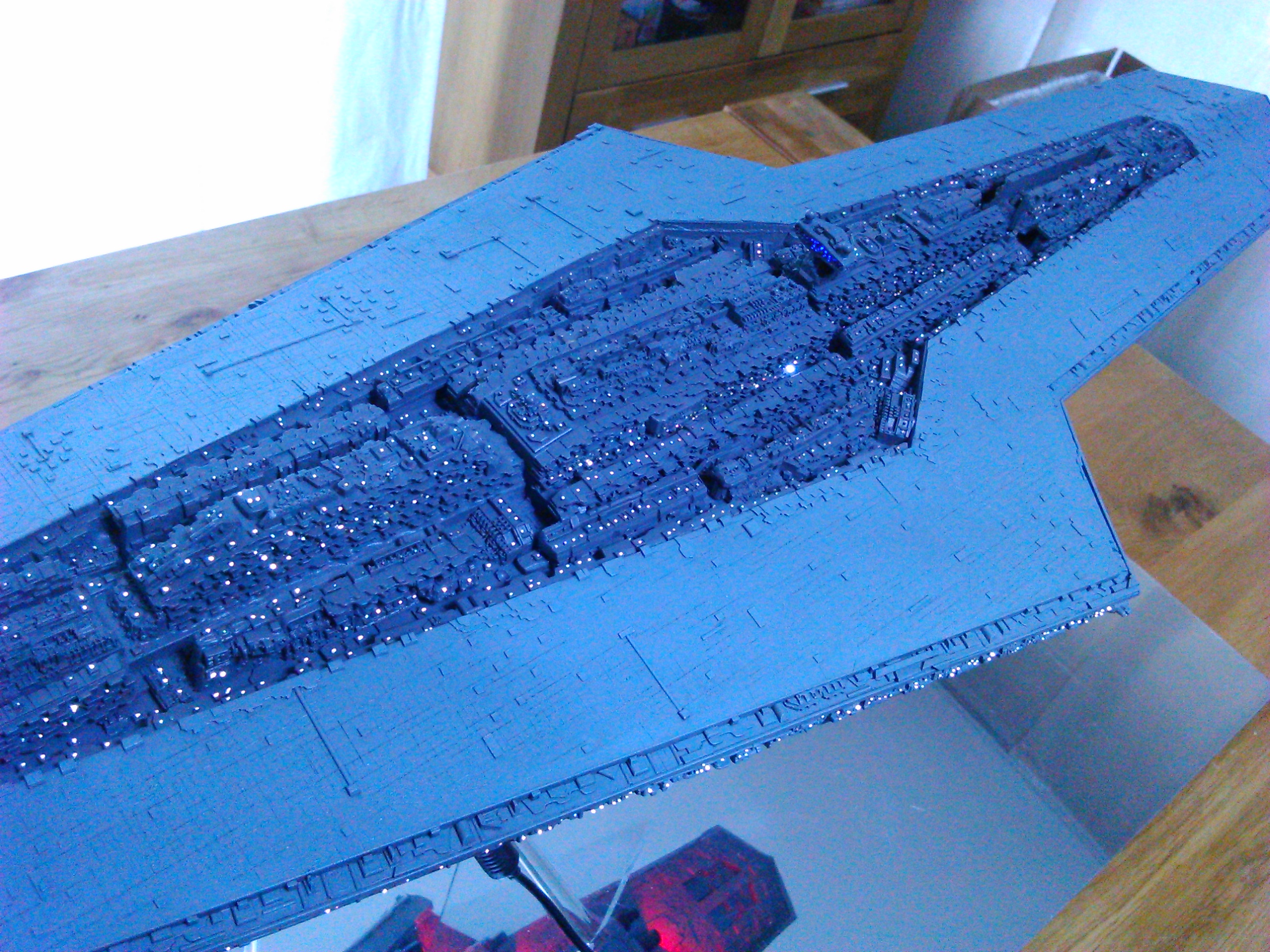 Here is my latest creation, the KORBANTH Super Star Destroyer Executor 1/20000 kit. The Light-Up consists of 800 optical fiber, the imperial blue paint job is a personal creation. The paint job was the panel lines and finish with a matte varnish.