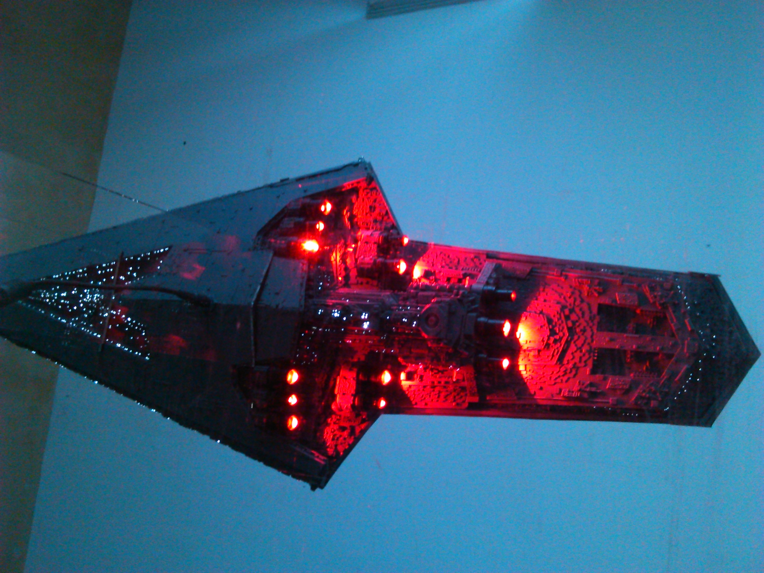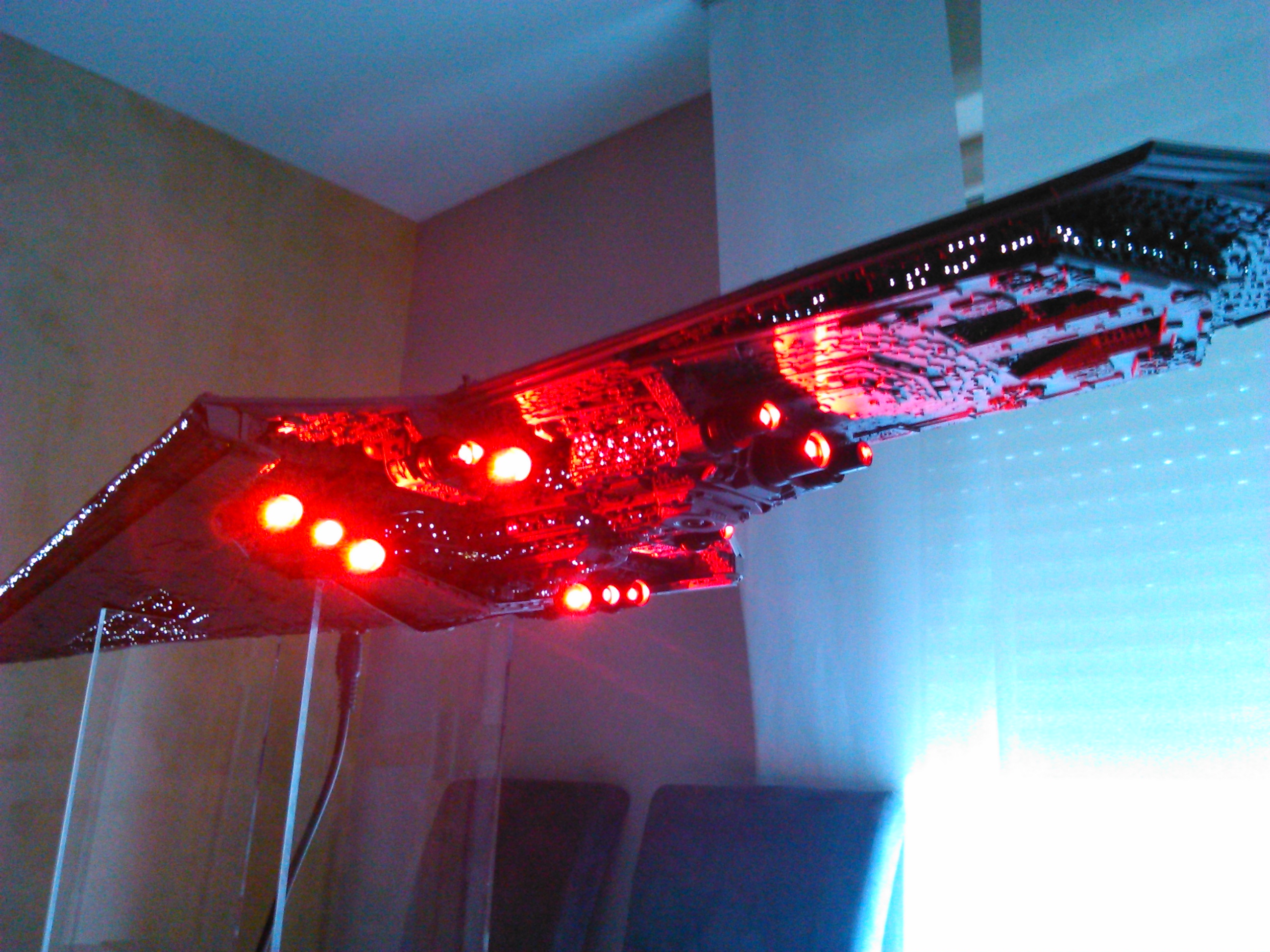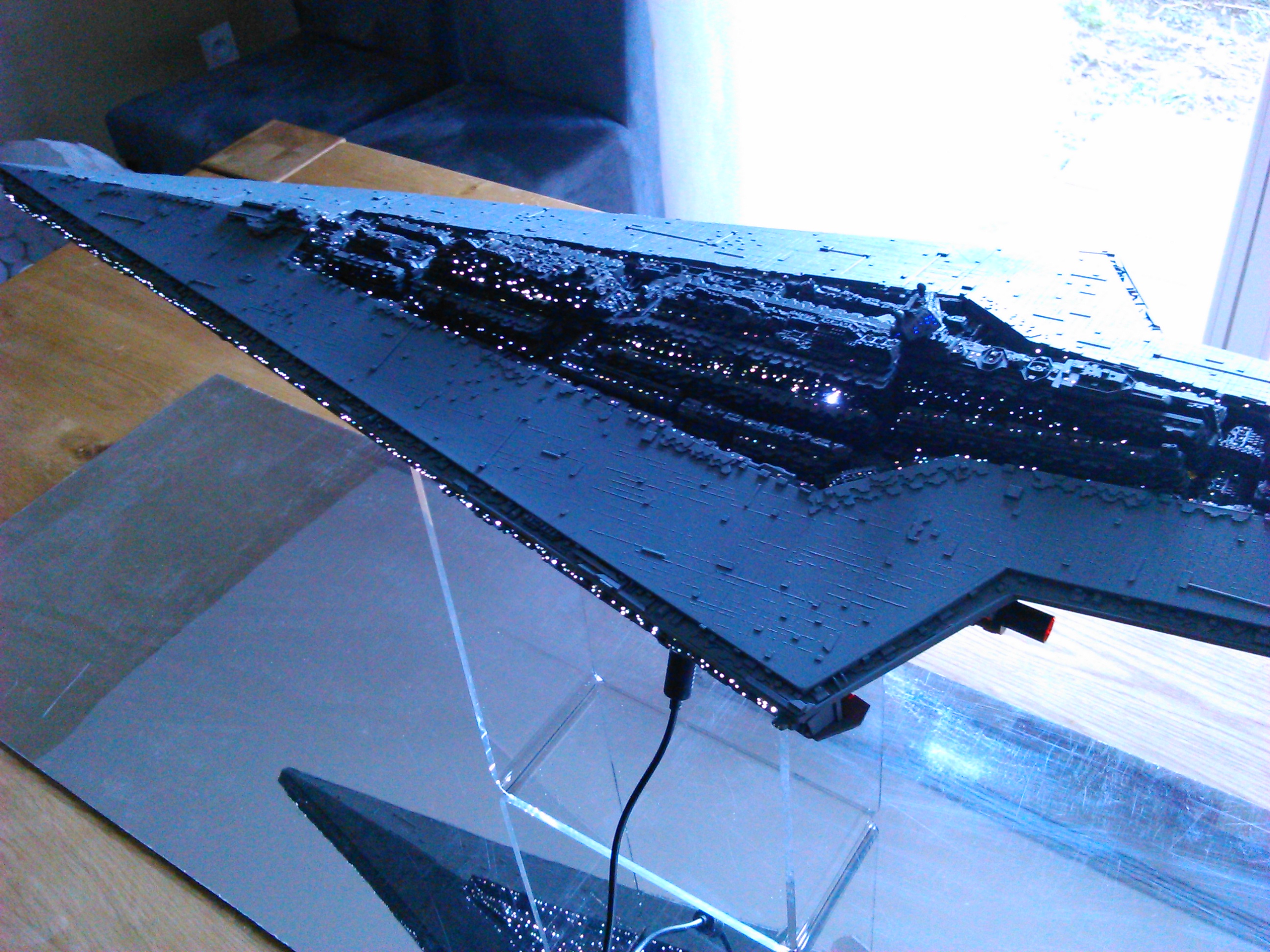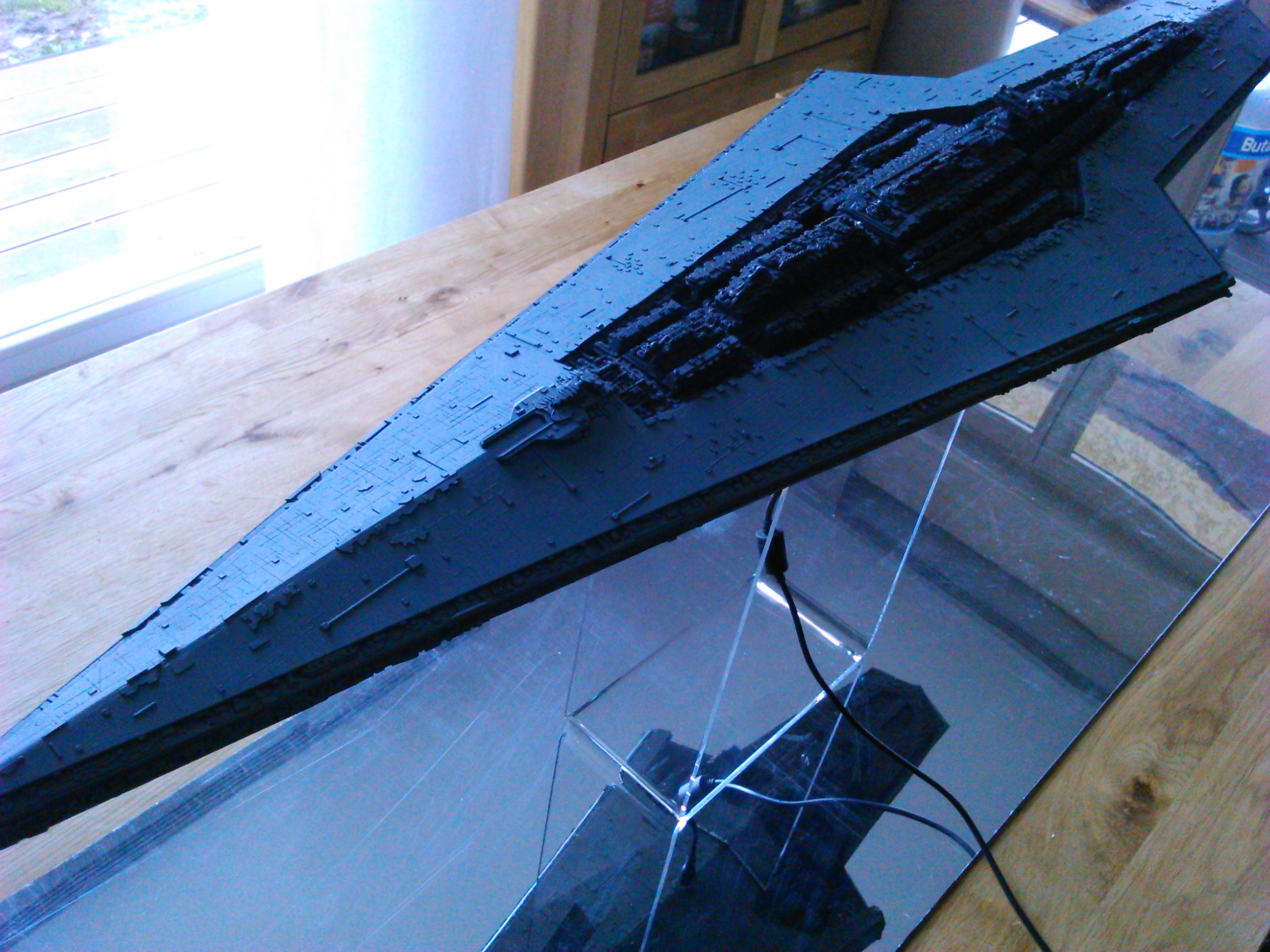 Here is my latest creation, the KORBANTH Super Star Destroyer Executor 1/20000 kit. The Light-Up consists of 800 optical fiber, the imperial blue paint job is a personal creation. The paint job was the panel lines and finish with a matte varnish.
