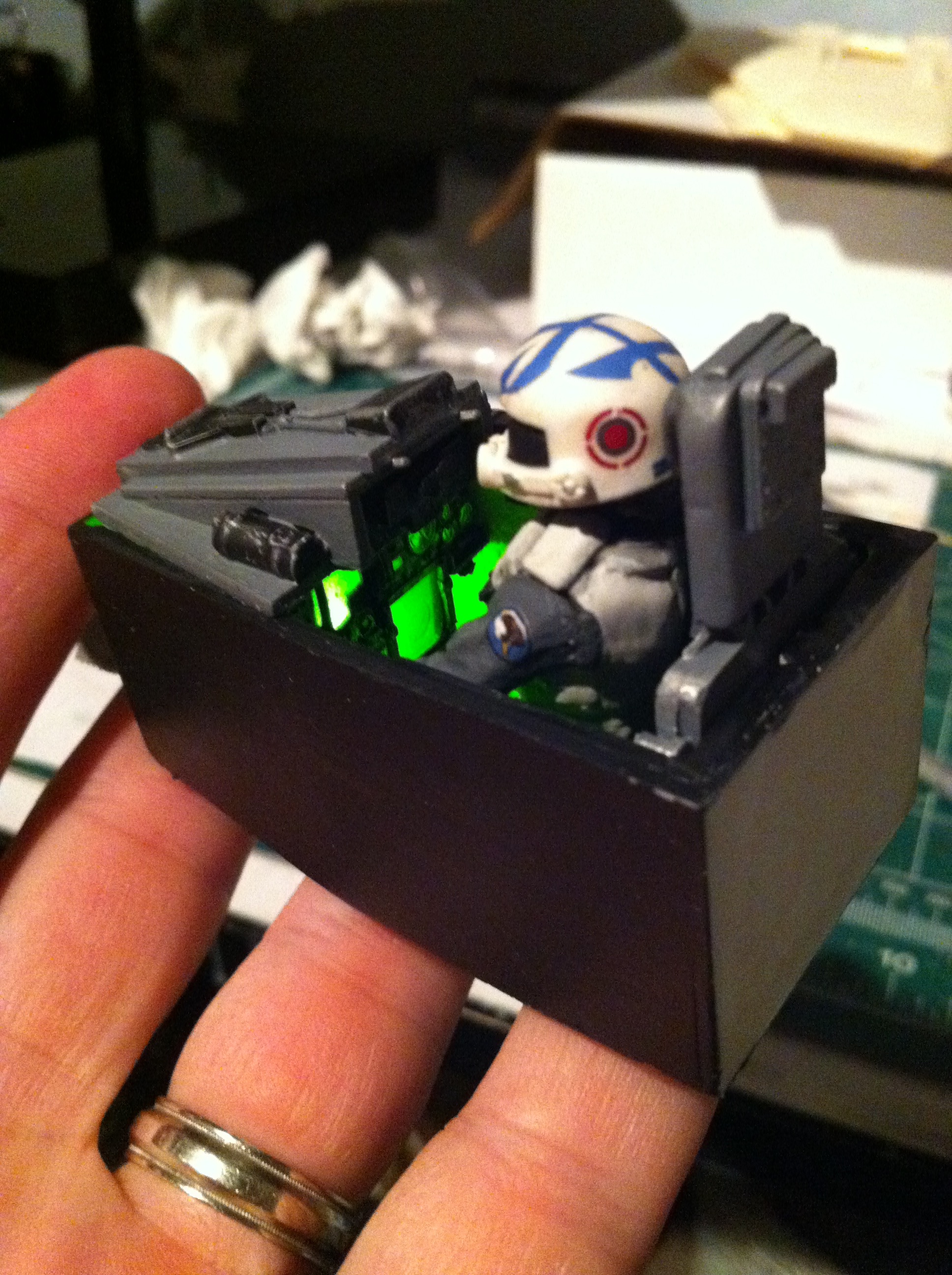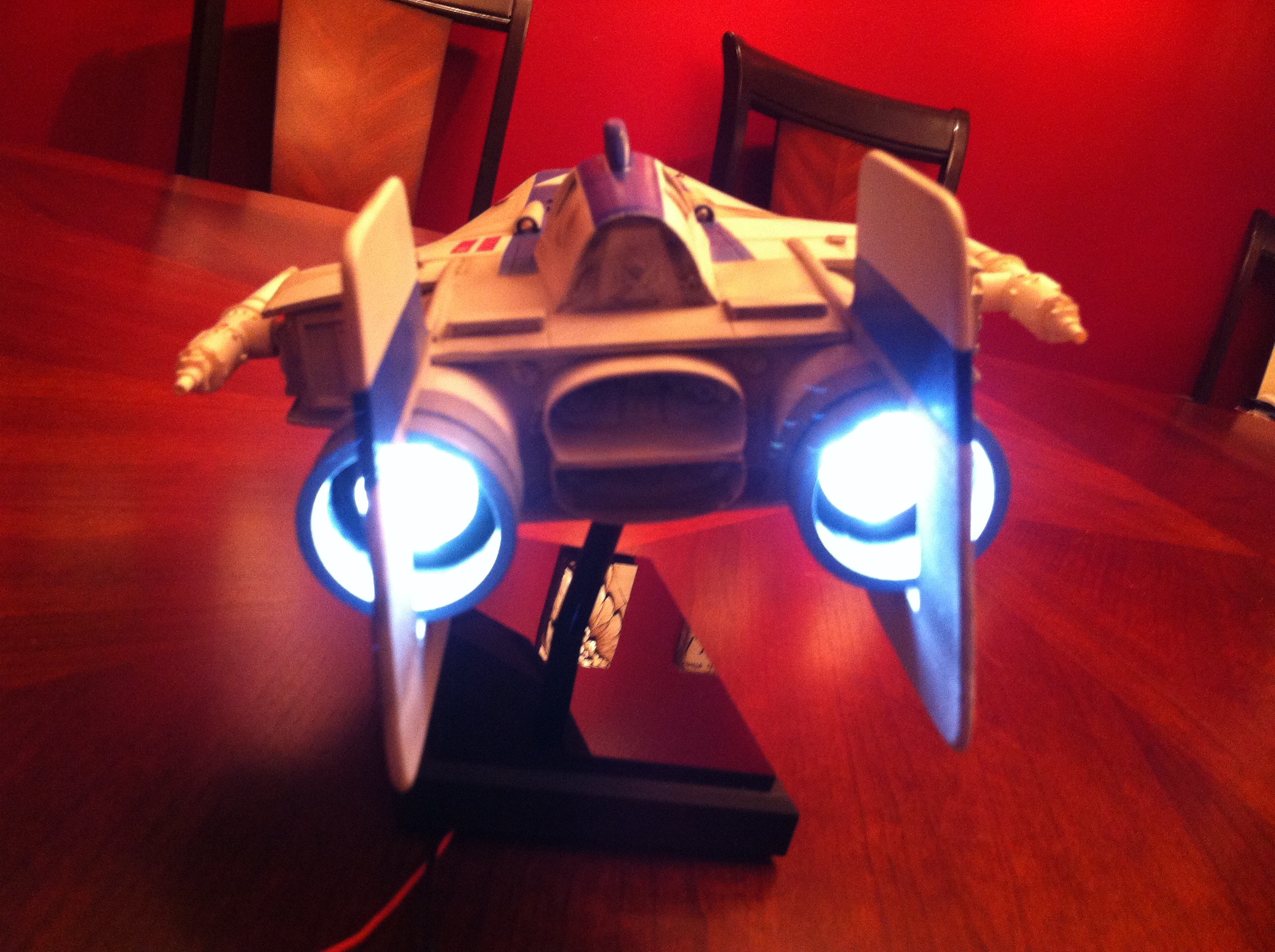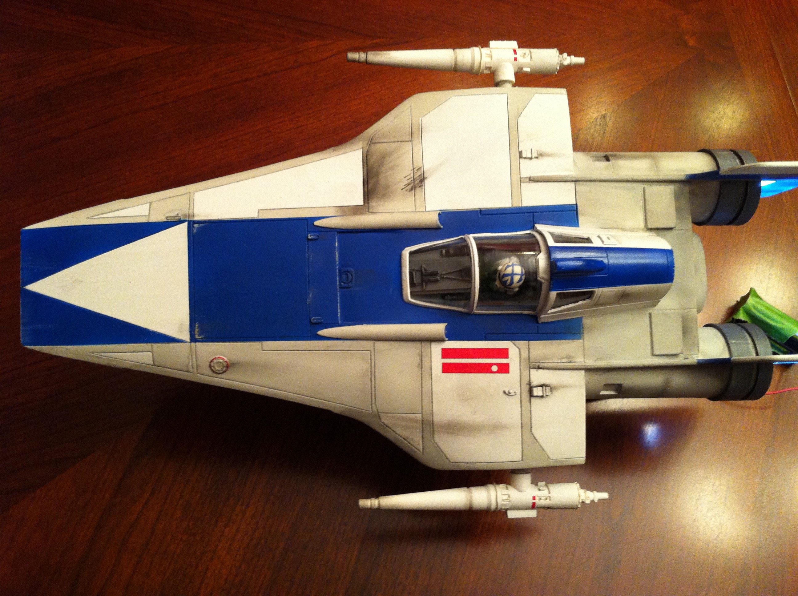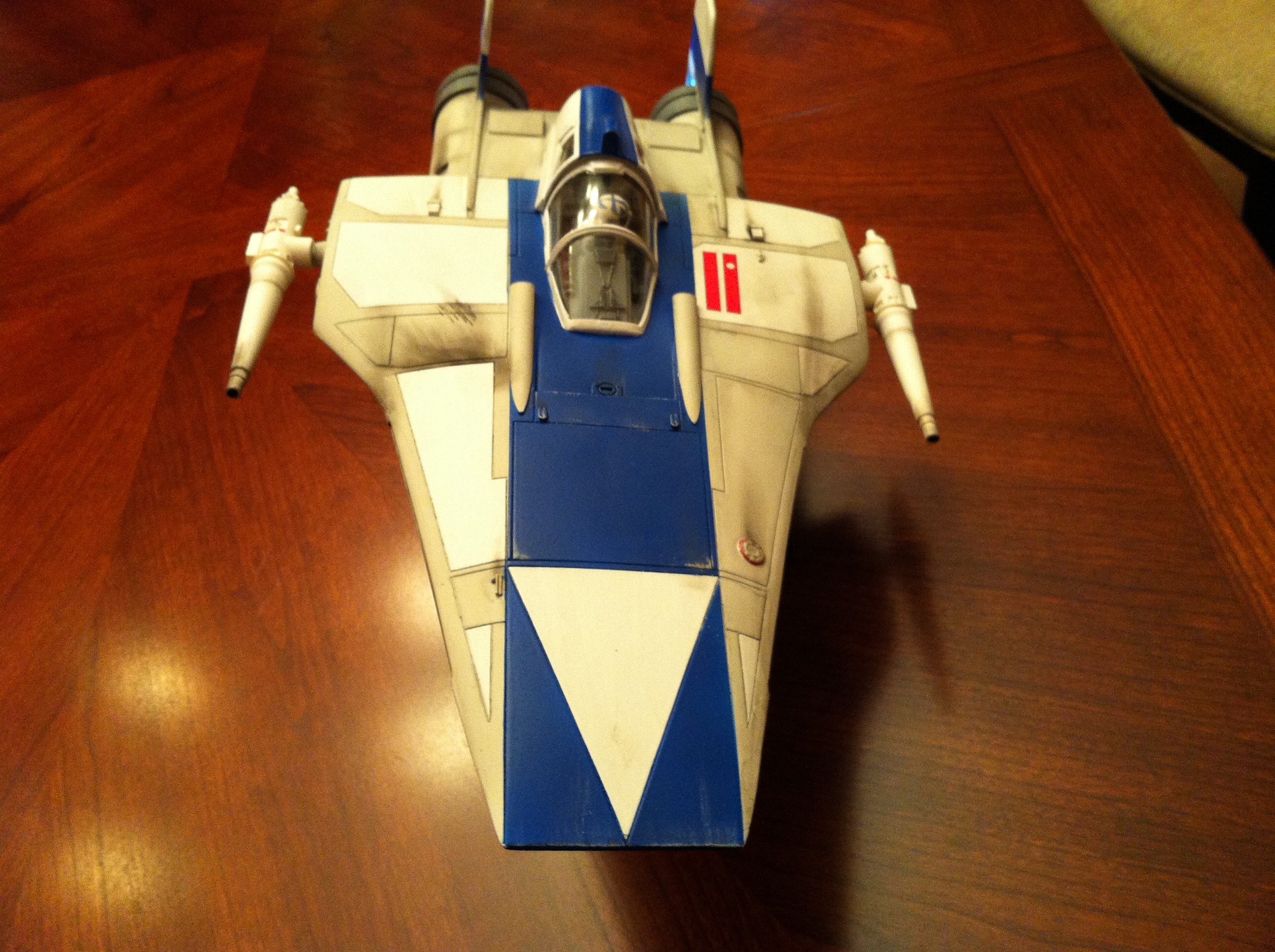 Here is the Ralph Mcquarrie A-Wing Concept. It’s in 1/24 scale and measuring about 16” long. Lit with LED’s and weathered with pastels and airbrush. A simple but elegant design and easy to build. Hope you like it.