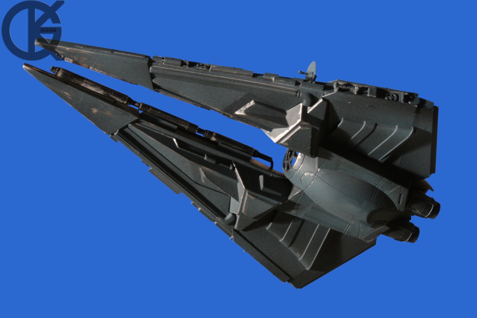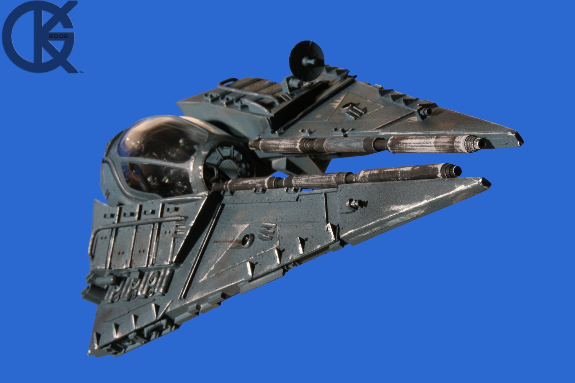 Nearly a decade ago in 2008, Scottish artist, and pattern maker, Barry Murray made his own, fantastic ETA Fighter design! Custom crafted from another model, Barry designed this piece to go along with a Hyperspace Sled. He masterfully crafted the fighter to connect via the engines with magnets strong enough to hold the entire craft! His design was based off what he believed Darth Vader’s ETA Fighter would have looked like soon after he was encased in his dark armor, and during his search to destroy the remaining Jedi. I was able to photograph this piece back in 2008, and as of 2011, it resides in the Hector Rosales Collection! It is a fantastic, one of a kind creation! I love it!