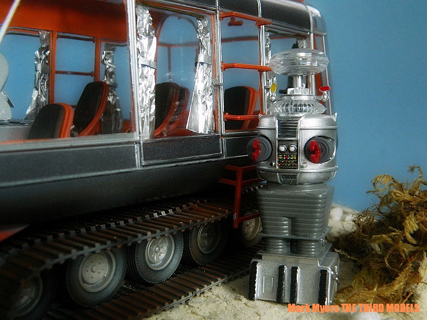 This Model features, A working/sliding upper bubble hatch, scratch built Laser Rifle Rack, scratch made curtains that replace the kit supplied parts, Photo etch and decals from Para Grafx, Scratch built Diorama base depicting the Robinson’s Planet Priplanus from the first season.High Regards,