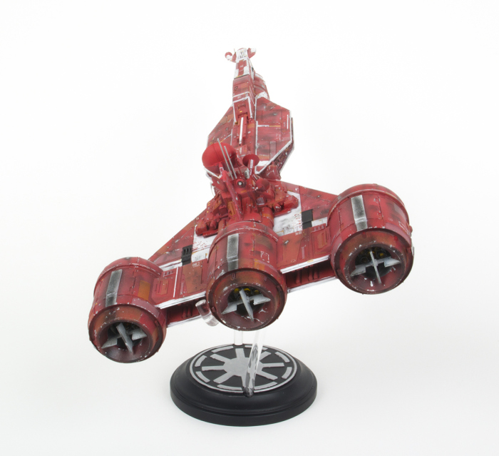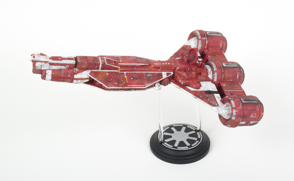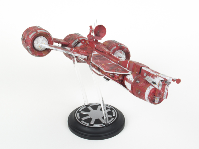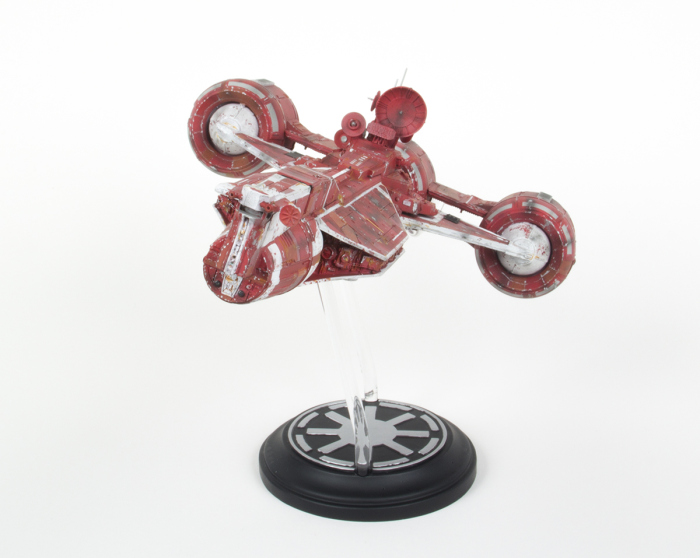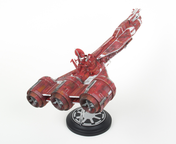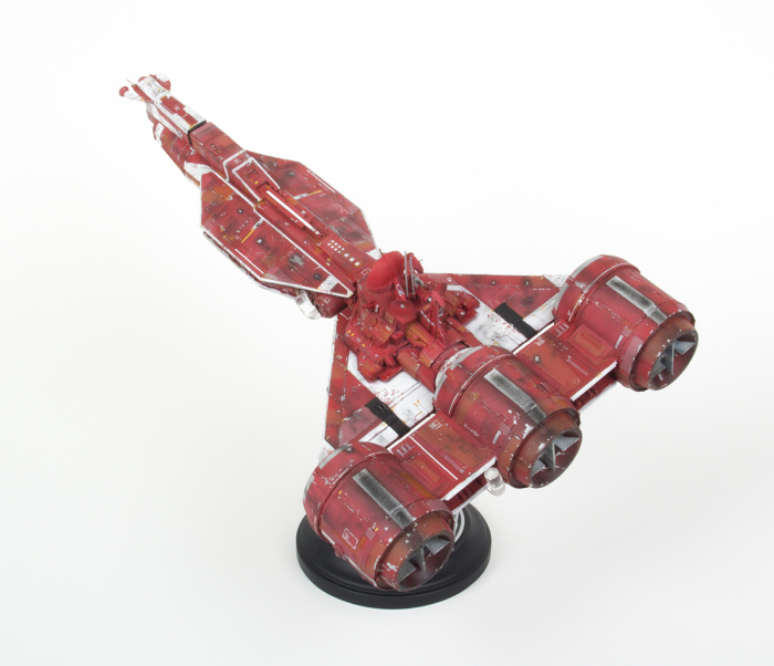 Built using extensive studio model photograph references. Additional photo etch details added. Antenna array piece hides magnetically sealed battery compartment. White stenciling is all dry transfers. Weathering is a mix of MiG rust, Tamiya pigments, silver paint marker (applied with toothpick) and various shades of panel washes. Watch out for it at Wonderfest 2014!