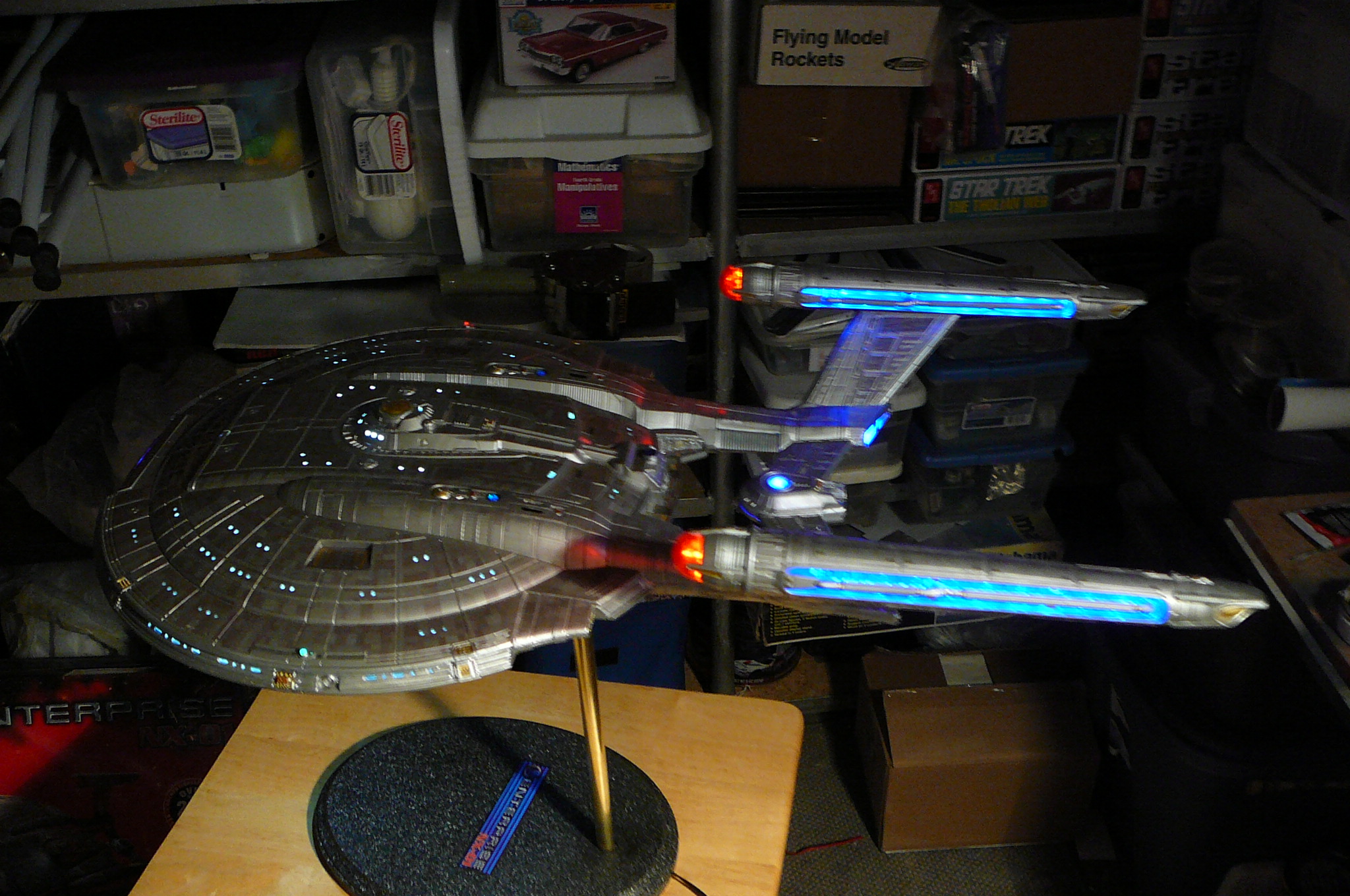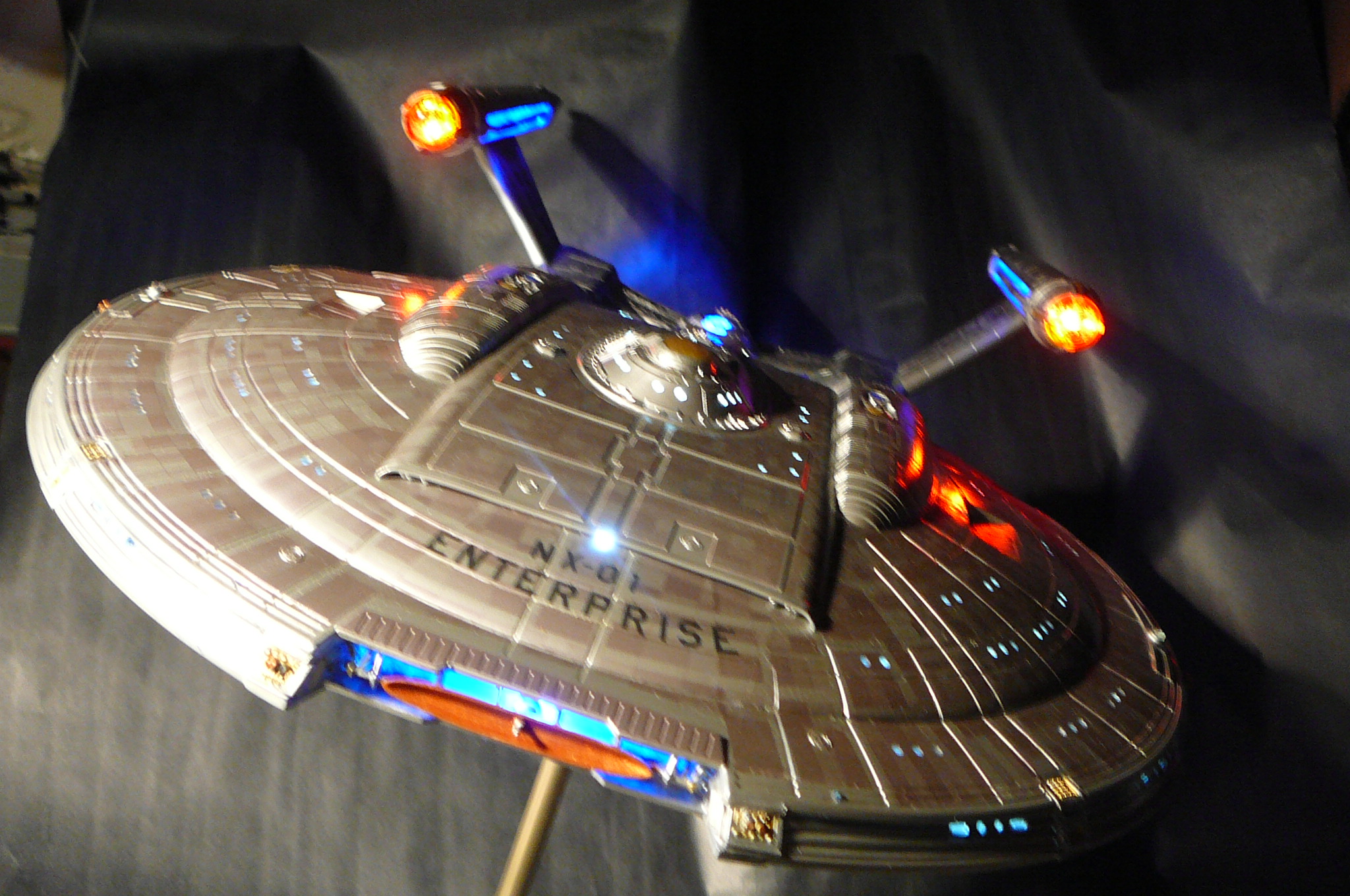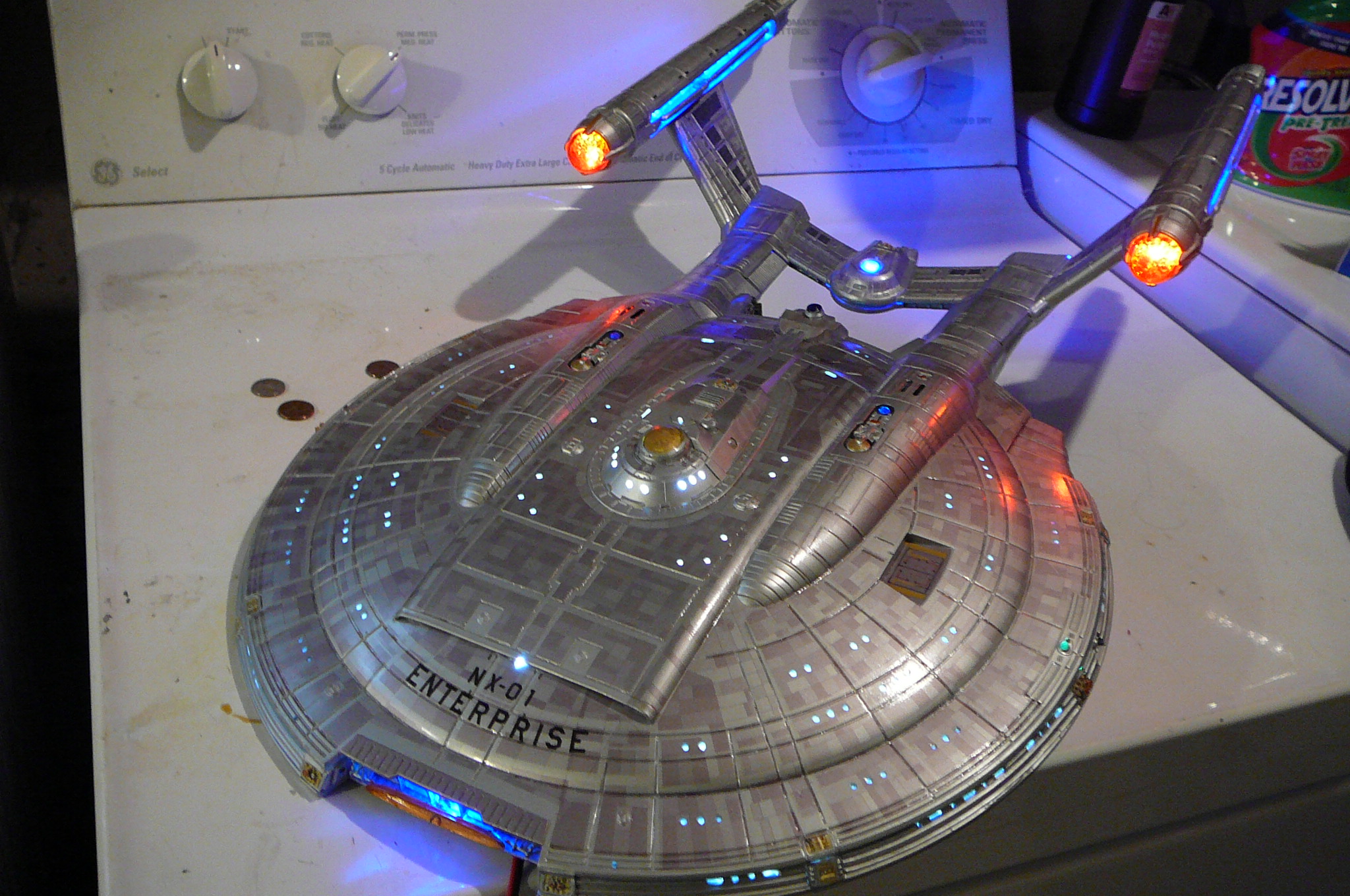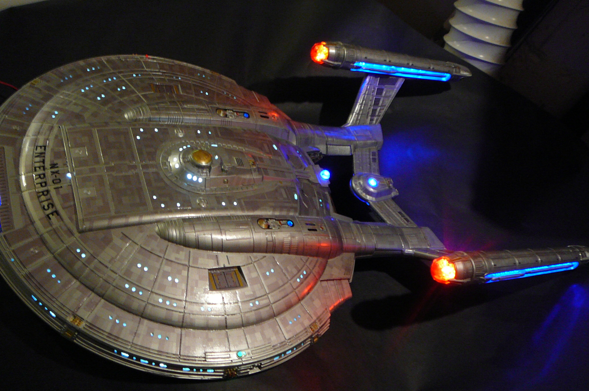 I just finished the NX-01 Enterprise 1/350, another commission build for Curtis Hughes Collection! This one took 3 months to complete. I used the aztec decals set to achieve the panel colors . The lighting kit used was from EVANS LIGHTING. Hope you like it!