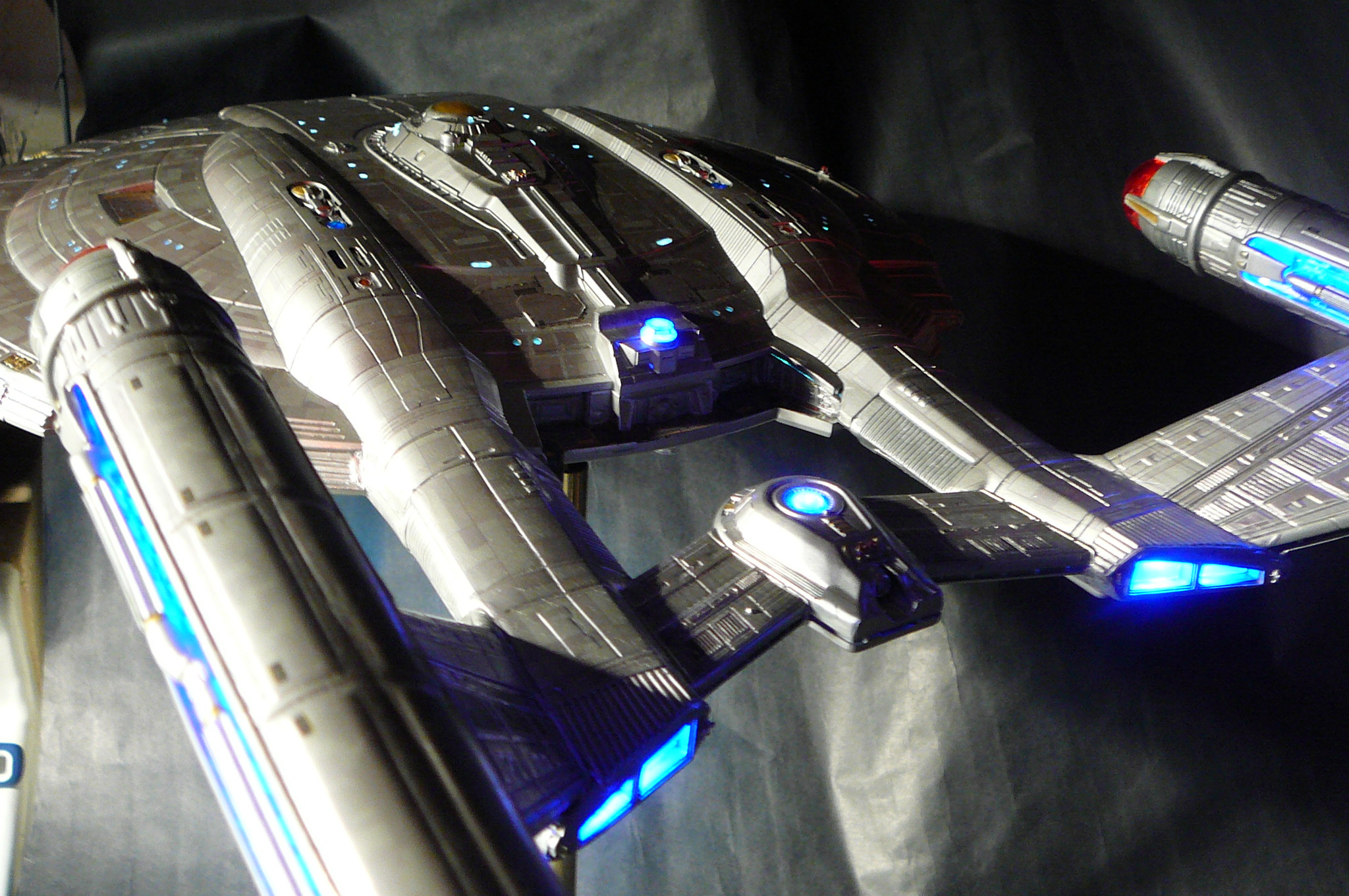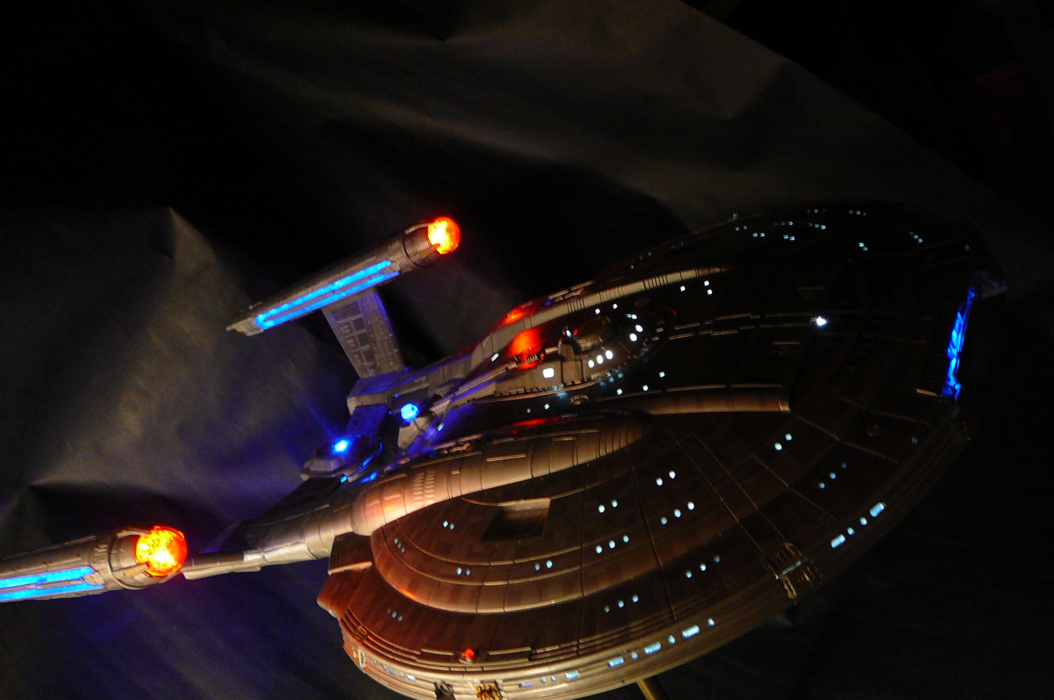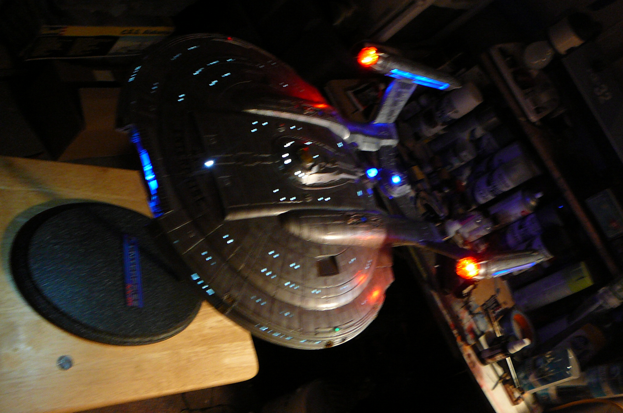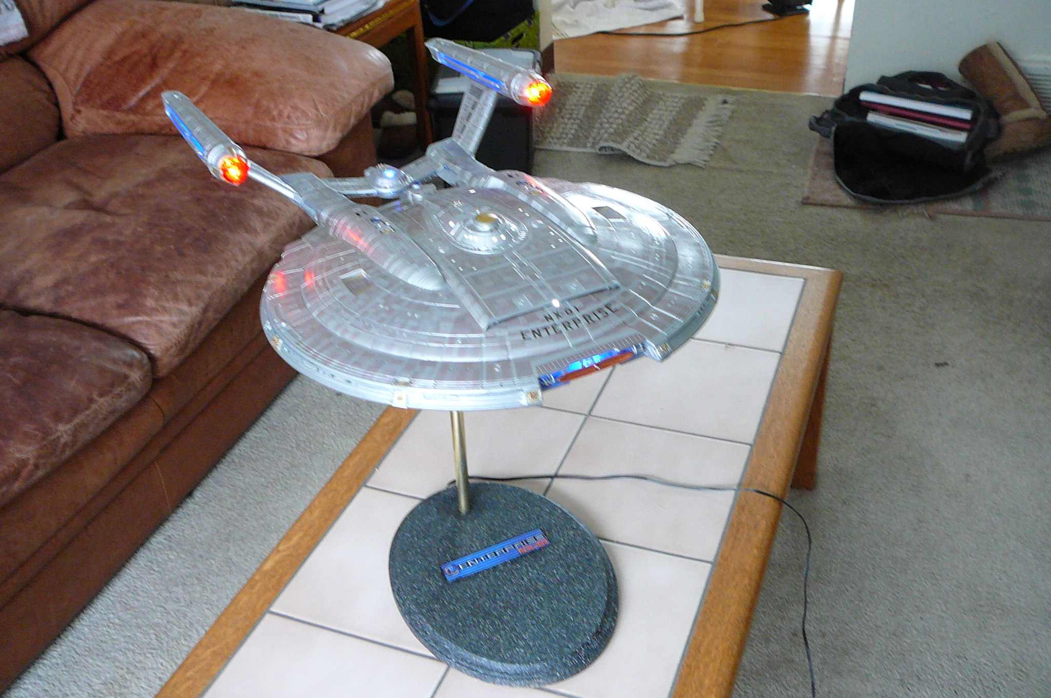 Ahh the NX-01! This is a design by Doug Drexler that I love! This Polar Lights kit was beautifully built by Steve Carricato of Spacecraft Creation Models for the Collection of Curtis Hughes. Very nice indeed!
