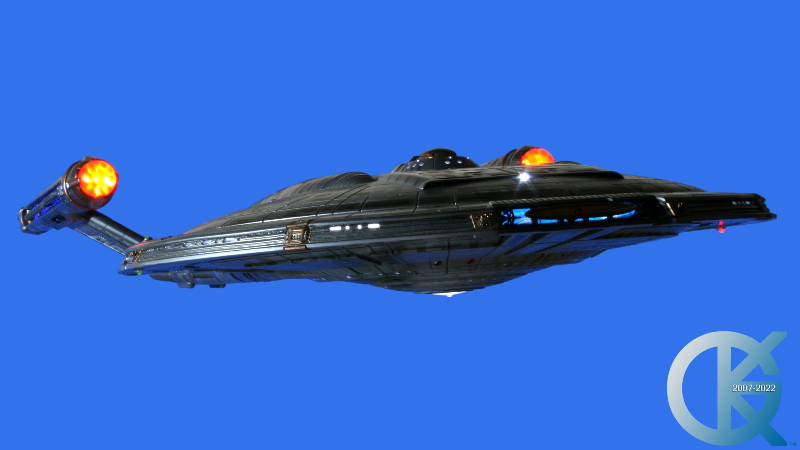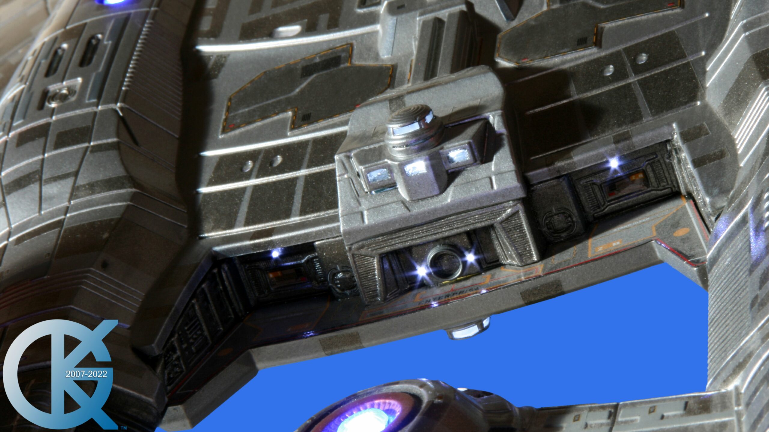 It is hard to believe it was so long ago now, 2004 actually, when Polar Lights first issued the 1:350 NX-01. I was thrilled that they made such a large model. Inasmuch, and the fact my time was challenged, I wanted to make certain it received the best attention to detail… so I called a friend of mine to do the build and effects lighting… an ILM model maker John Eblan. He did amazing work with this piece. Not to mention…. photographing this piece finally in 2007 was a thrill.
