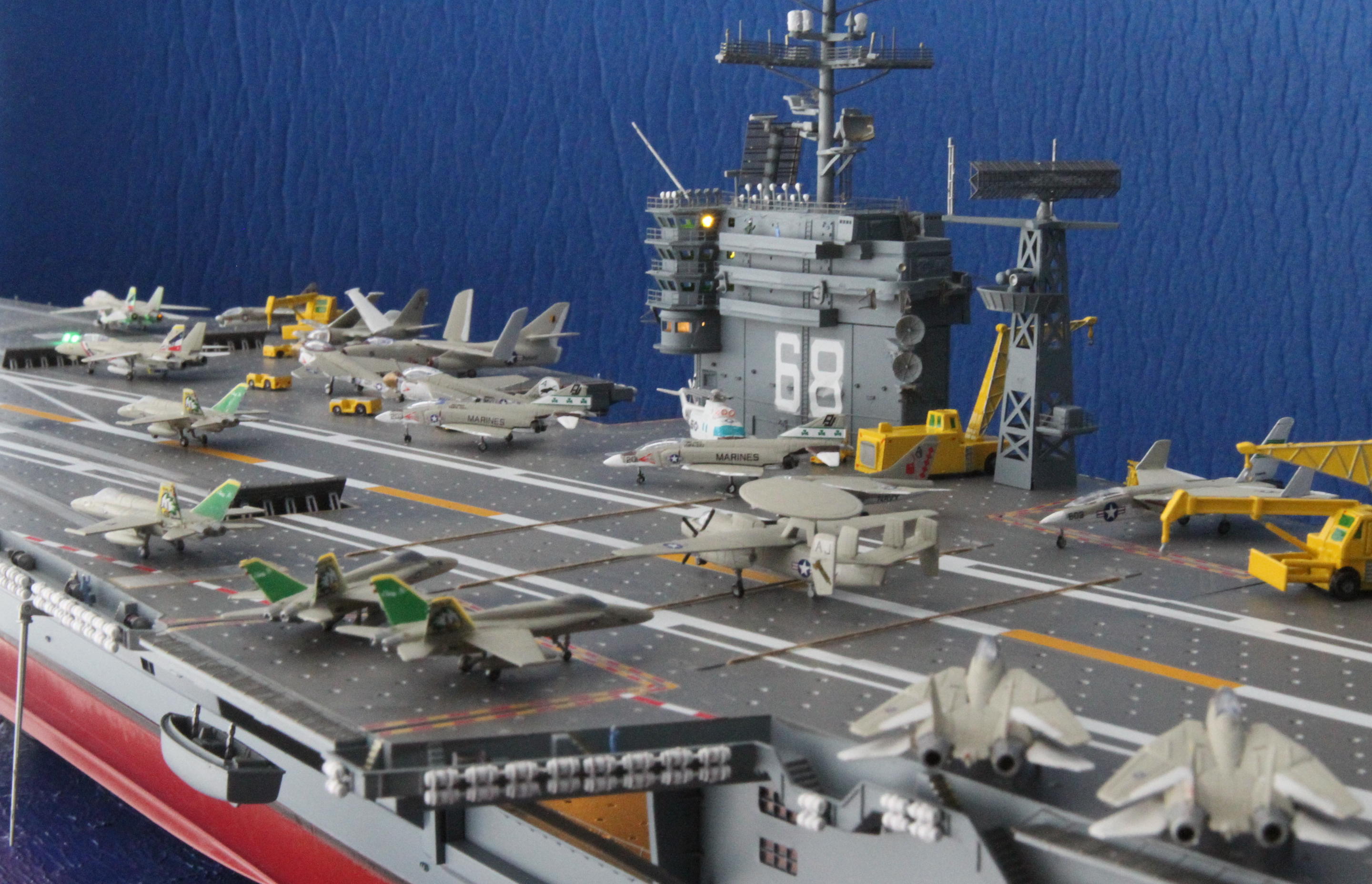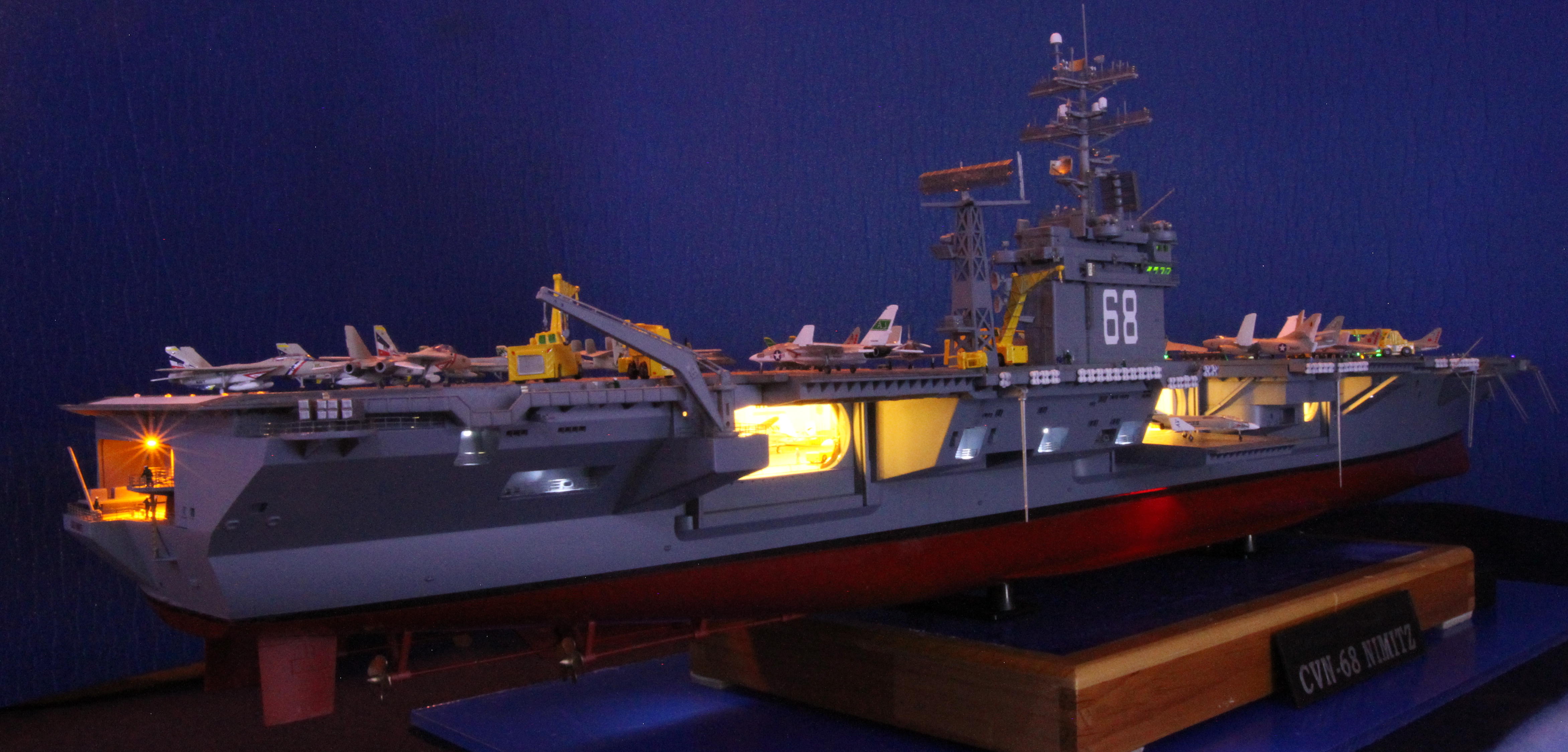 Wow! Dae Choi again delivers awesomeness! This Nimitz Carrier model build (built from the Trumpeter kit) is amazing! I really love this… as I am certain all who view this of whom served, or serve aboard her will.