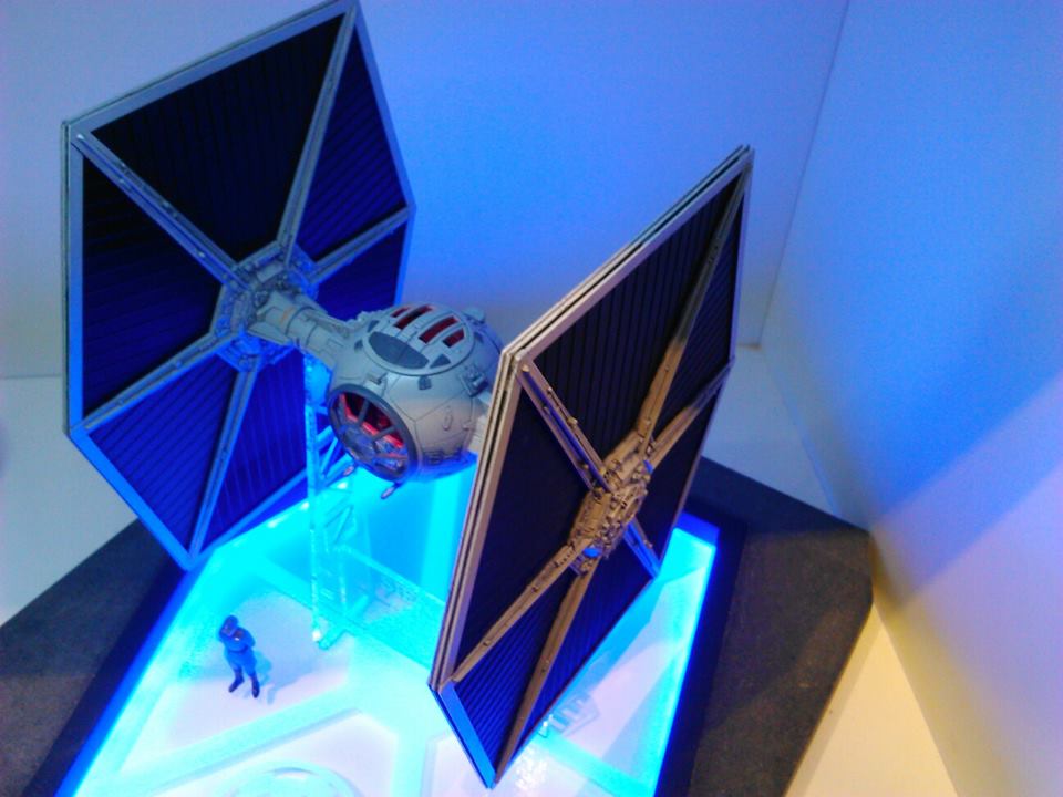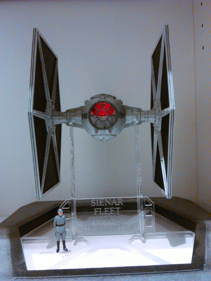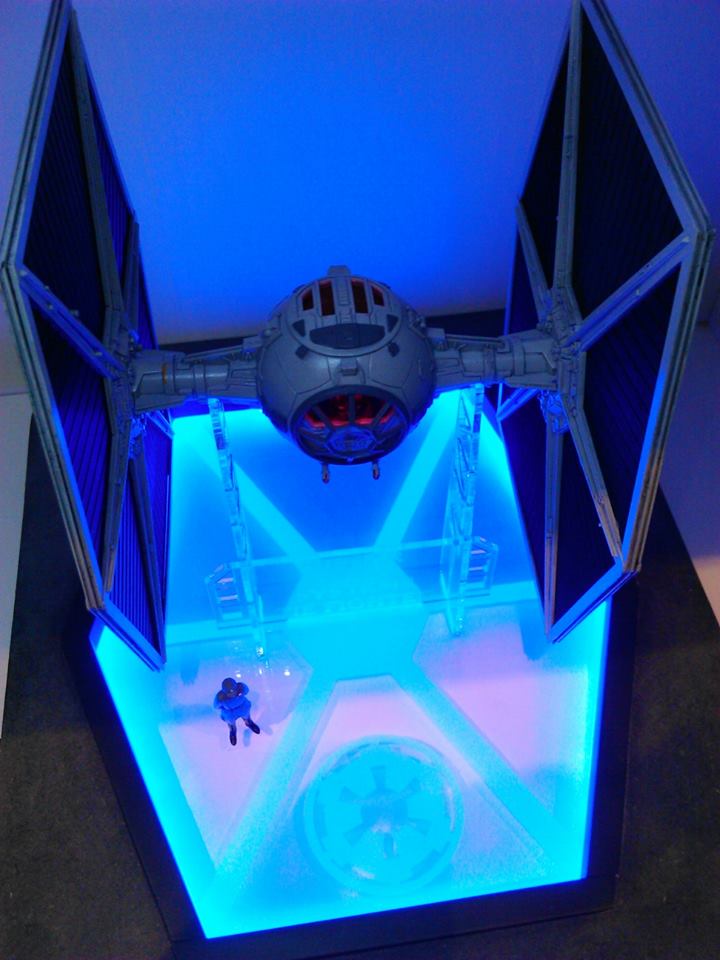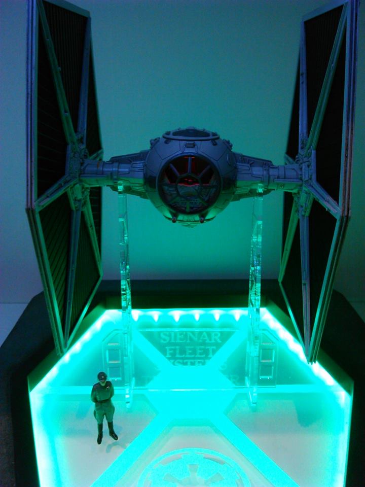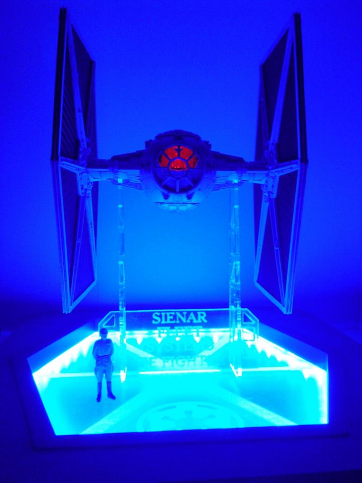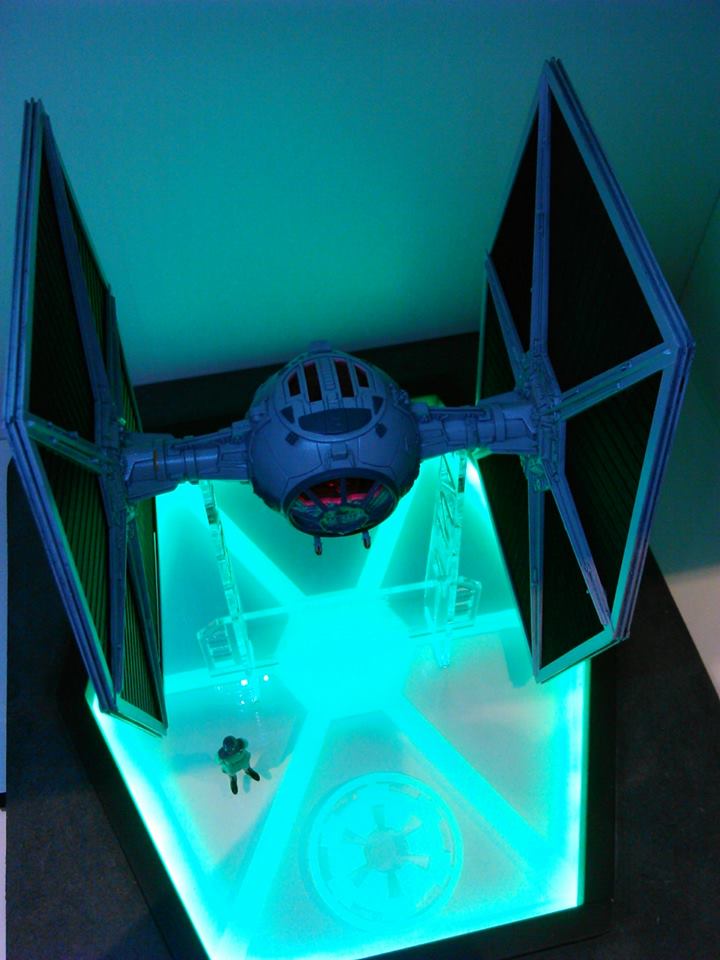 Here is my last realization, I worked from the kit Fine Molds 1/48 of the Tie Fighter, for this project I integrated a light-up wireless power supply inside the kit, the light-up is powered by a button cell Concealed in the kit. The acrylic base is back-lit, 2 colors can be chosen green or blue.