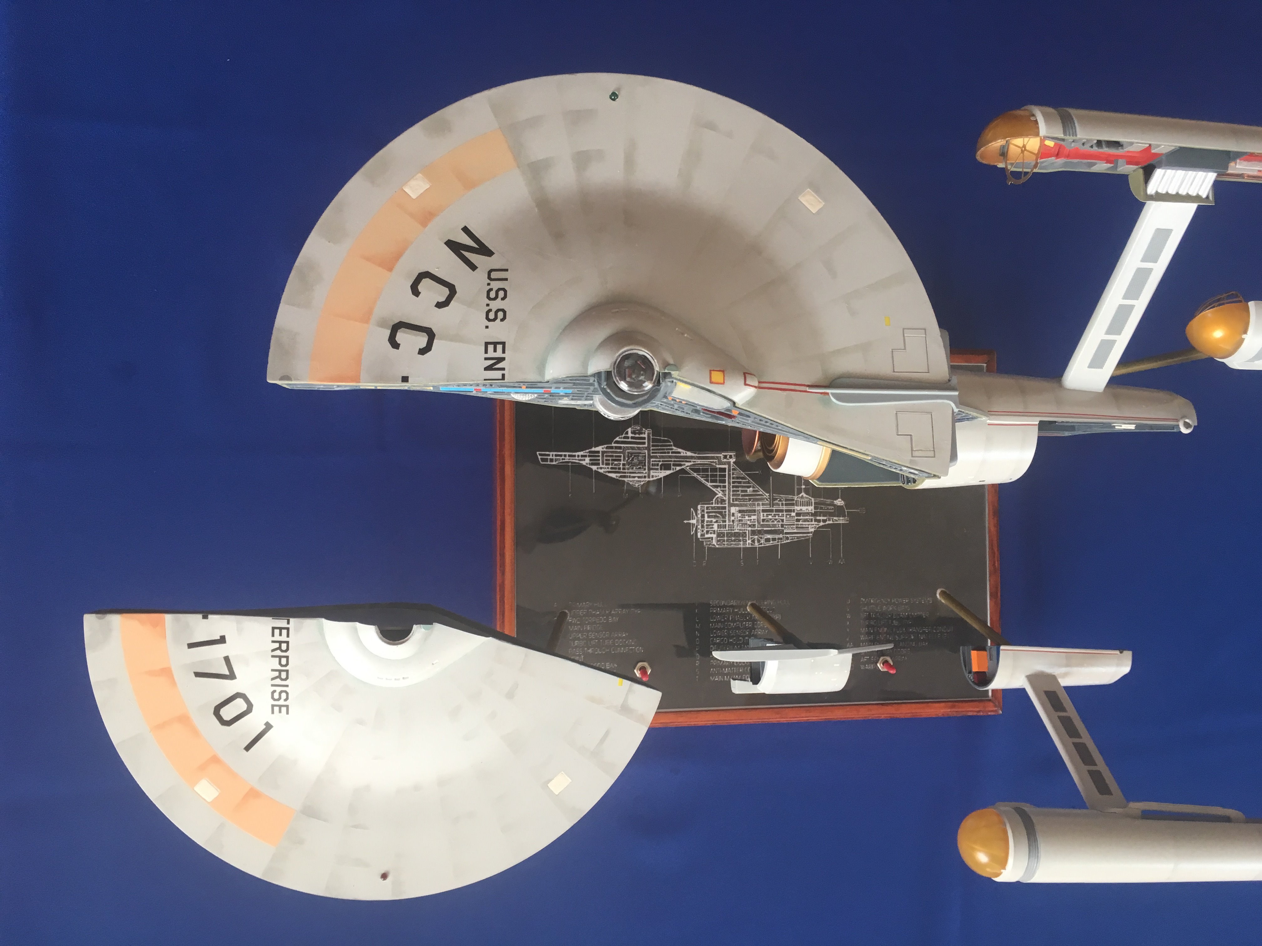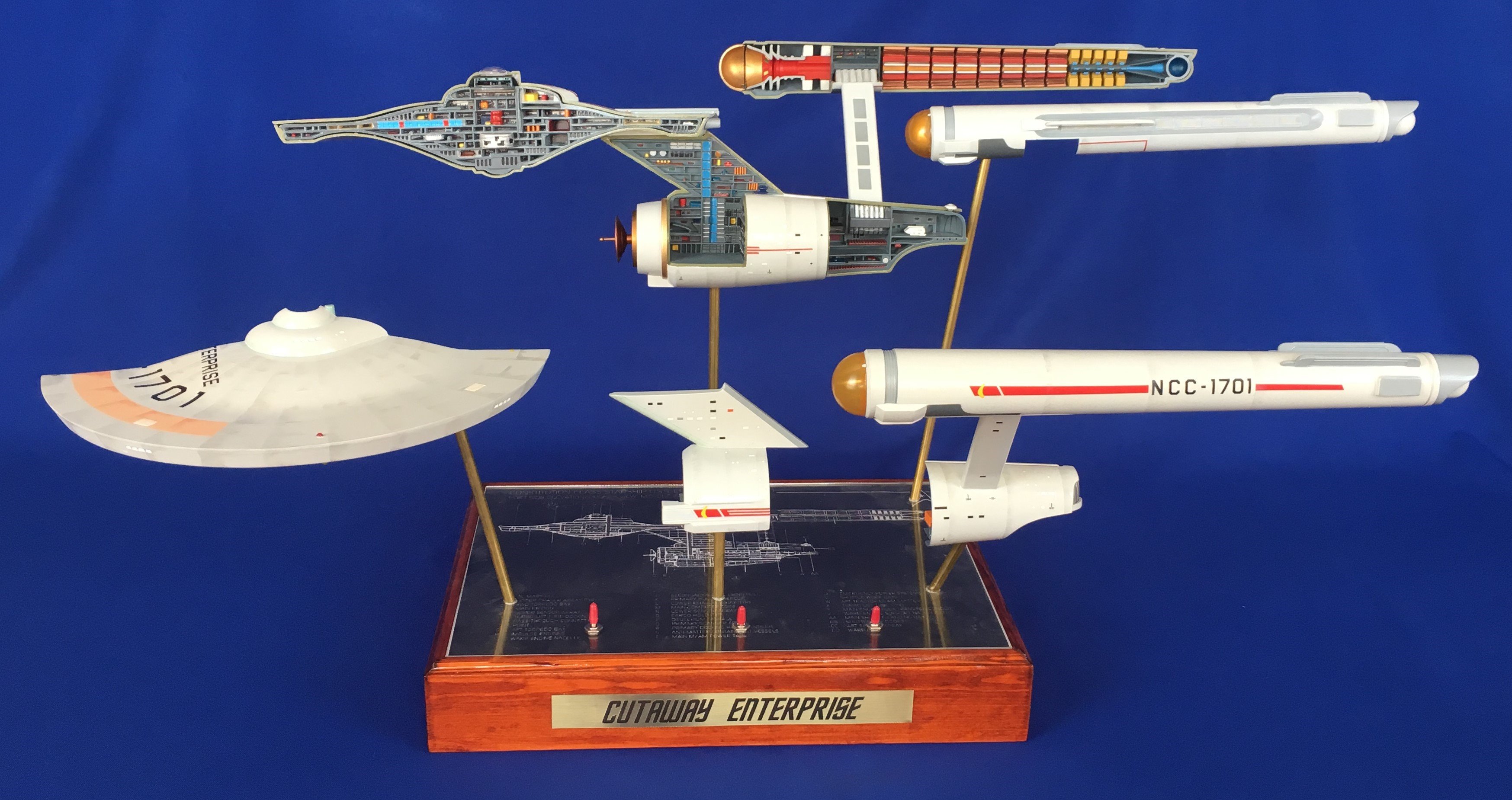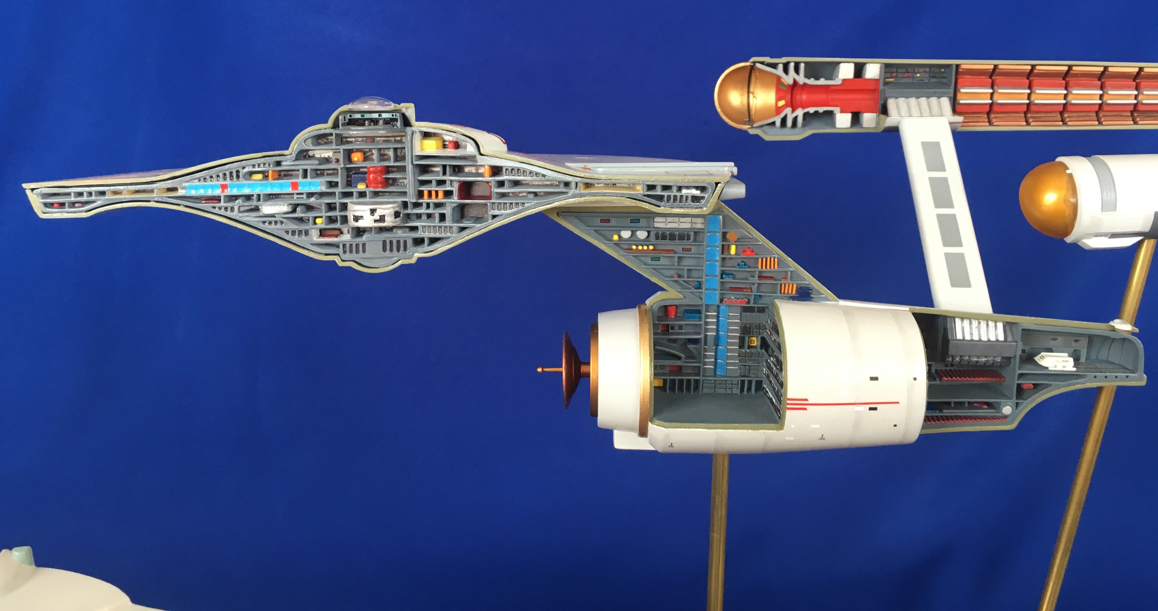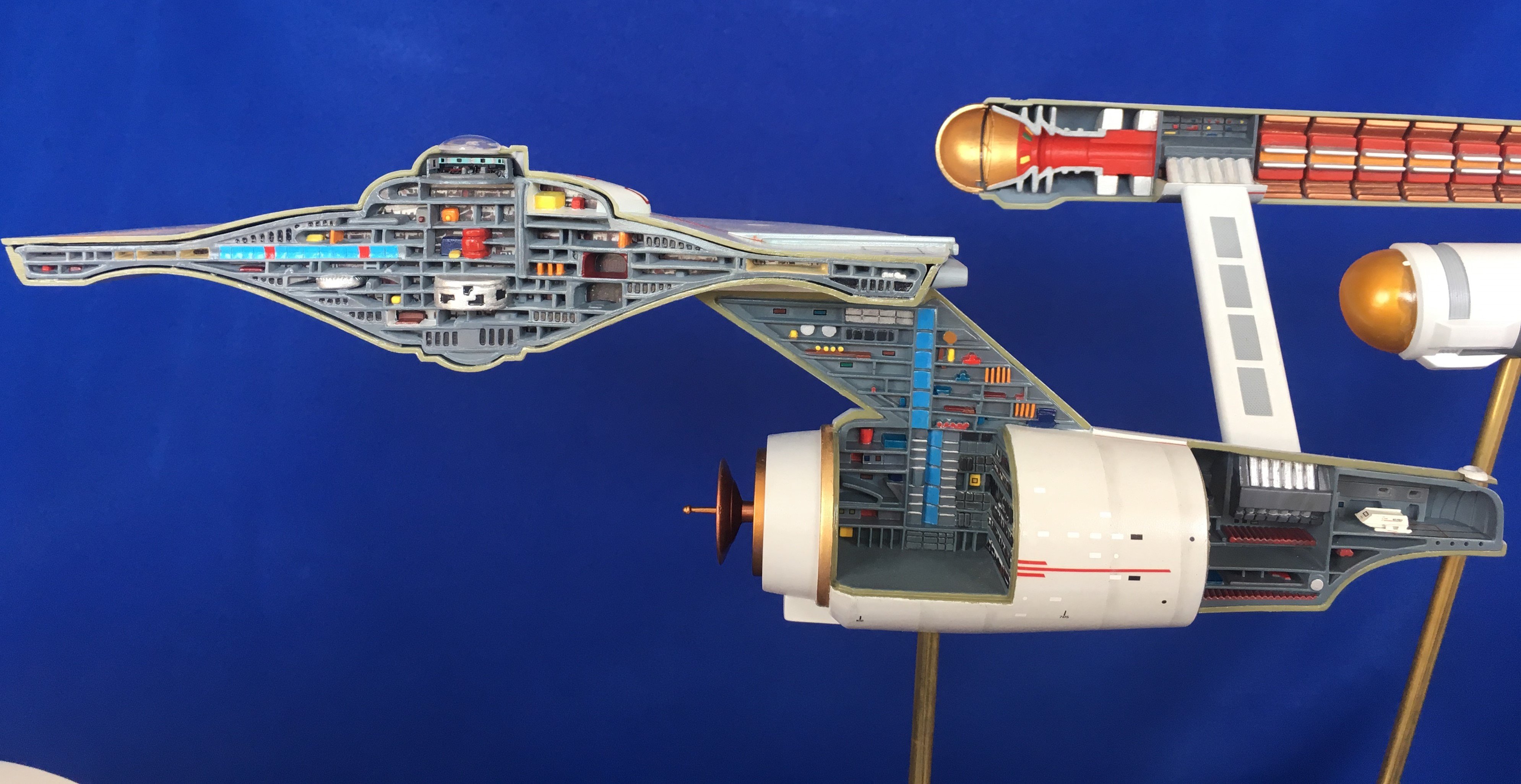 Artist Géza Sági has done wonderful work with this AMT Cutaway Enterprise! It is very clean and has a highly detailed paint job! This artist’s display of this, and the fantastic base, is top notch! I would love to see this done on a 1/2 studio scale Enterprise. Géza, you may have just sparked something in me to make that happen my friend. I love this! Excellent work!