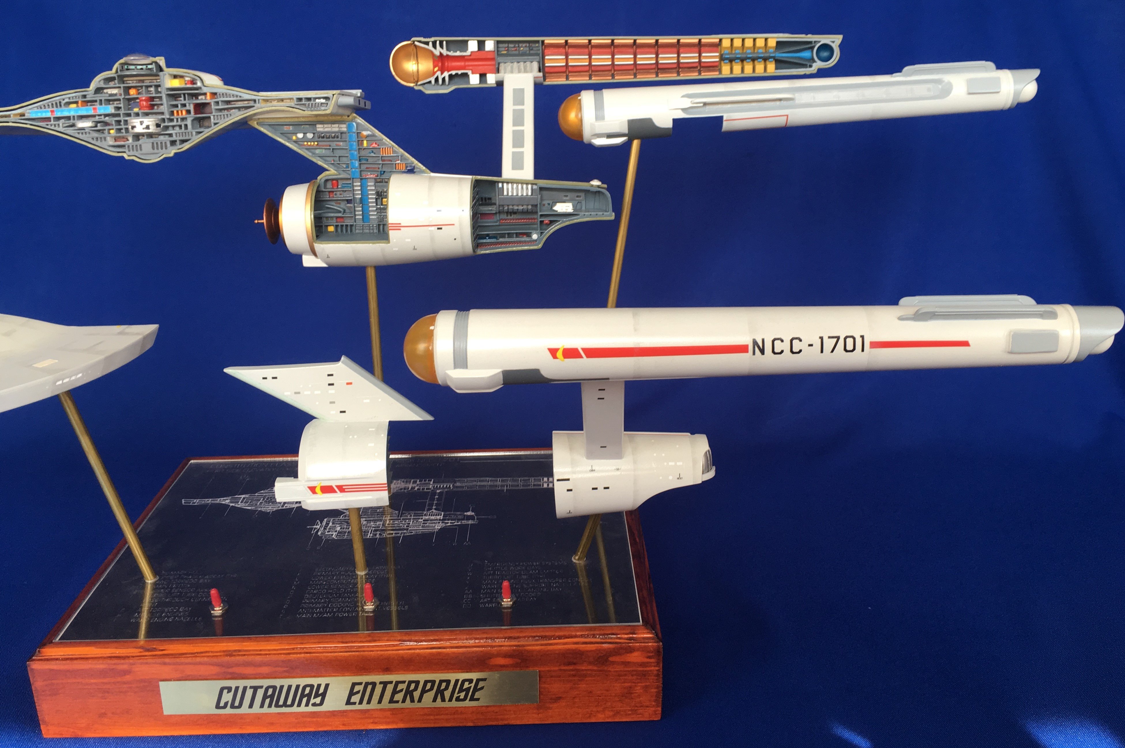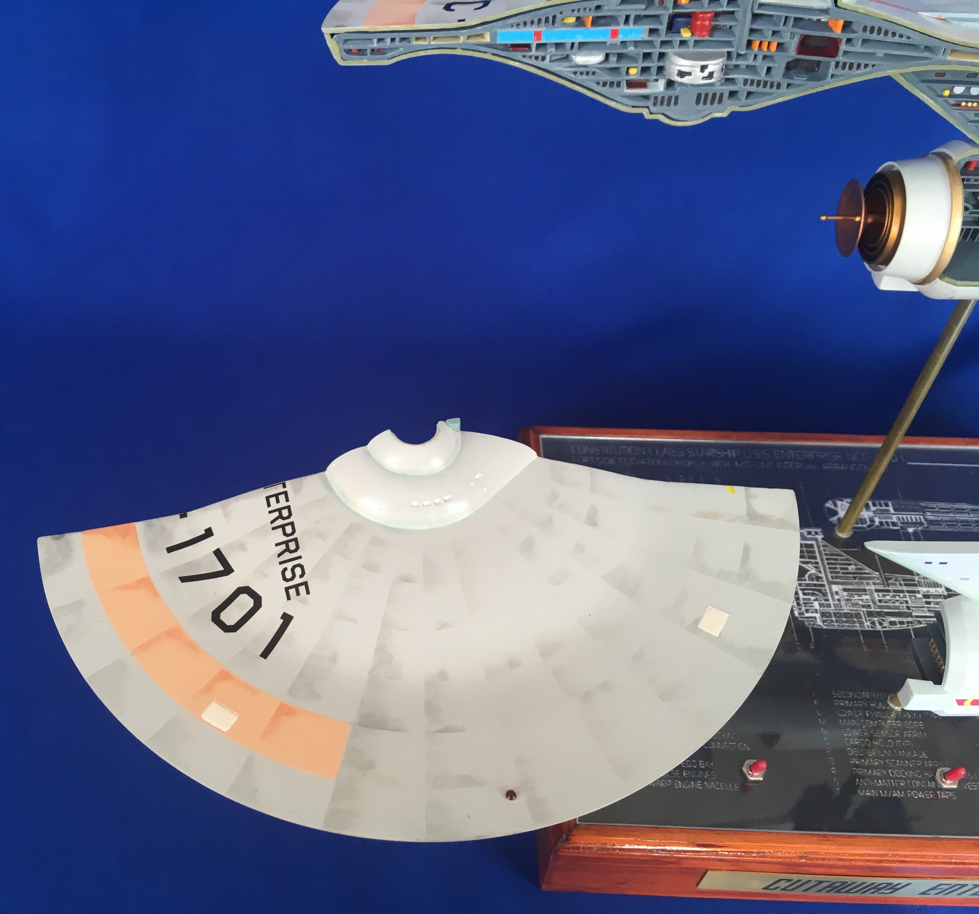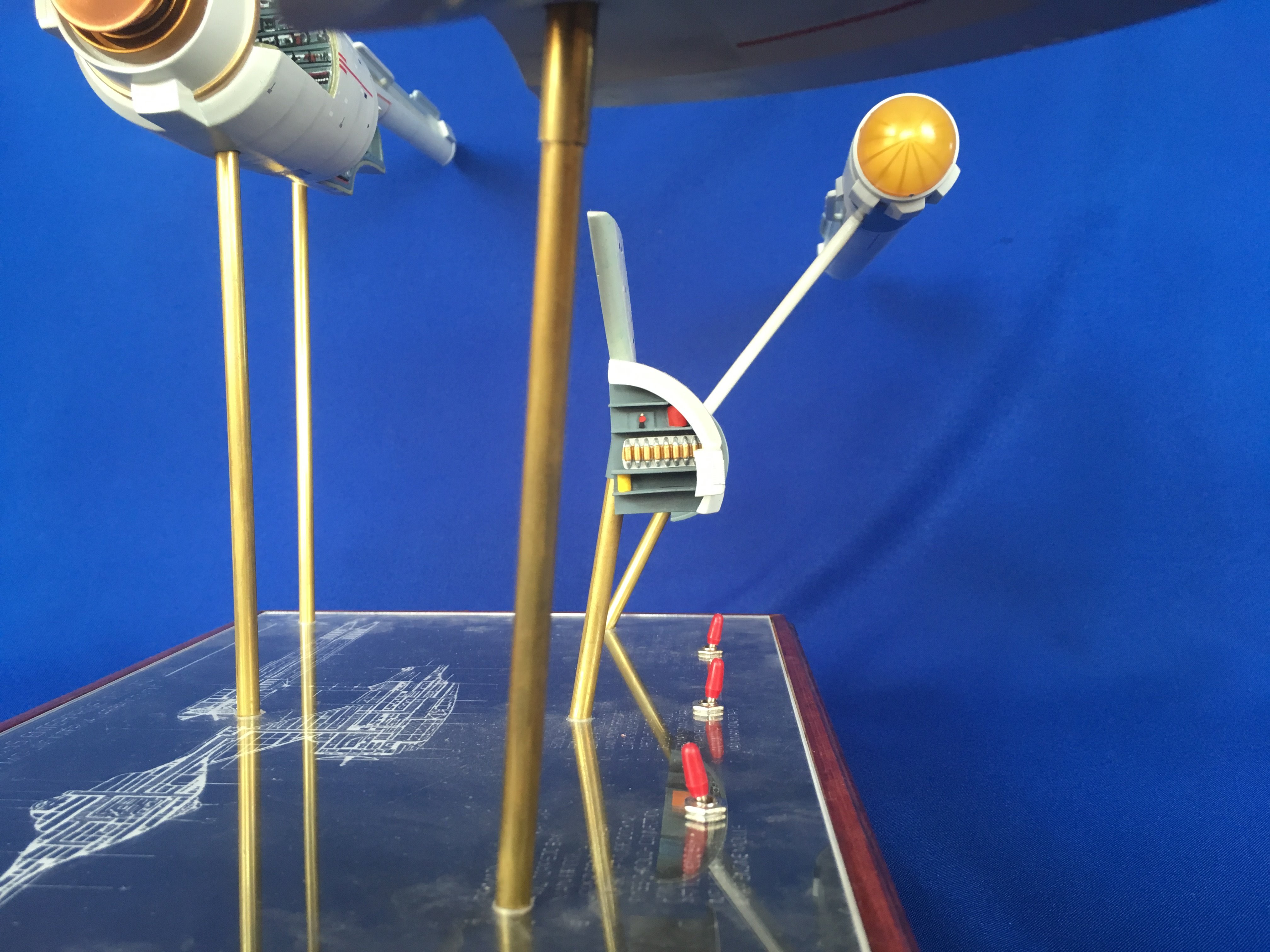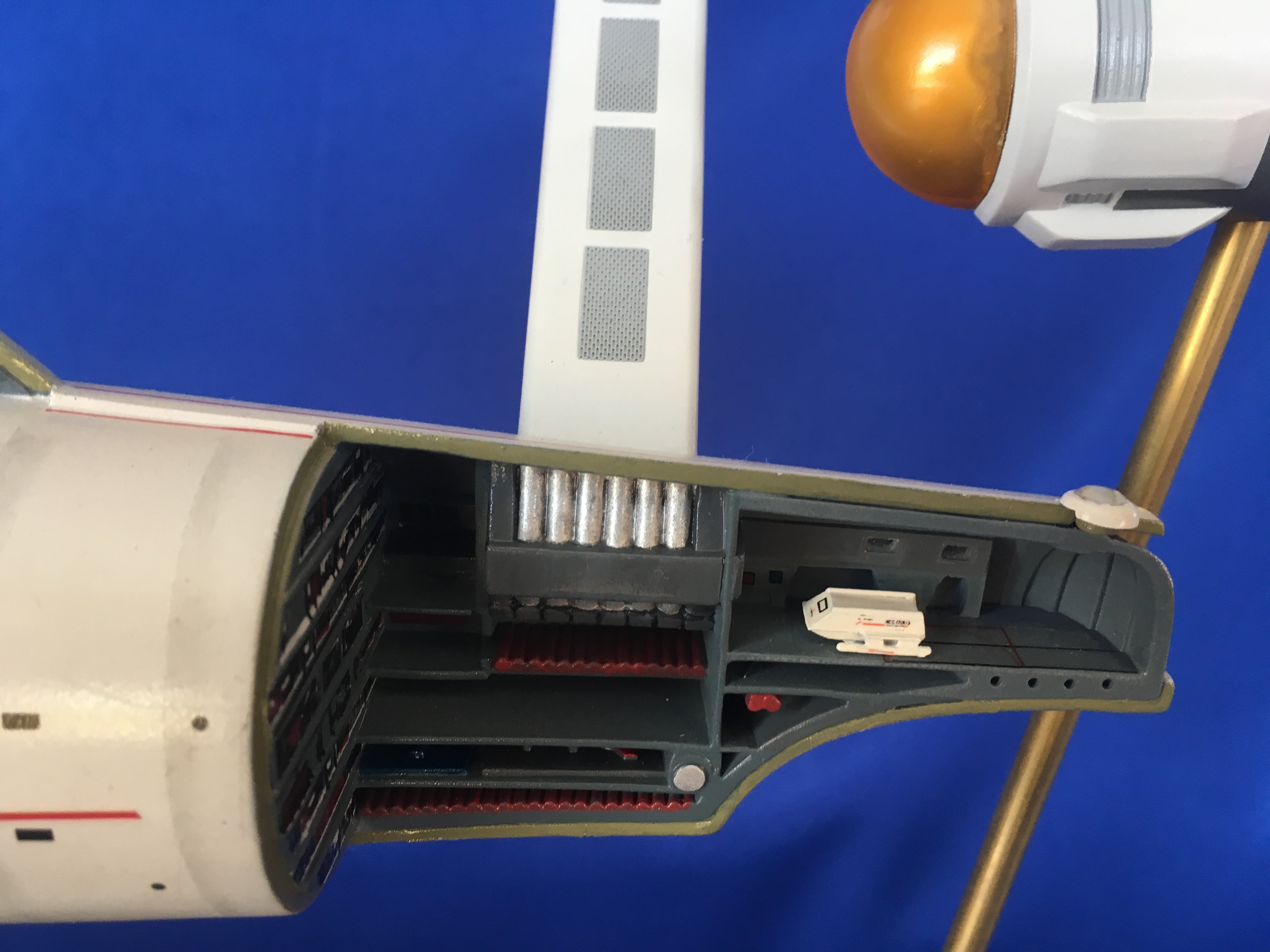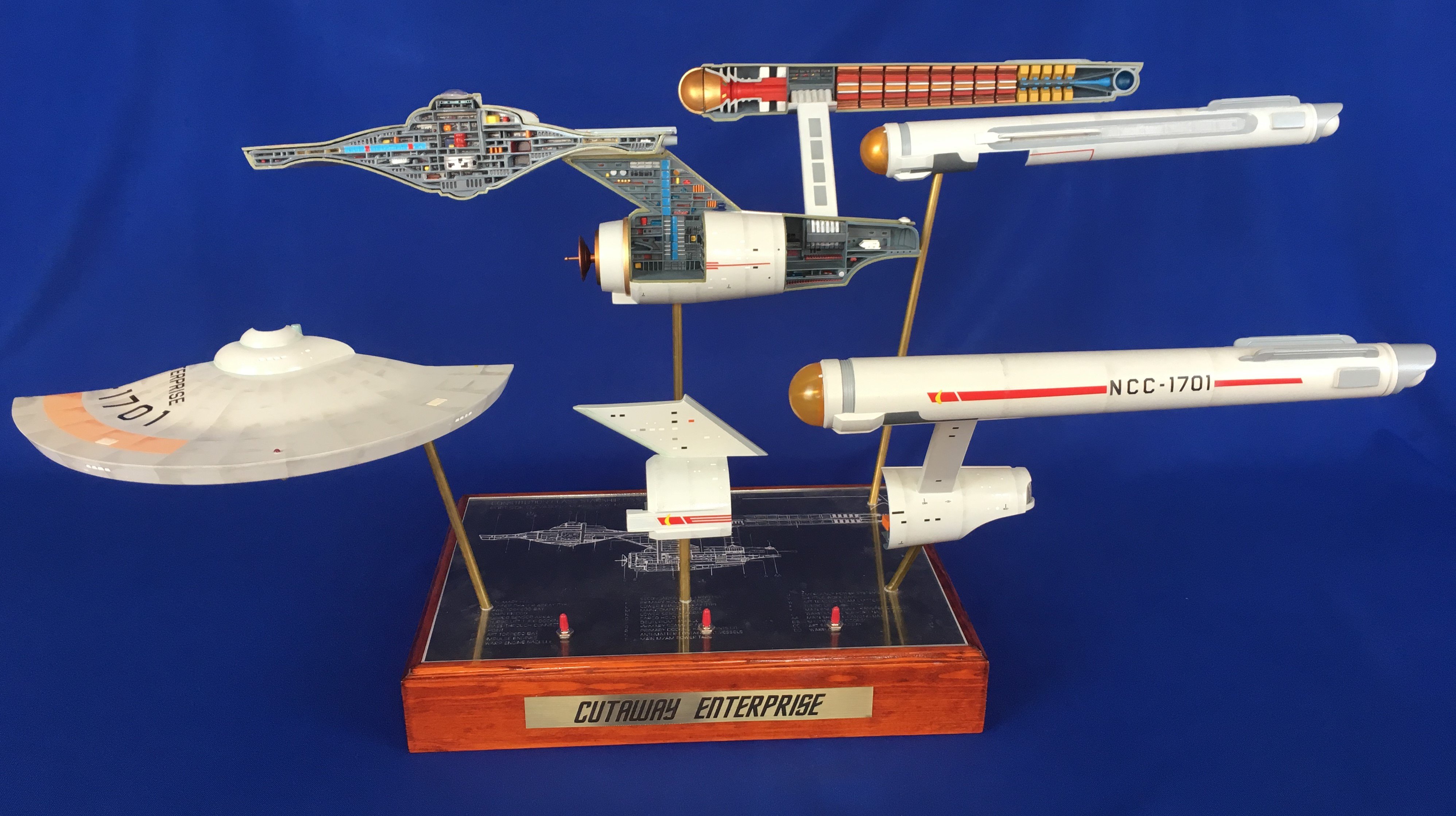 Artist Géza Sági has done wonderful work with this AMT Cutaway Enterprise! It is very clean and has a highly detailed paint job! This artist’s display of this, and the fantastic base, is top notch! I would love to see this done on a 1/2 studio scale Enterprise. Géza, you may have just sparked something in me to make that happen my friend. I love this! Excellent work!