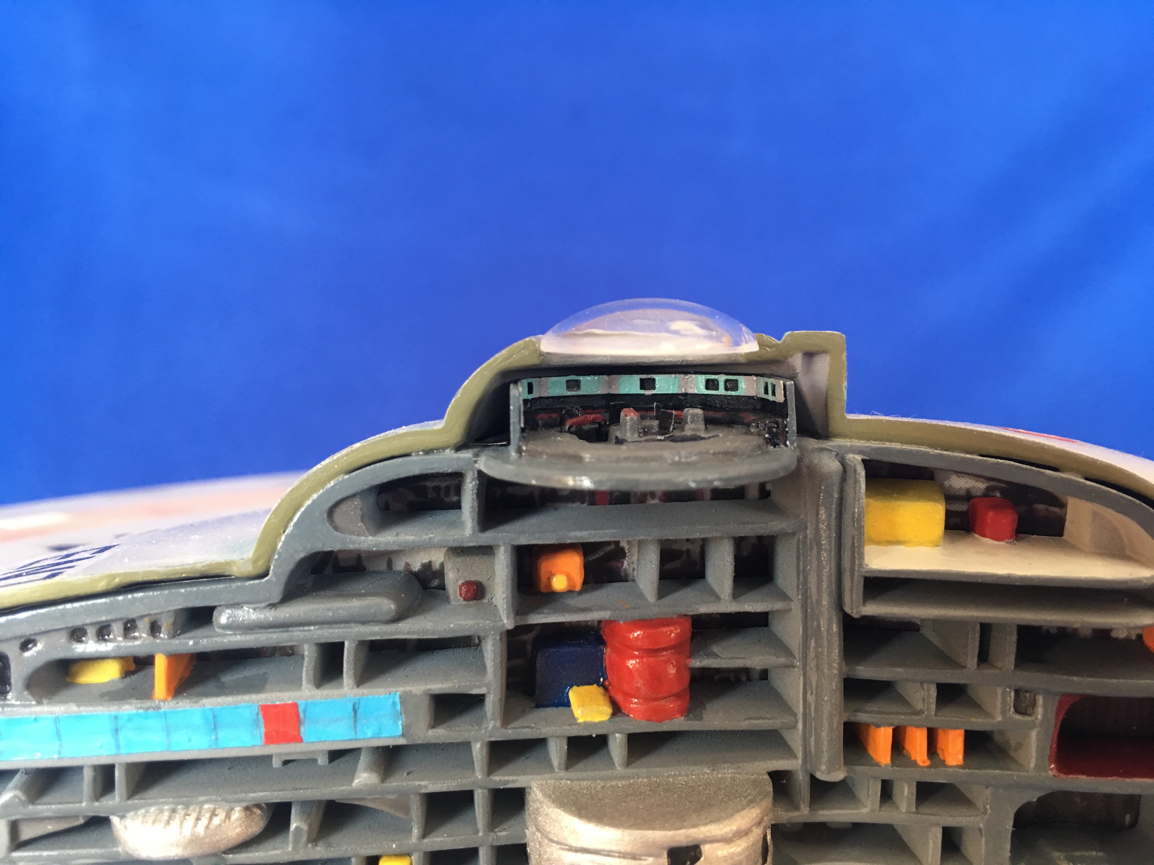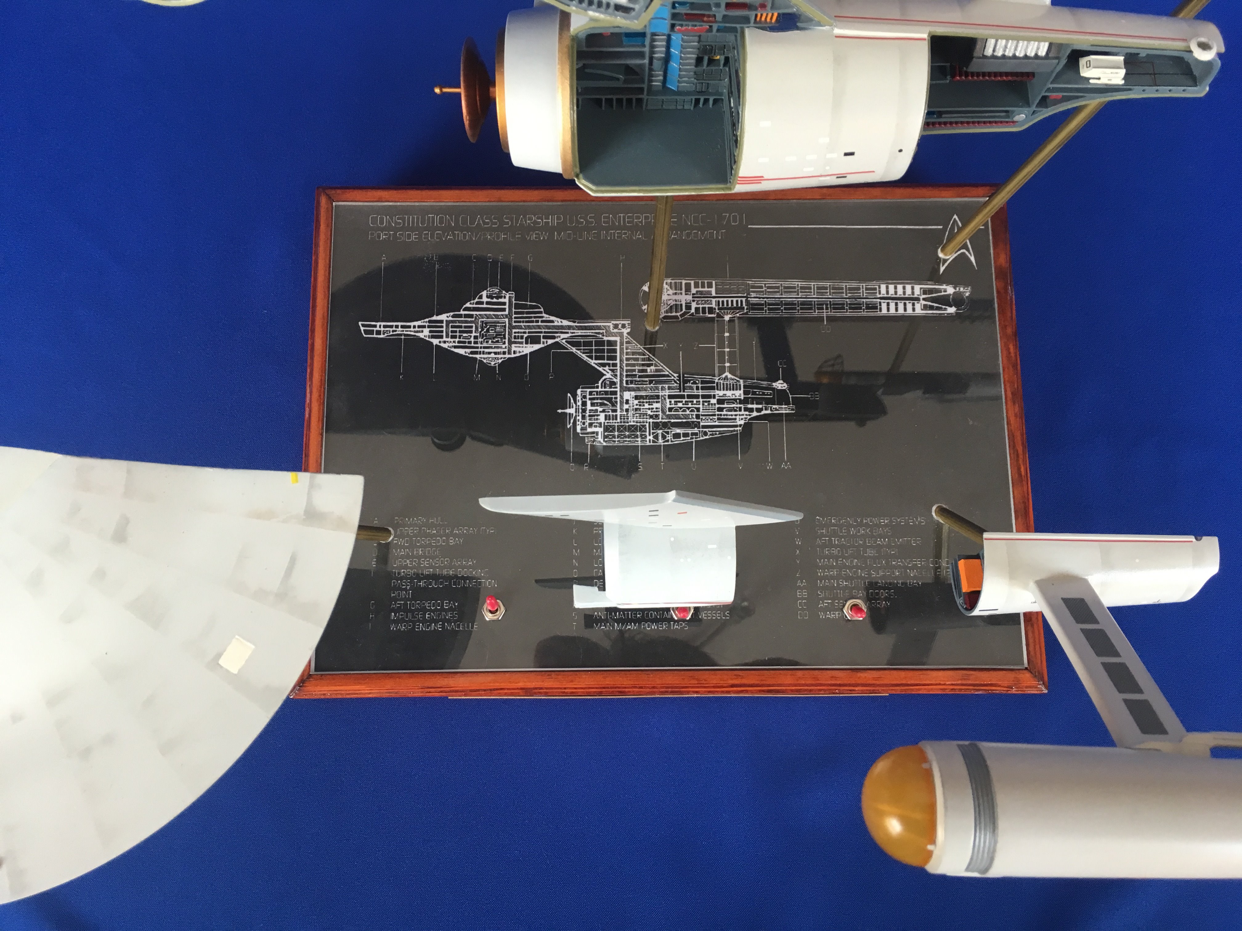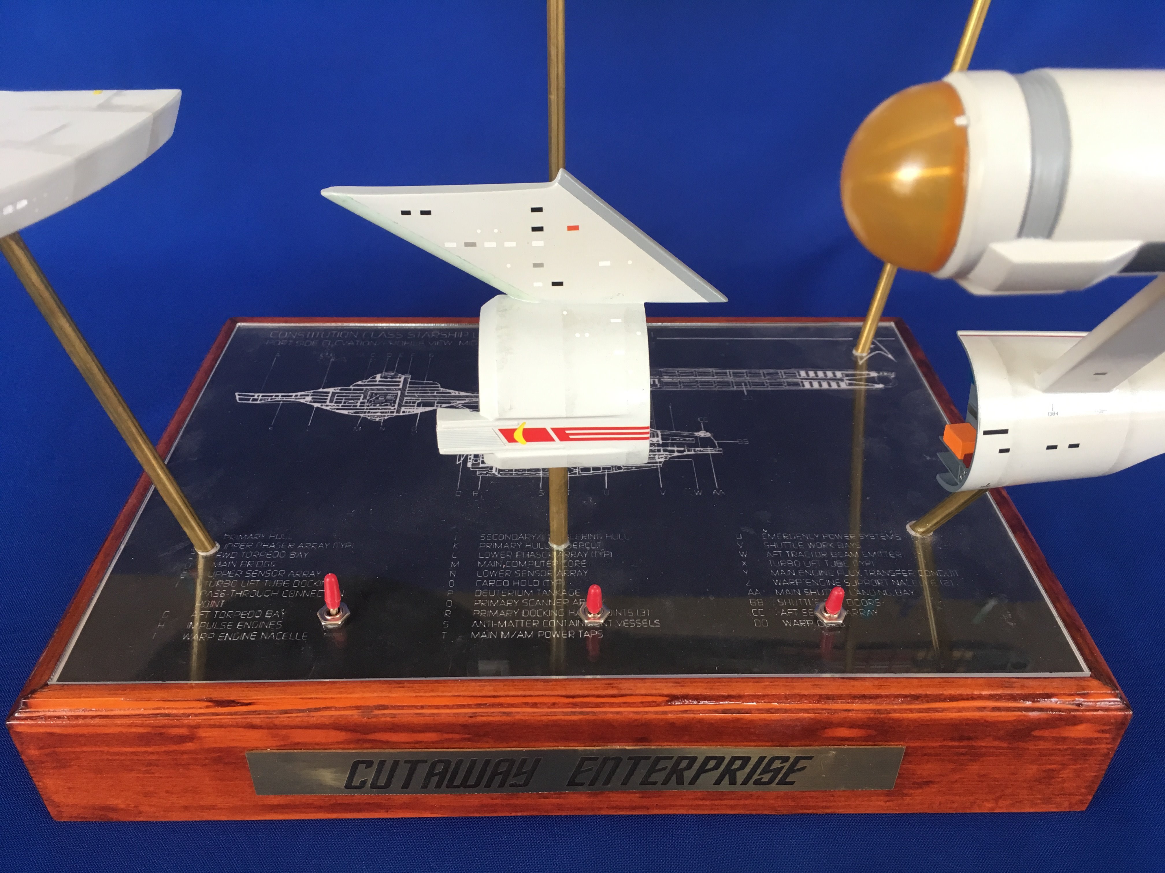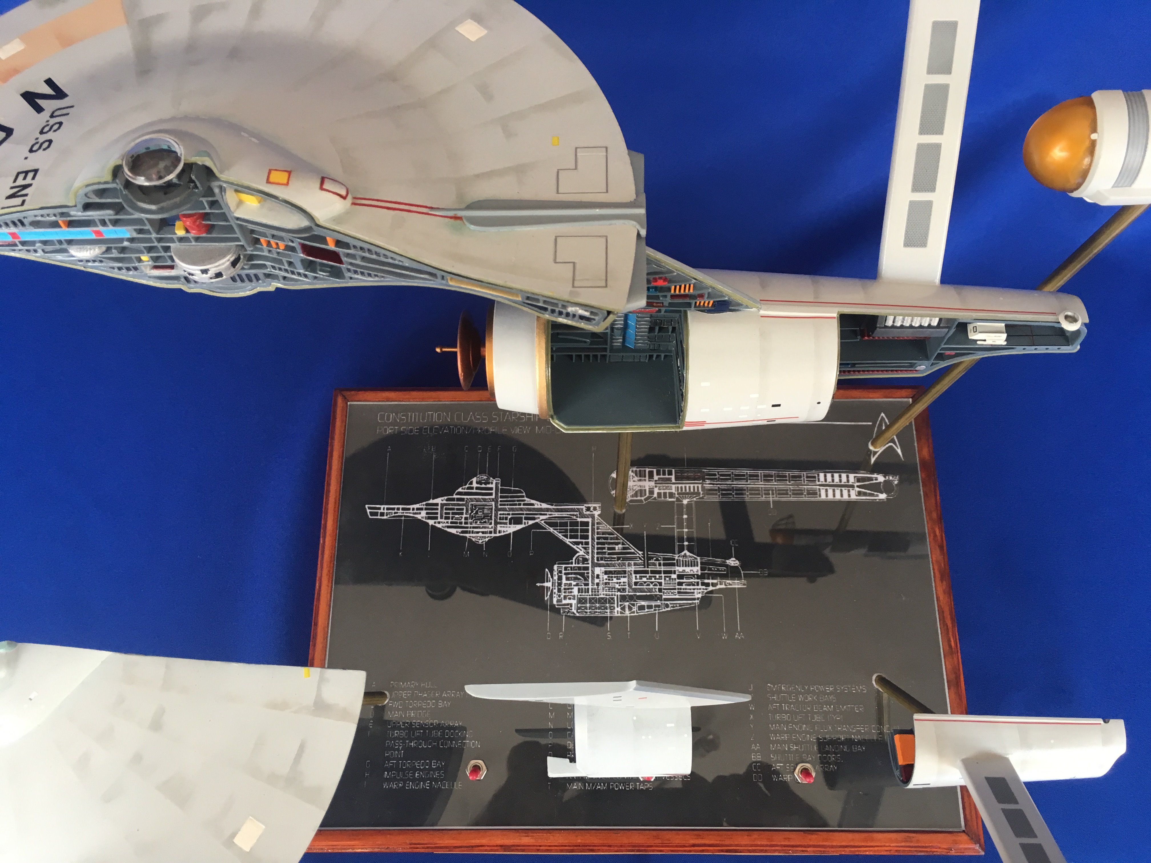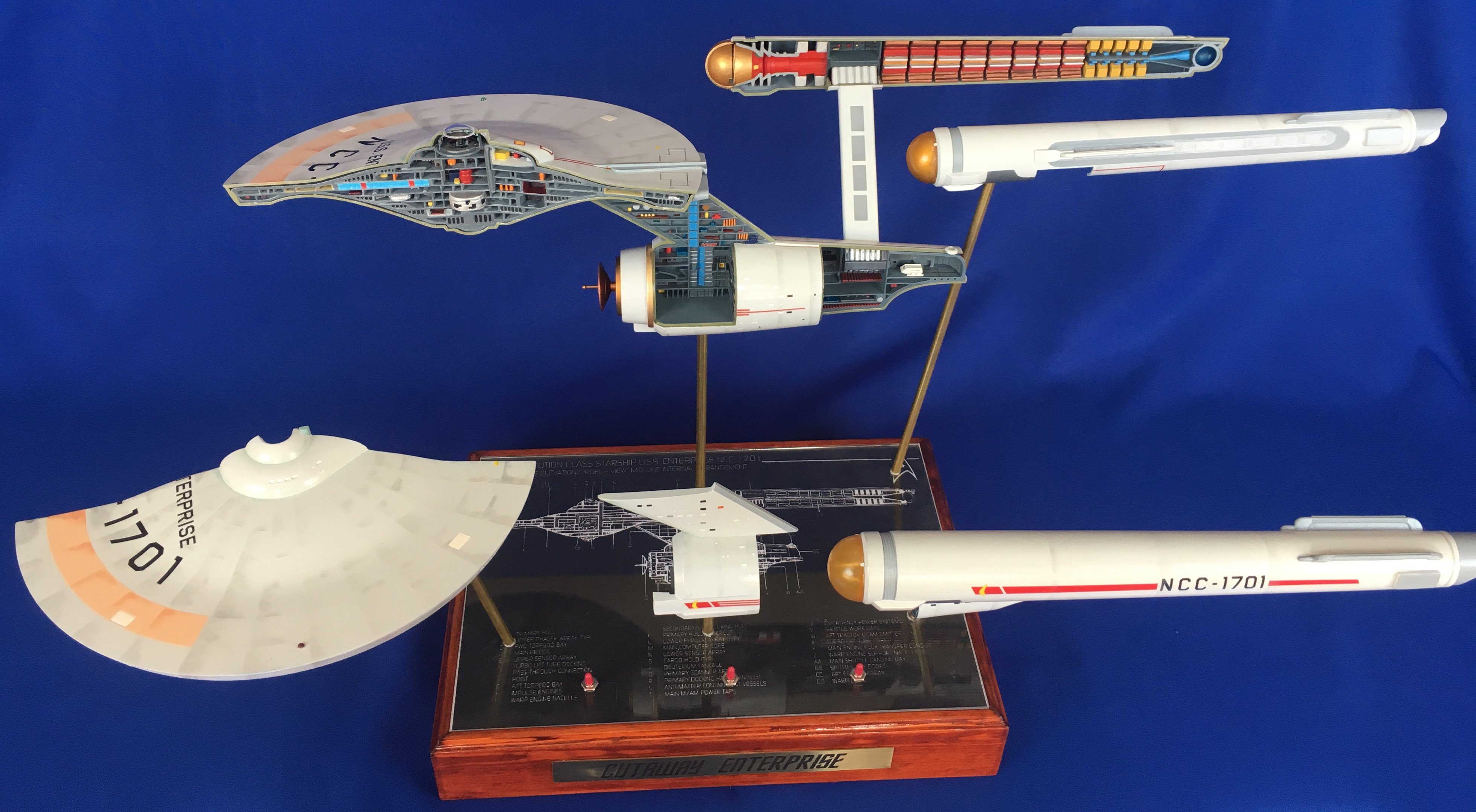 Artist Géza Sági has done wonderful work with this AMT Cutaway Enterprise! It is very clean and has a highly detailed paint job! This artist’s display of this, and the fantastic base, is top notch! I would love to see this done on a 1/2 studio scale Enterprise. Géza, you may have just sparked something in me to make that happen my friend. I love this! Excellent work!