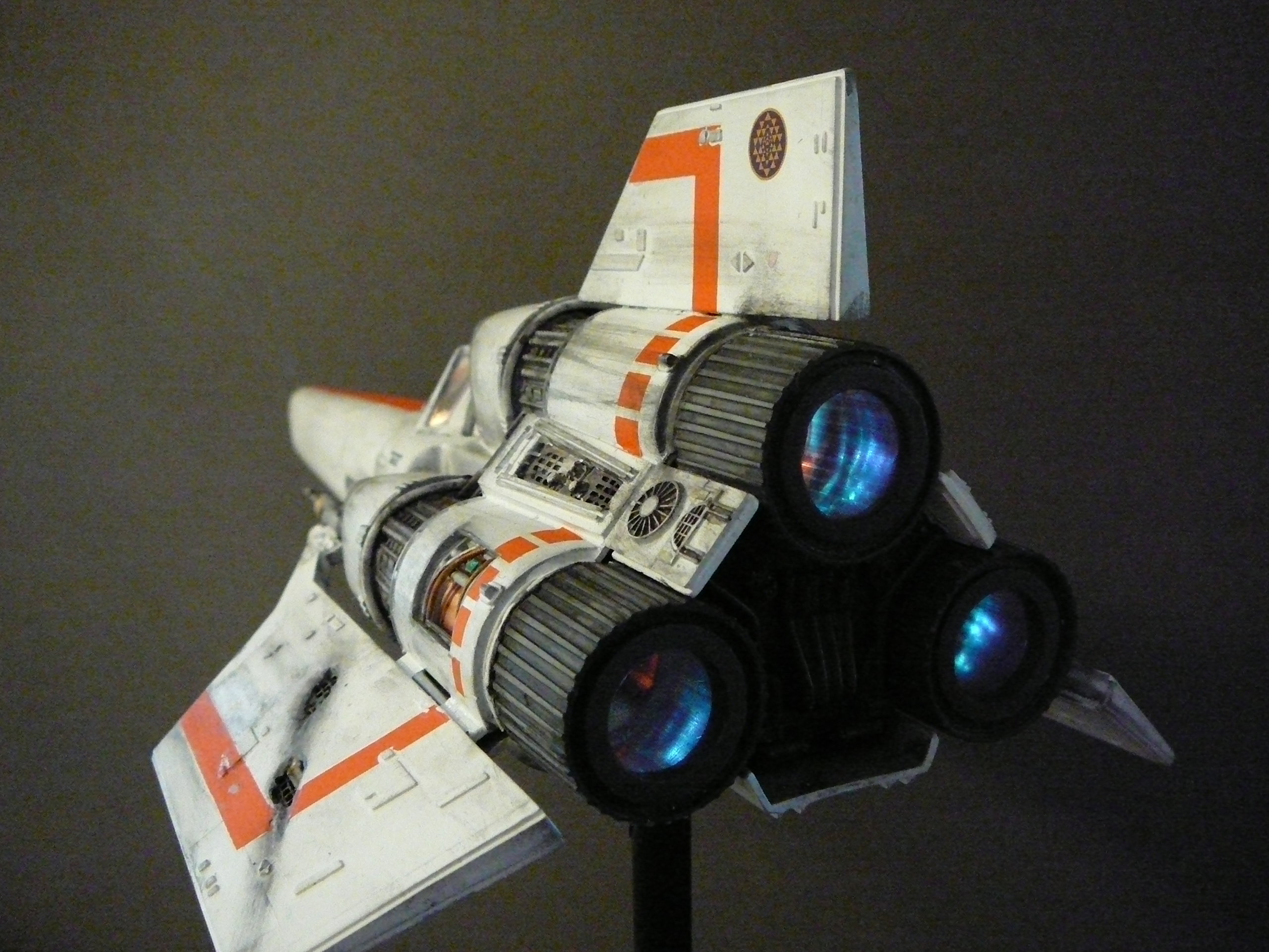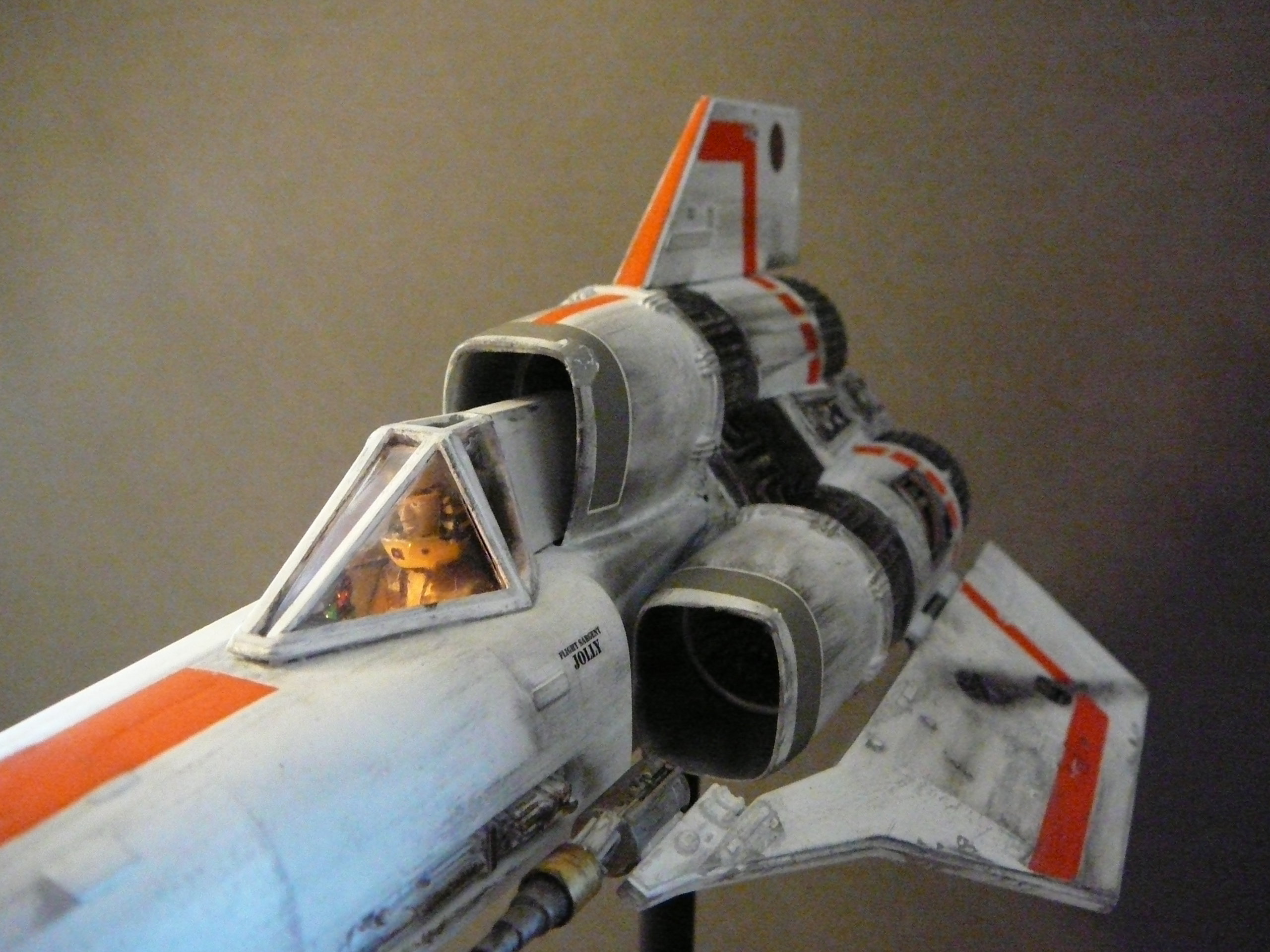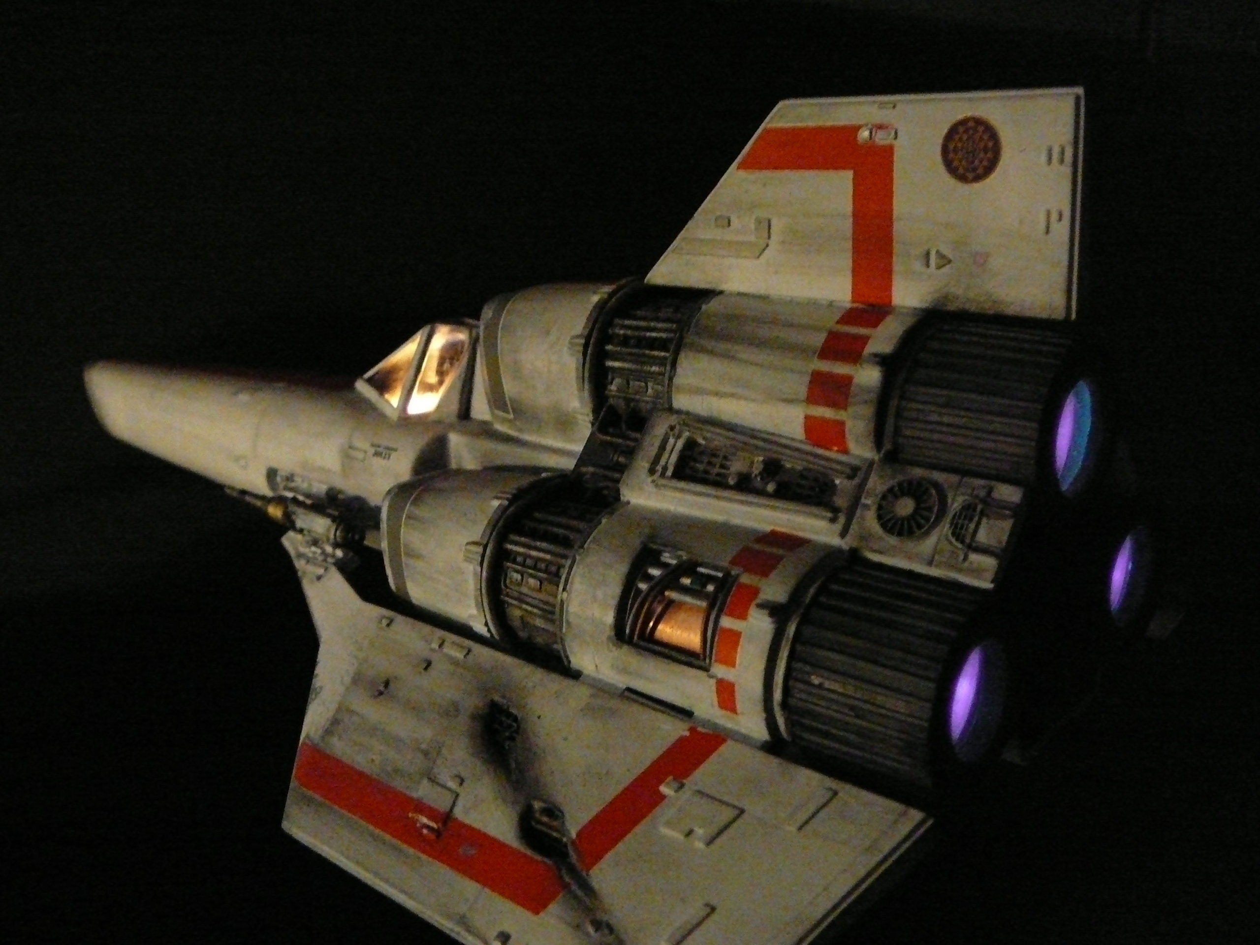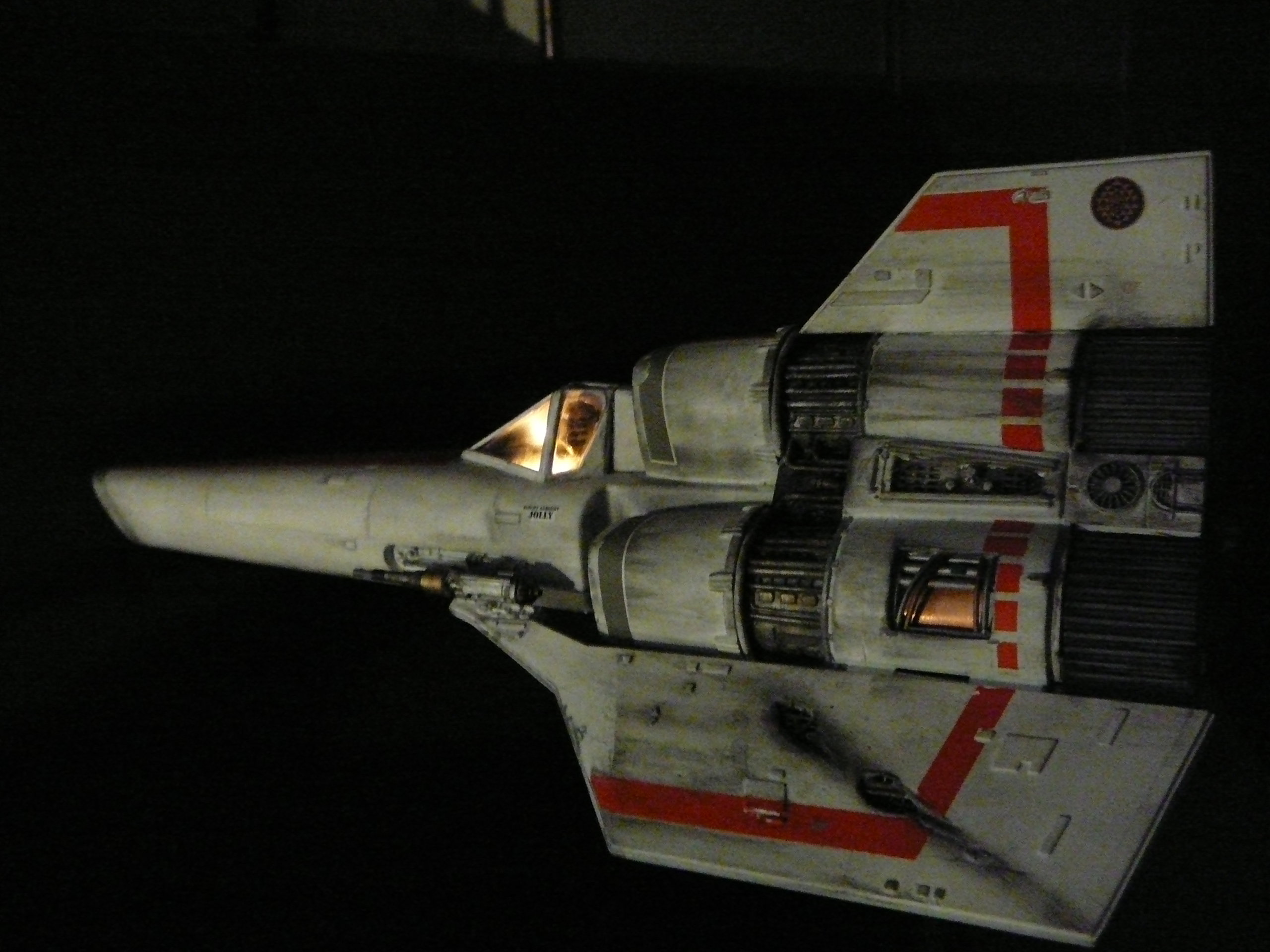 Here is my custom built viper with battle Damage. It is the 1978 original monogram kit! I cut out the canopy and scratch built the cockpit. The pilot is a resin aftermarket I picked up in England off of Ebay. The left wing and blown engine hatch are scratch built along with the rear engines. The lighting kit is also scratch built by me! I did all this to my model in 2008 way before they came out with the new re-popped kit from Revell! If I only new they were going to do that! That stated, I am making Landing Gear and Battle Damaged Wings for that Revell kit as aftermarket add on’s to be sold through Spacecraft Creation Models.