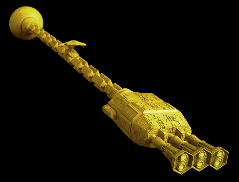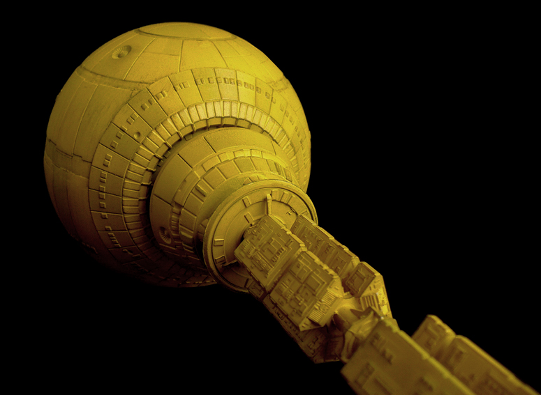 Made from the Moebius kit, artist Warren Zoell made the Discovery as it was seen in 2010: The Year We Make Contact. Warren did an excellent job replicating the brownish sulfur dust of Jupiter’s Moon “Io” that settled on the Discovery’s hull.