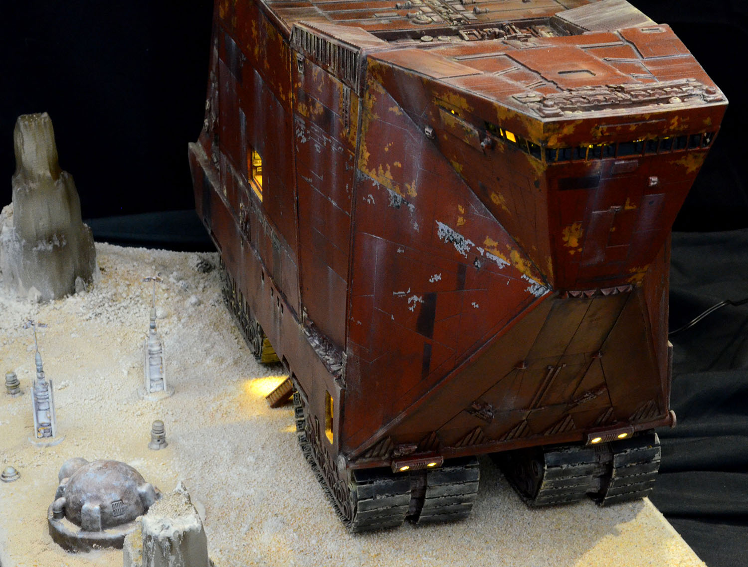 I recently built this 1/96 Randy Cooper Sandcrawler resin kit. This one is not for sale, but I’d be open to building this again for someone else. The model measures about 26″ long,