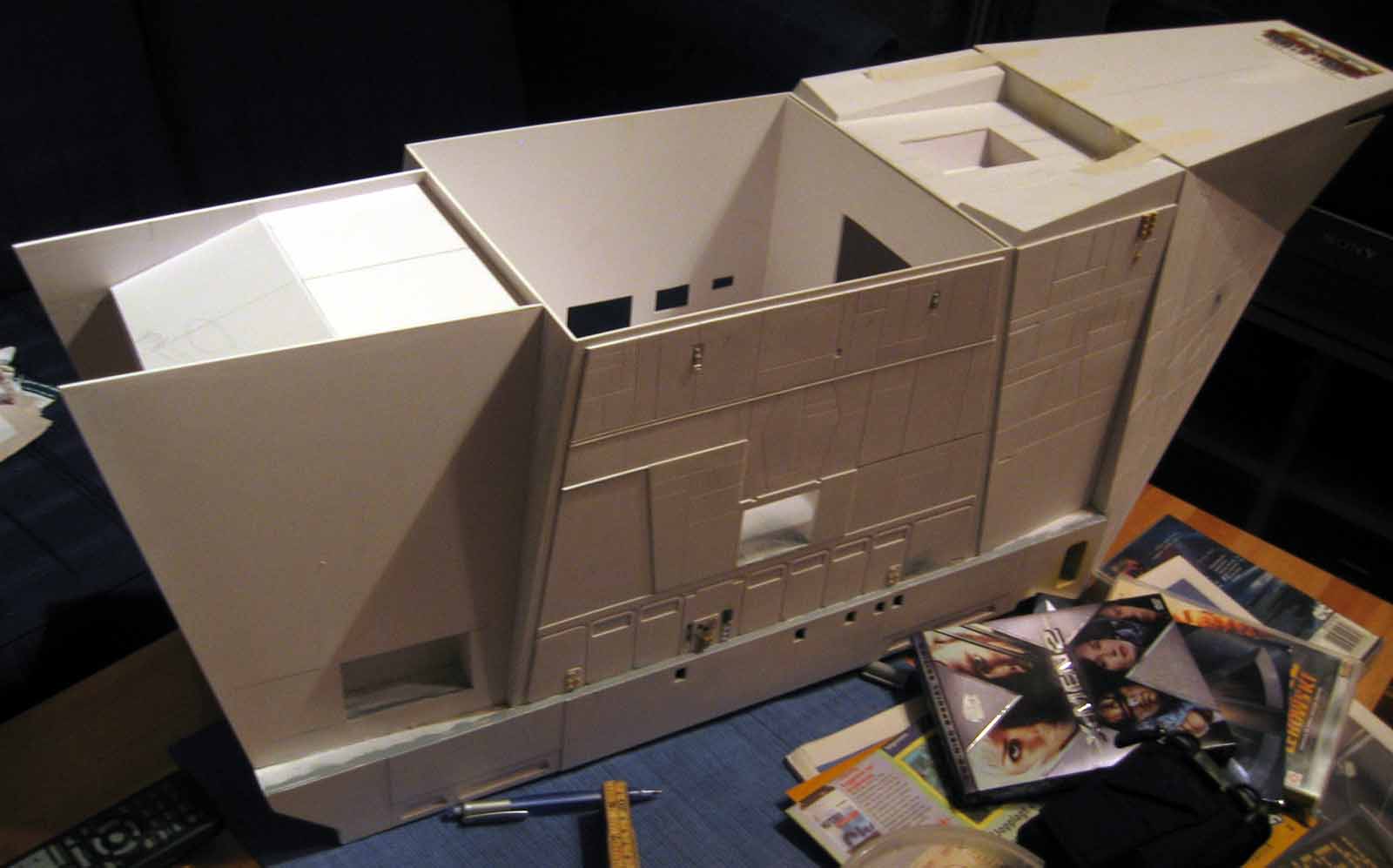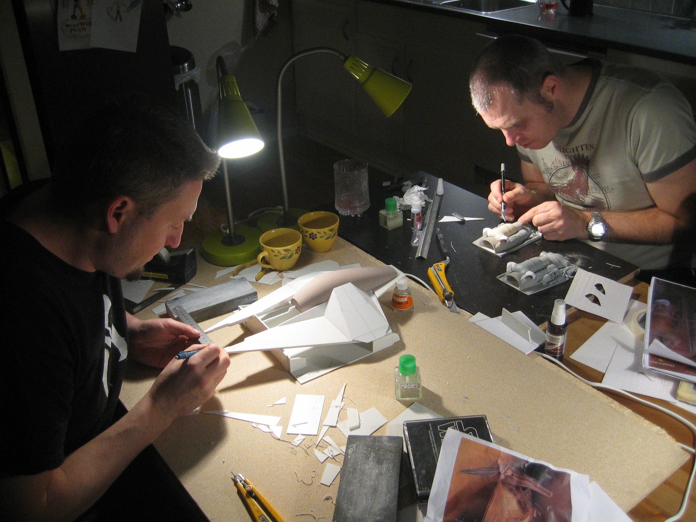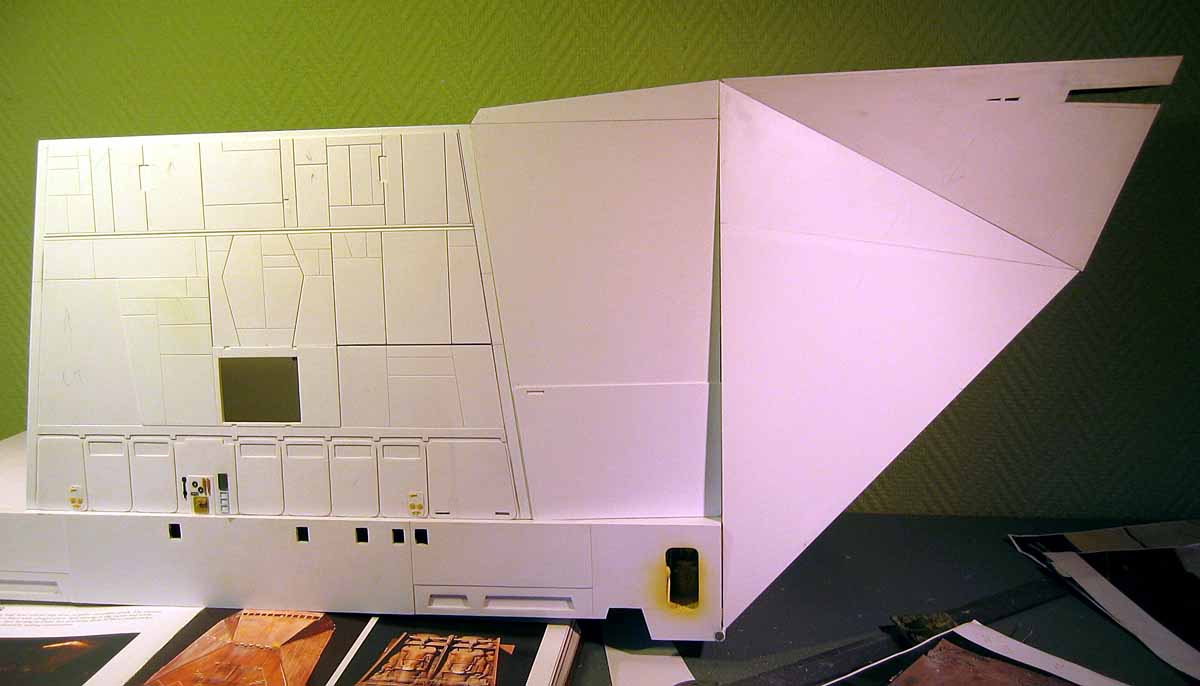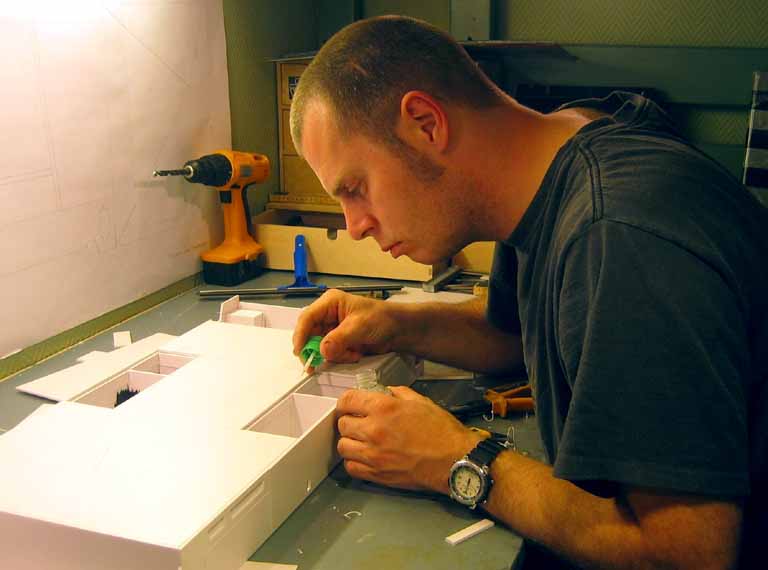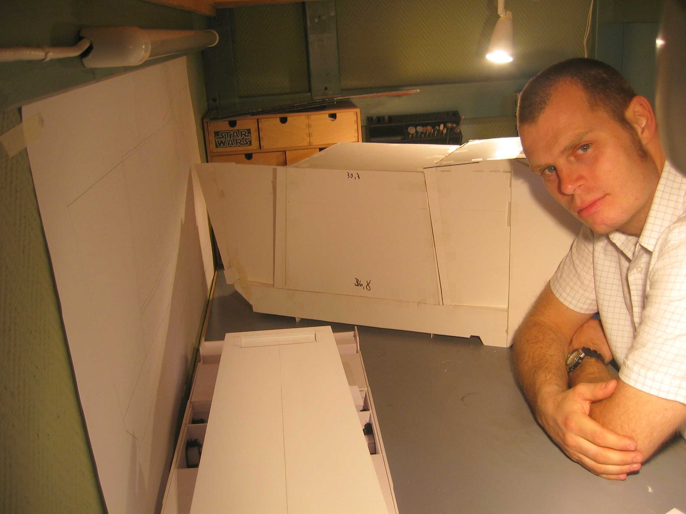 Originally shown here on January 27, 2009, artist Lars Andersen was scratch building a 3 foot long SandCrawler! I wonder if he finished it? Seen here working his build, in one photo you will notice another great artist sitting across from Lars…. his friend and ours…. artist Lasse Henning. This build shows the excellence that Lars has placed into it. I thought I would bring it to the front pages once again for all to view! Absolutely beautiful!