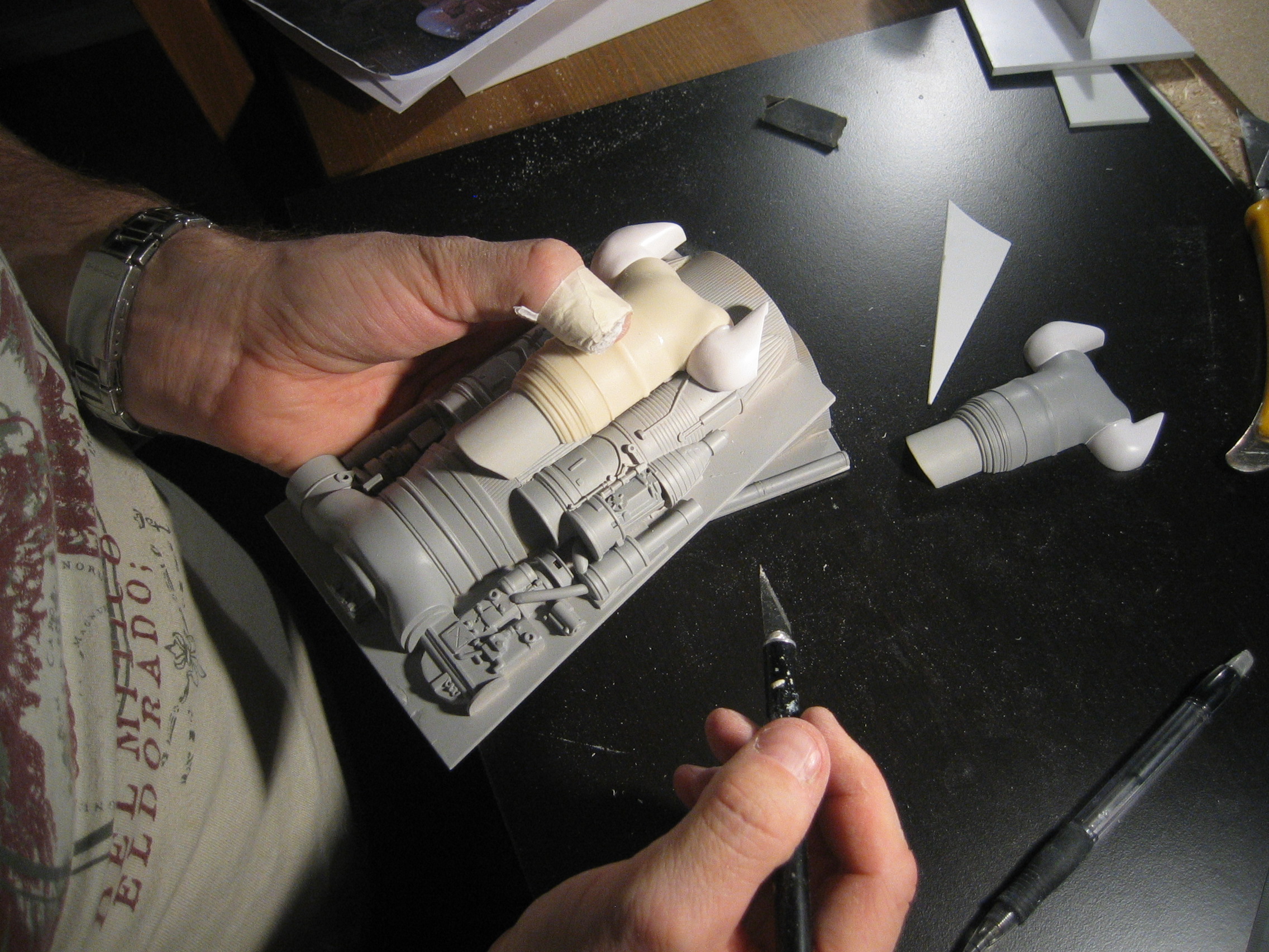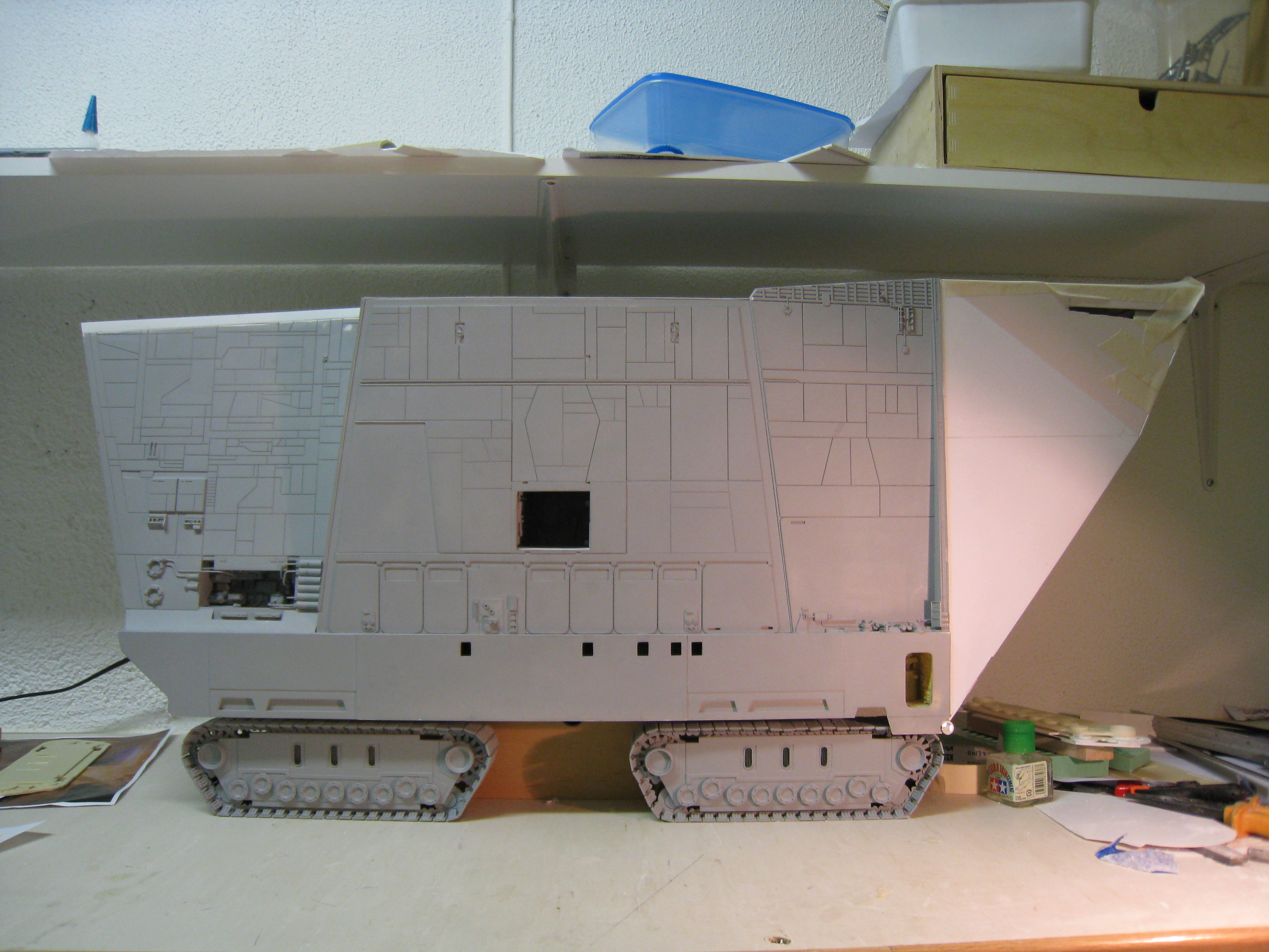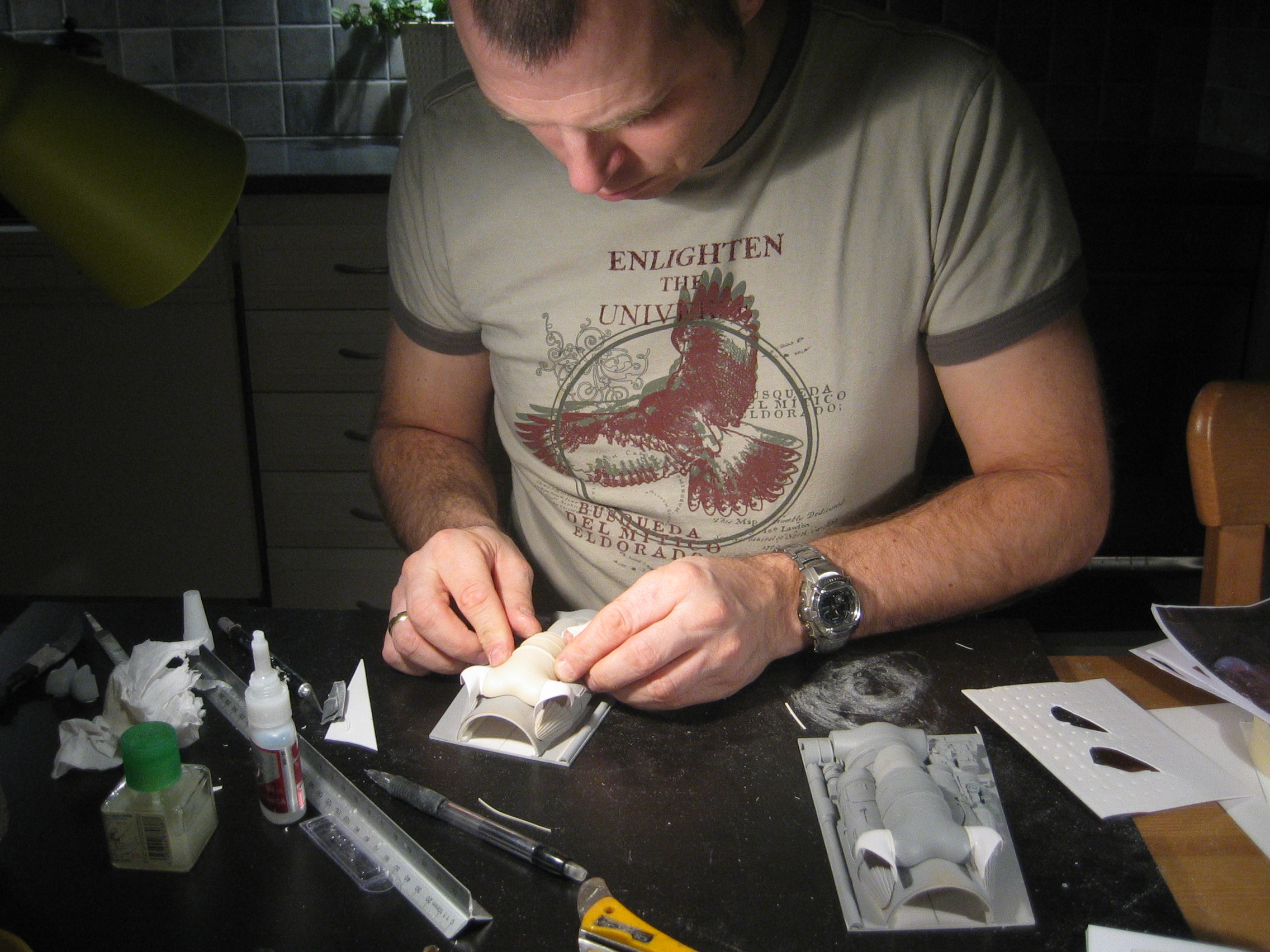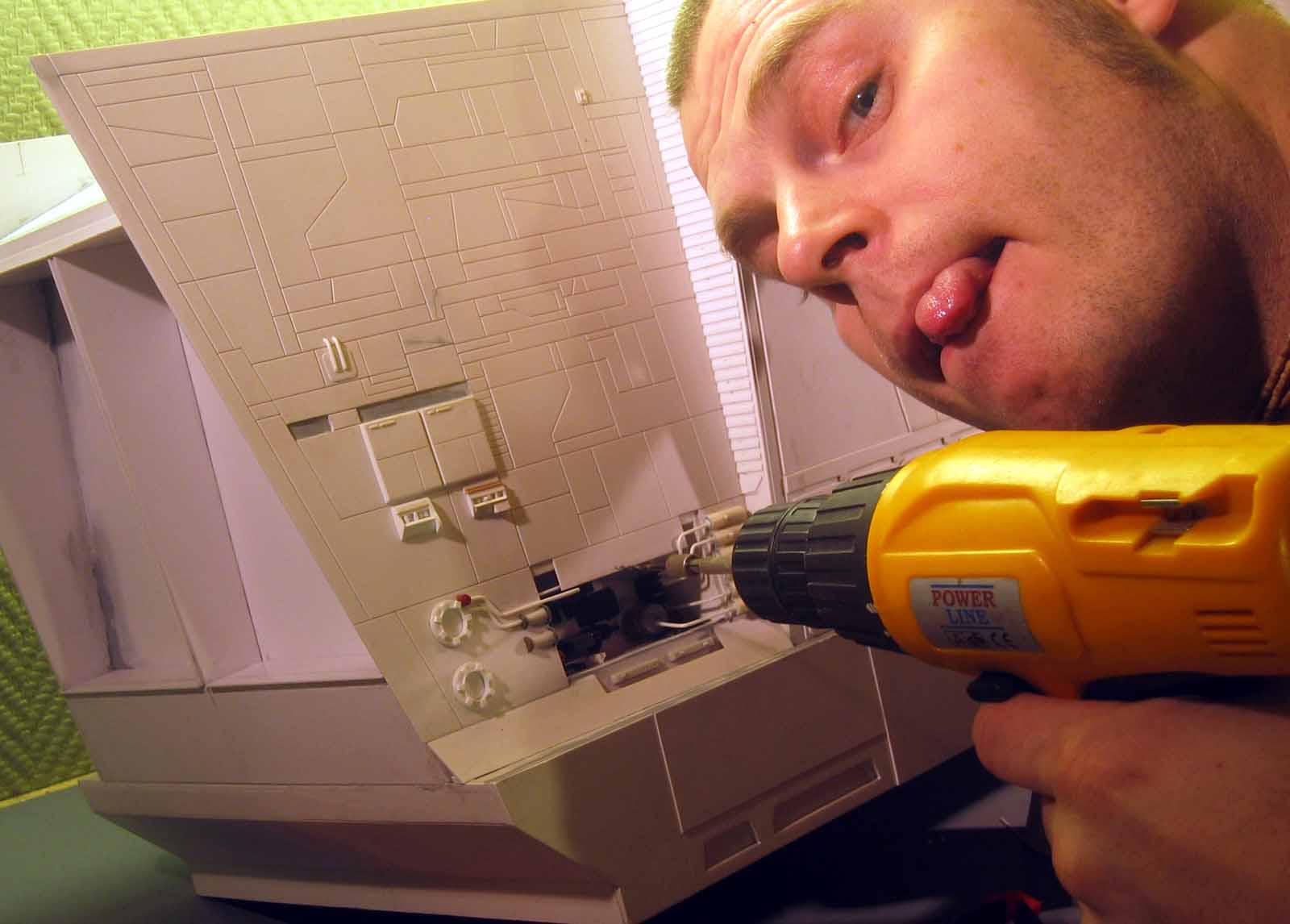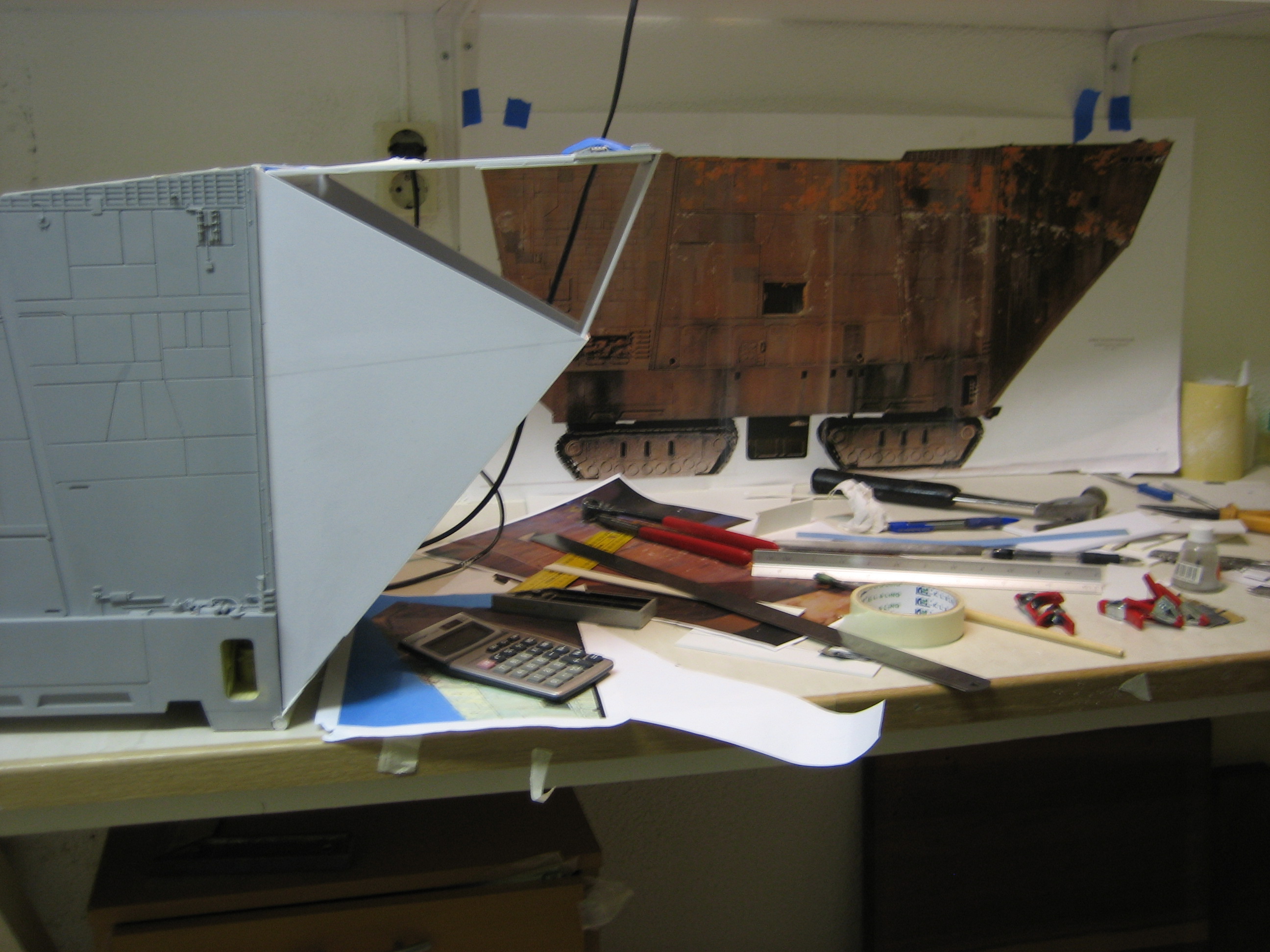 Originally shown here on January 27, 2009, artist Lars Andersen was scratch building a 3 foot long SandCrawler! I wonder if he finished it? Seen here working his build, in one photo you will notice another great artist sitting across from Lars…. his friend and ours…. artist Lasse Henning. This build shows the excellence that Lars has placed into it. I thought I would bring it to the front pages once again for all to view! Absolutely beautiful!