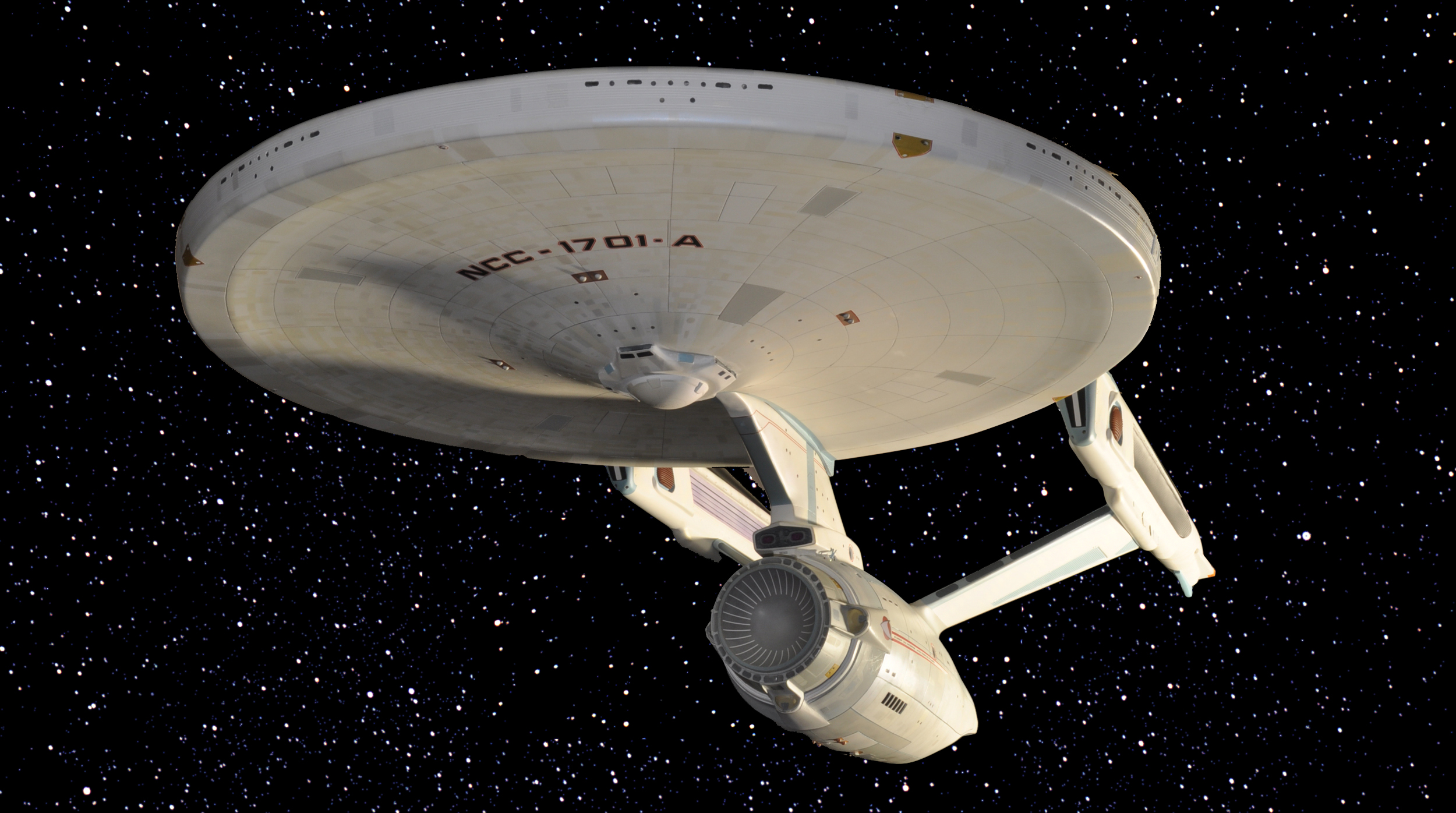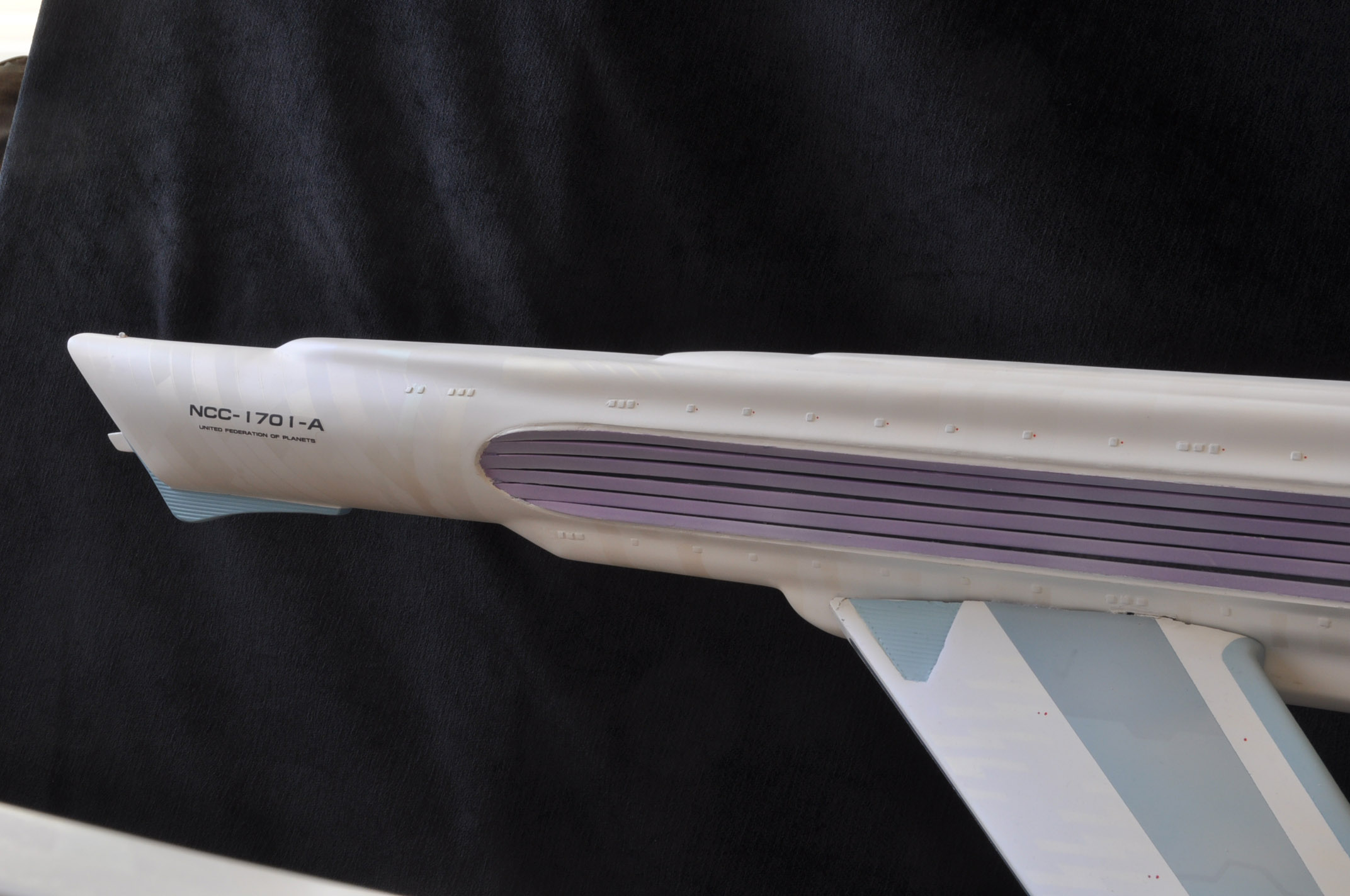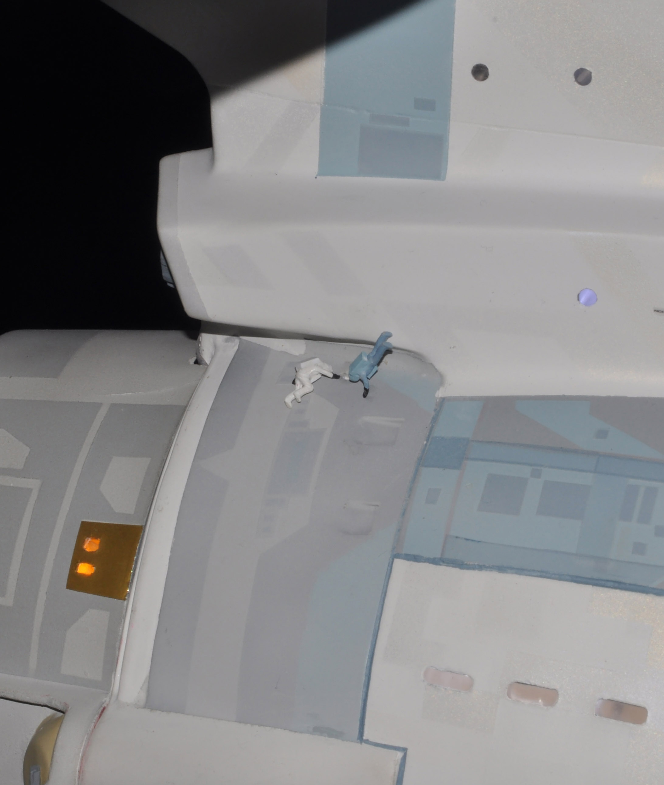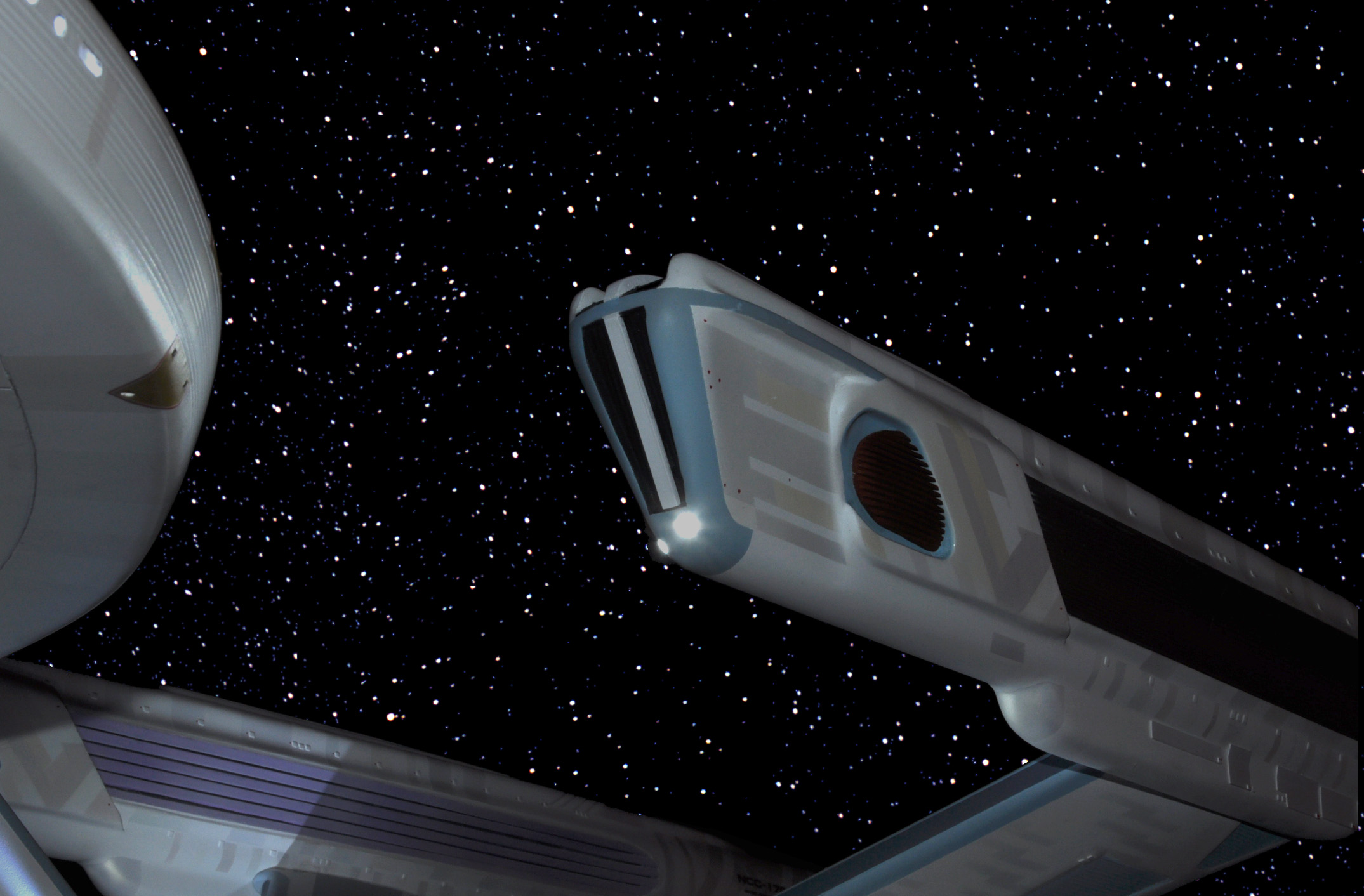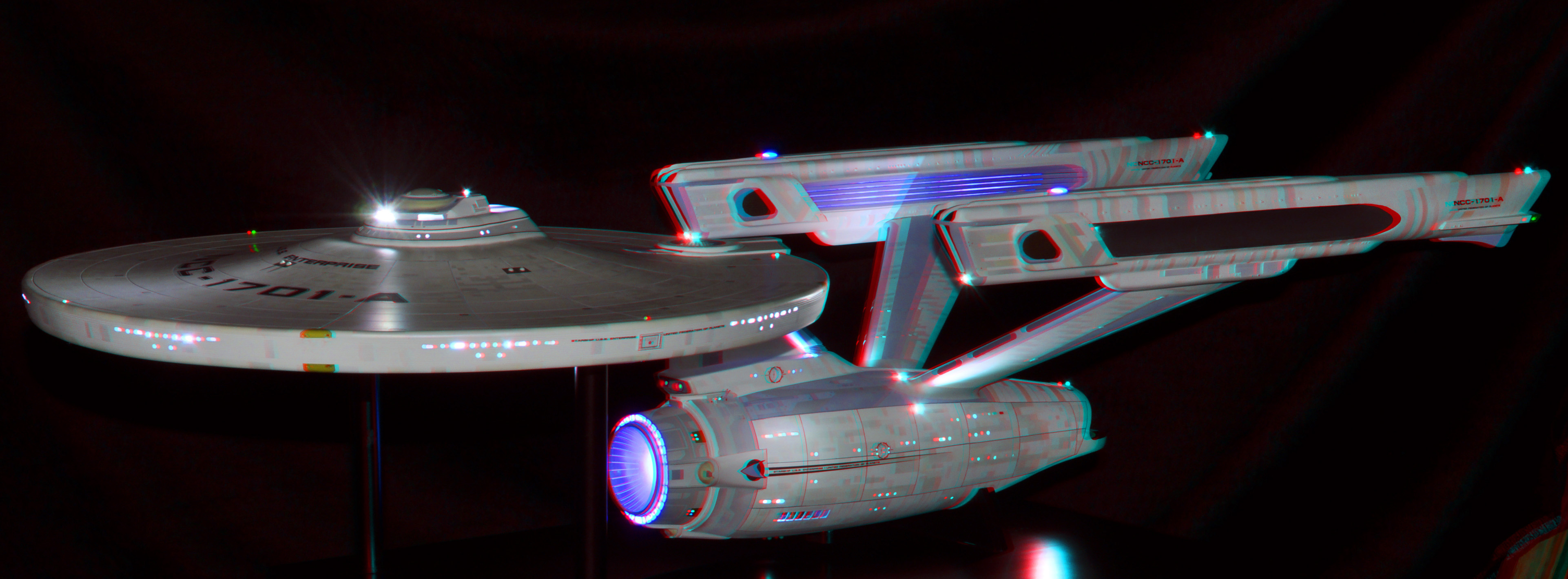 I am honored today to be able to introduce a builder to this Gallery who has been inspirational to me in his talents, proving that dreams ARE achievable! Professional Photographer, and Model Master Jason Ware. Using some of the reference shown directly from this site through the Mark Dickson Collection, and using some dramatic lighting from VooDooFX, with over 1500 hours spent building her…. Jason made his dream come true of this 3/4 studio scale scratch build of the most known science fiction vessel in science fiction history… the Enterprise 1701 Refit! This piece is so large that he was even able to place figures in the windows and on the hull! Every bit of lighting accounted for exactly like the original 8 foot filming model… this piece is second to none that I have seen. There have some world class, beautiful builds from large kits of this piece before this time, but none scratch built… and certainly nothing this large! Jason has inspired me to do what I have been wanting to have done…. build and exact replica of the 8 foot filming model. I am completely floored with Jason’s talents in doing this piece and look forward to showing more of his fantastic builds!