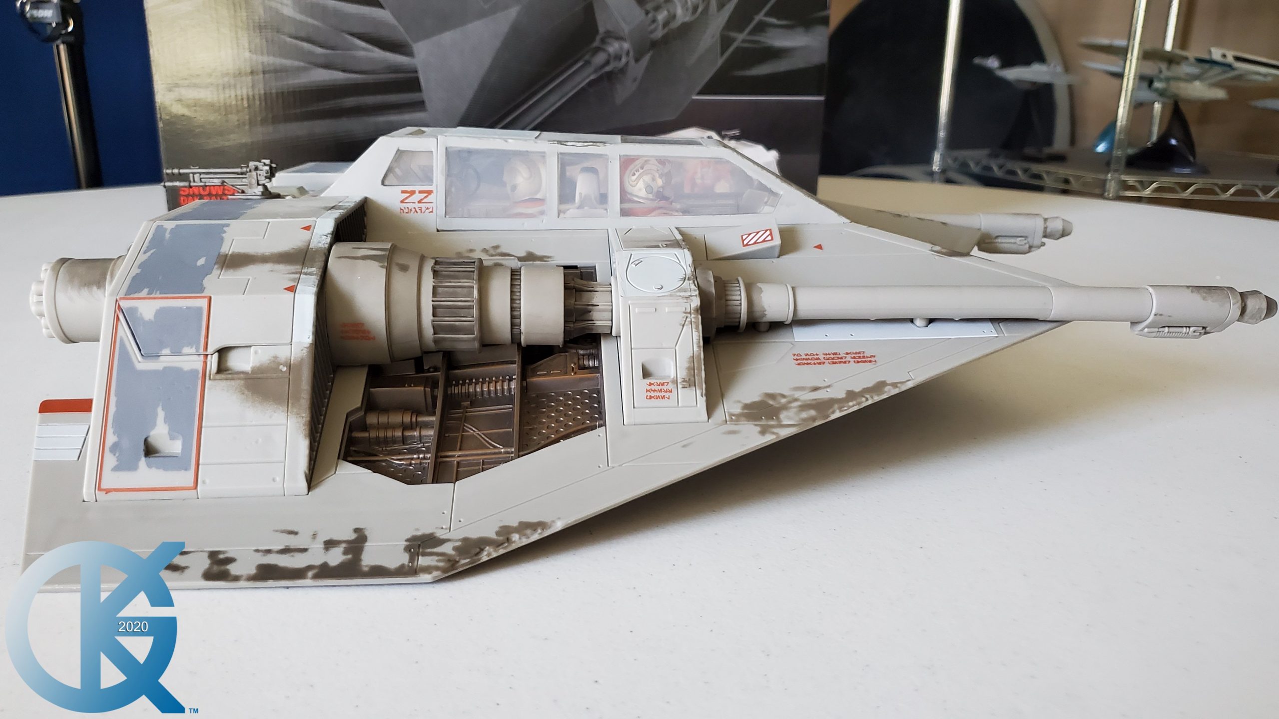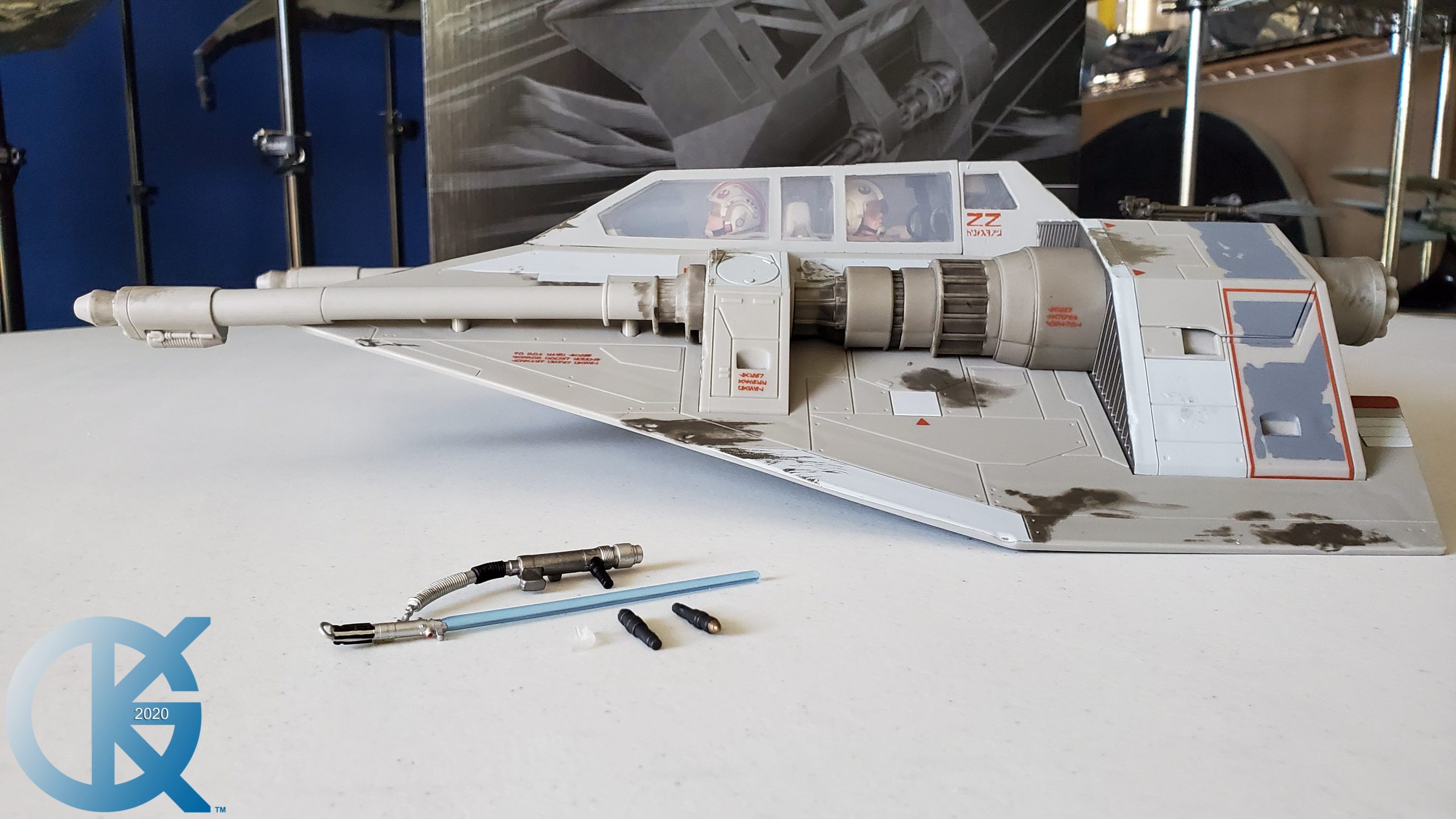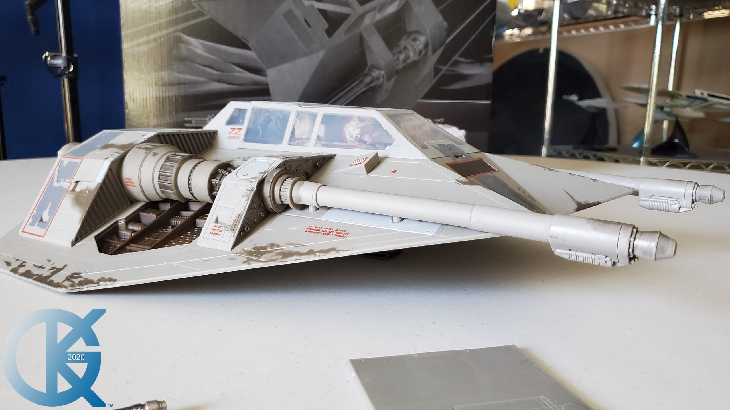 The 2020 Hasbro Black Series Toy next to a Kuhn Global Studio Scale Snowspeeder Replica