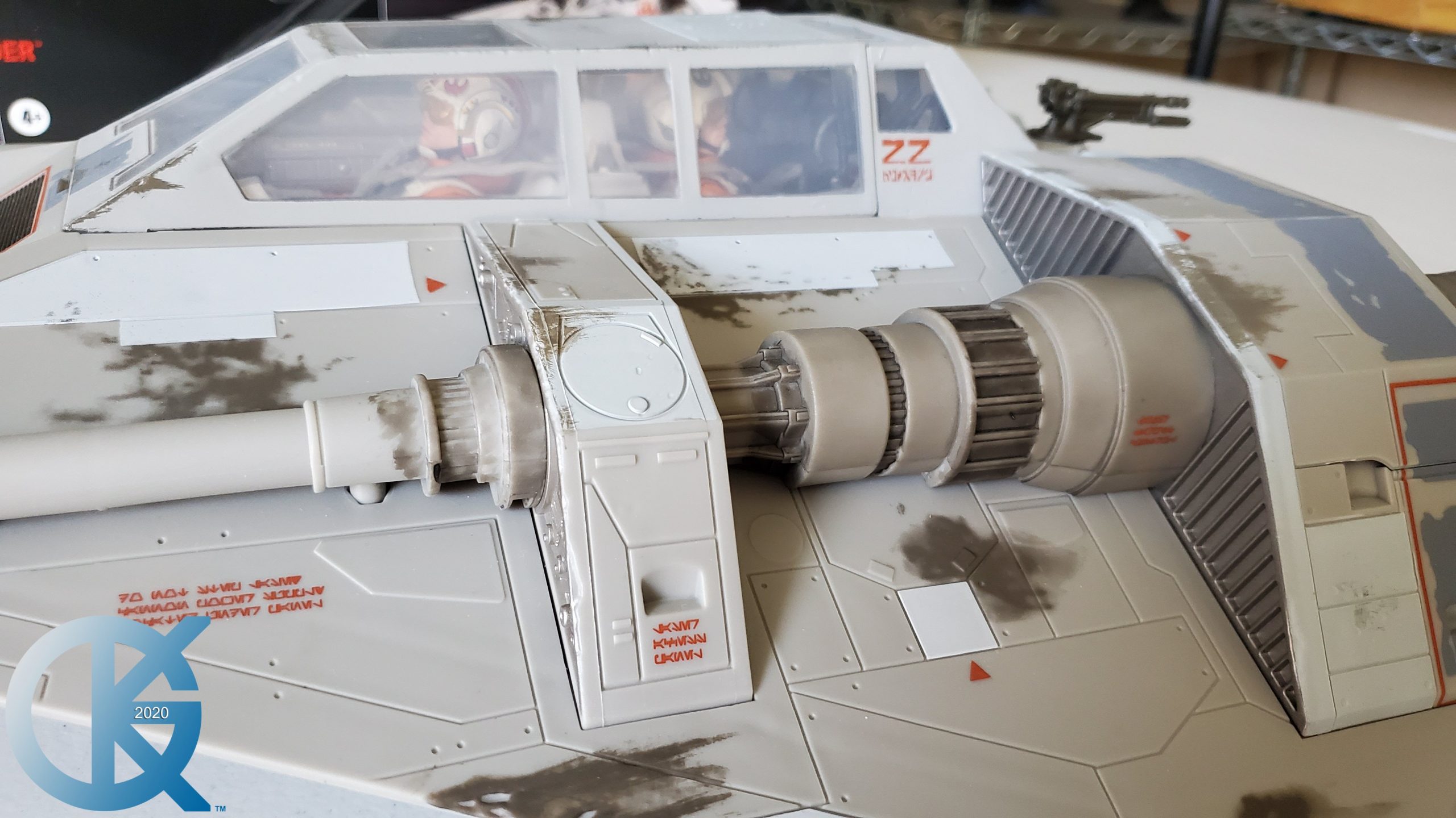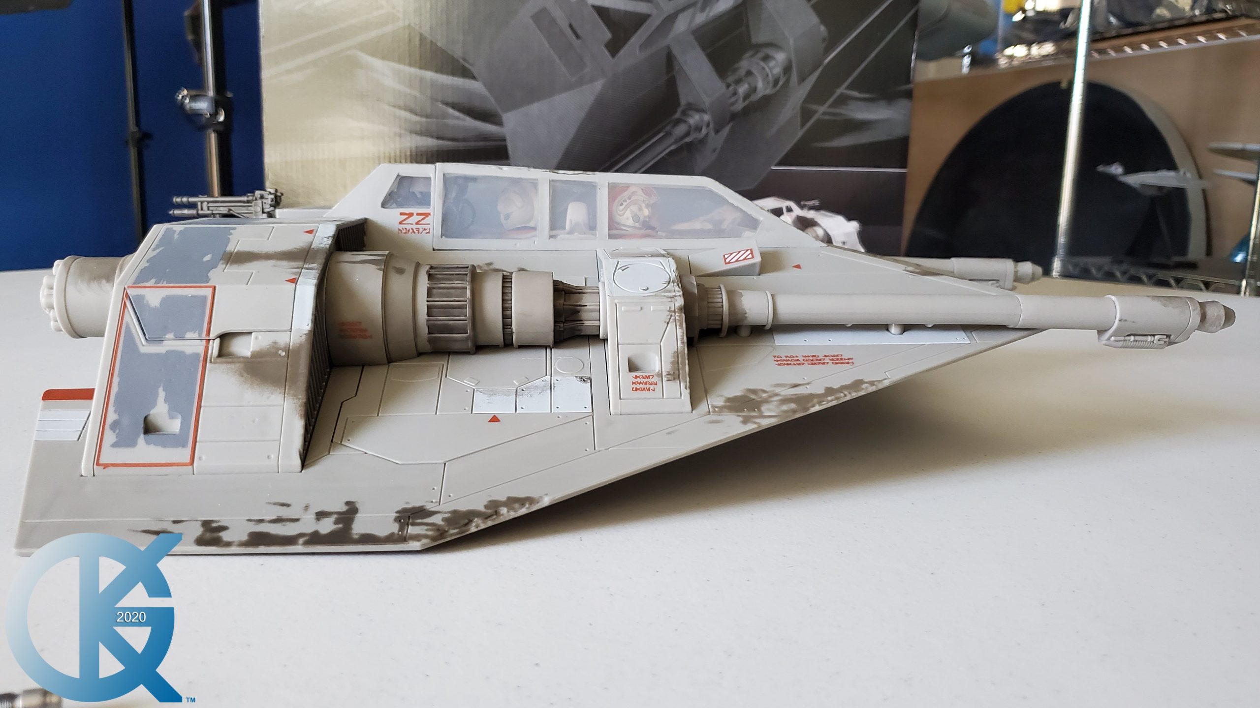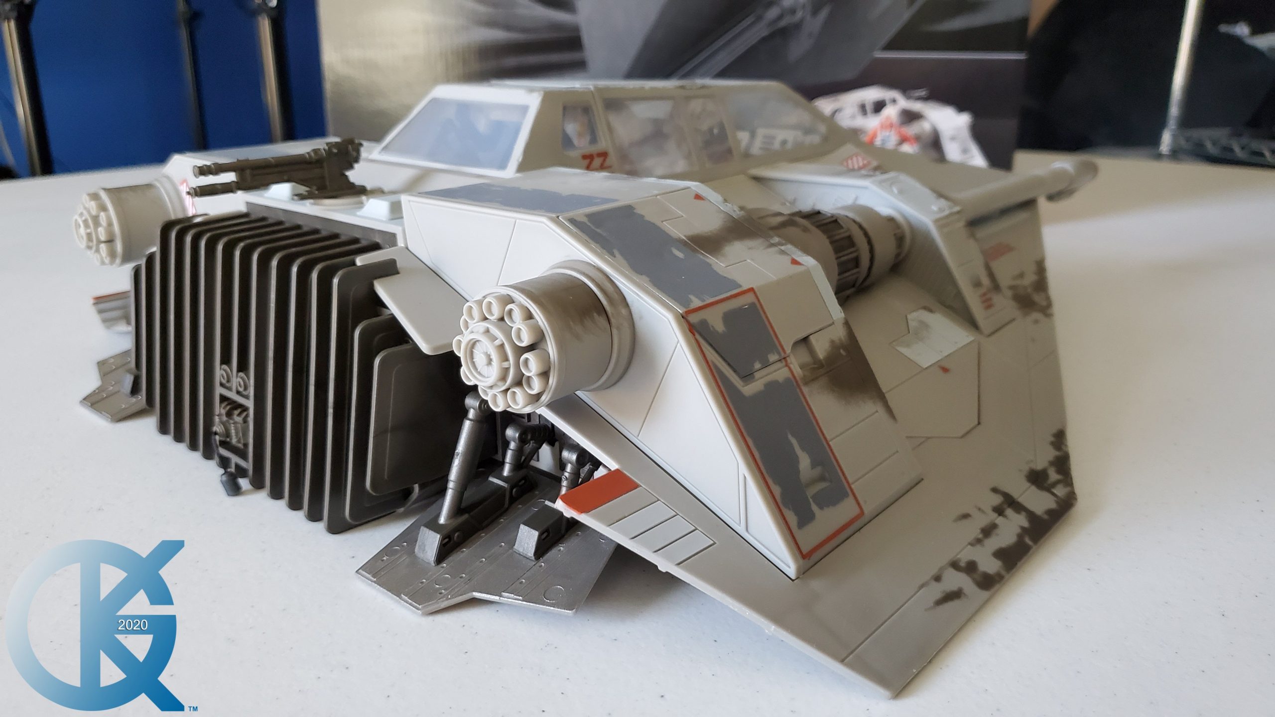 The 2020 Hasbro Black Series Toy next to a Kuhn Global Studio Scale Snowspeeder Replica