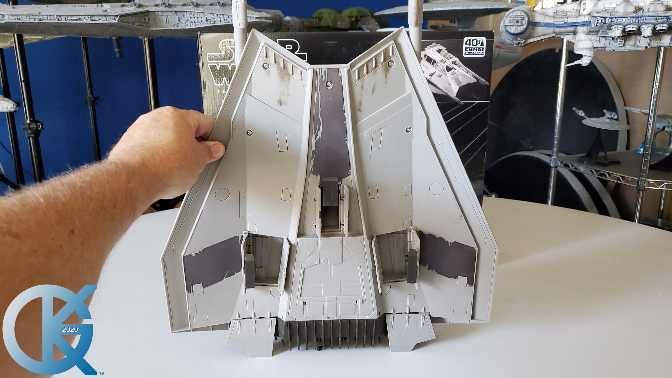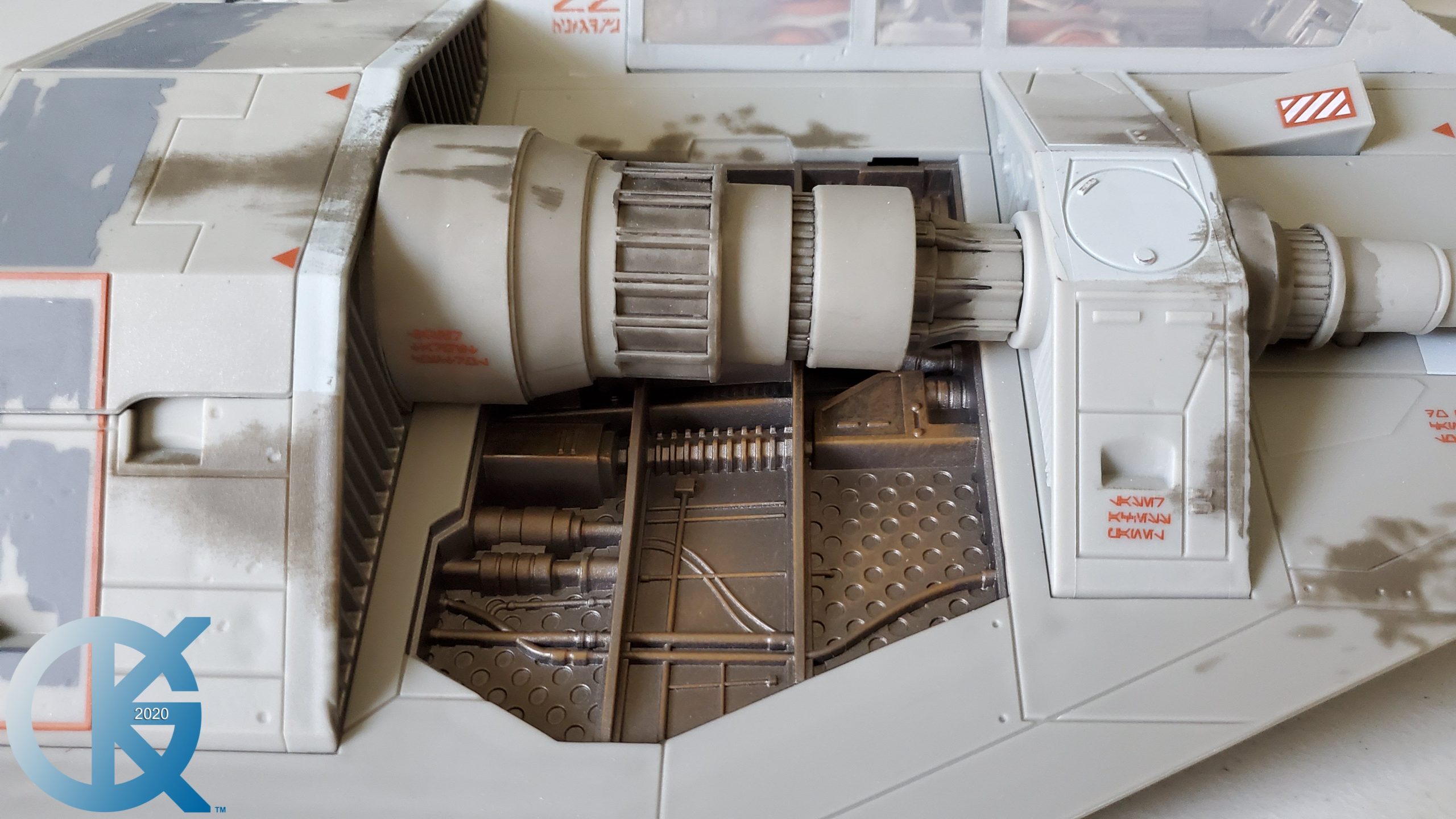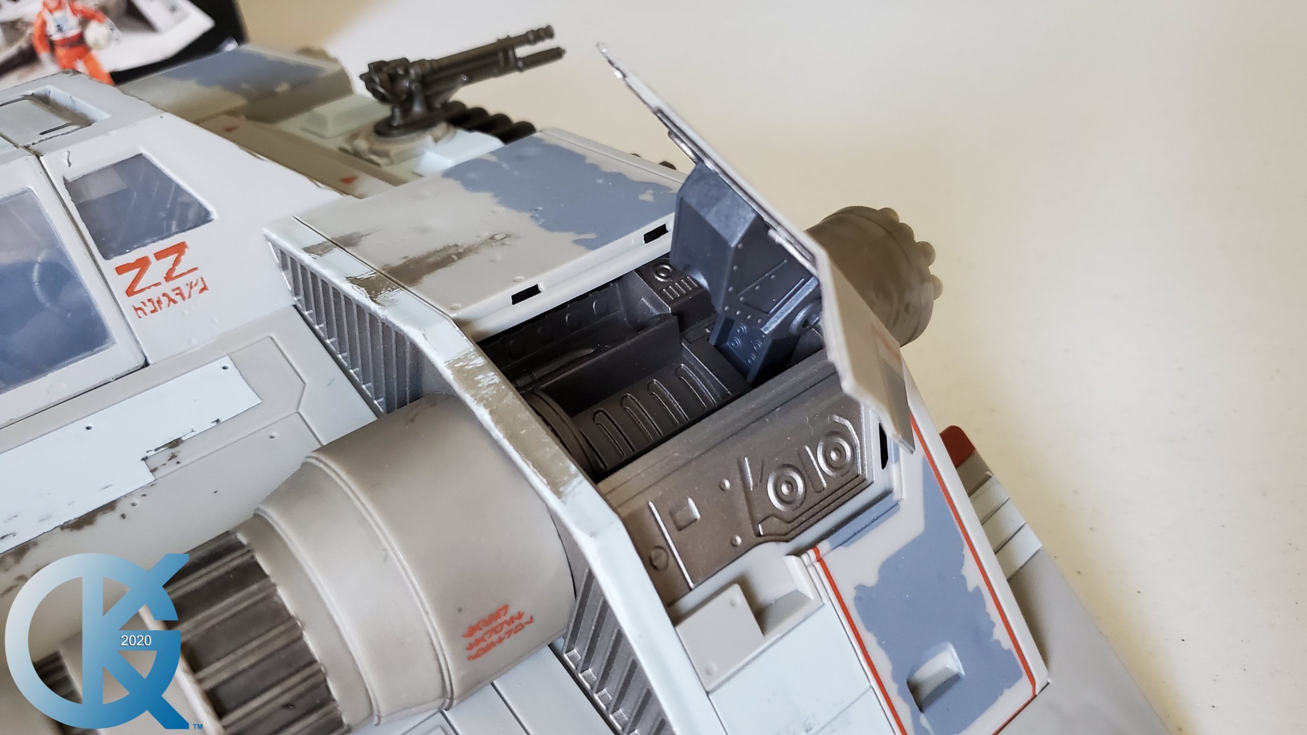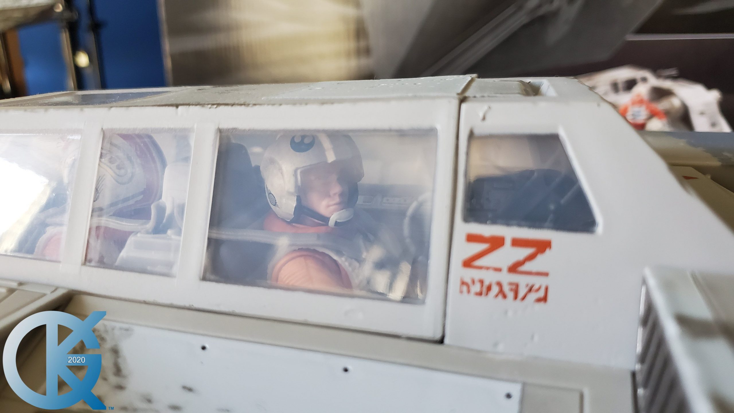Stepping forward to today… about 3 to 4 months ago now (before I caught Covid 19). I was cruising around Amazon Prime and saw this amazing new Black Series Snowspeeder from Hasbro… and it included the Black Series 6 inch Dak Ralter figure! I had to have it, so after adding the Black Series 6 ” ESB Luke Sywalker Pilot Figure to my Cart (to complete the Pilot and Gunner Display), I clicked a few buttons… and I had it in my hands two days later! lol. When I opened this box, I noticed immediately how fantastic the detail is on it. Plus, Dak and Luke actually look like the actors who portrayed them. This toy, if repainted with a few details added, could be filmed as a studio model. It even has the panel on it’s right side able to be removed to display it yet as another miniature from ESB. The air brakes are tightly fit. Getting them to open is a minor challenge (having to pry them open), and when I did get them open, I could not get them to remain open for long. Each would fall back down after a few seconds. I don’t imagine this will be an issue for most people. There are three landing gear legs that disappear nicely under fuselage cover plates. The rear landing gear requires to be pulled out far enough to hear a click (indicating they are locked in place) in order for them to remain open. Even so, I found that when setting the toy on a table, with the rear landing gear in locked position, that if I turned the toy at all, the rear landing gear would become unlocked, and I would find the Snowspeeder then resting on it’s rear wings. For me it s not a concern, and the gear positioning, as well as it’s design ‘look’ are well done in my own opinion. The canopy opens wide and the interior is AWESOME! The details Hasbro placed in this toy are amazing. You are getting what you pay for in the hefty price these go for today. The canopy also fits tightly, making it difficult to open. Also, the canopy windows are not clear, however…. having a cloudy look about them. I thought at first there may be a thin protective film on them I may remove, but that is not the case here. It is what it is.. and this toy is still very cool! It is a large toy and when placed next to the studio model replicas I have here, you can see they are nearly the same size (tip to stern), but with a noticeable different in Pilot size. If I remember correctly (and I may be wrong) the studio scale T-47 had 1/8 scale Figures in it. Hasbro is using the 1/10 scale figures. I believe Hasbro went for a realistic scale between the figure and the toy here. The studio model really packed in the pilot and gunner, nearly making it impossible for the pilot to even sit in the cockpit. If one is to look at the life sized filming prop, you can see the size of the Snowspeeder to be about the size of the smallest Mini Cooper car. The size comparison for this new toy (as compared to the 6″ figures) makes the Snowspeeder nearly the size of a basic 1/2 ton Ford F-150 Truck. To be honest… I really don’t care as the figures now look proportioned correctly. It is funny however that instead of taking the Kenner approach in mis-sizing, this time Hasbro made a toy to the size of the 6″ figure instead of making it to the size it could have been (packing the 6″ figure into a smaller form vehicle, and matching the studio model). Making the vehicle smaller would have made it impossible to get the figures in, because it would have required to much bending that the figures simply could not do.