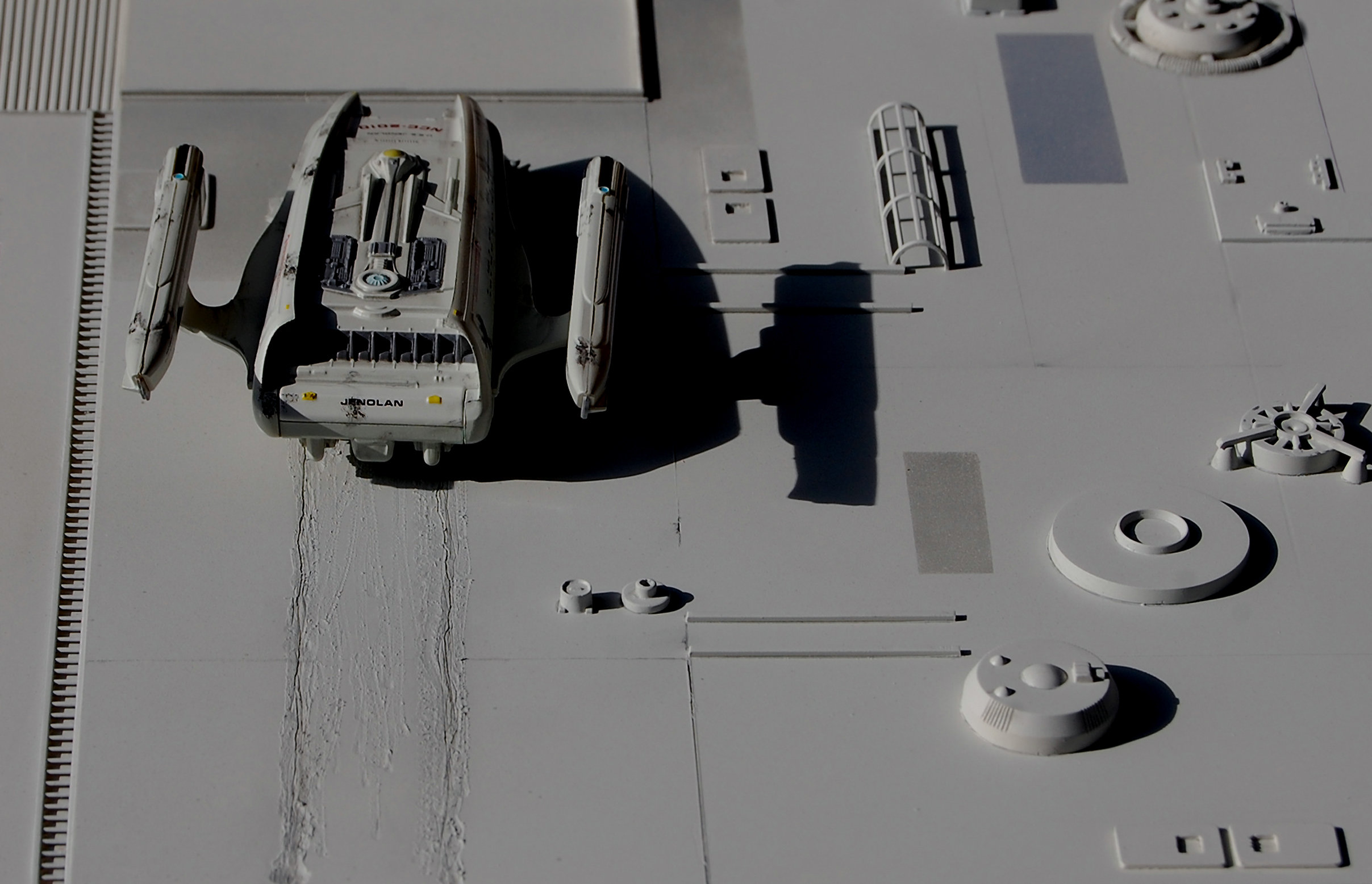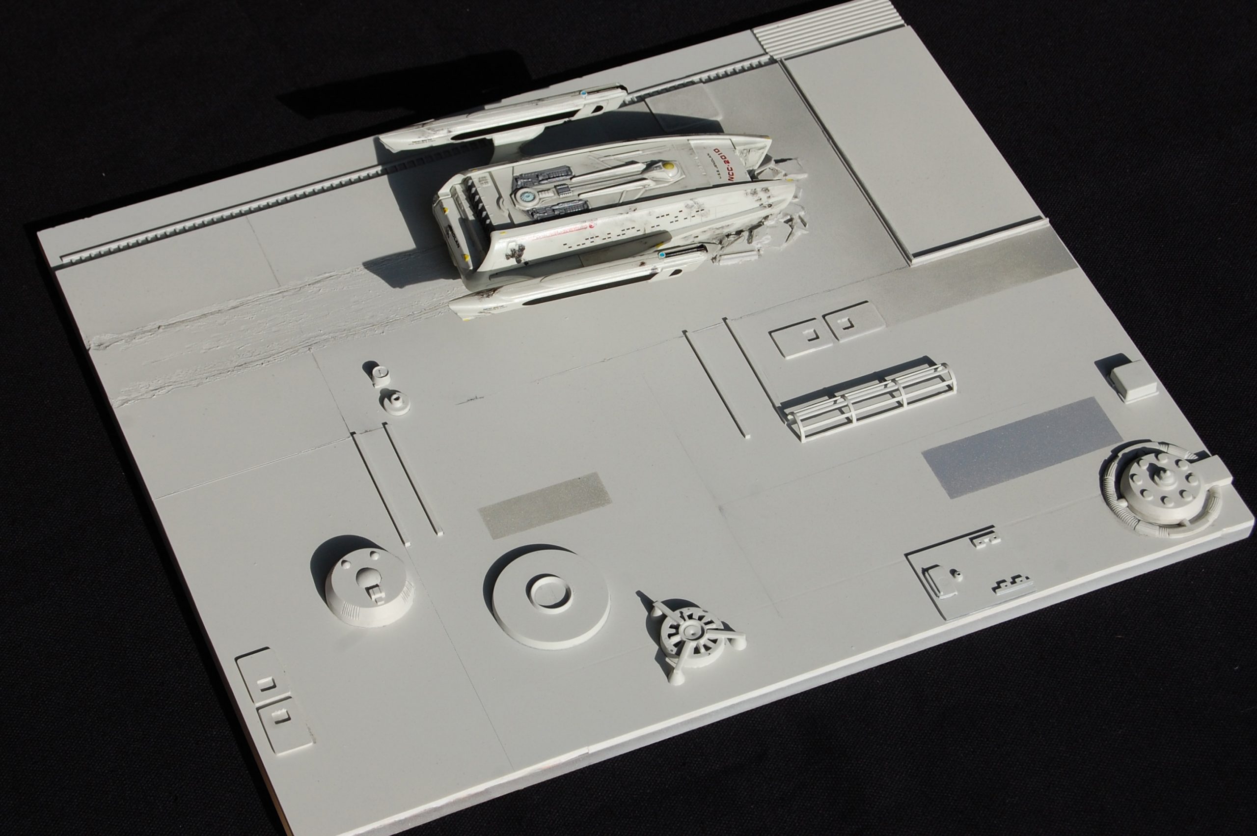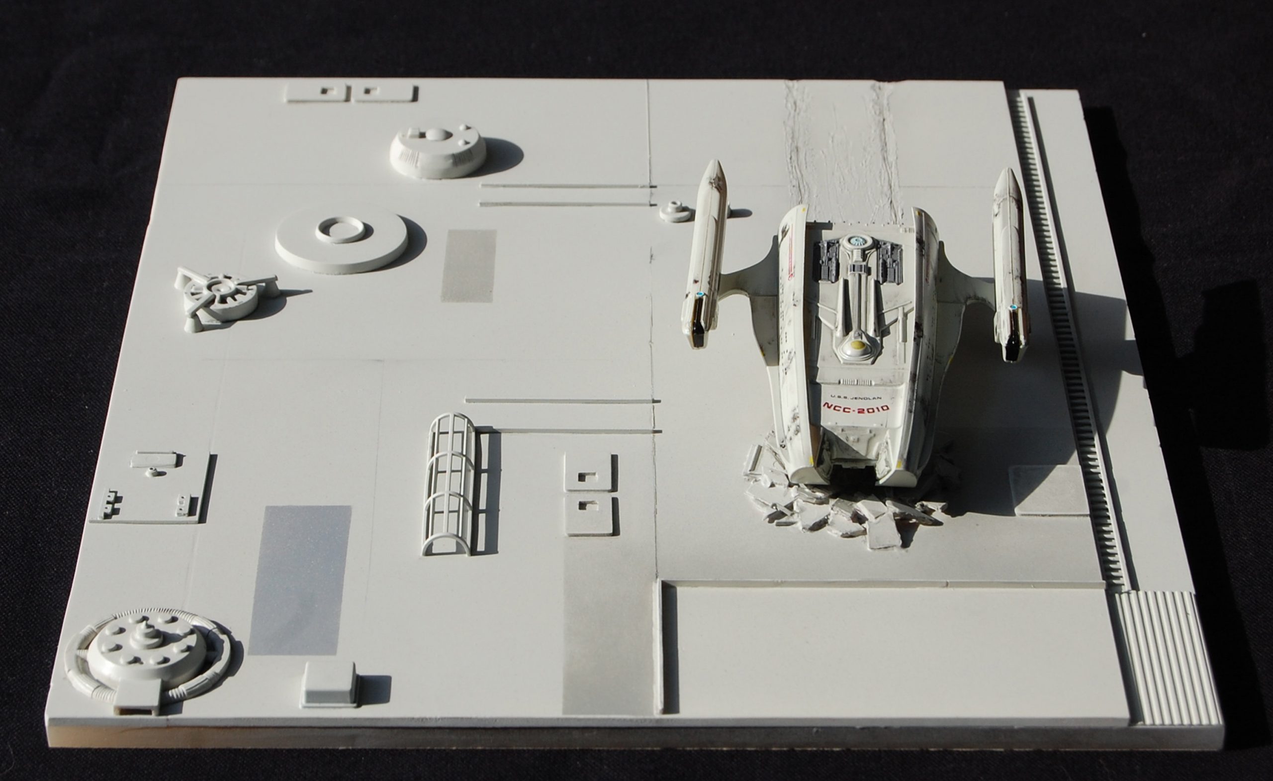 Here is a beautiful diorama display from famed artist Adam K. Johnson! As seen in Star Trek: The Next Genreation, it is the USS JENOLAN as it we viewed it as crashed onto a Dyson Sphere! The episode was one that we all loved, as we were able to see Scotty one more time when he was rescued from being in a Transporter Loop for decades upon decades. This model is brilliant, and very much perfectly detailed! Fantastic work!