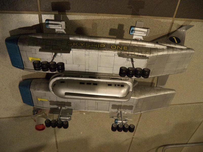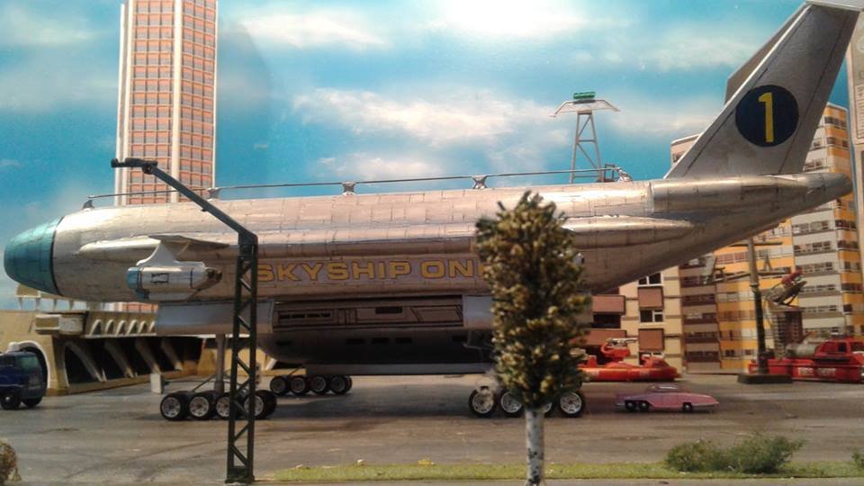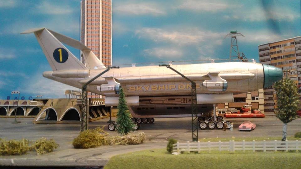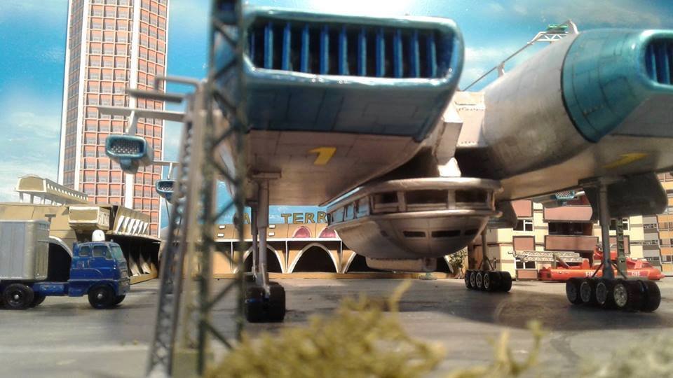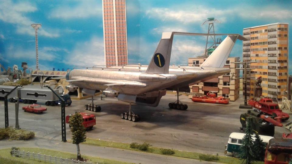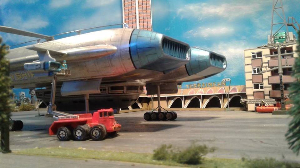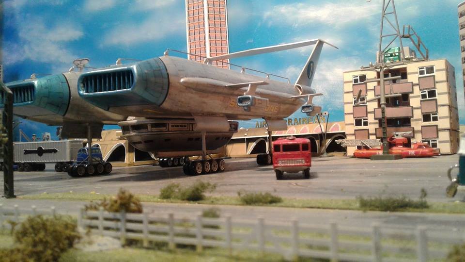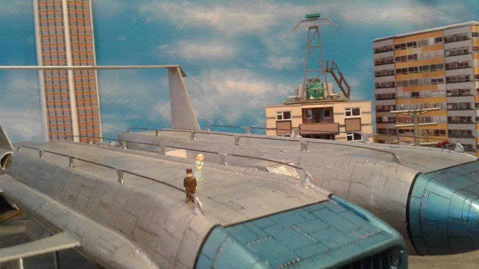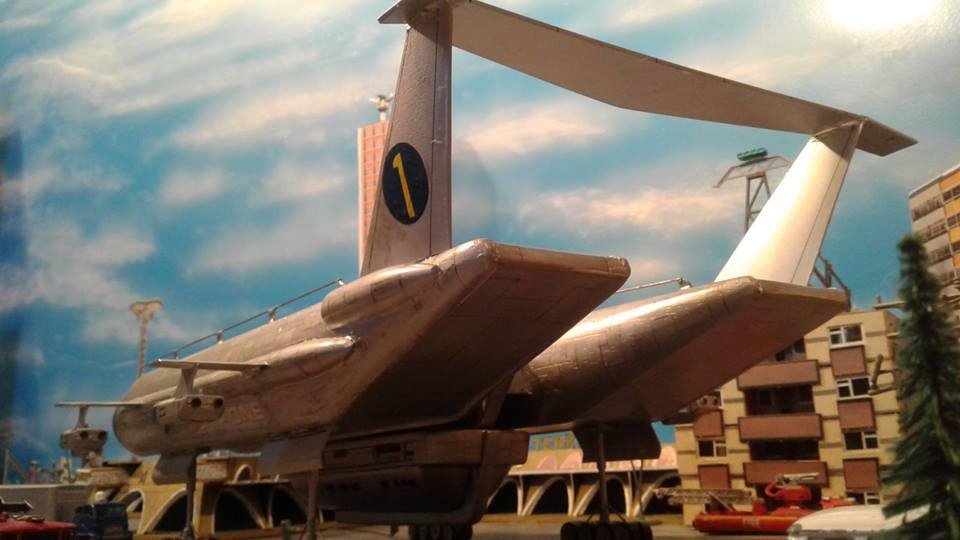 This is another scratch build I made. In the movie Brains, pretending to be a scientist, designs this futuristic airship for an airline company. On board is Lady P. On its maiden flight it’s taken over by the bad guys who try to trick Lady P into giving voice recordings in order to mix them and make a call to International Rescue, that they may meet her at a secret location. Then the bad guys can steel the Thunderbirds Craft!