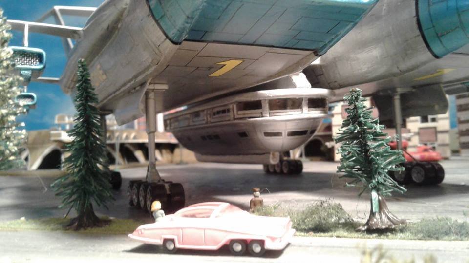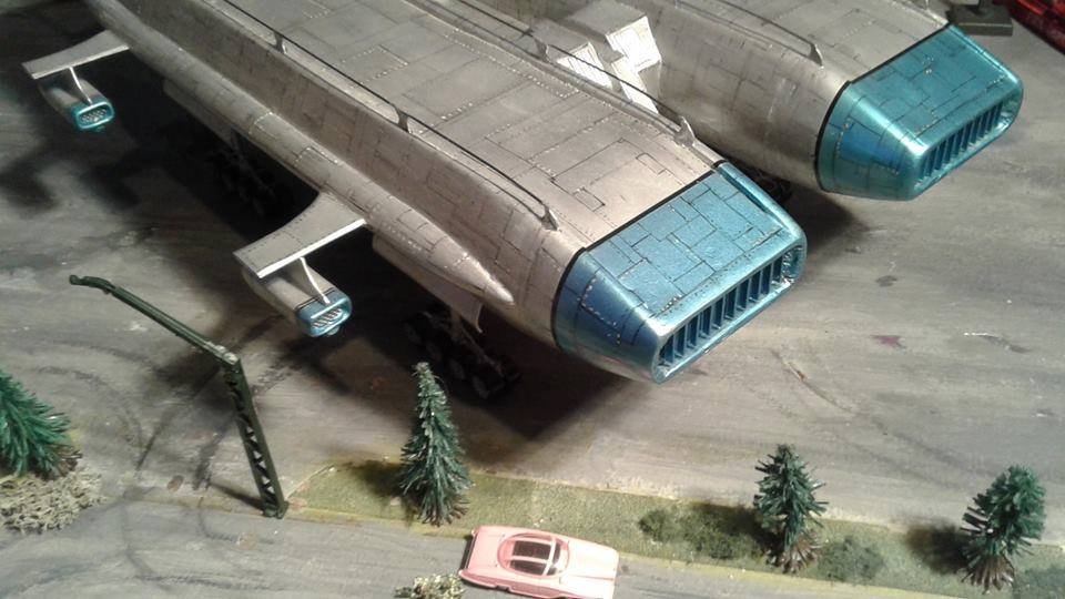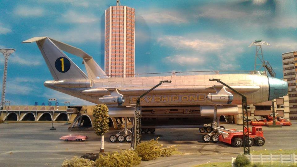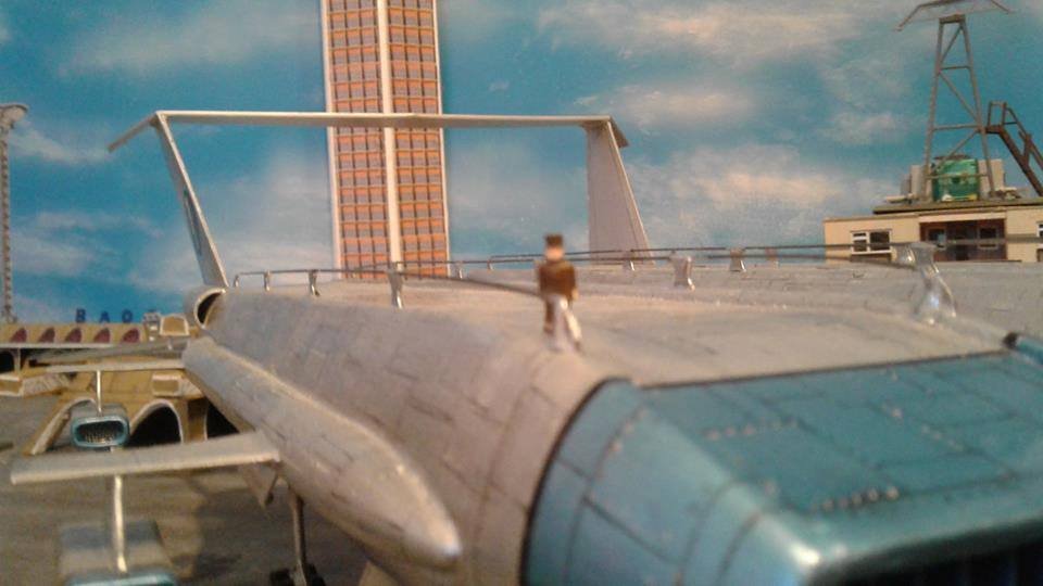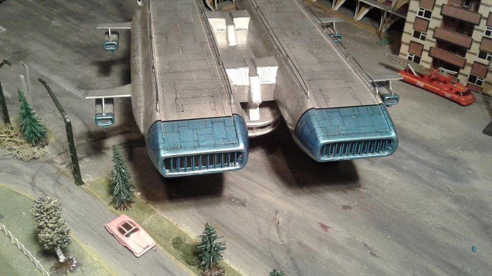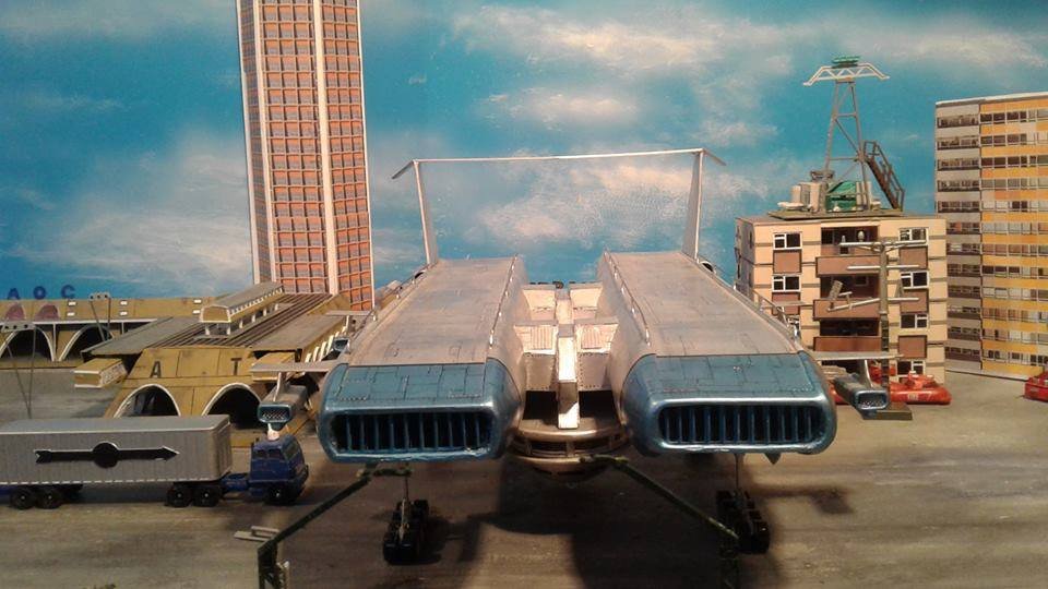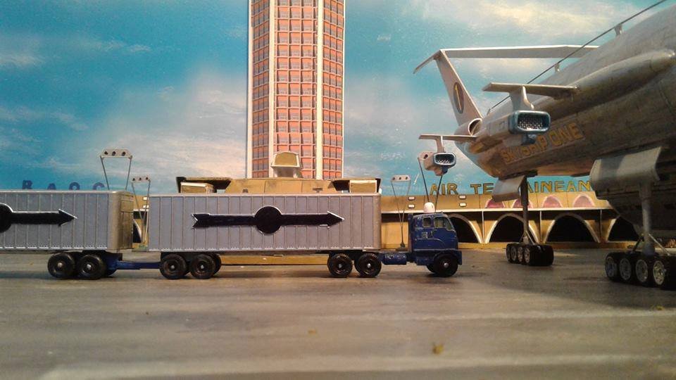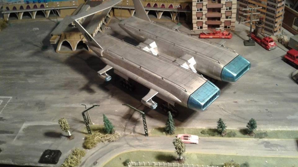 This is another scratch build I made. In the movie Brains, pretending to be a scientist, designs this futuristic airship for an airline company. On board is Lady P. On its maiden flight it’s taken over by the bad guys who try to trick Lady P into giving voice recordings in order to mix them and make a call to International Rescue, that they may meet her at a secret location. Then the bad guys can steel the Thunderbirds Craft!