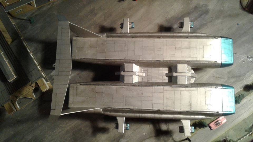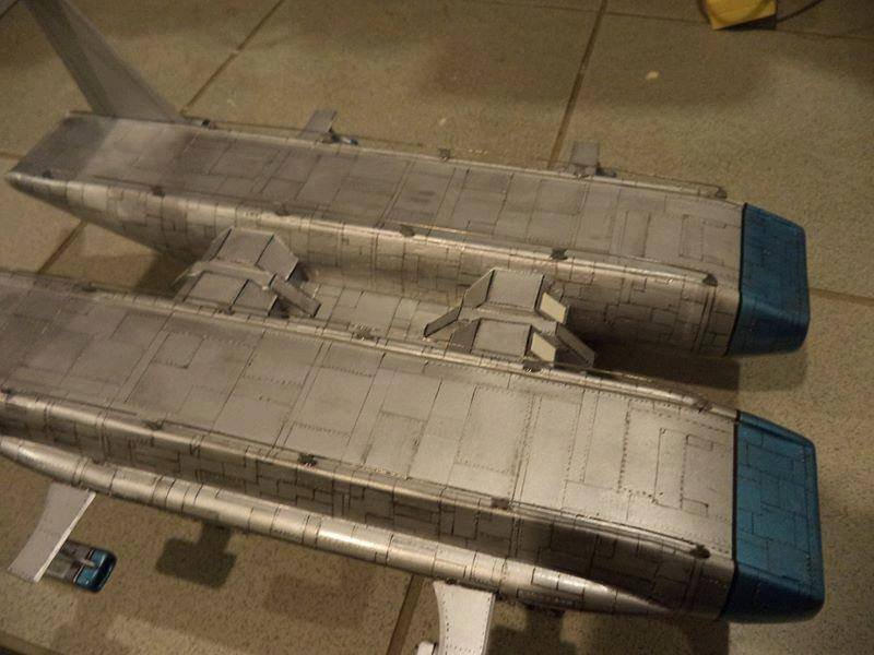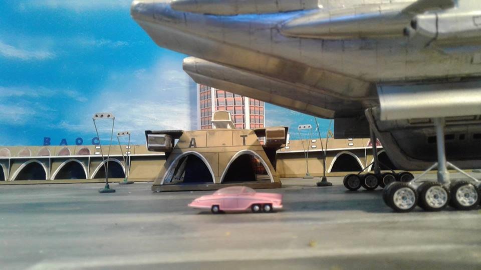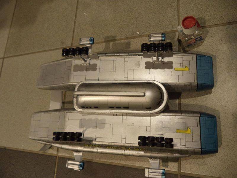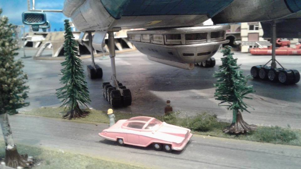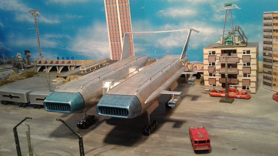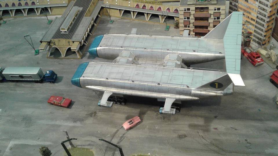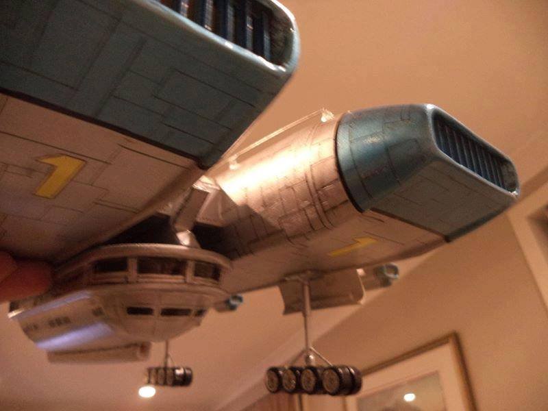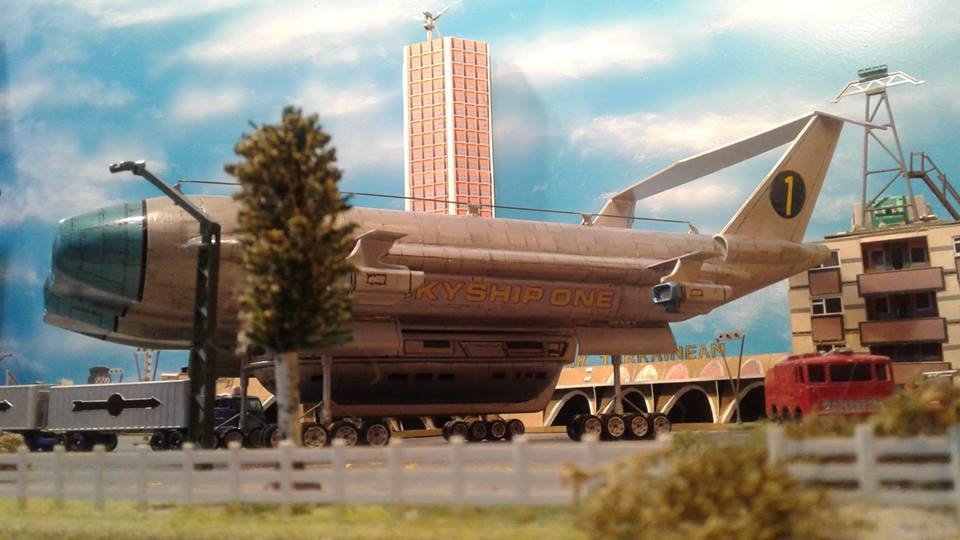 This is another scratch build I made. In the movie Brains, pretending to be a scientist, designs this futuristic airship for an airline company. On board is Lady P. On its maiden flight it’s taken over by the bad guys who try to trick Lady P into giving voice recordings in order to mix them and make a call to International Rescue, that they may meet her at a secret location. Then the bad guys can steel the Thunderbirds Craft!
