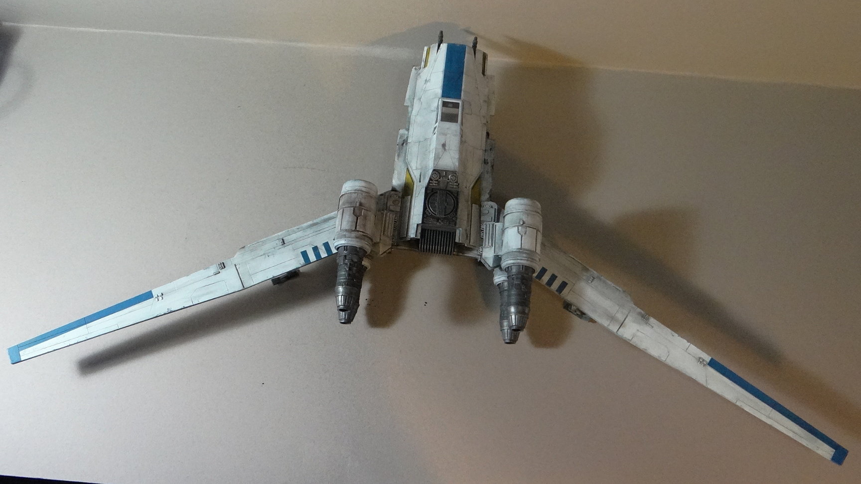 Finished model is approx. 19.25″ L X 7.5″ W (wings forward) or 28″ W (wings spread).