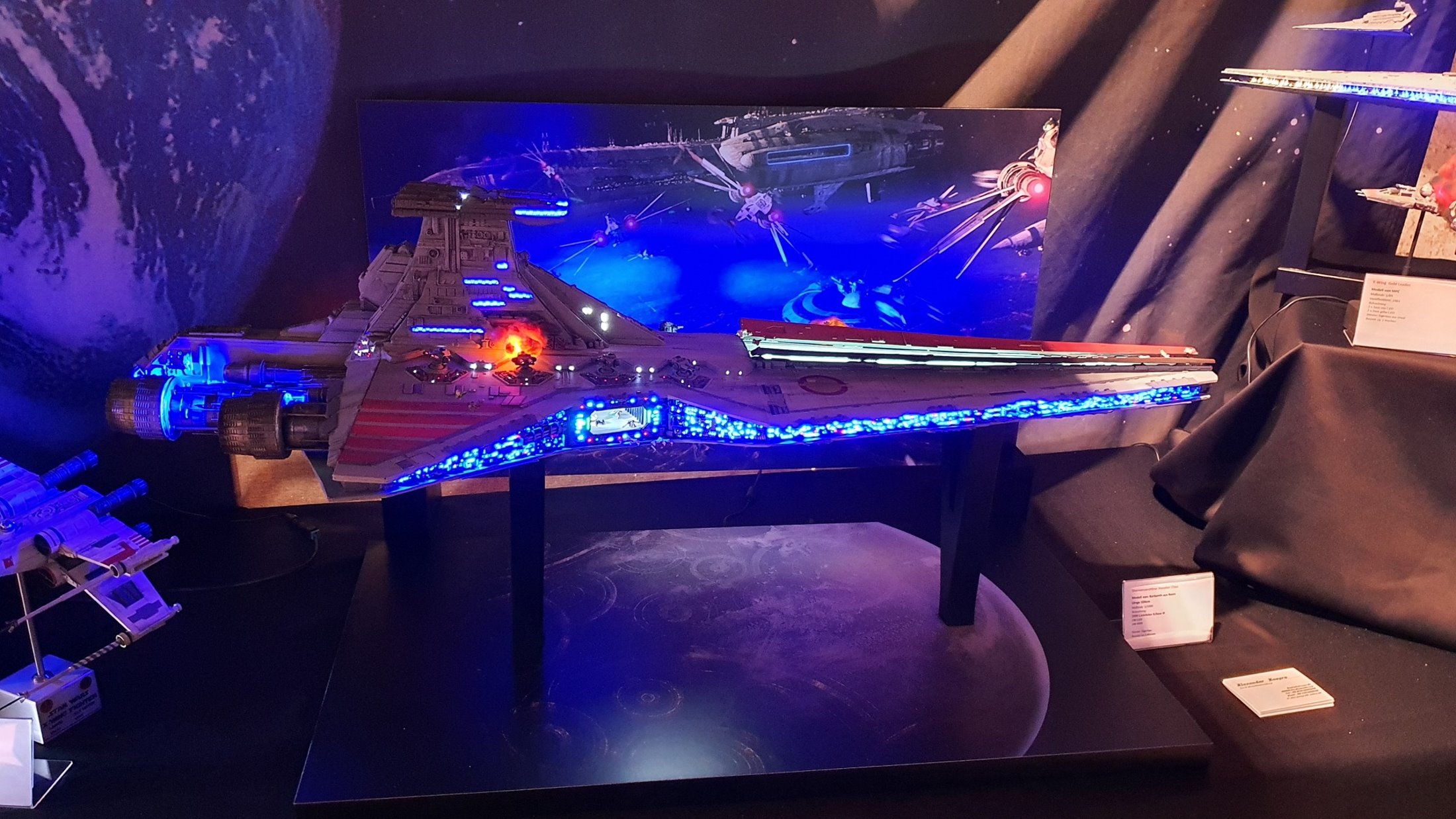 Hier mein aktuelles Modell. Die Venator Class von Korbanth. Mit 2500 Lichtwellenleiter und 290 LED´s Bauzeit 5 Monate.