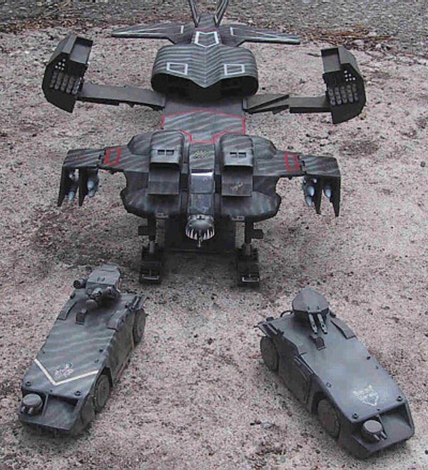 The Terran United States Colonial Marines’ AD-17 Comanche is a low-orbital-to-air assault craft that is dropped from an orbiting Starship carrier. It is equipped with a cargo bay that can deliver a land assault vehicle such as the M-577 Powell Armored Personnel Carrier. The Comanche then lifts off to provide air support with its heavy ordnance load. This is a highly unique and creative tactical combination that exploits the limited technology of the Terran’s to their fullest.