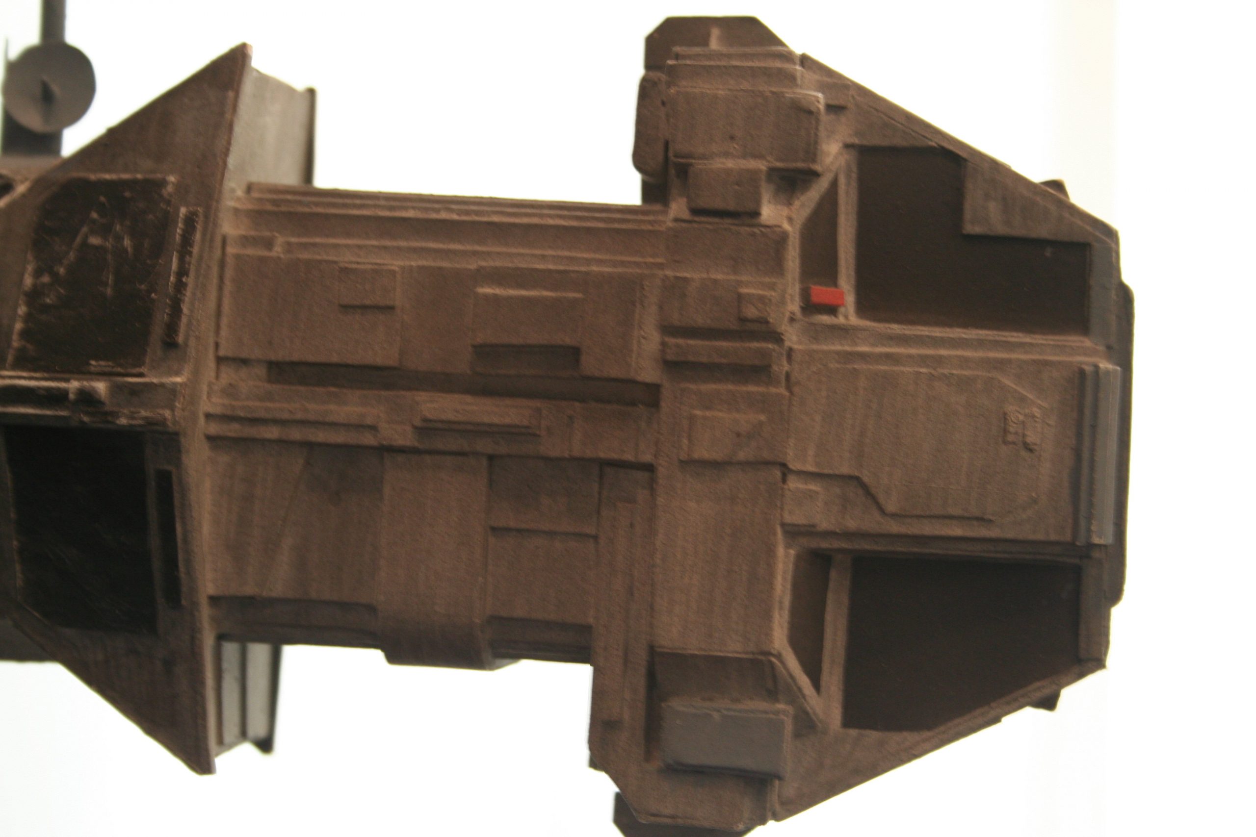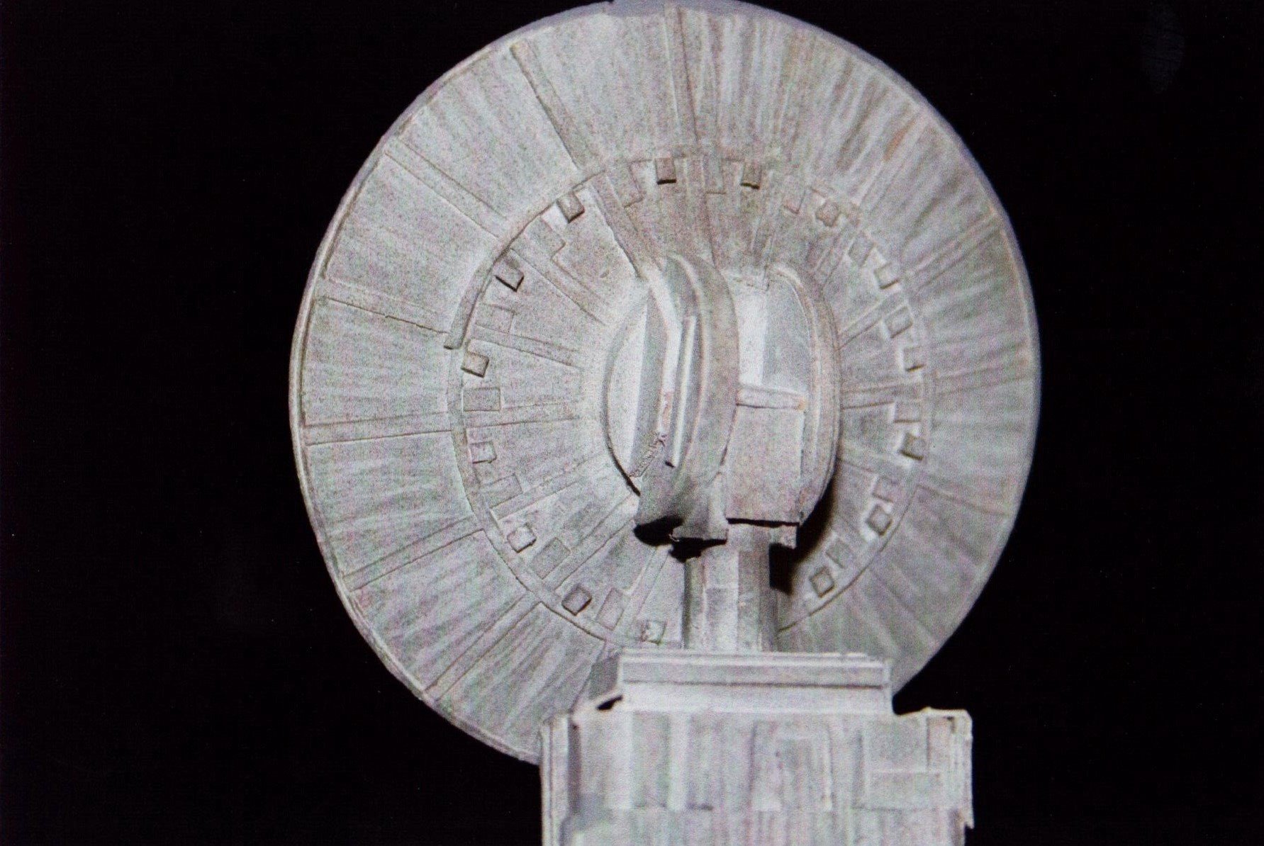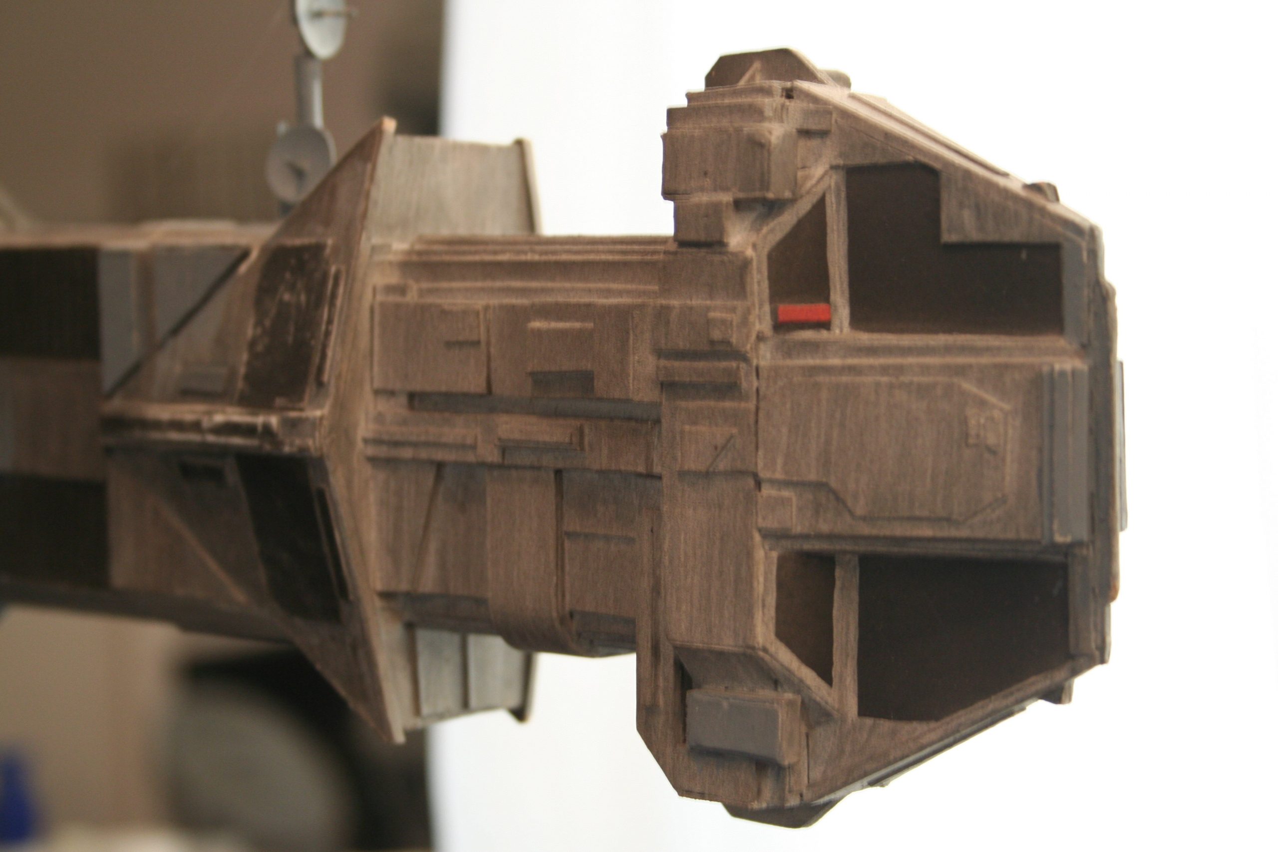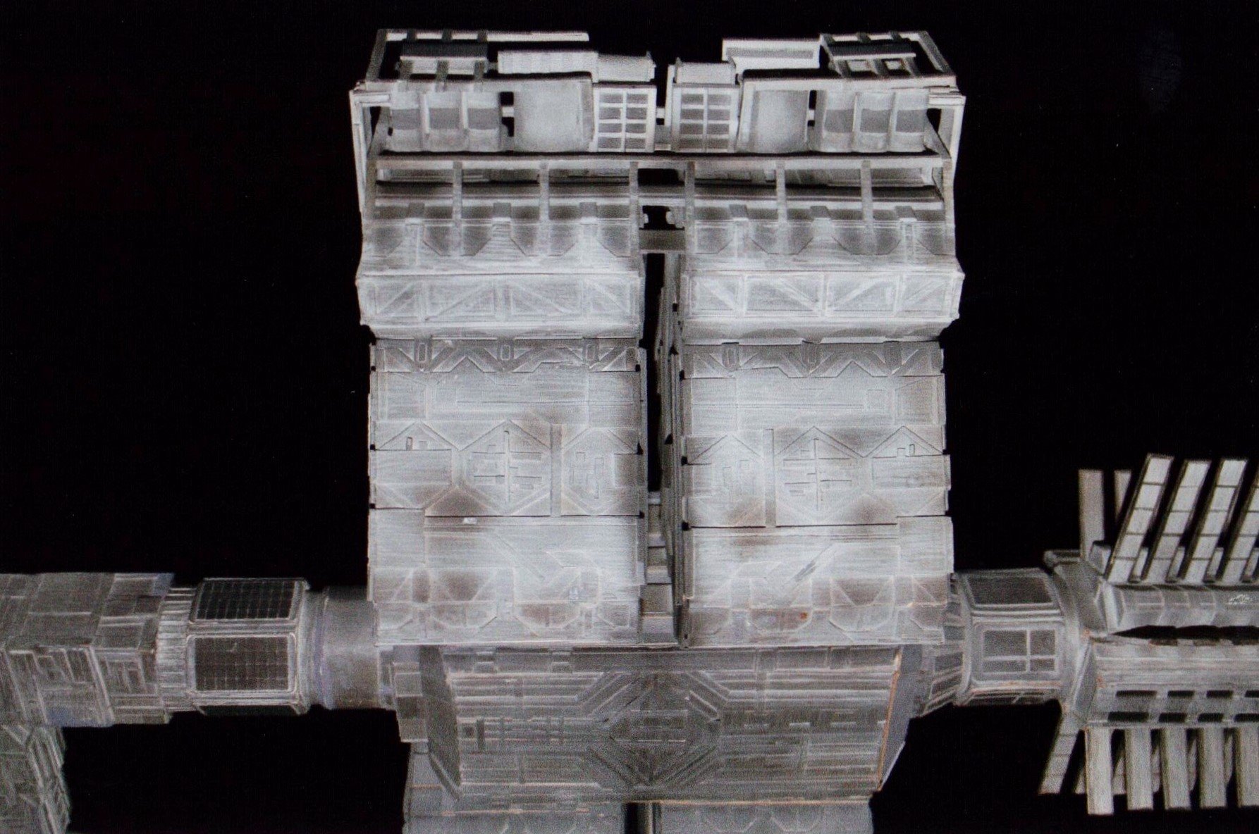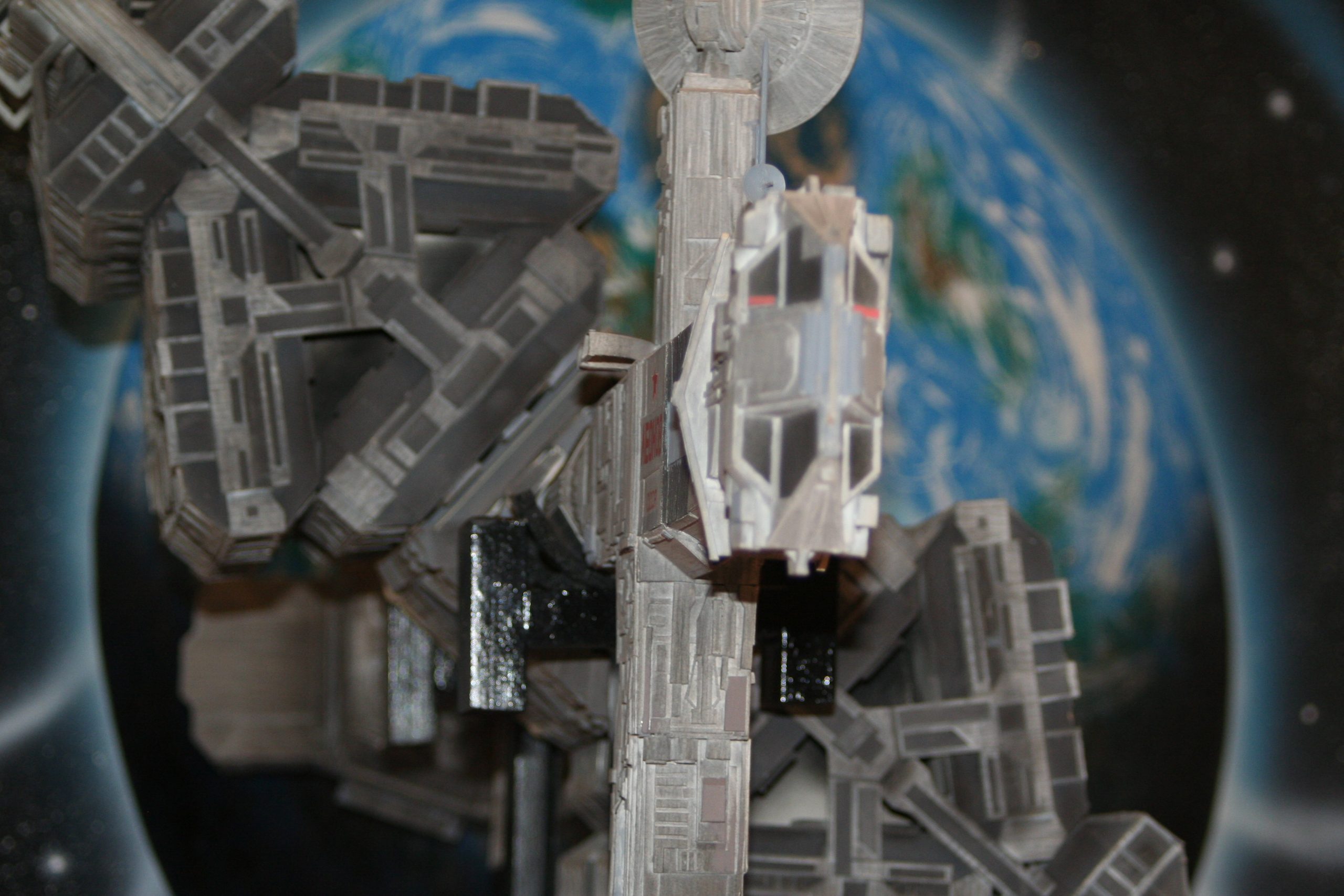 I finally got to scan some old photos of the Leonov that I made from scratch back in 1986/87. It took a year and four months to complete. It was airbrushed with tempera and dry brushed with black and white wash. The two small dishes where made from a Ping-Pong ball. The docking ring, the large dish and cabins are poseable. At 4ft. long it is still the largest model I have ever made. This model was made on a “dare” from an old high school friend who lent me his Cinefex and 2010 magazine special. He also taught me how to paint it. To him I say,…”Thanks Rudy!”