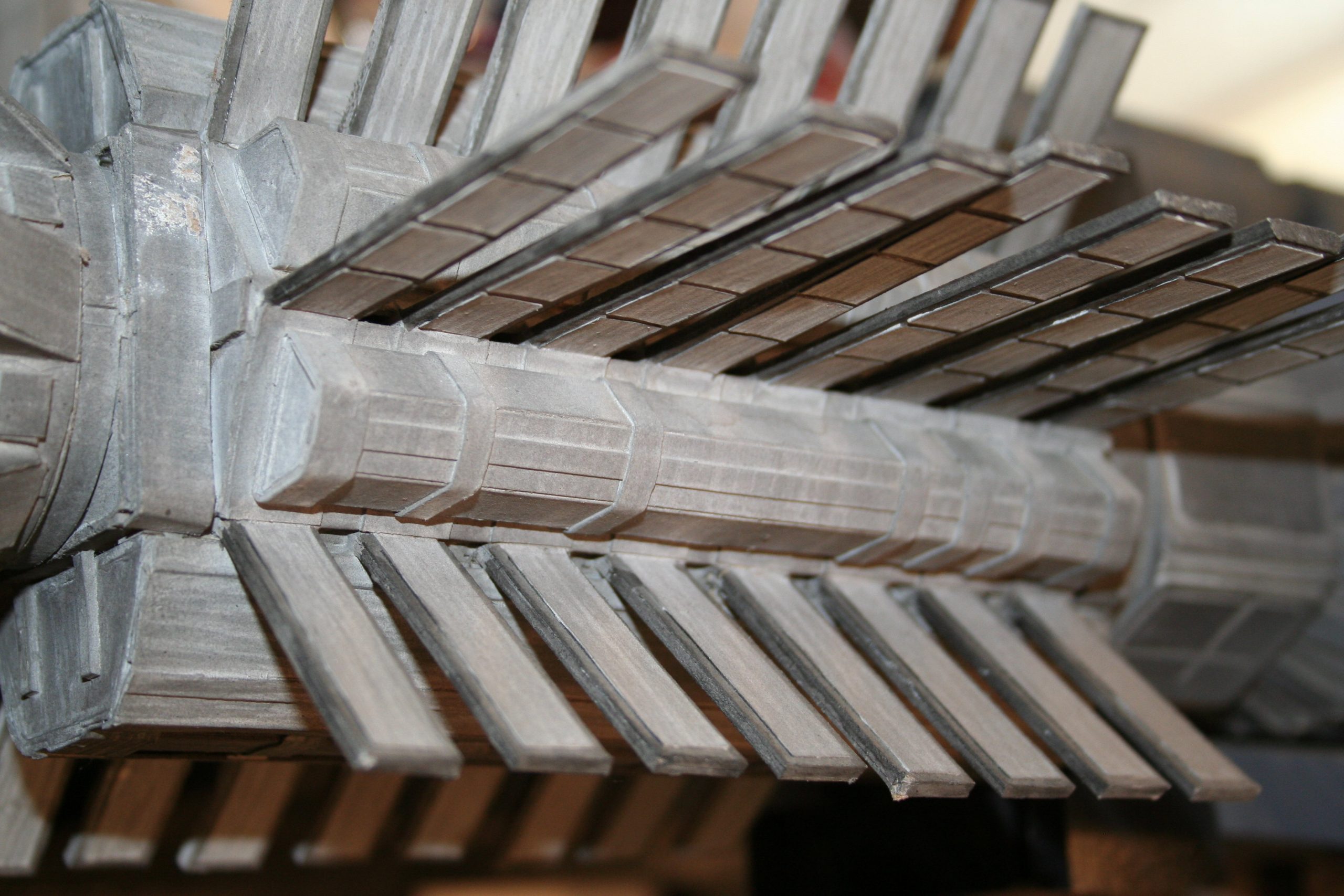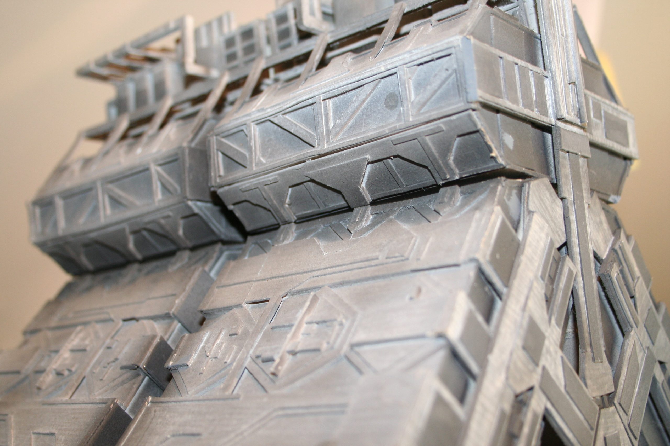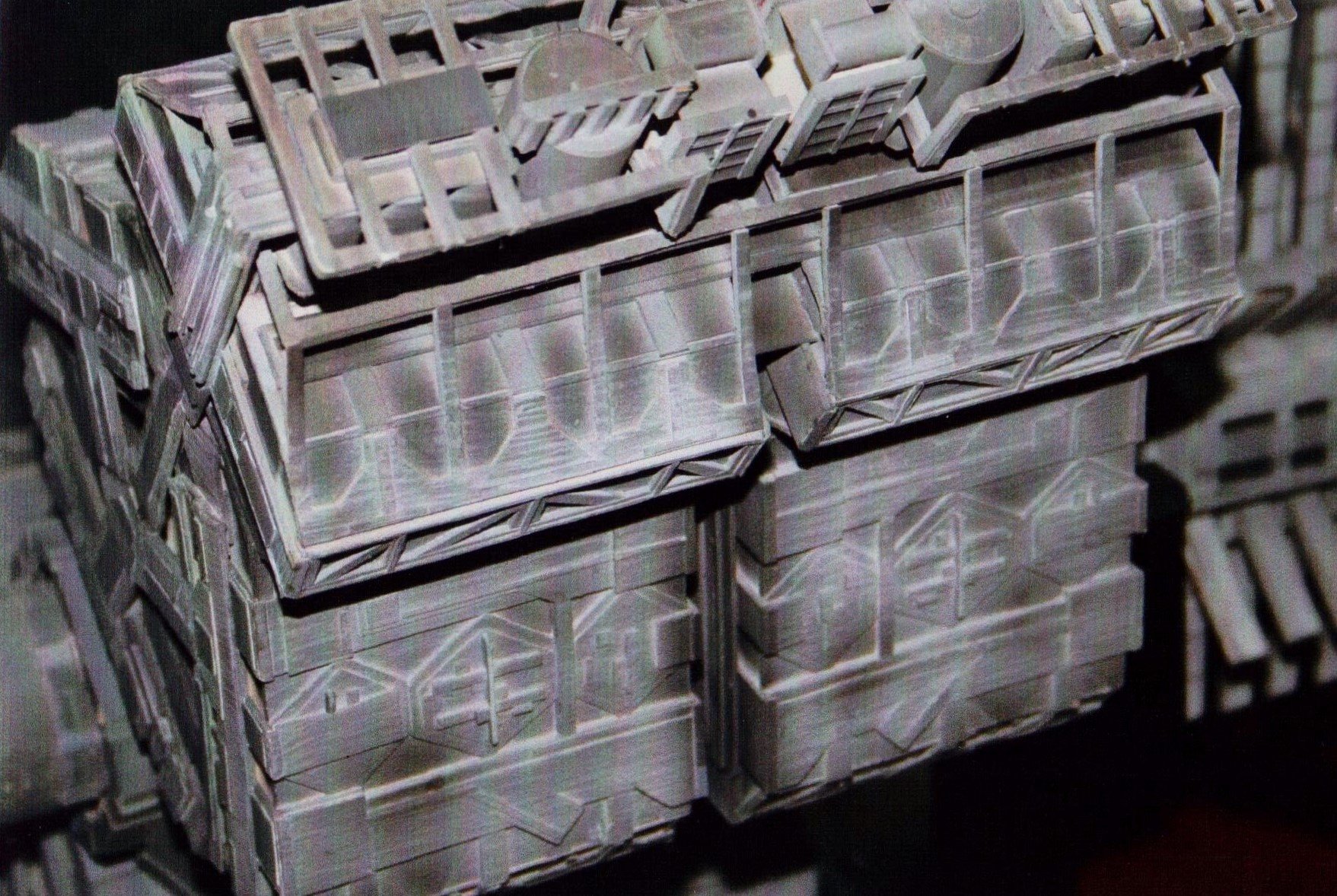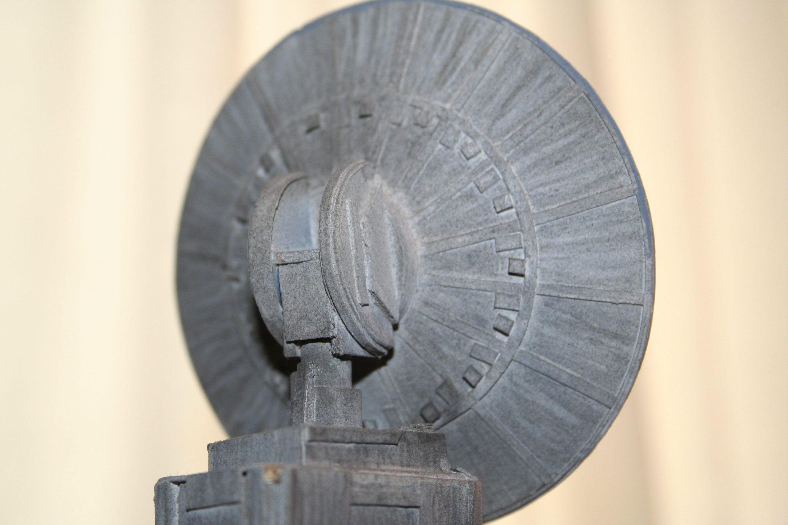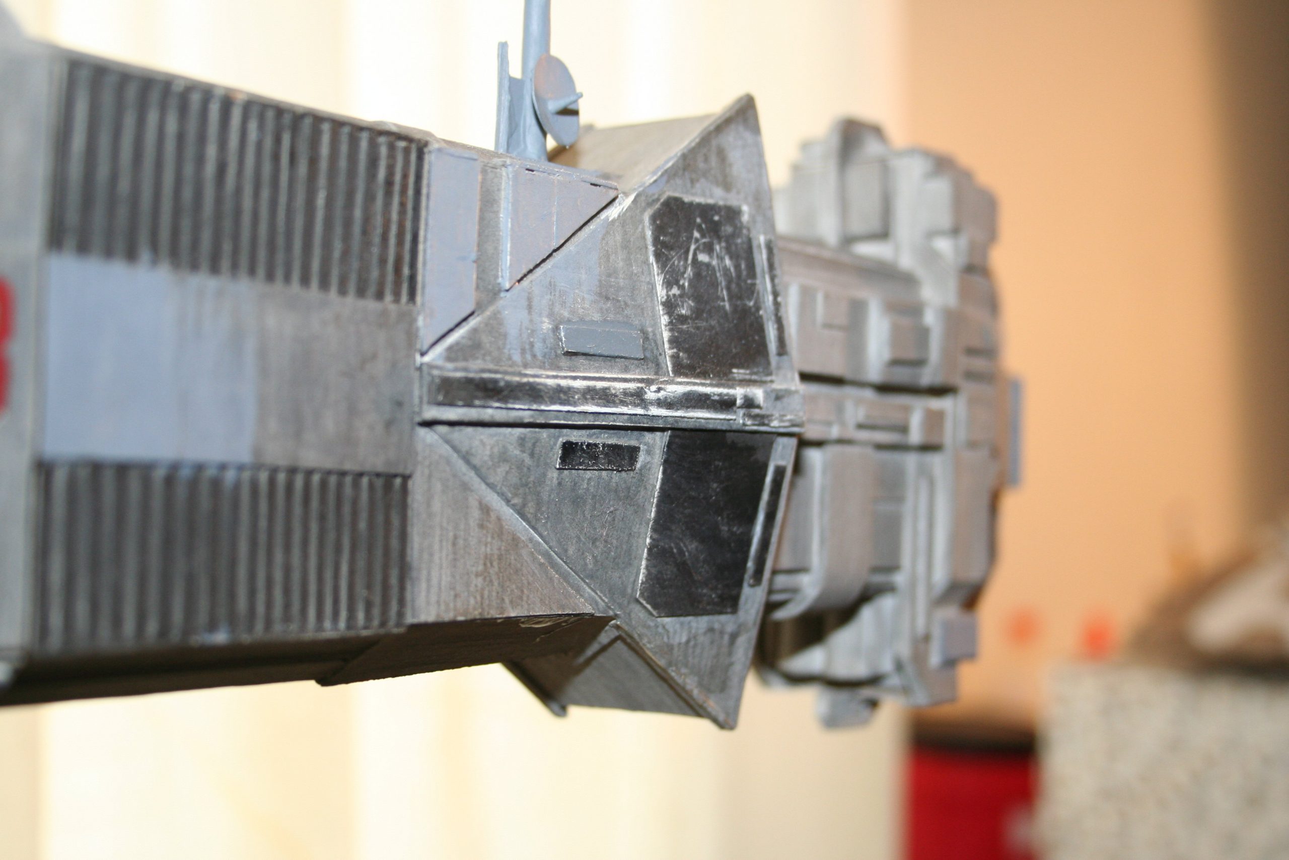 I finally got to scan some old photos of the Leonov that I made from scratch back in 1986/87. It took a year and four months to complete. It was airbrushed with tempera and dry brushed with black and white wash. The two small dishes where made from a Ping-Pong ball. The docking ring, the large dish and cabins are poseable. At 4ft. long it is still the largest model I have ever made. This model was made on a “dare” from an old high school friend who lent me his Cinefex and 2010 magazine special. He also taught me how to paint it. To him I say,…”Thanks Rudy!”
