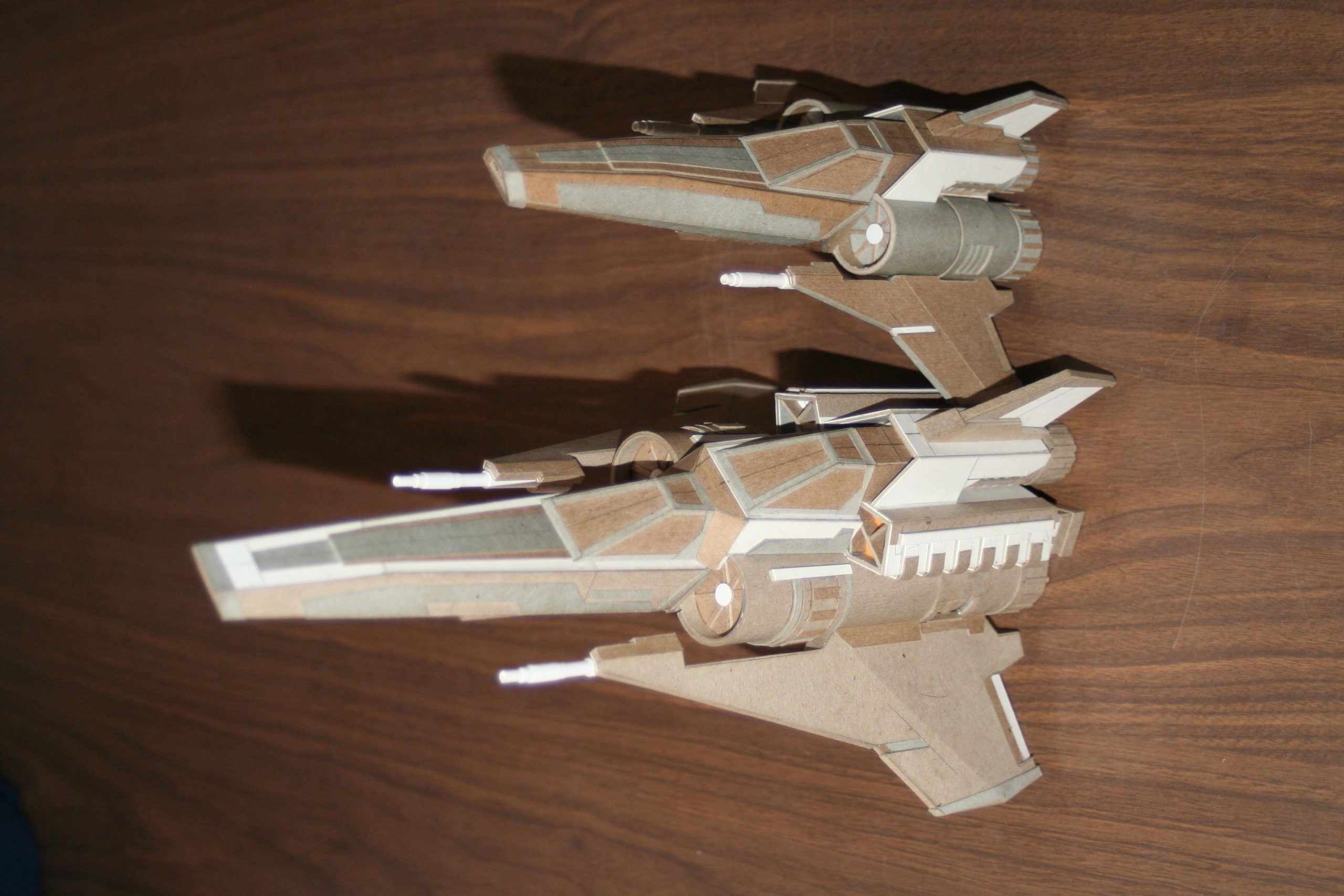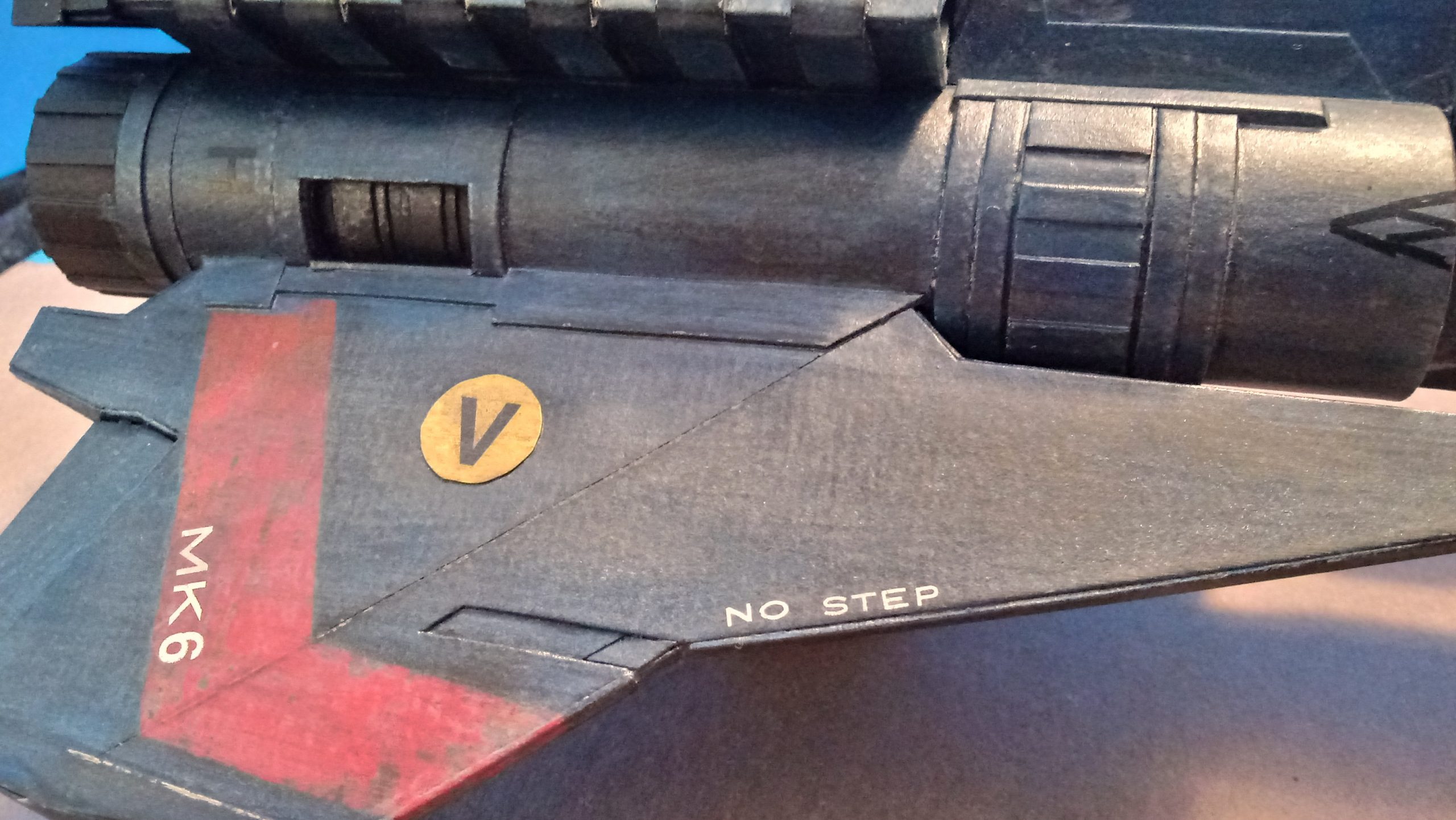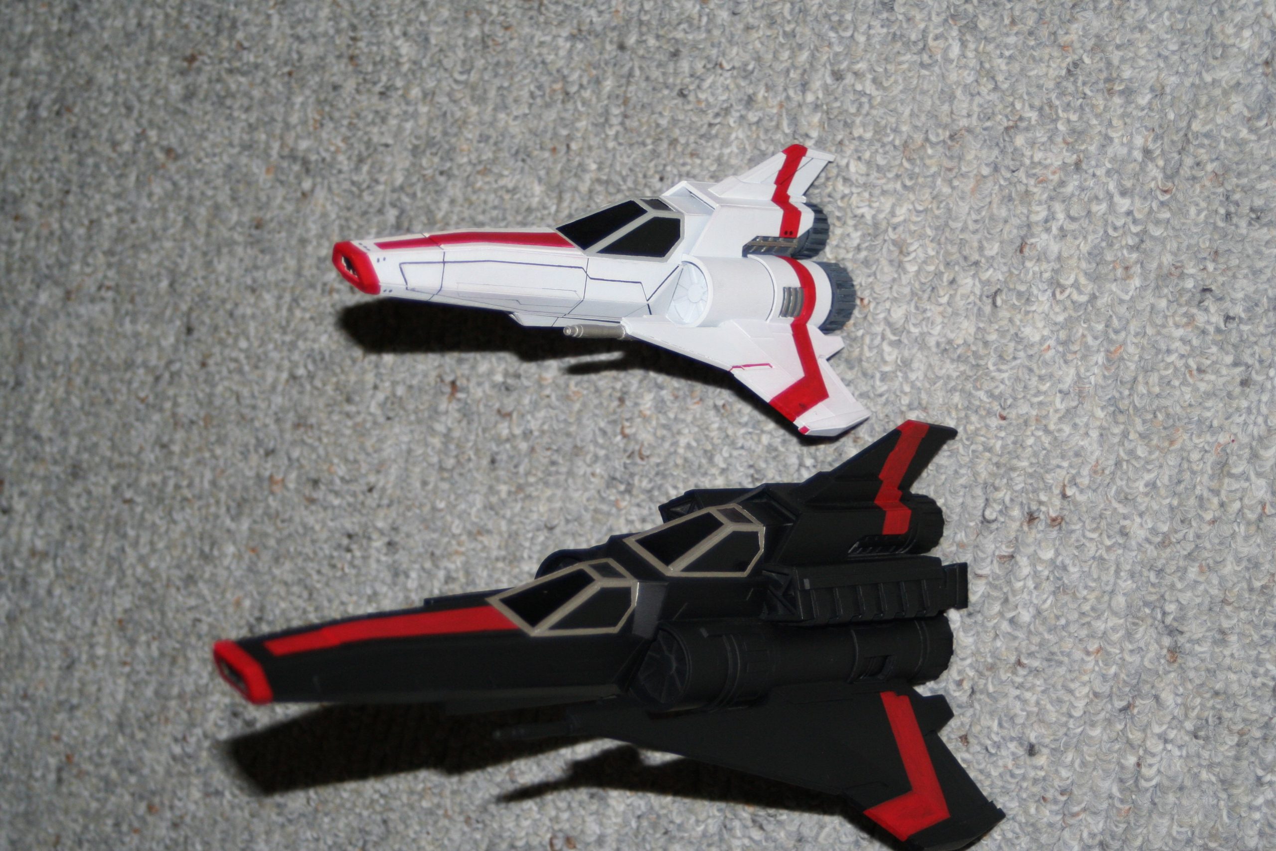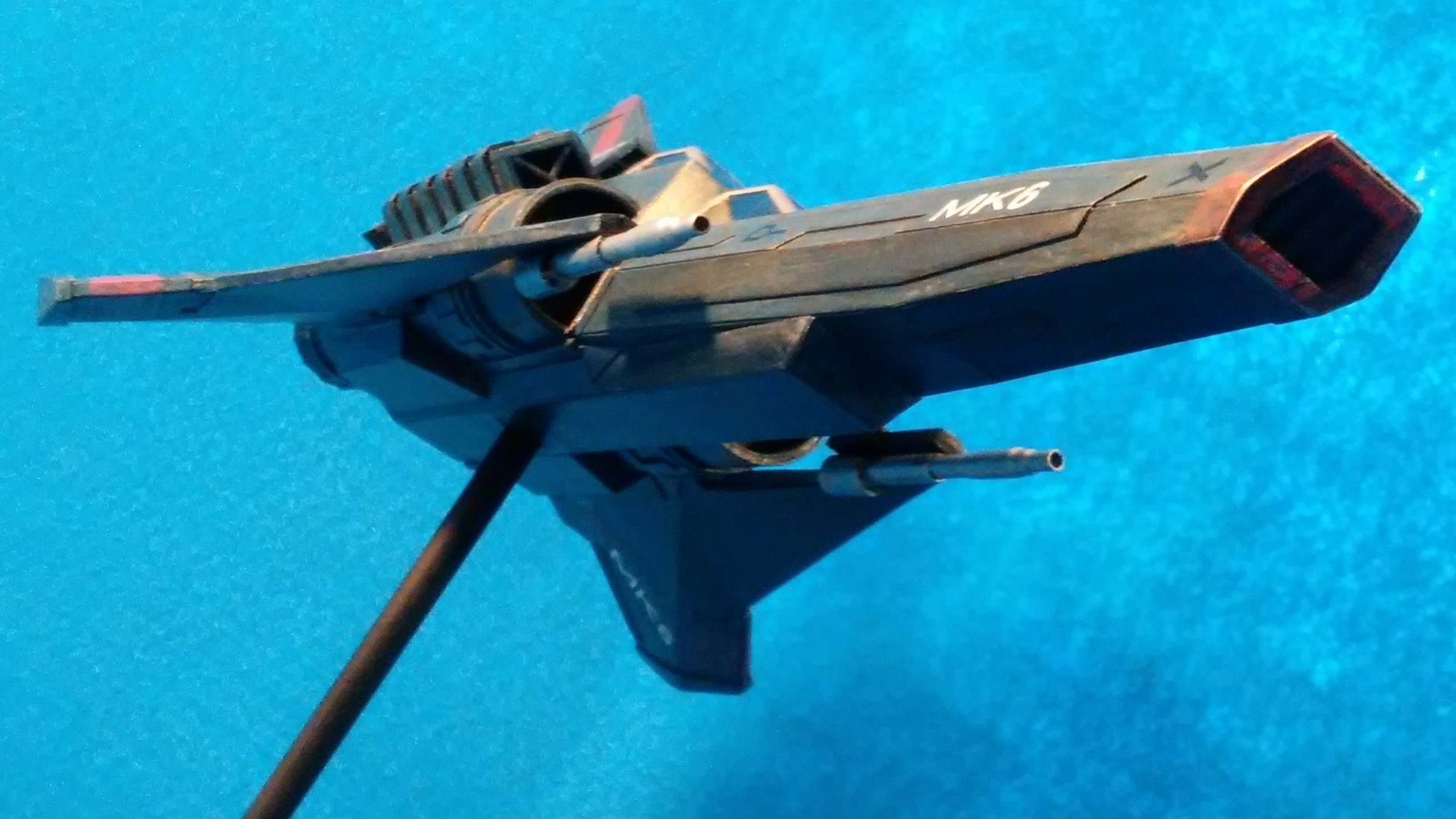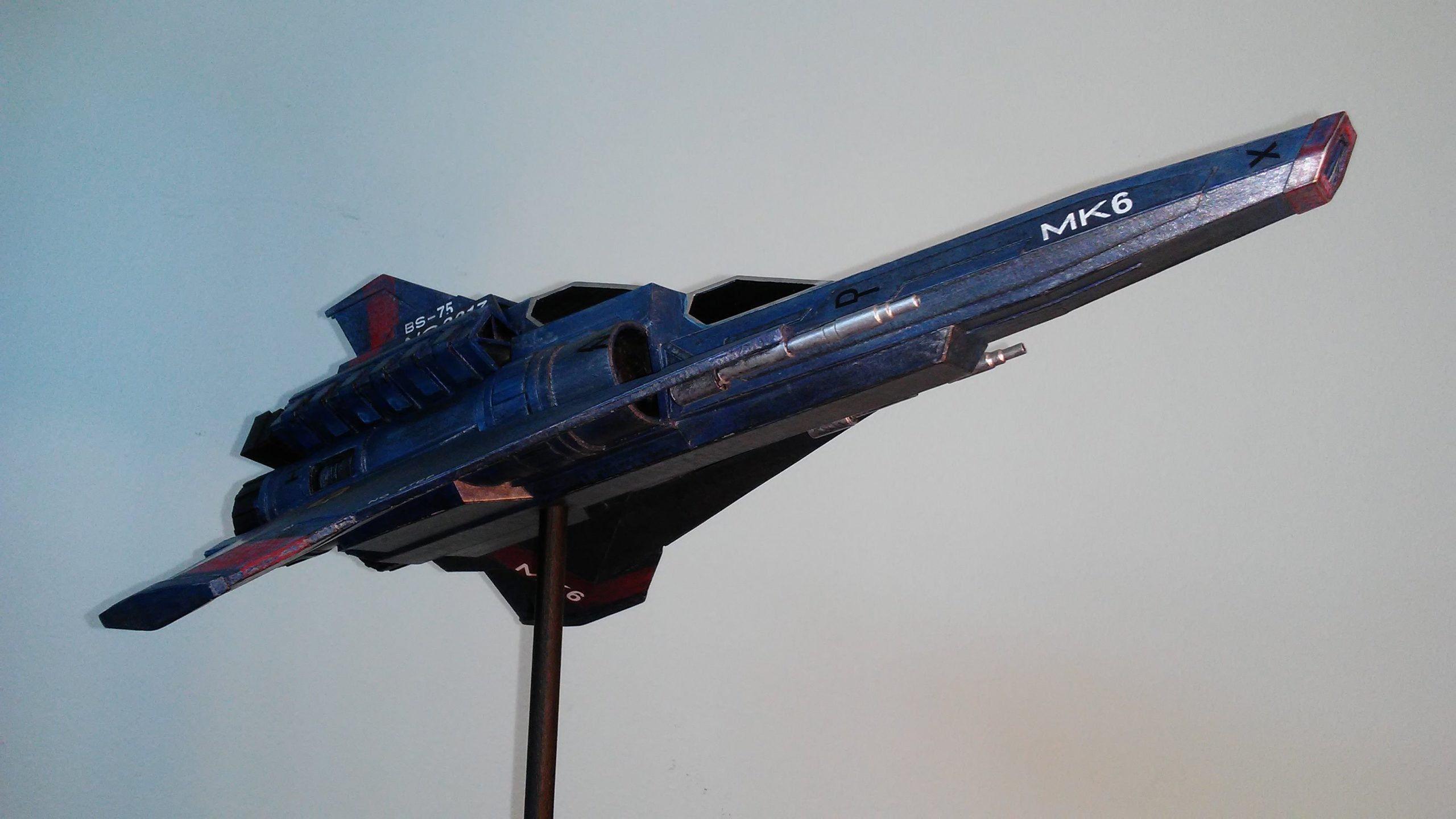 Card stock artist Anthony Santos recently sent me these wonderful photos of his latest creation and design,.. the Mk 6 Colonial Viper with TWO canopies showing! In the original series, I was always confused how a Colonial Viper ever was able to fit a passenger… yet the story had it happening. Then of course we had GALACTICA 1980, where the model and prop makers fixed that part of their story telling by elongating the cockpit and canopy of the Viper. Anthony Santos forwards this thinking in utilizing the 2003 series MkII Viper design as the base for his own two-seat design, which is seen here!