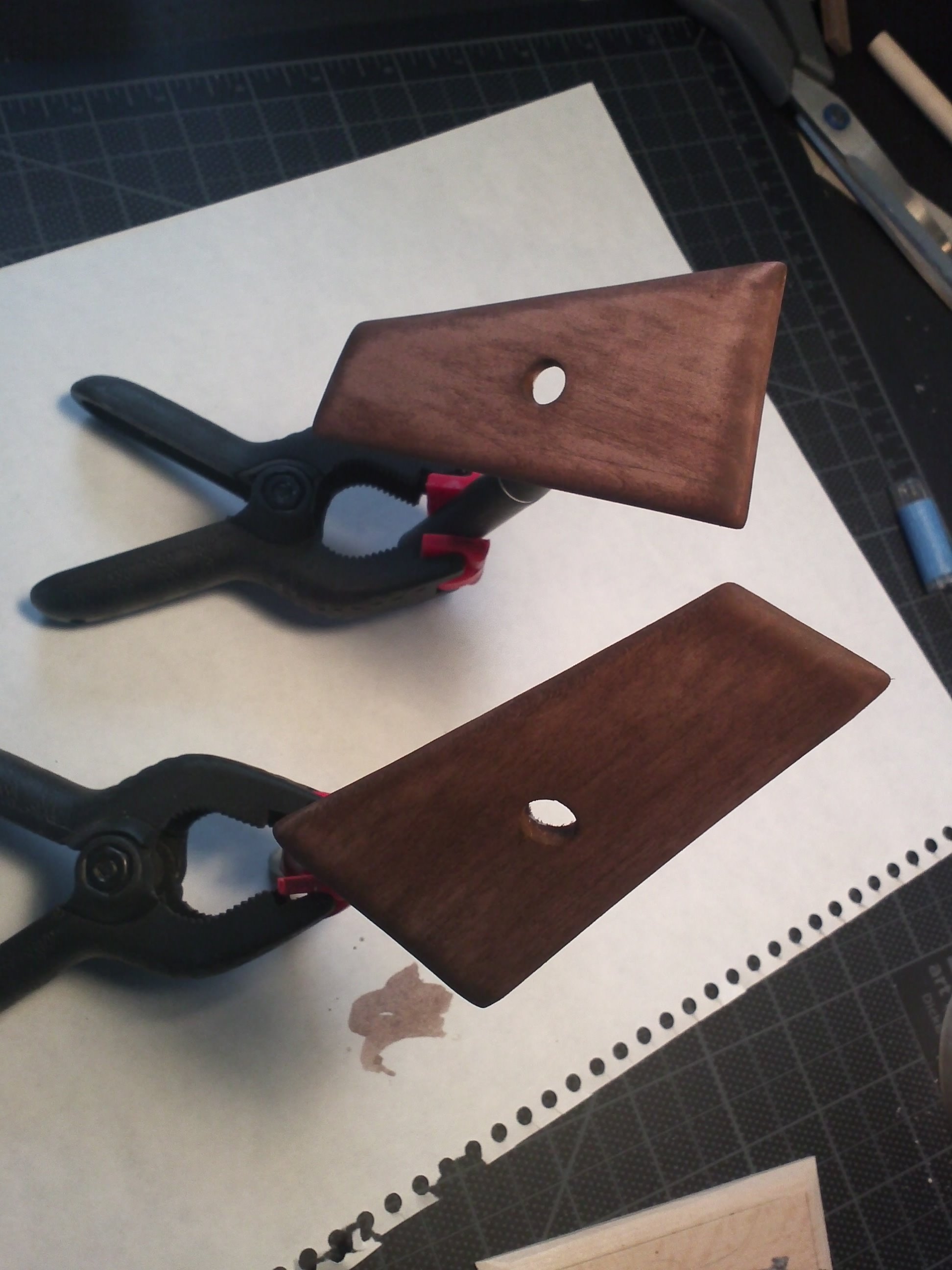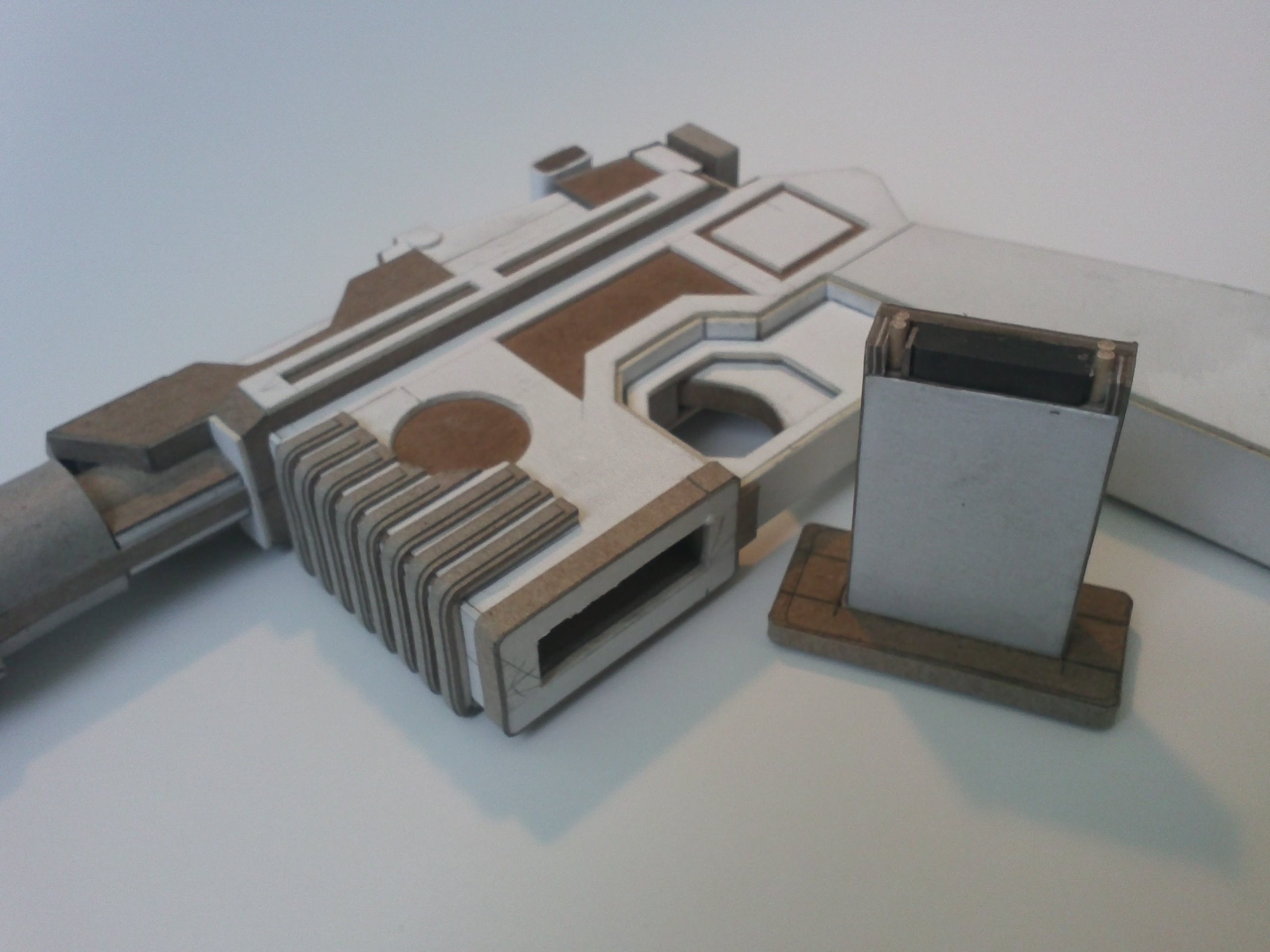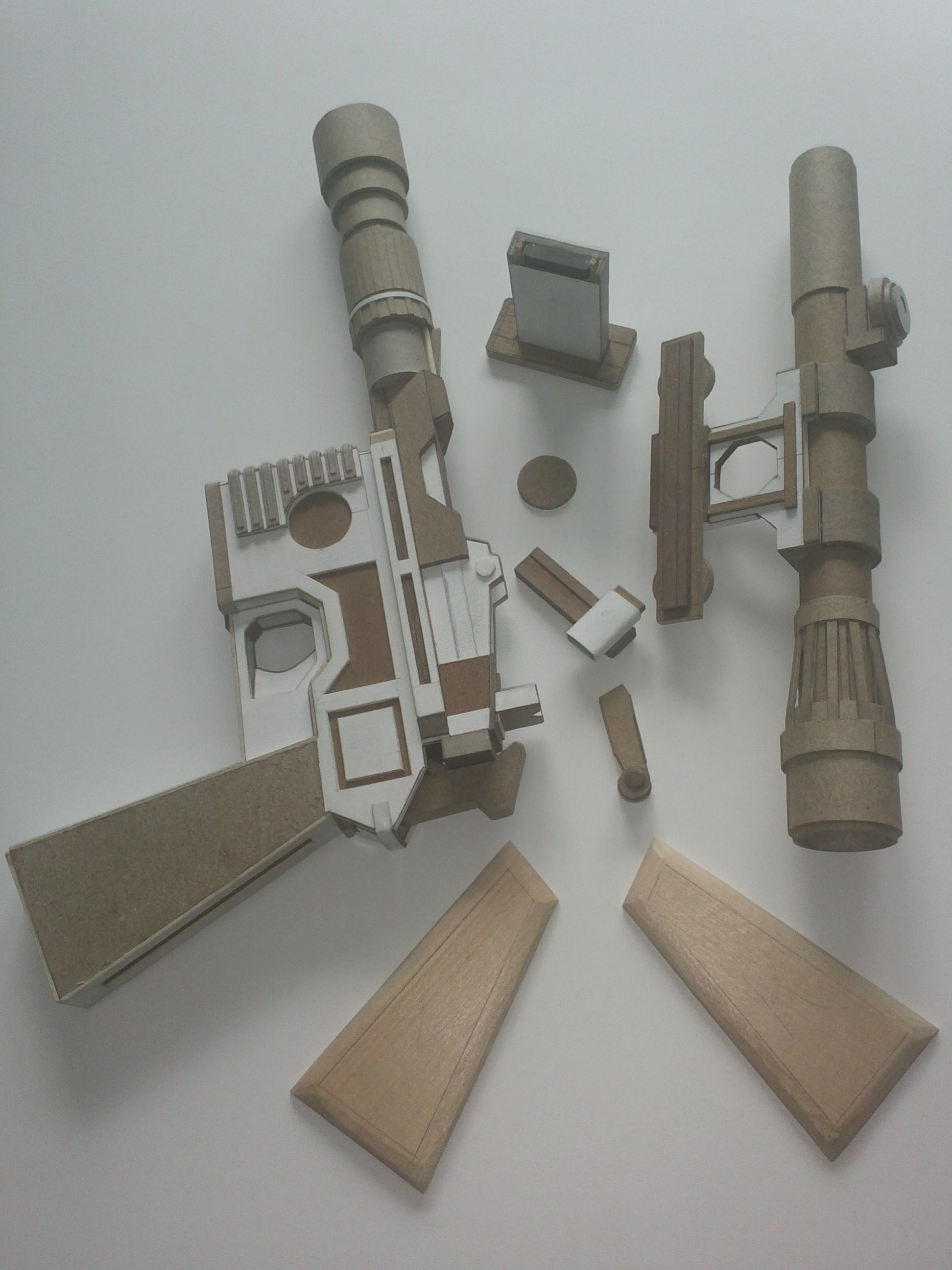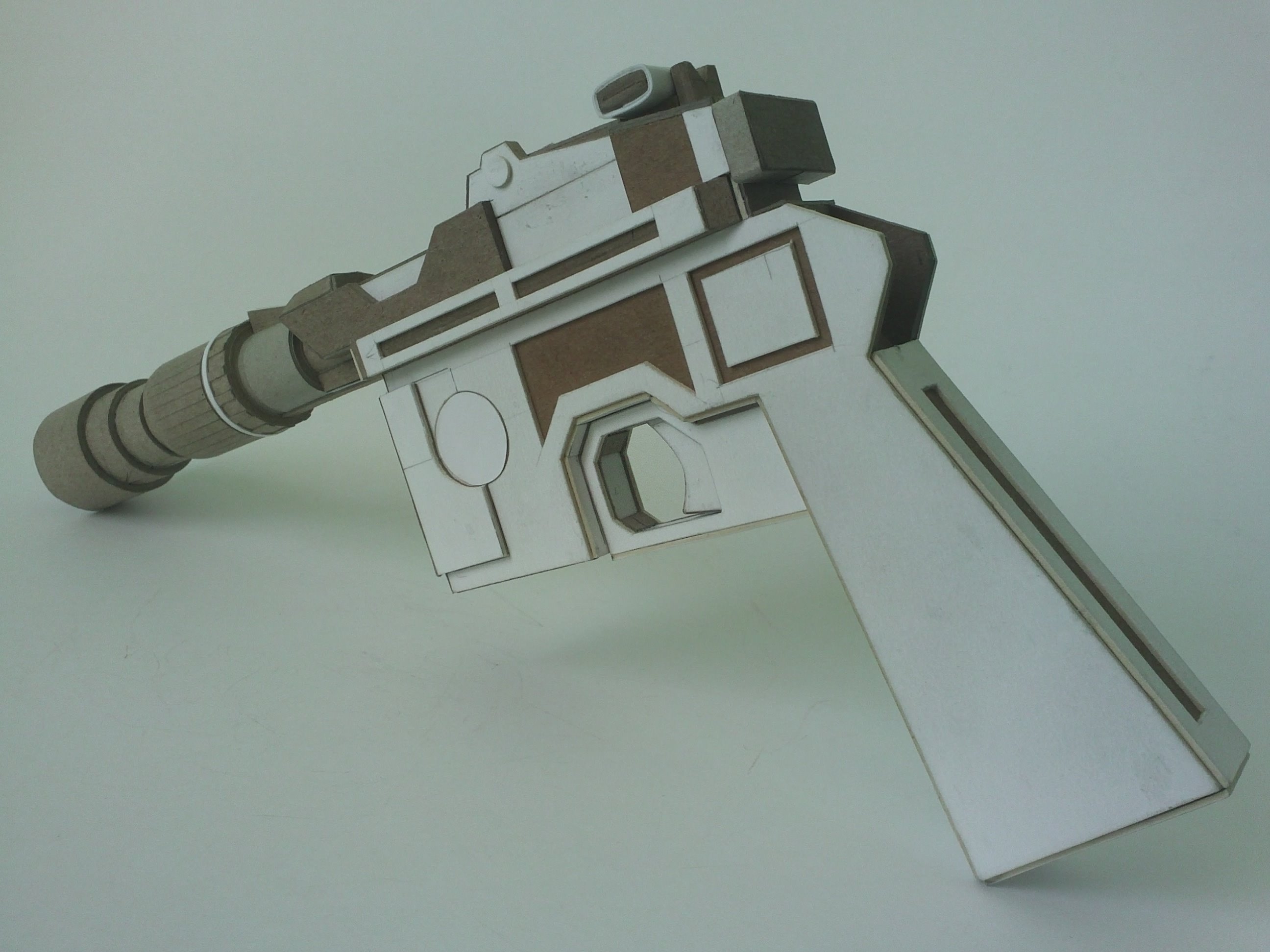 My DL-44 Blaster From Star Wars was started in march of 2016,the stand came a year later. It’s made from cardboard, basswood for the handle, a marble for the scope and two ceramic magnets to keep the power pack in place. It was painted with Testors Buffing Metalizer (gunmetal) A small flashlight was placed in the scope, but just for the photo.