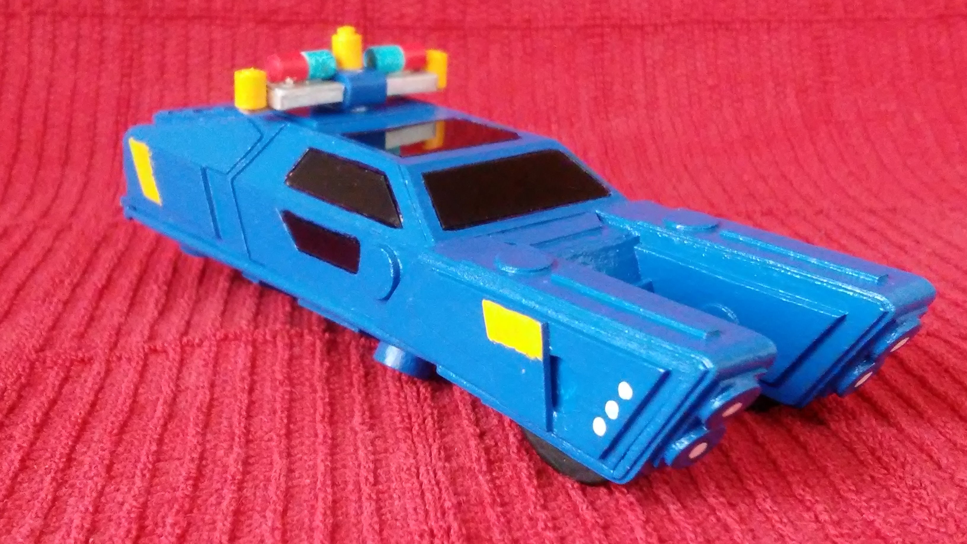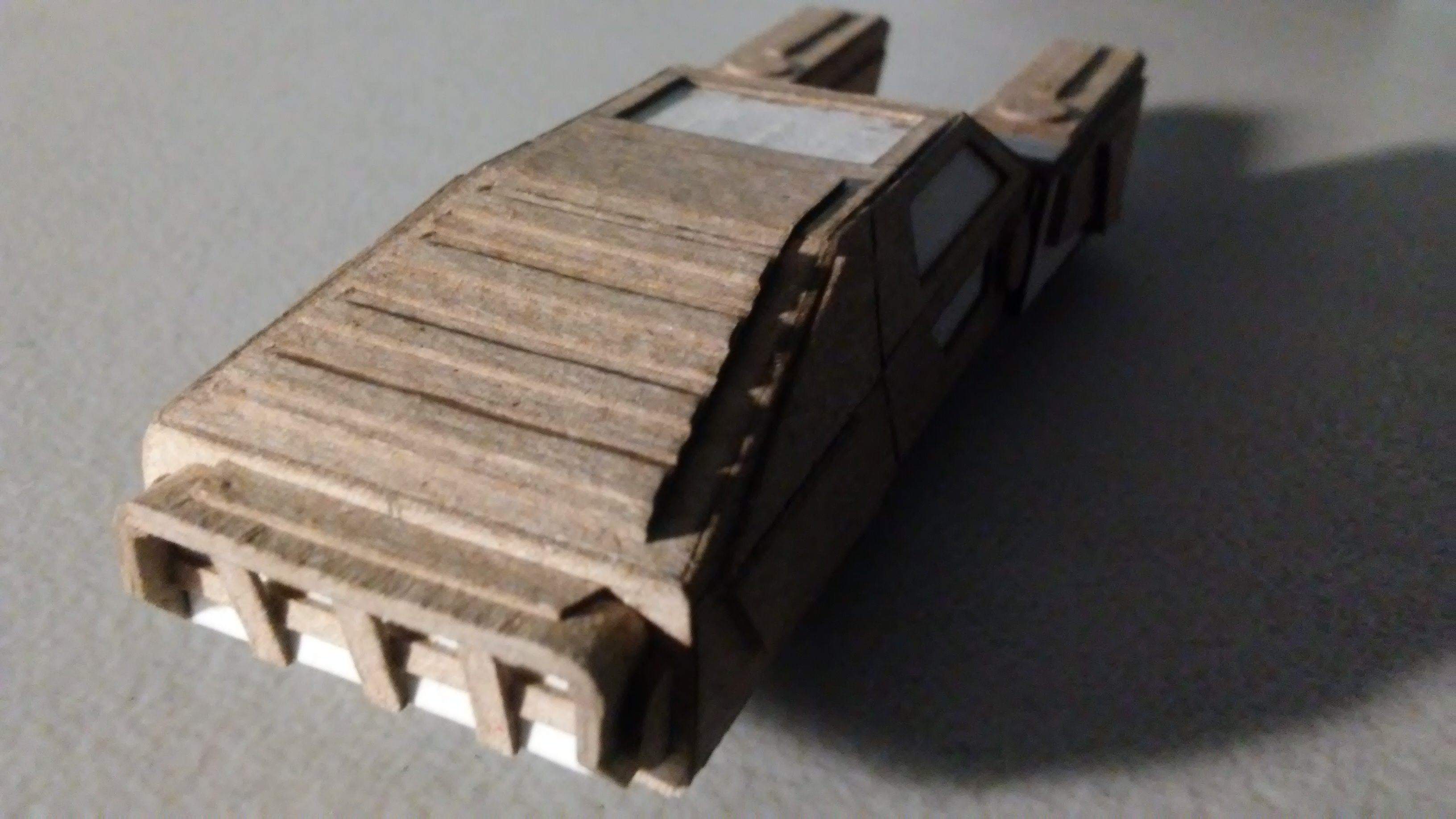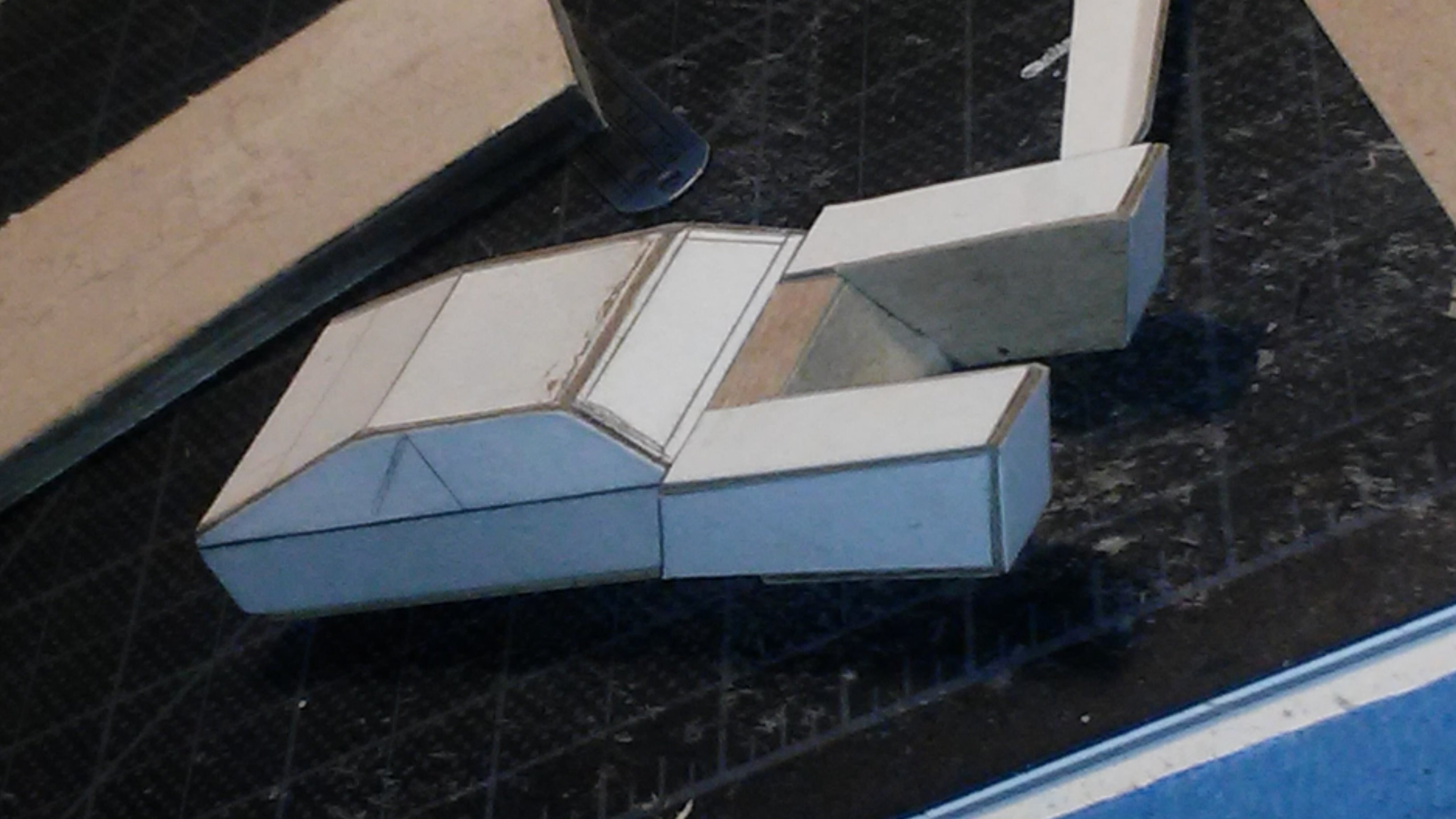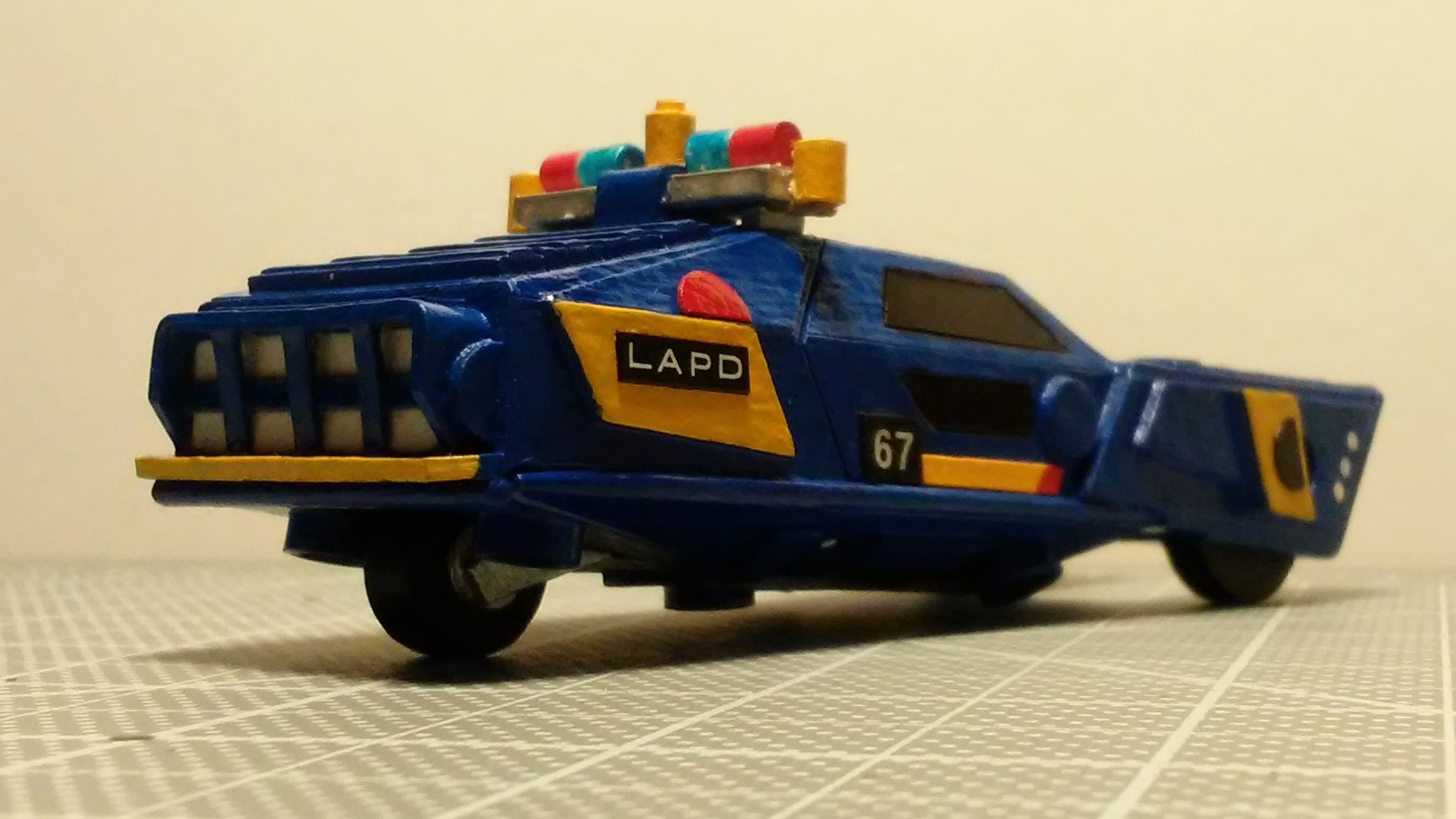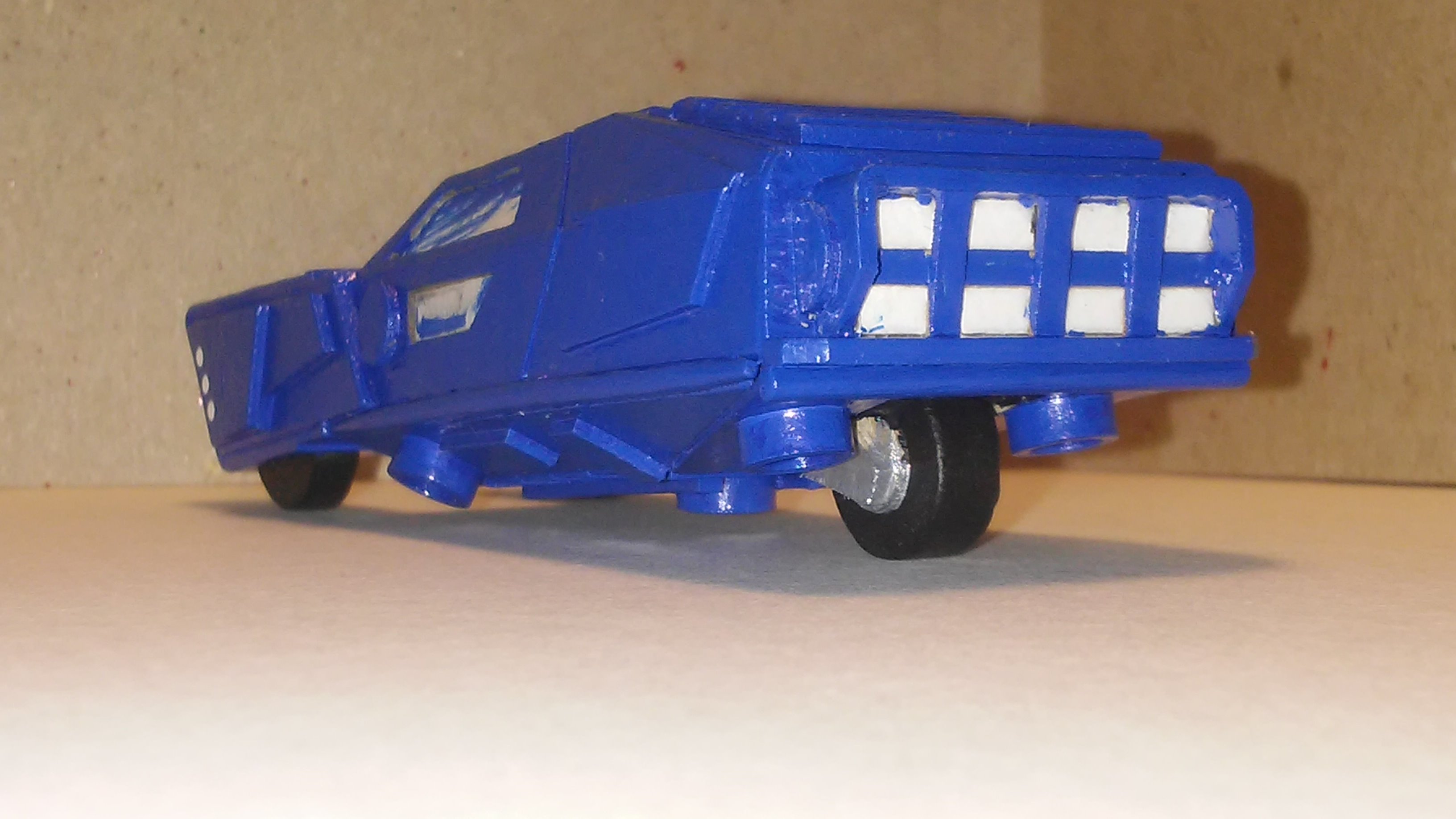 This one was not really planed but I had just finished watching Blade Runner 2049 and looking at photos of the police cars from the first Blade Runner movie. I decided to make my own version. It’s 4 1/2 in’ long, made from left over card board scrap.