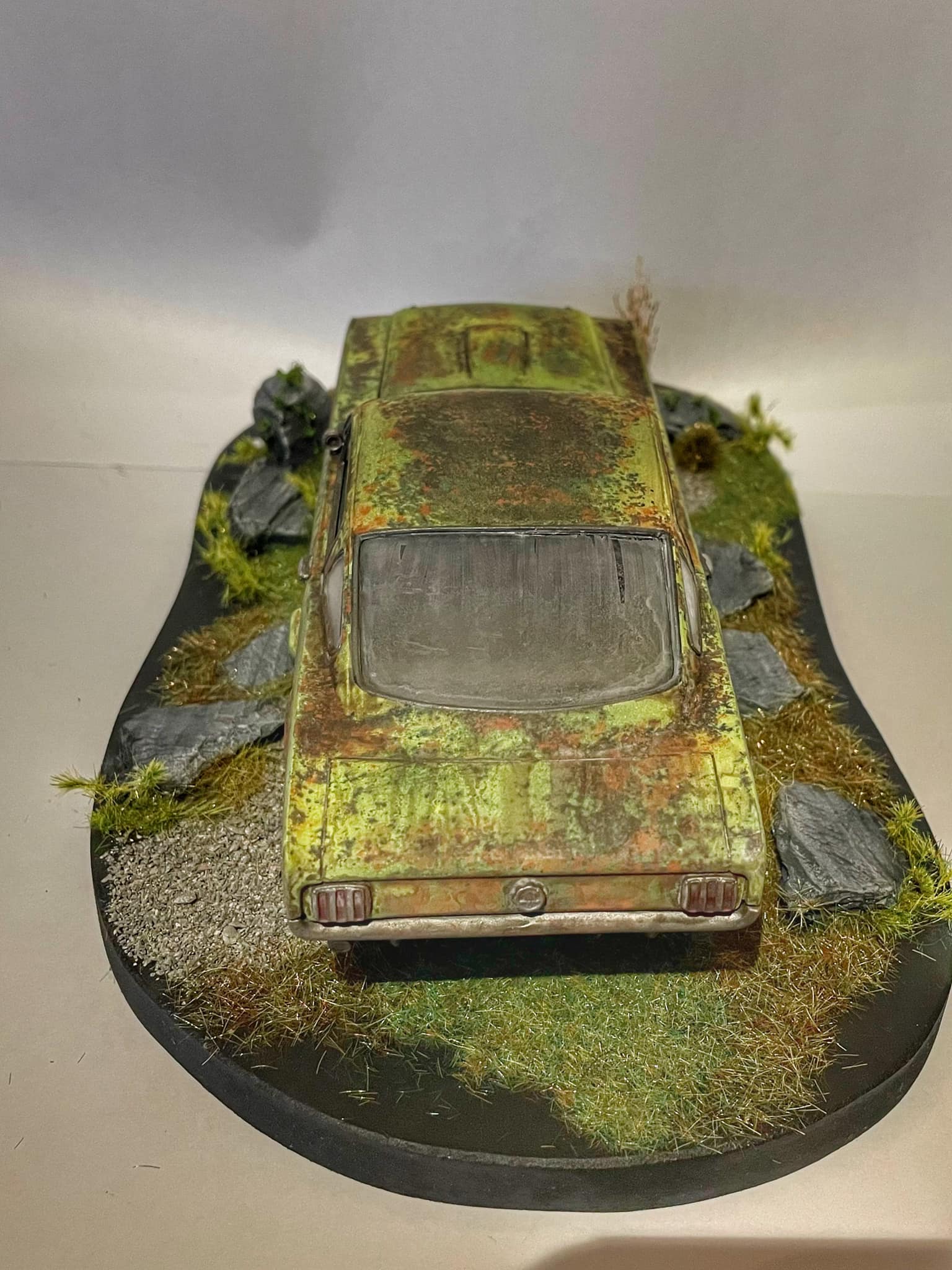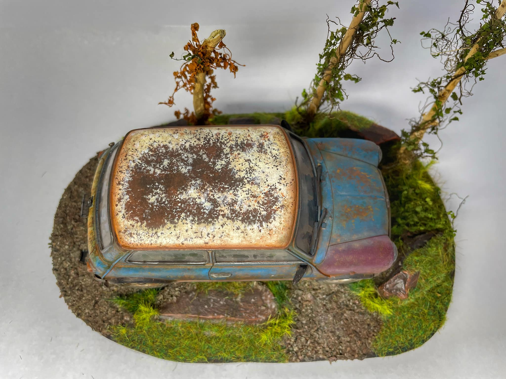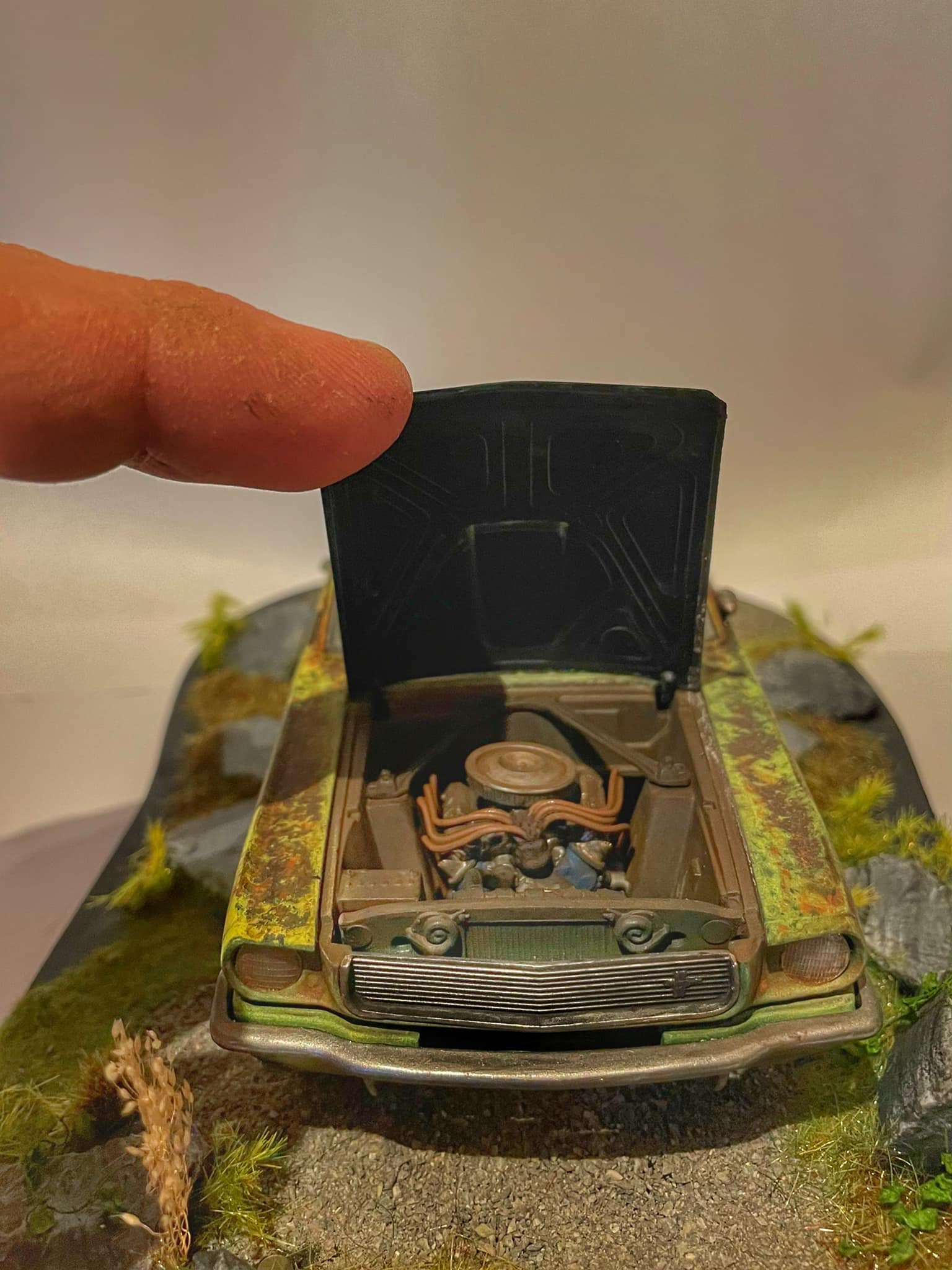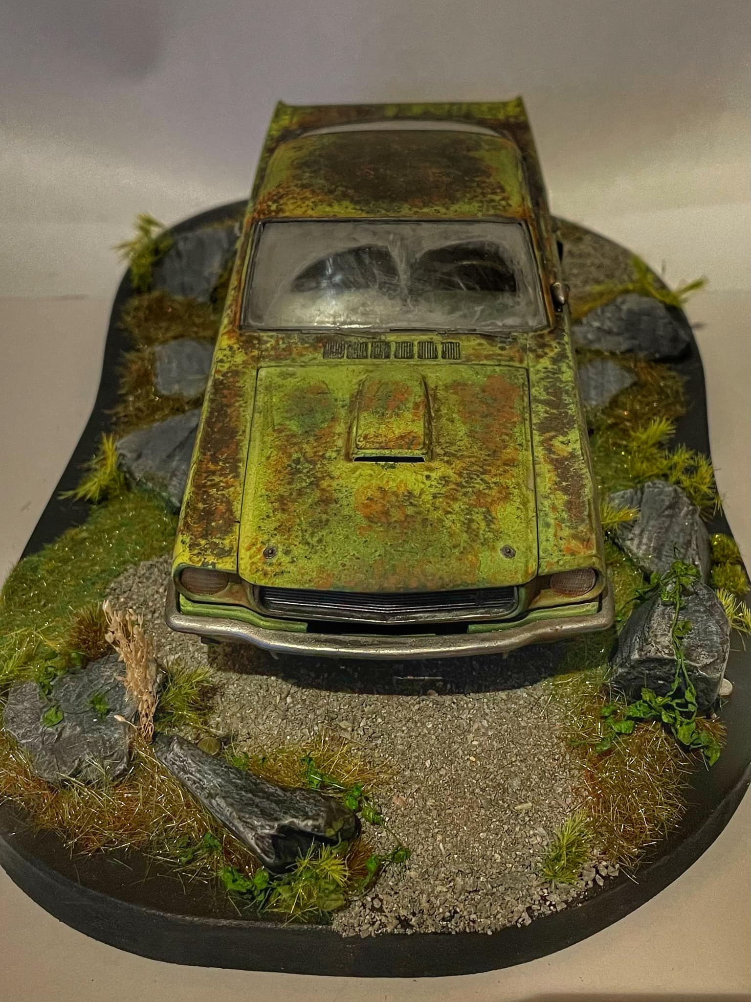 I have come to the realization that I must be watching way too much in the way of shows such as Chasing Classic Cars, Salvage Hunter, American Pickers etc, as I stumbled across these 2 great 1/24 “barn find” style car dioramas made by a local builder that I just had to own!