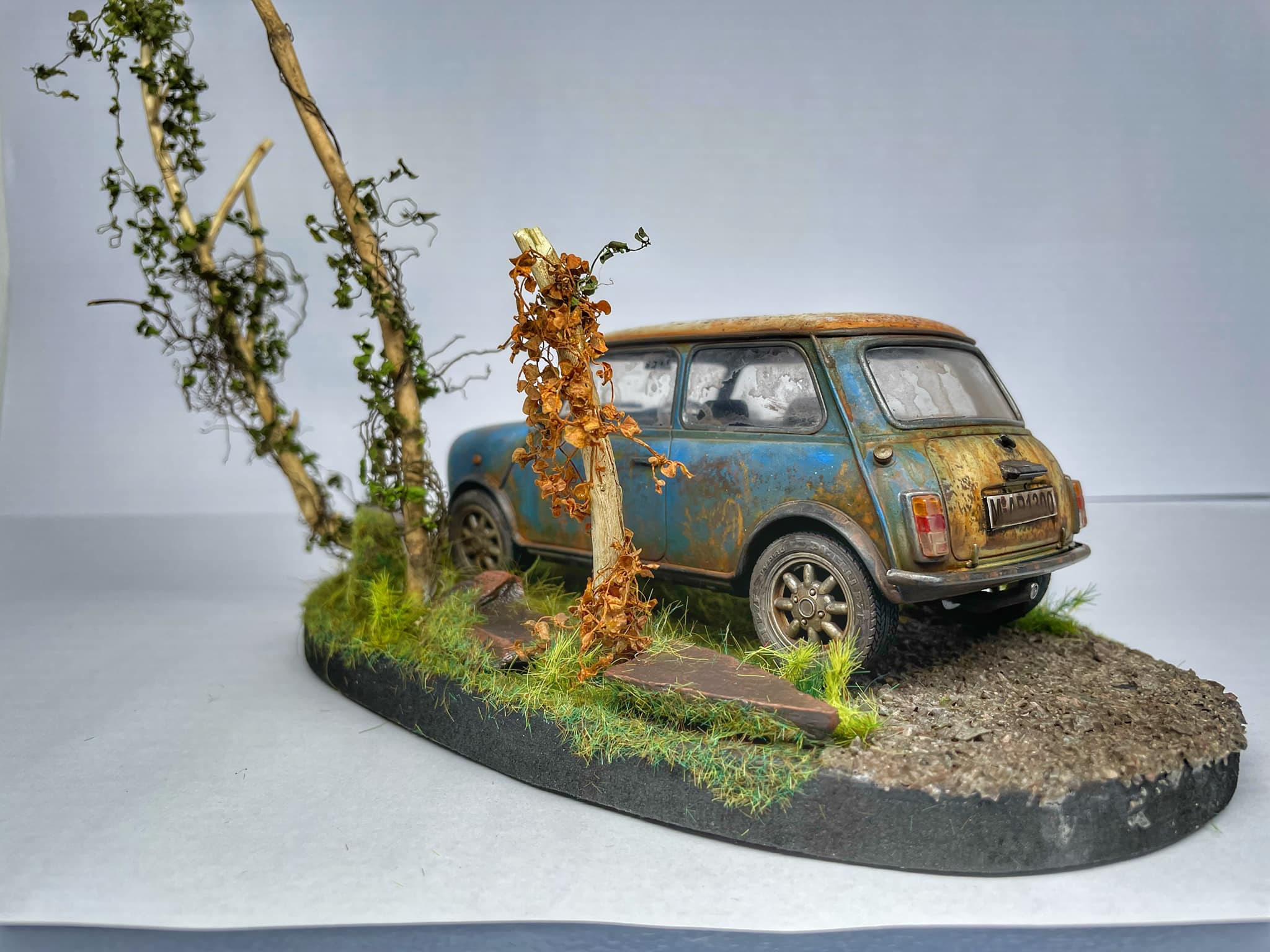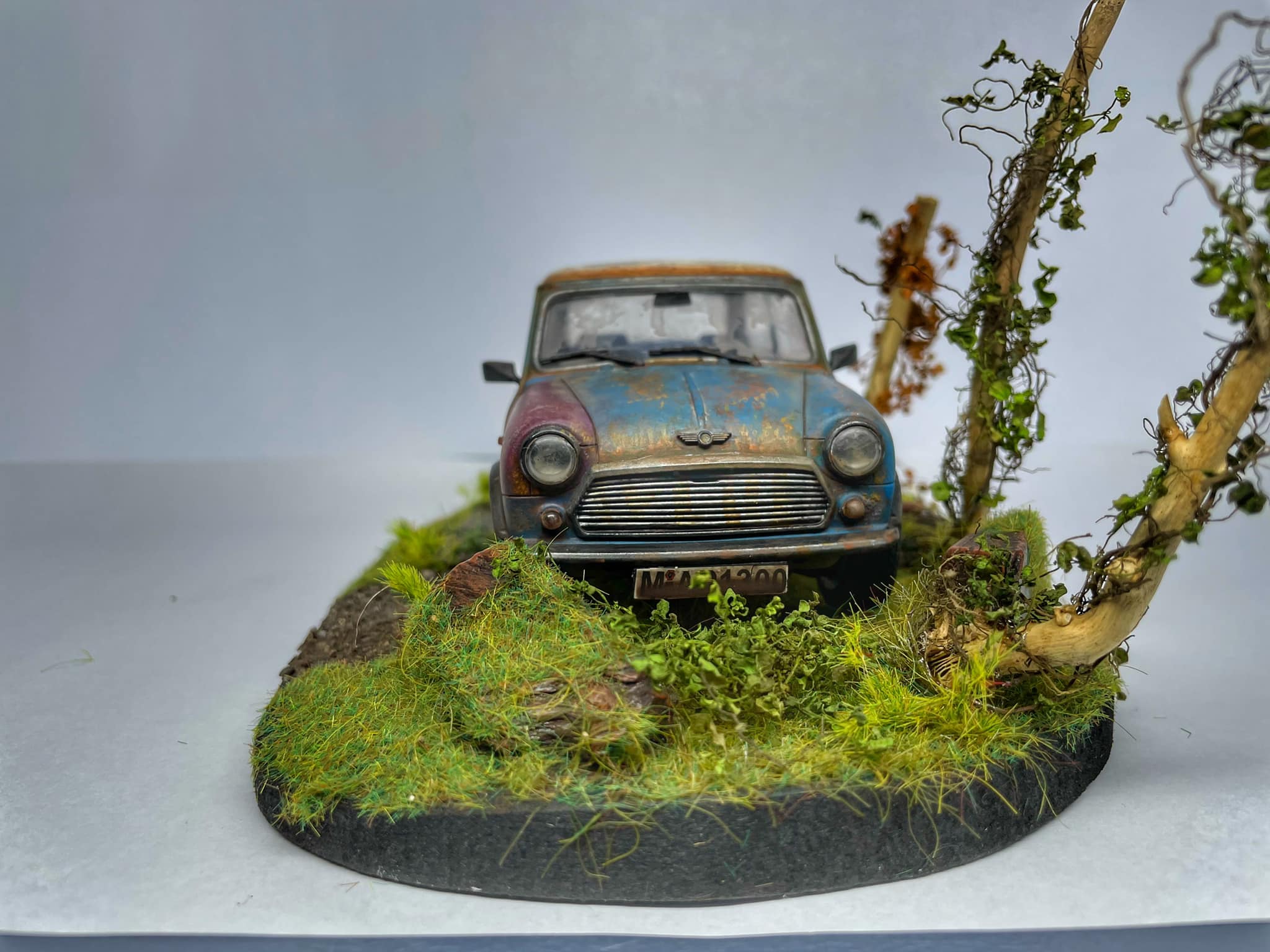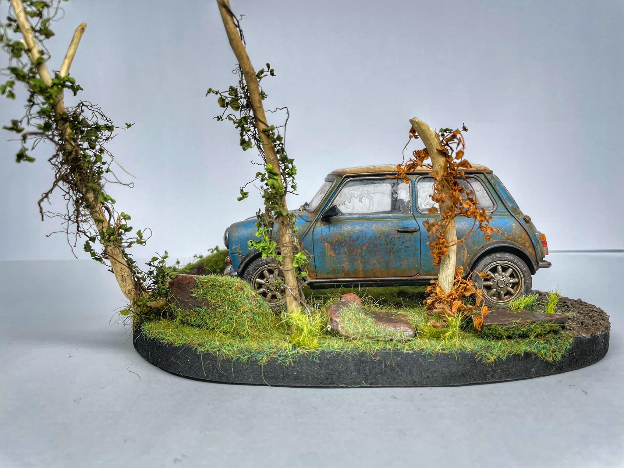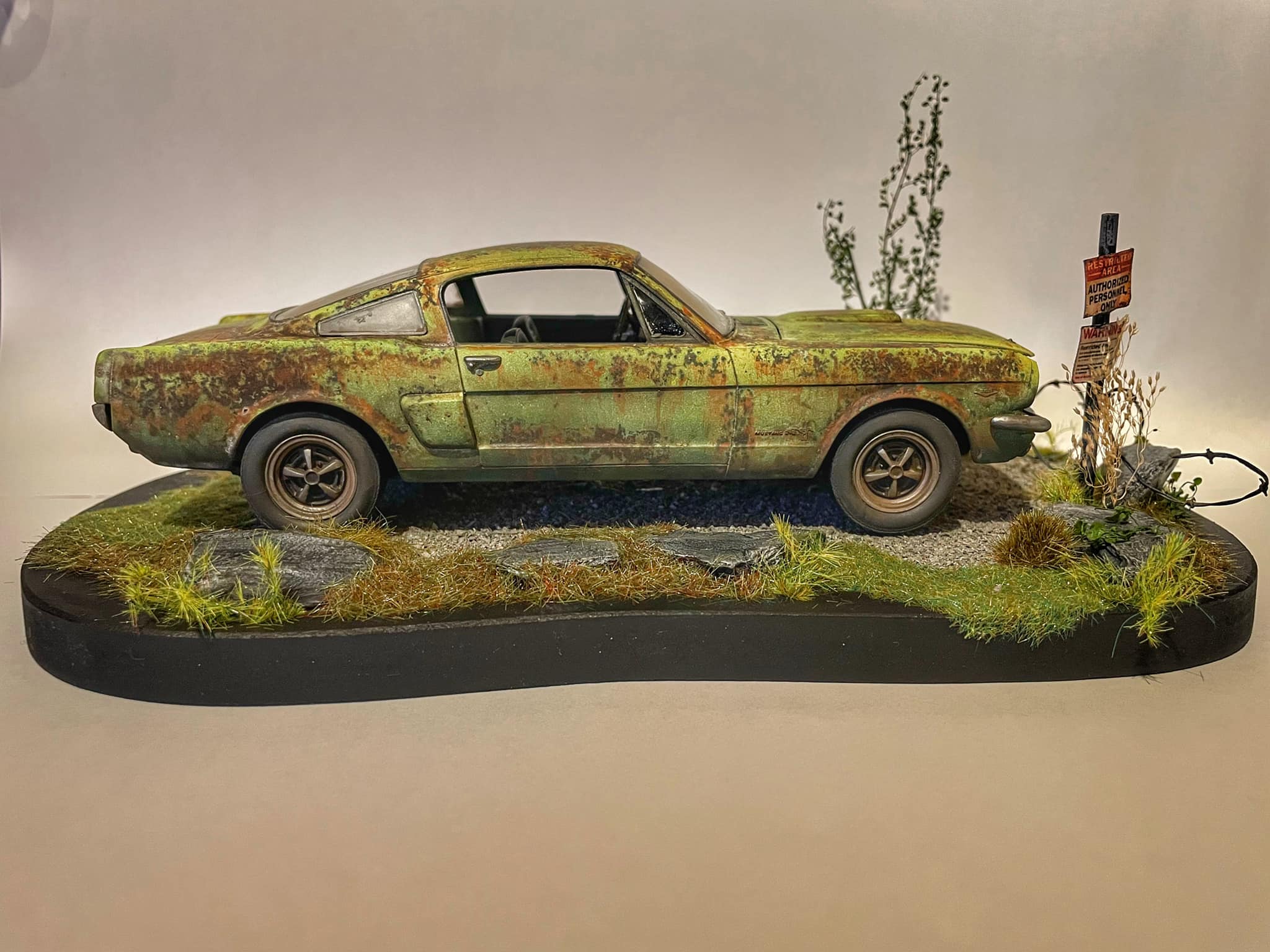 I have come to the realization that I must be watching way too much in the way of shows such as Chasing Classic Cars, Salvage Hunter, American Pickers etc, as I stumbled across these 2 great 1/24 “barn find” style car dioramas made by a local builder that I just had to own!