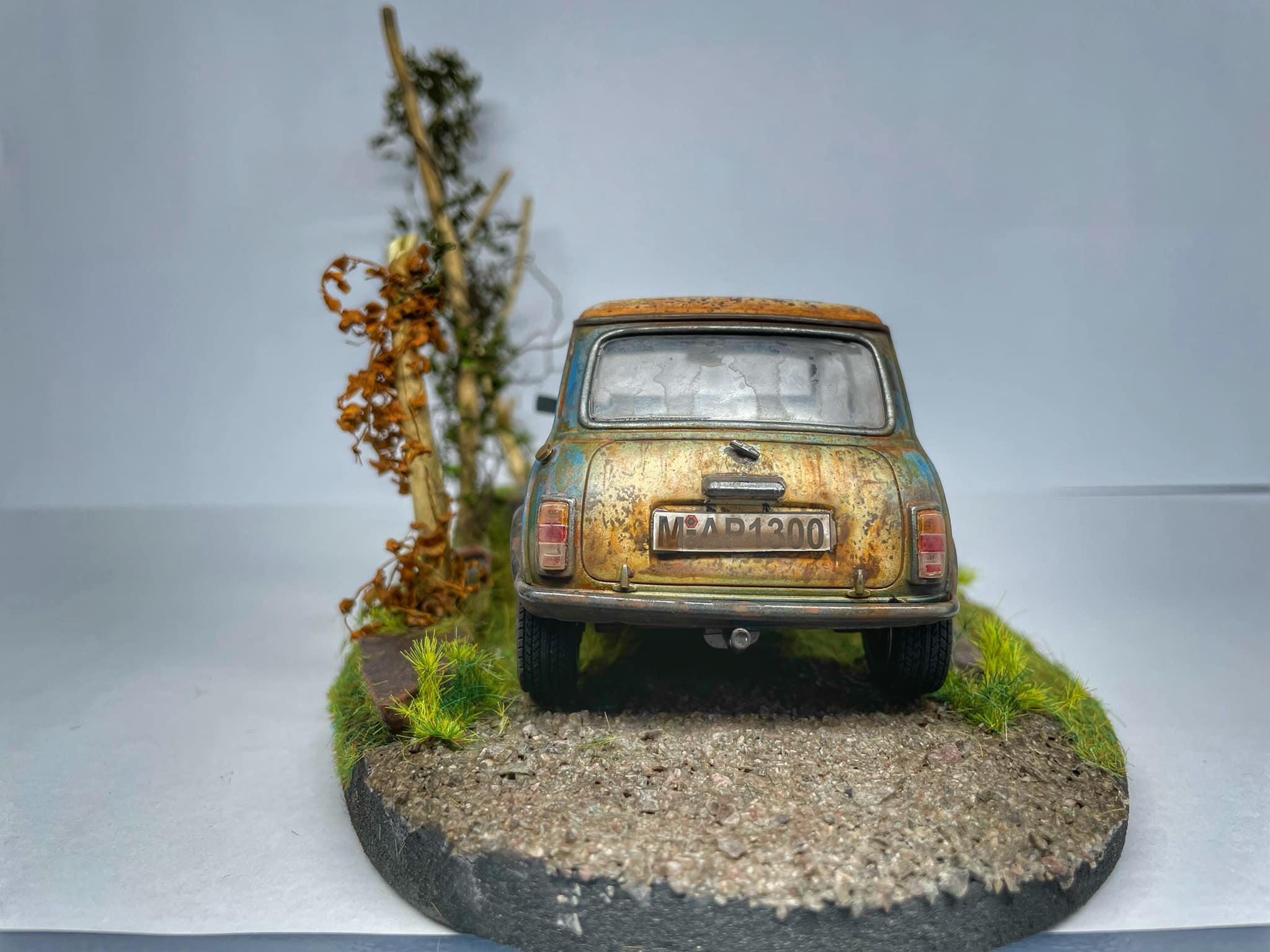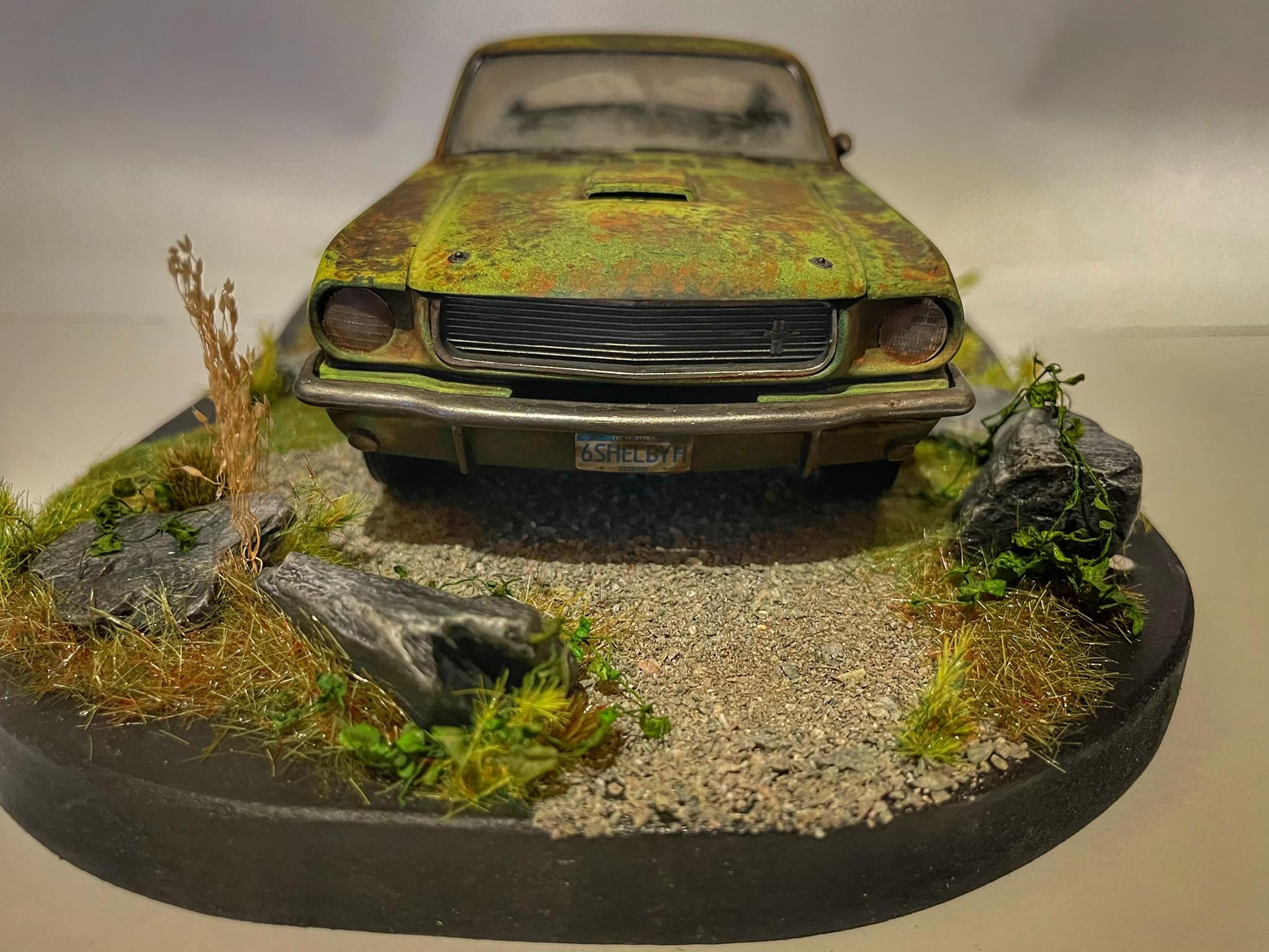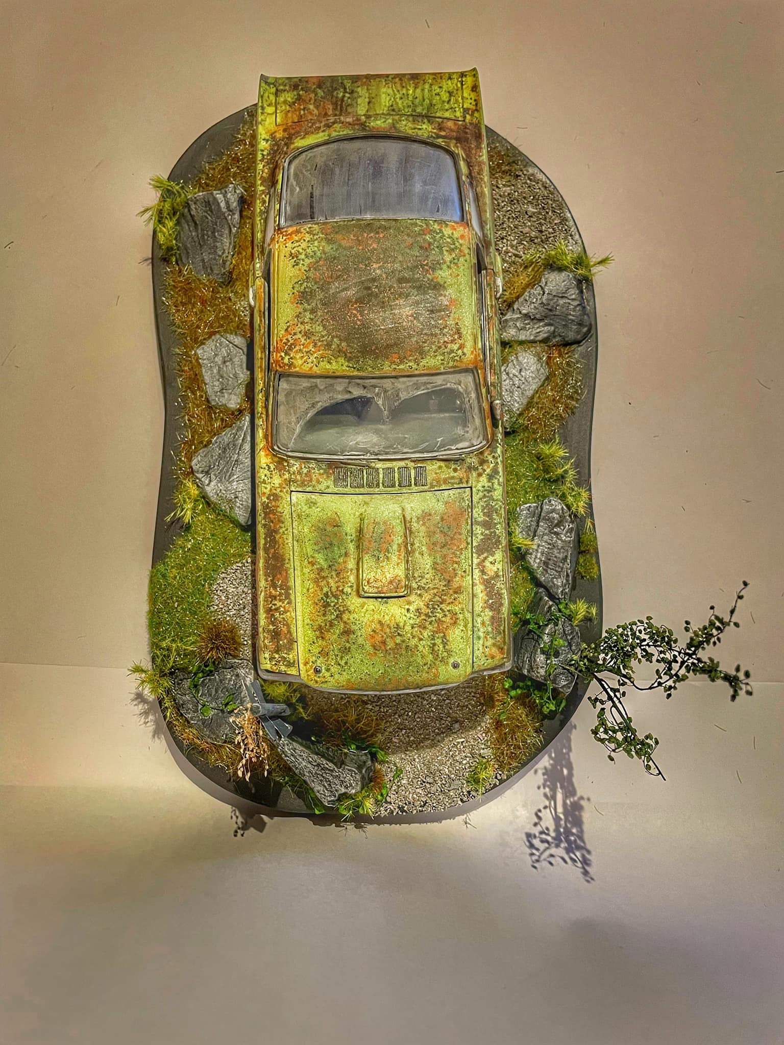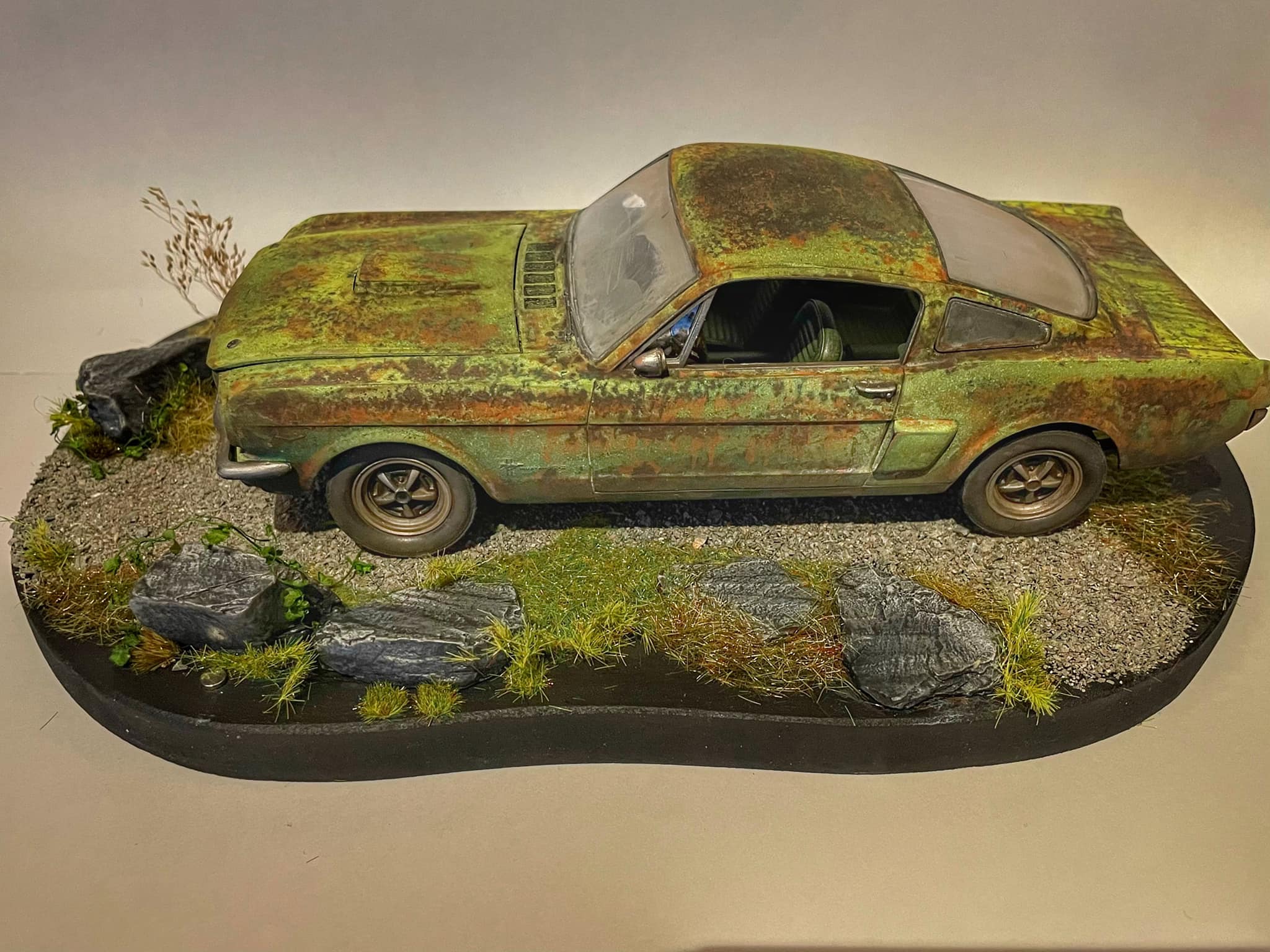 I have come to the realization that I must be watching way too much in the way of shows such as Chasing Classic Cars, Salvage Hunter, American Pickers etc, as I stumbled across these 2 great 1/24 “barn find” style car dioramas made by a local builder that I just had to own!