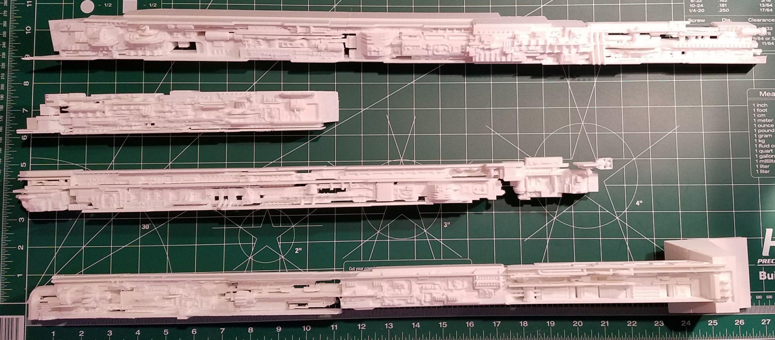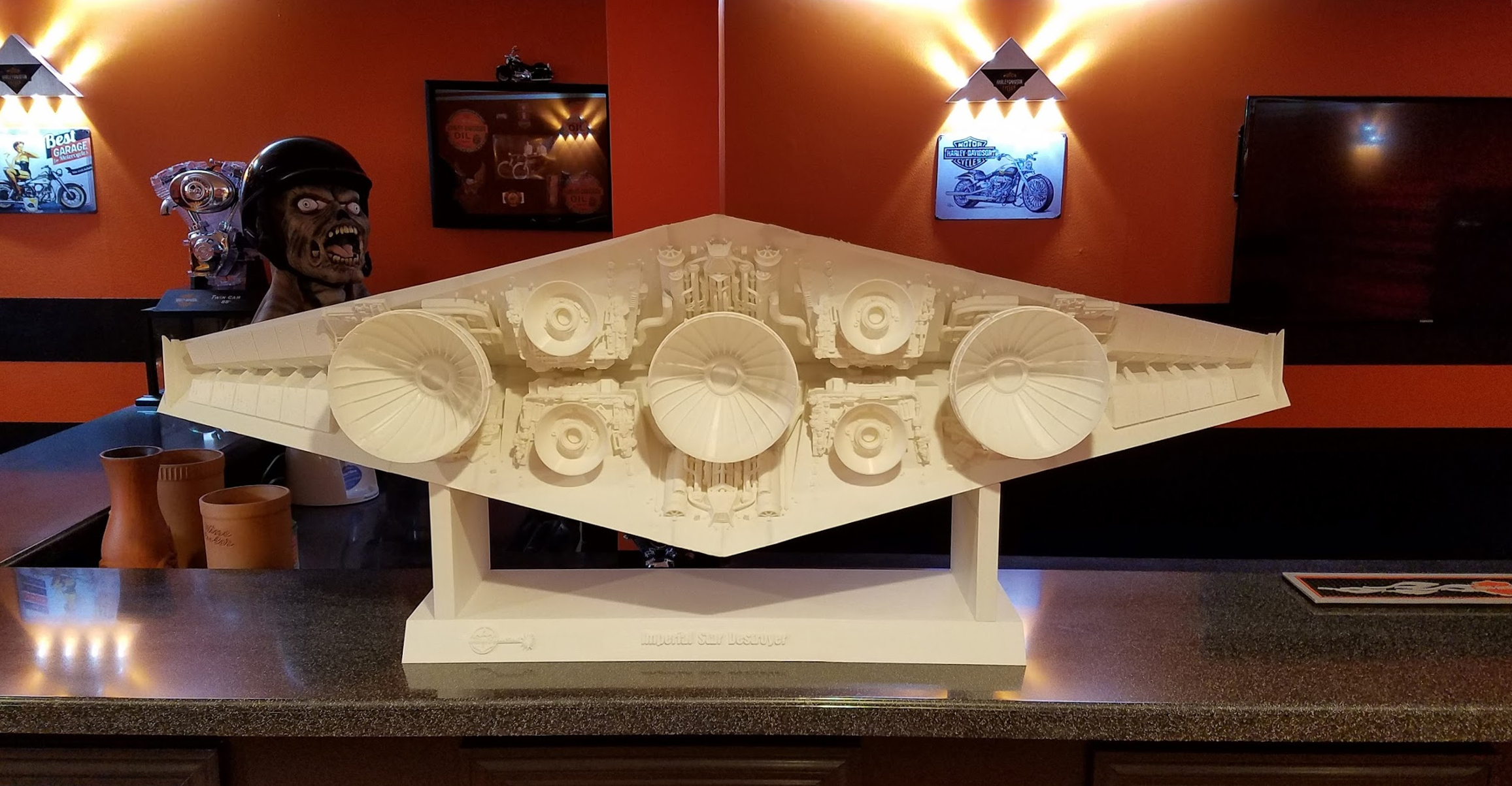 Artist Michael Moeller of Baseline Productions has been busy for the past year or so. He has been 3D printing all the parts and segments to build a HUGE Star Destroyer for a client. I recently came across his work and could not resist asking him to show this to our viewers. Most excellent work. Who knows…. might a possible kit be on the horizon? We shall see what comes of their awesome work. In the mean time, we shall show the progress, or you may view the Baseline Productions site direct by clicking on their banner link below. Above all….Great job Michael.
