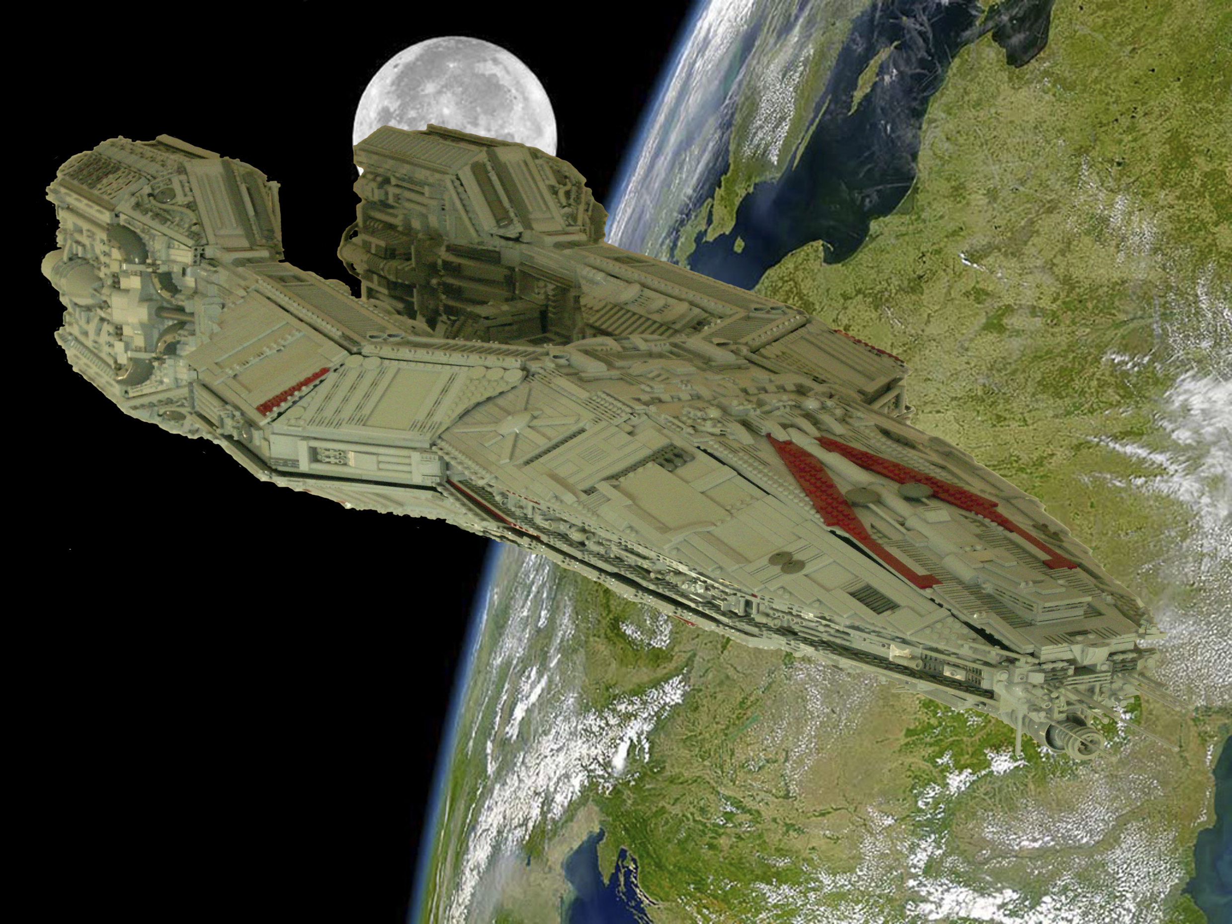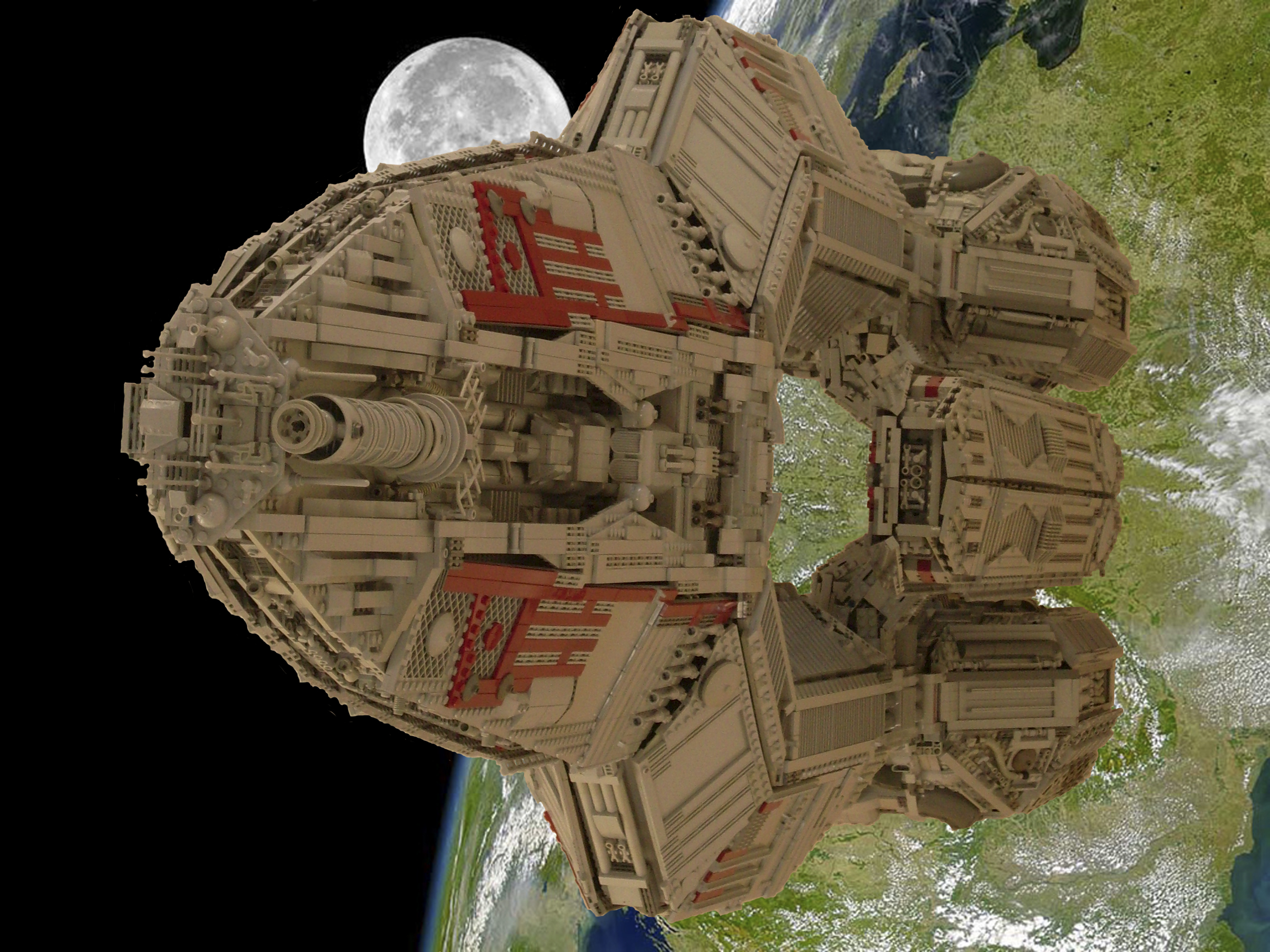 The inspiration for this build is from the small 1:3700 model. Saying that when it came to build I looked on the net for more designs and there were many variations to choose from so this is a mix of all the sections I liked and some of my own touches. Short of dismantling it fully I am thinking of redesigning it to fit in the re-imaged sleek design and more ribs, smooth rounded booster engines, keeping the monotone appearance or perhaps a bit more color.
