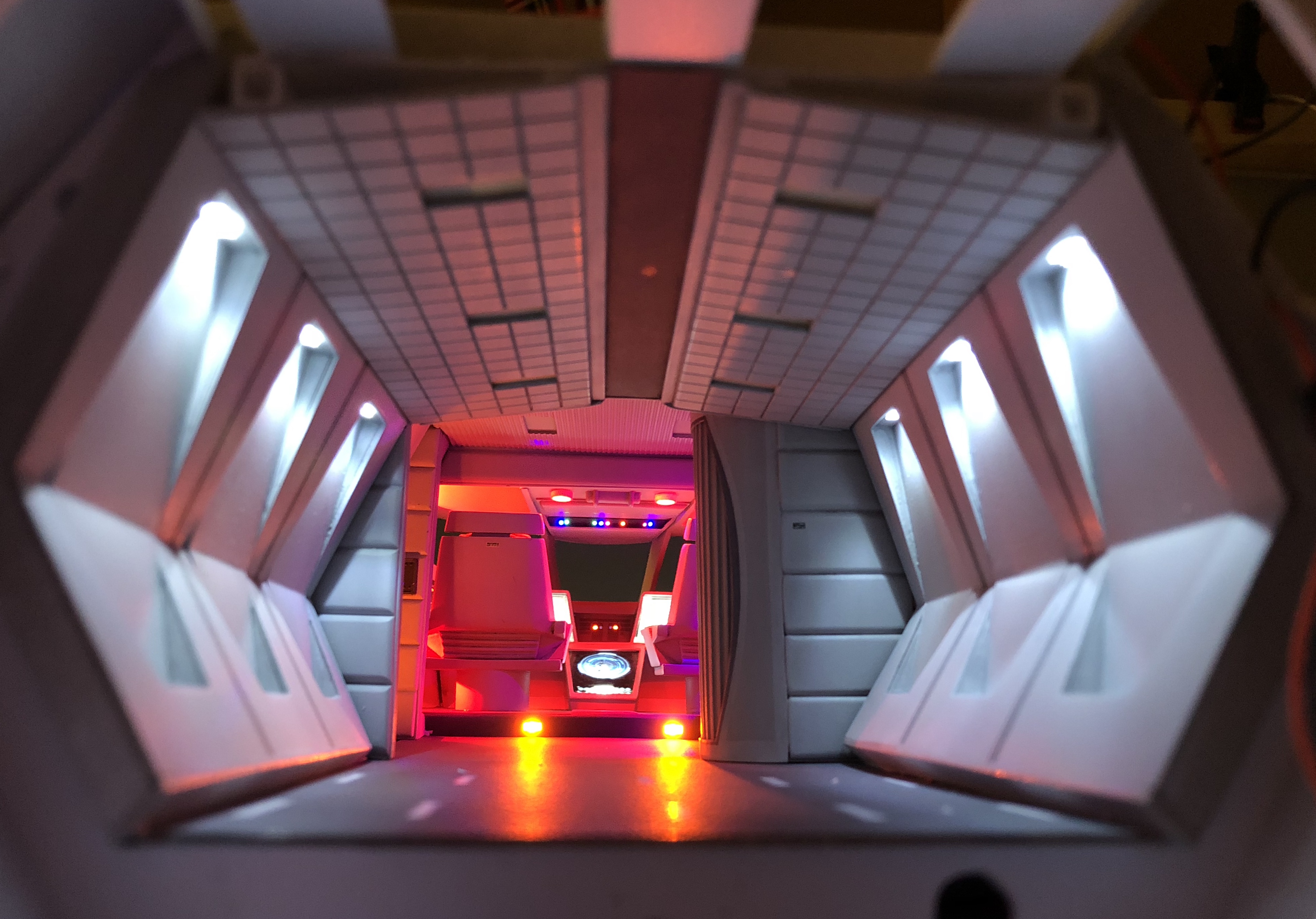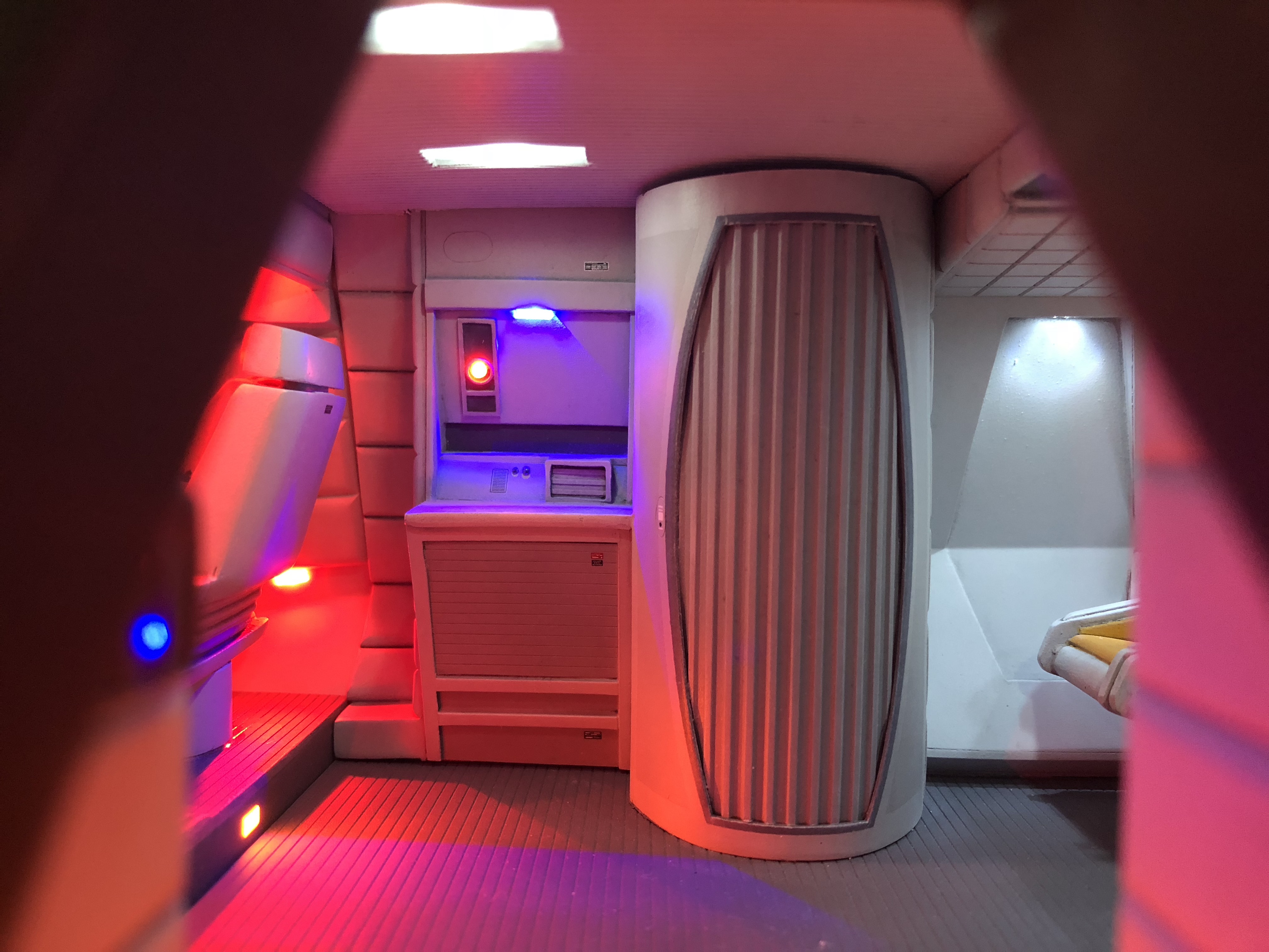 I have a new addition to my fleet of custom scratch builds. It is FOR SALE. This one is another custom design and build at 1/24 scale (22” long) from styrene, resin and brass. Also, it is fully lit with a complete interior and pose-able hatches and rear ramp.