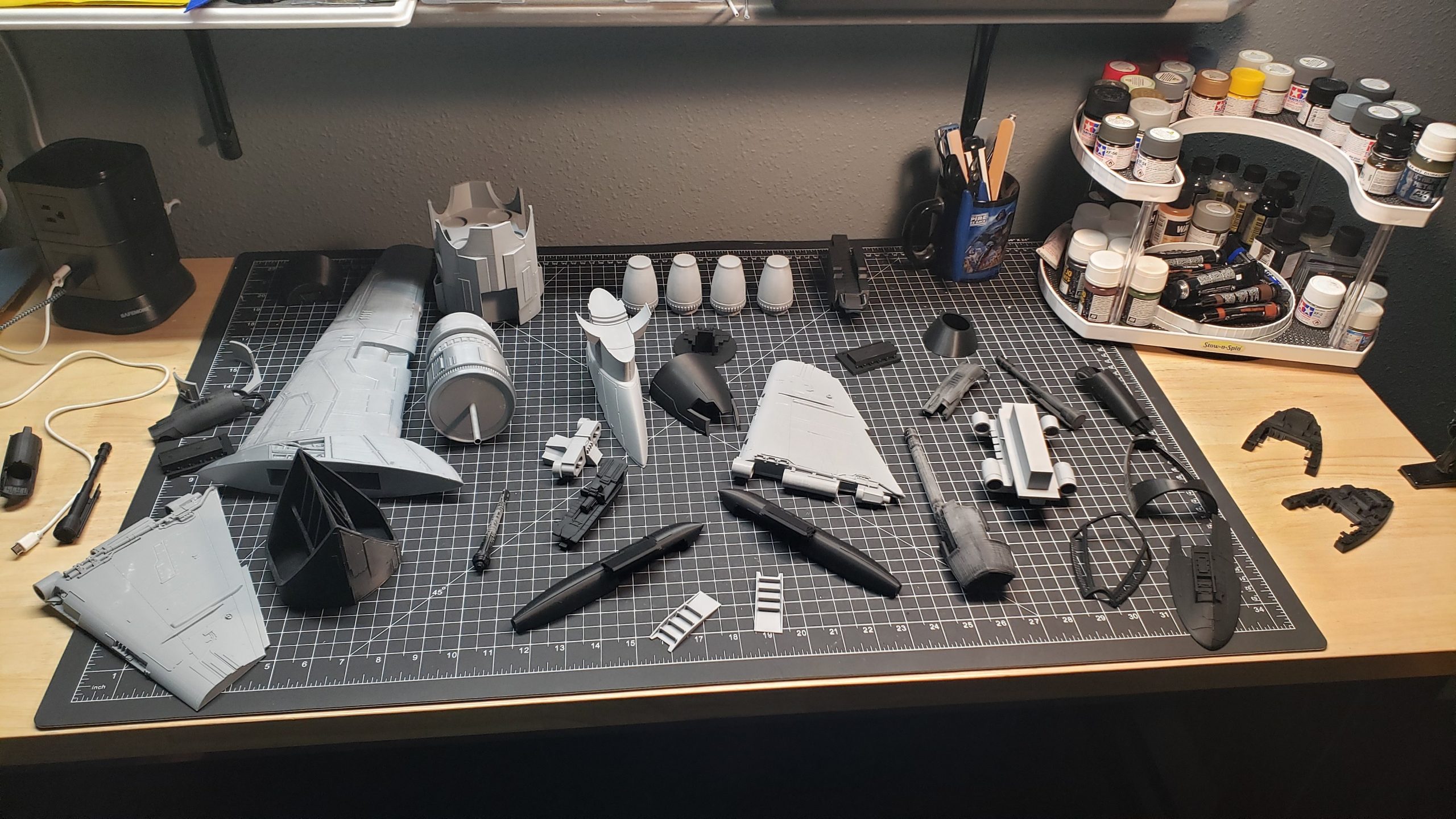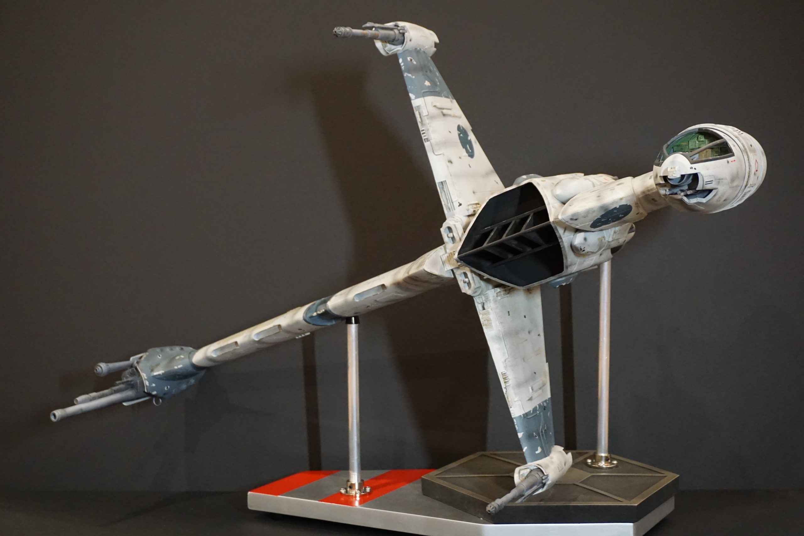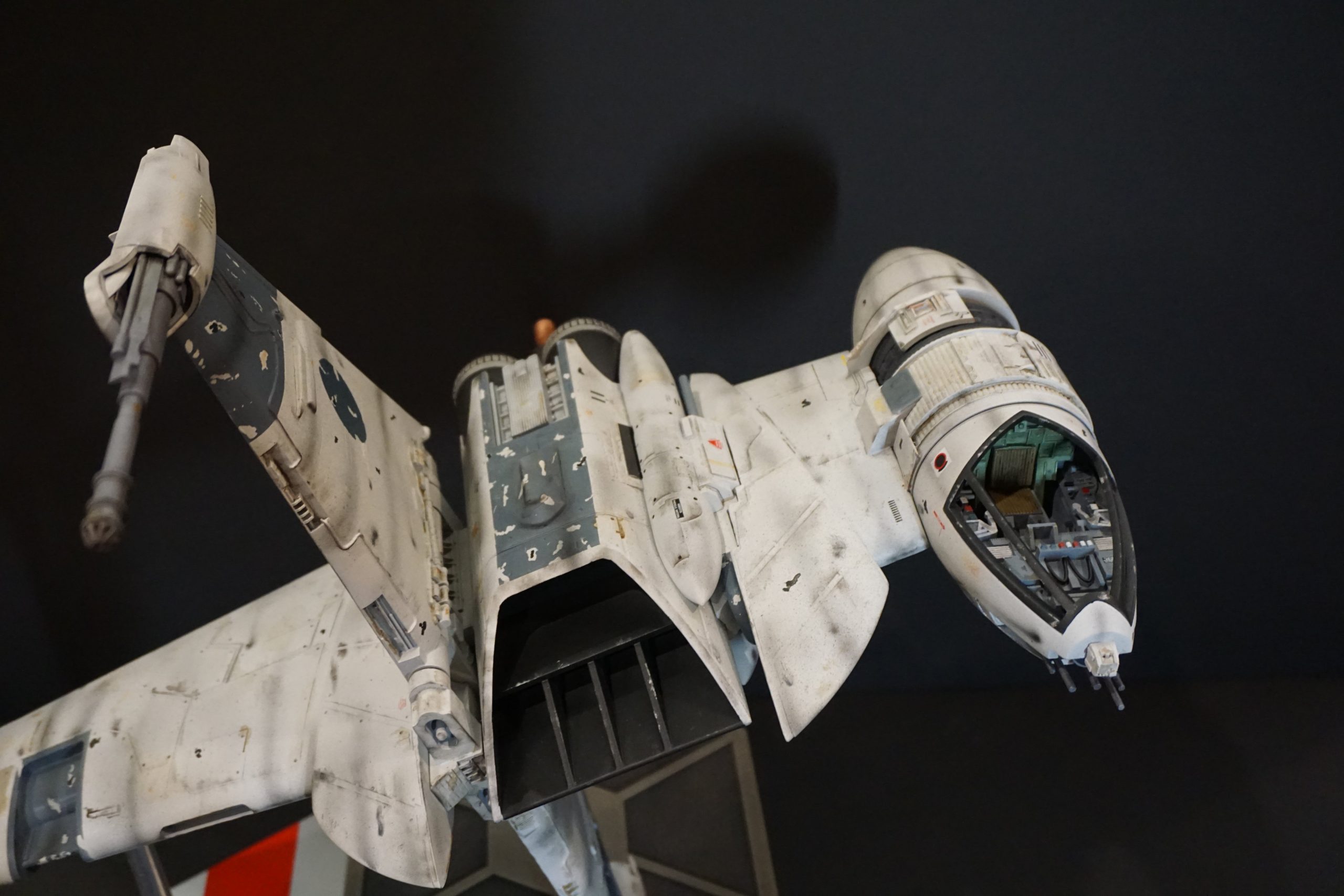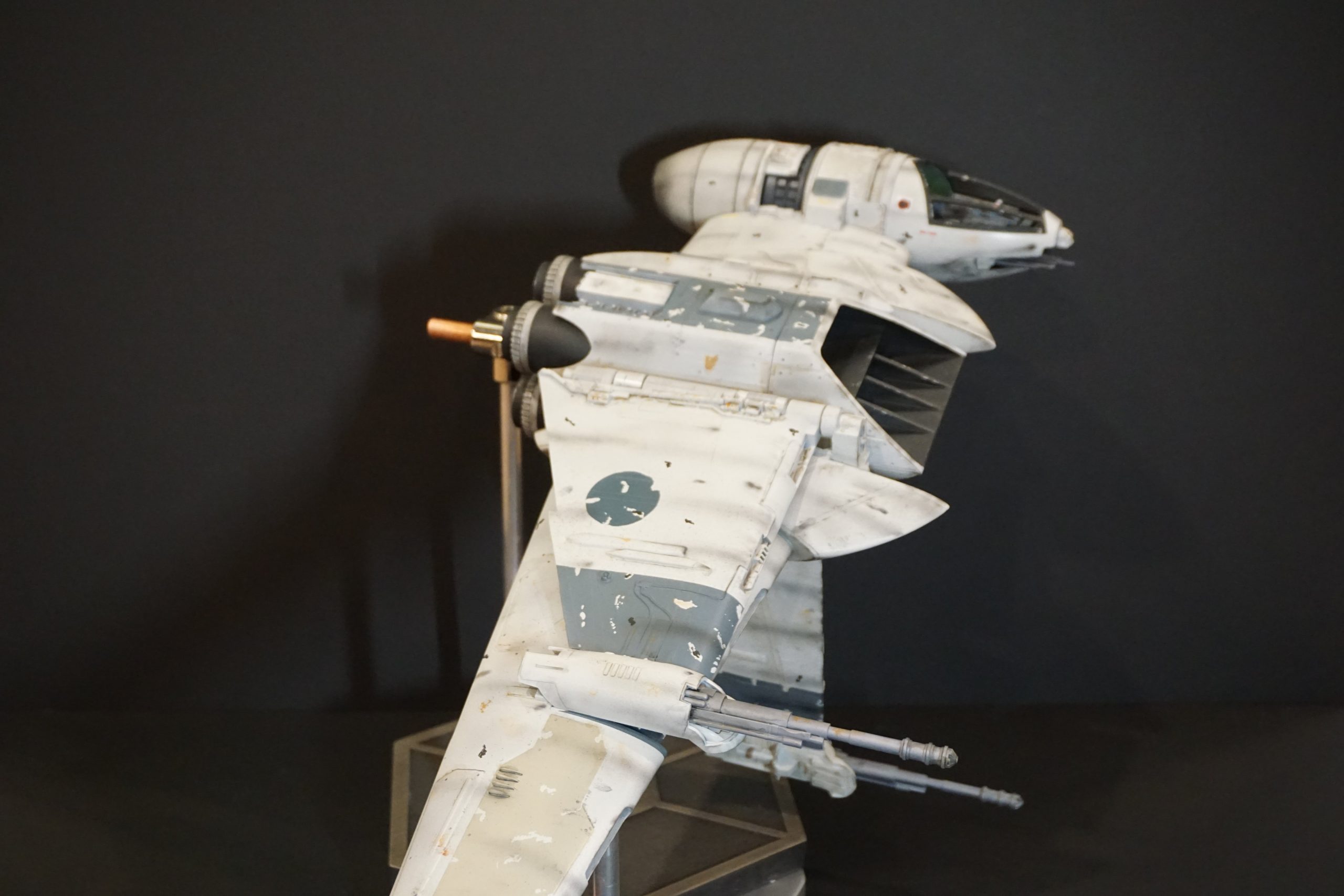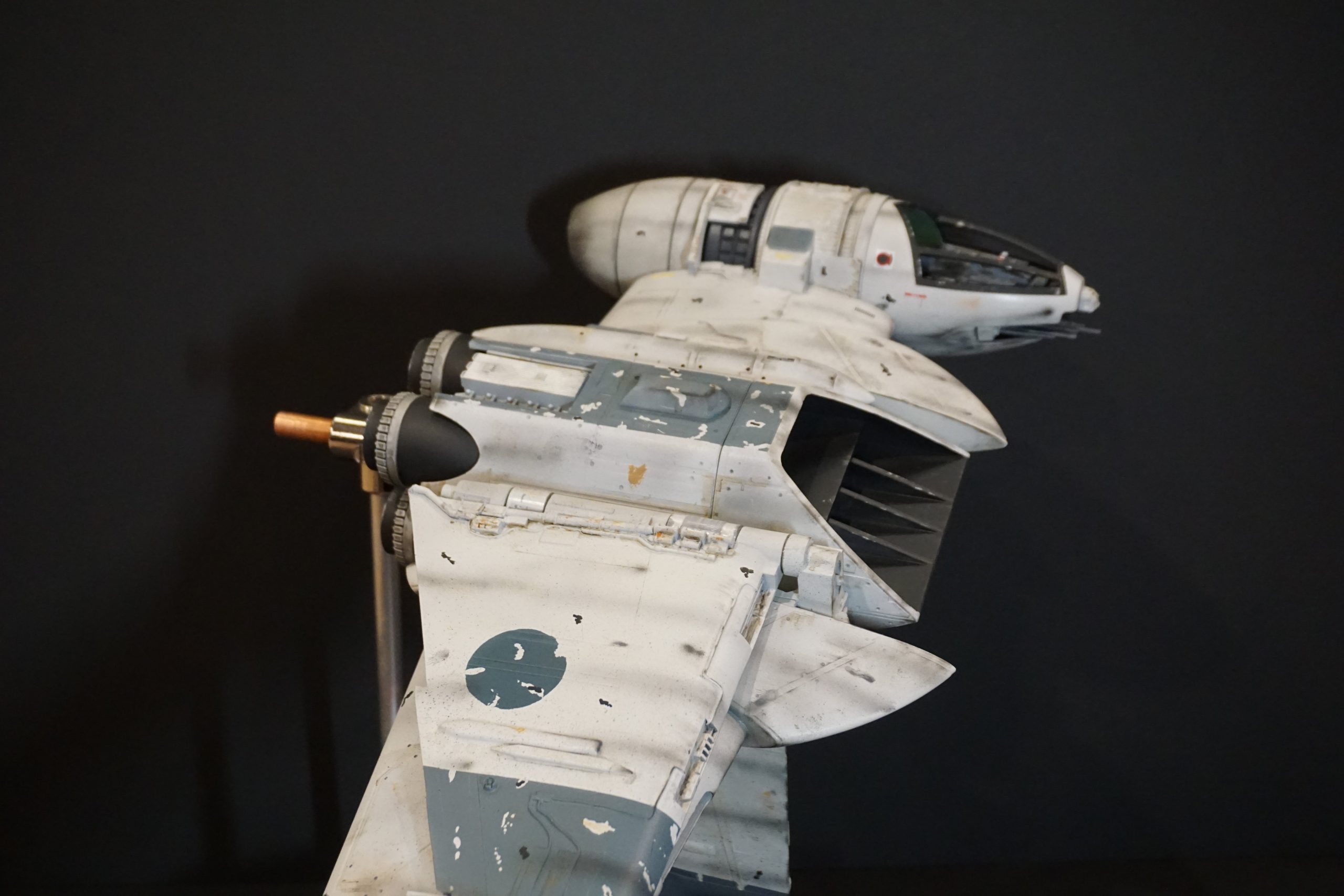 This B-Wing by artist Eric Eberle is mostly PLA in the 3D Print he painted from the digital model build by artist Chris Bibby, whose STL files Eric utilized to make this beautiful piece. The cockpit, endcaps and wings are resin. Fantastic! Soon Eric will have his site up and ready to show all he creates… under the name of Black Star Model Shop!