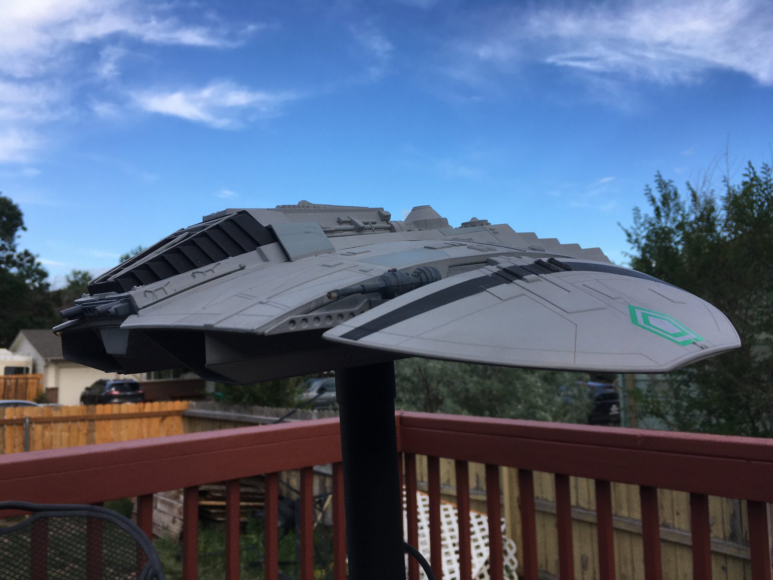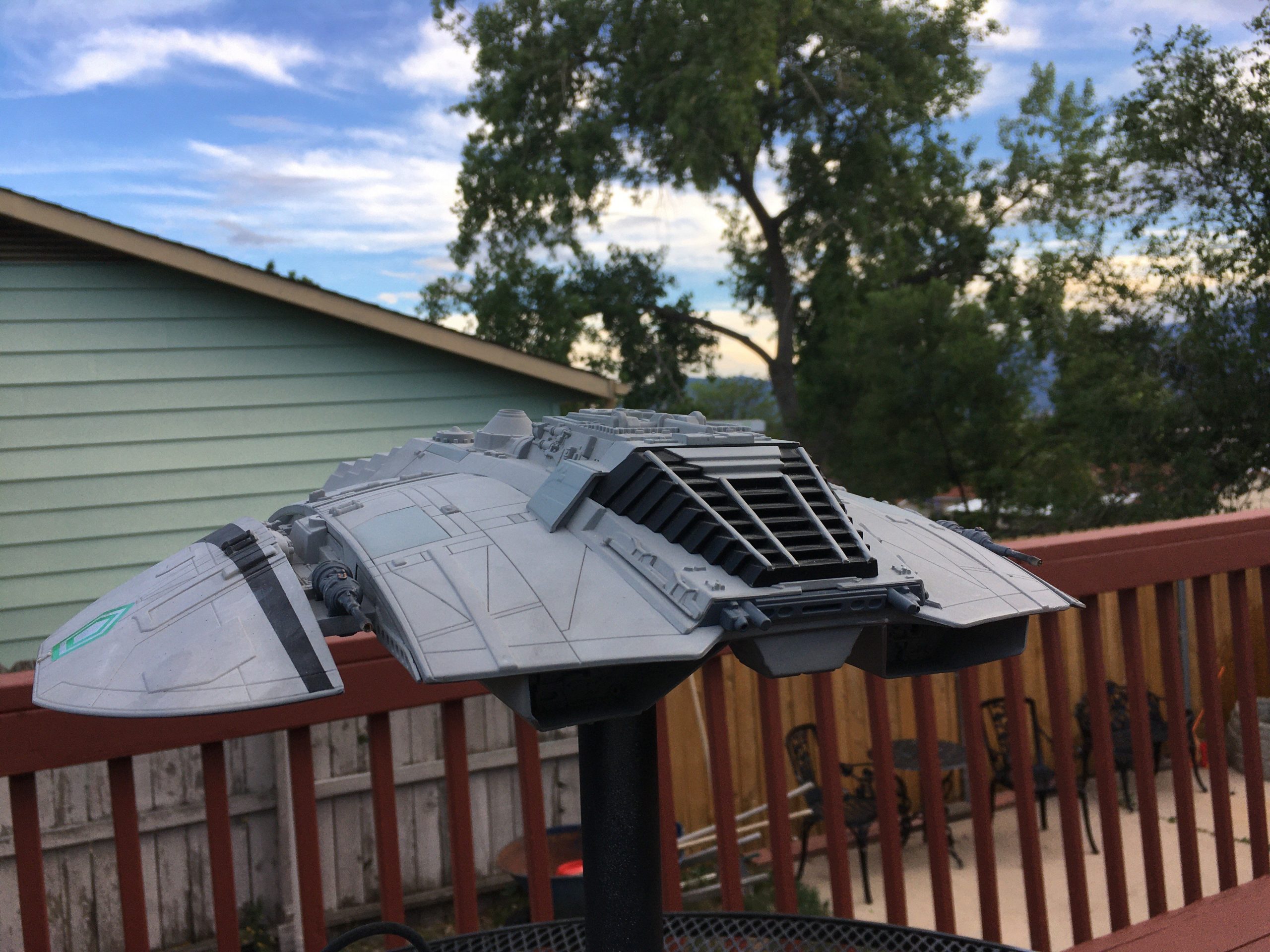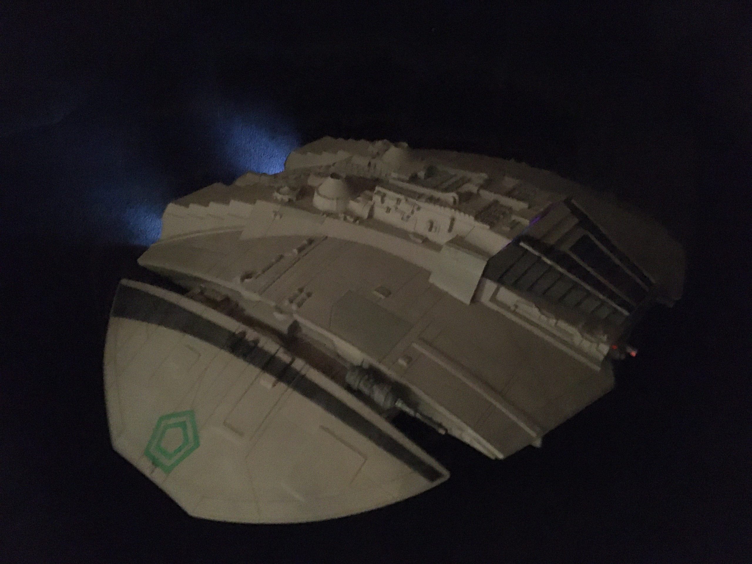 Collector Bobby Rogers has again commissioned the talents of Spacecraft Creation Models to build this wonderful classic Cylon Raider. I believe this one depicts Baltar in the rear command seat! Bringing it to life is the lighting and effects created by Starling Technologies!
